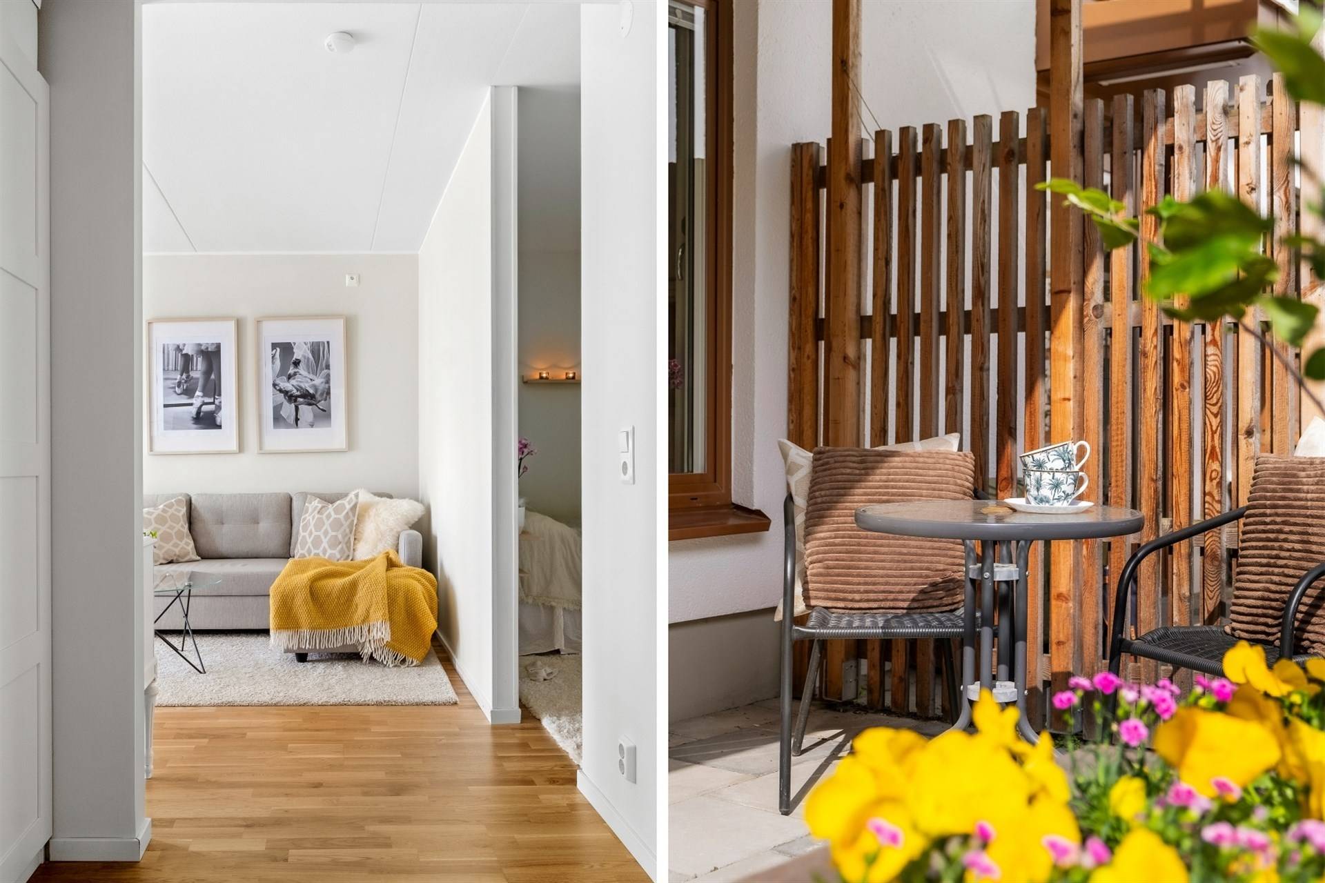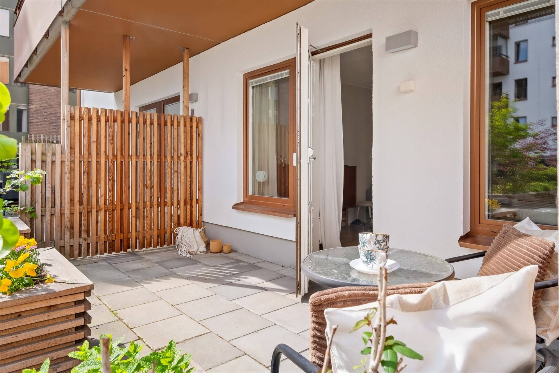 - Stor uteplats mot lugn och trivsam innergård, perfekt för odling, umgänge och avkoppling i solen - Rymligt kök med plats för stora middagar och ett drömkök för den matintresserade - Ljust och luftigt vardagsrum med gott om plats för både soffhäng och sociala kvällar - Flera garderober och smarta ytor som gör vardagen enklare - Ett stenkast från tunnelbana, service och grönområden Välkommen till denna charmiga och välplanerade tvårummare med stor uteplats mot en lugn innergård. Bostaden erbjuder ett harmoniskt och luftigt hem med generösa ytor, ljusa färgval, genomgående parkettgolv och flera tillval som höjer livskvaliteten. Här bor du med ett underbart ljusinsläpp där kvällssolen speglar sig i grannhusets balkonger och skänker en varm atmosfär till hemmet. Det stora vardagsrummet är bostadens naturliga samlingspunkt med plats för både en rejäl soffgrupp, middagsbord och förvaringsmöbler. Härifrån kliver du rakt ut på den stora uteplatsen som förvandlas till en grönskande oas under sommaren. Nuvarande ägare har med stor omsorg odlat blommor, mynta, lök och mycket mer i blomlådor och planteringar. Här finns plats för både odlingsglädje, stora loungemöbler och middagar. Köket är ett drömställe för matälskaren. Rymligt, socialt och fullt utrustat med moderna vitvaror som induktionshäll, inbyggd ugn och mikro, diskmaskin samt kyl och frys. Här finns också utrymme för en rejäl matplats där du kan samla vänner och familj för långa middagar. Sovrummet är rogivande med plats för en större säng, sängbord och flera garderober som erbjuder generös förvaring. Badrummet är helkaklat i stilrena färger och utrustat med dusch, WC, kommod, spegelskåp samt en kombinerad tvätt- och torkmaskin med praktisk arbetsbänk ovanpå. Lägenheten genomsyras av ett härligt ljus tack vare fönster i generösa storlekar och genomtänkt planlösning. Du bor med direkt närhet till Huvudsta centrum med service, mataffär, restauranger och gym och tack vare hissen i huset tar du dig enkelt ner utan att behöva gå utomhus. Tunnelbanan ligger endast ett par minuter bort och tar dig snabbt till city på under tio minuter. Närområdet bjuder på grönområden, lekplatser, sportytor och strandpromenaden vid Ulvsundasjön, perfekt för den som gillar friluftsliv och natur trots det centrala läget. Här får du inte bara ett fantastiskt hem, utan också en livsstil utöver det vanliga. Varmt välkommen att kontakta ansvariga mäklare vid intresse!25 images