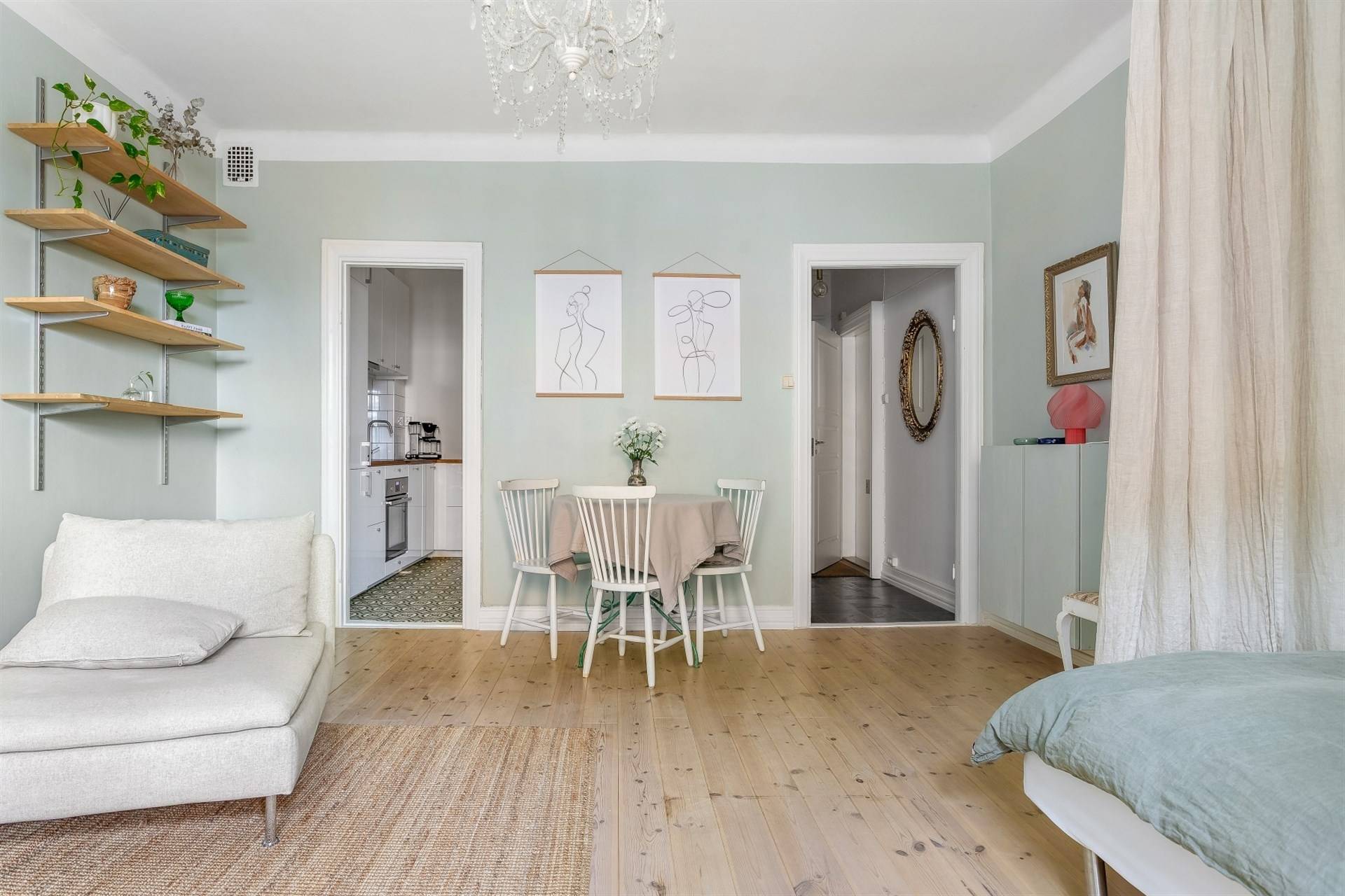 Välkommen till denna otroligt charmiga och välplanerade etta på populära Ursviksvägen 2 – en bostad som kombinerar sekelskifteskaraktär med moderna bekvämligheter. Här bor du mitt i centrala Sundbyberg, med närhet till både puls och grönska. Redan när du stiger in möts du av en rymlig hall med generös förvaring som skapar en välkomnande känsla. Från hallen nås också det fräscha, helkaklade badrummet utrustat med golvvärme, handdukstork och tvättmaskin – en sällsynt lyx i denna bostadsstorlek. Här finns dessutom en stor walk-in closet med massor av förvaringsutrymme, perfekt för dig som vill leva smart och organiserat. Vidare in i allrummet möts du av ett fantastiskt ljusinsläpp från det stora spröjsade fönstret. Den generösa takhöjden, trägolven, de vackra originaldörrarna och listerna samt den charmiga snedväggen skapar en genuin sekelskiftesatmosfär som är svår att motstå. Rummet är lättmöblerat och erbjuder gott om plats för både säng, soffa och matbord! Lägenhetens rymliga kök ligger i fil med allrummet och erbjuder gott om arbetsyta, förvaring och sociala ytor. Här finns plats att laga mat i lugn och ro samtidigt som du enkelt kan umgås med vänner eller familj. Föreningen är mycket omtyckt och erbjuder en fantastisk innergård där man under sommarhalvåret kan grilla, umgås och njuta av solen. I det vackra trapphuset finns även balkonger föreningens medlemmar fritt kan nyttja! Den goda ekonomin är ytterligare ett stort plus, med en belåningsgrad på endast 4 493 kr/kvm. Här bor du med omedelbar närhet till Sundbybergs utbud av caféer, restauranger, butiker samt utmärkta kommunikationer med tunnelbana, tvärbana, pendeltåg och bussar inom några minuter. En perfekt bostad för dig som söker en unik lägenhet med charm, rymd och genomtänkt planlösning – varmt välkommen hem!28 images