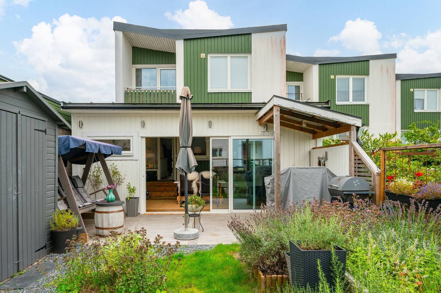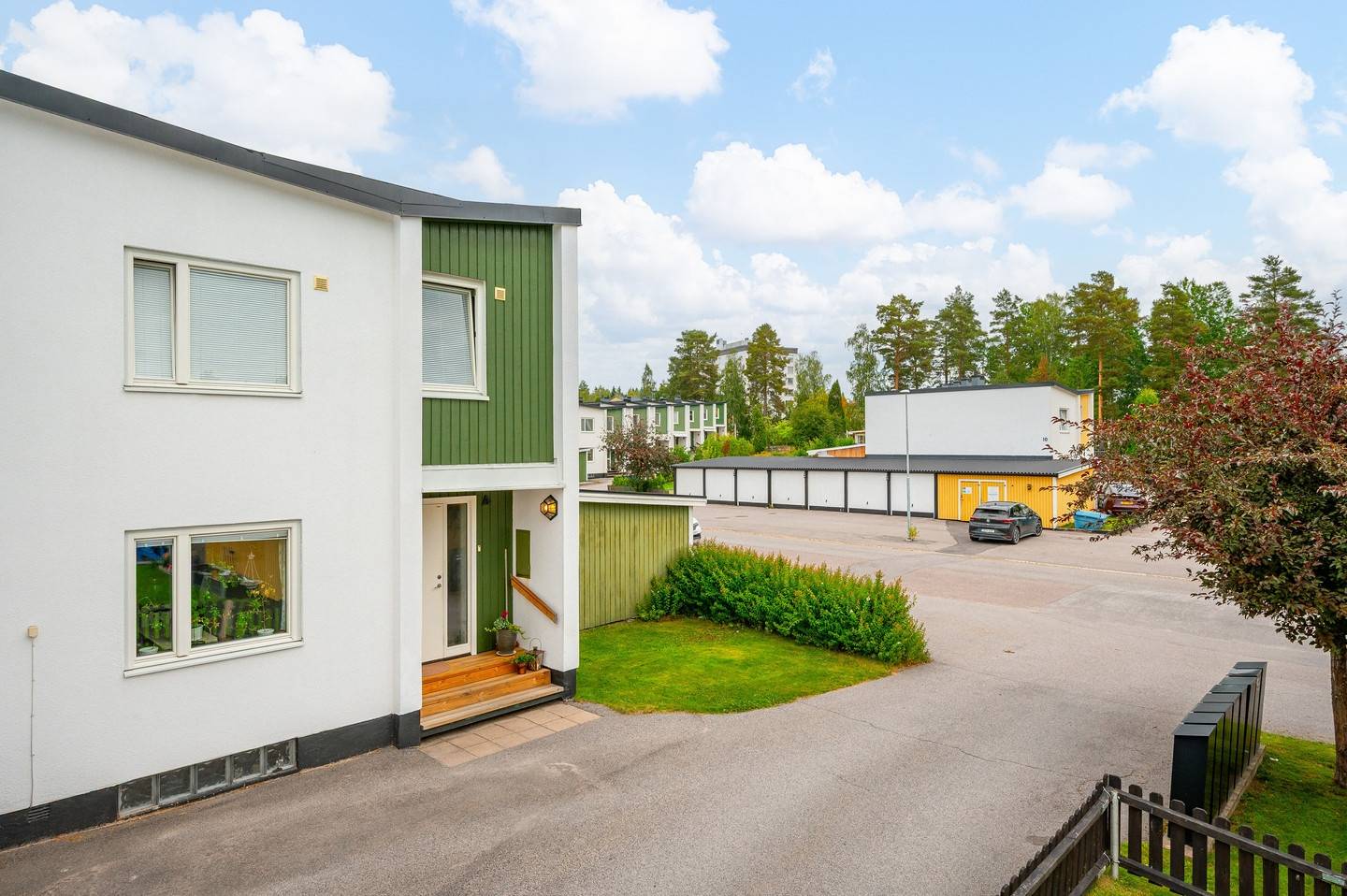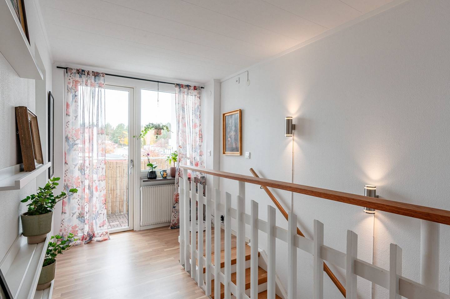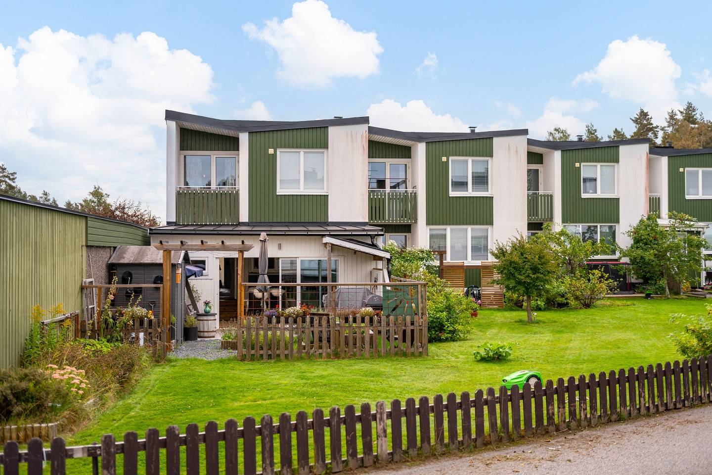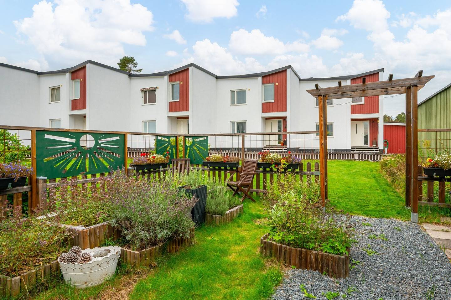 Välkommen till ett smakfullt och genomgående renoverat radhus i bostadsrättsform – ett hem där varje detalj är noga utvald för att skapa både funktion och trivsel. Här bor du med ett attraktivt gavelläge, i ett boende som erbjuder generösa ytor för hela familjen, fördelat på två plan samt källare. Redan vid första steget in möts du av ett ljust och luftigt hem där det moderna köket verkligen sticker ut. Köket är renoverat i en ljus lantlig stil med gedigna materialval såsom rostfri diskbänk, ekbänkskiva och ett charmigt tegelstänkskydd. Fullt utrustat med stor kyl och frys, diskmaskin, spis och fläkt – här finns allt för den matlagningsintresserade. Entréplanet rymmer även en gäst-wc, hall och ett rymligt vardagsrum med utgång till bostadens pärla – ett inglasat uterum i toppskick. Här kan du njuta av utemiljön större delen av året. Från uterummet når du ett soligt trädäck i västerläge samt en takad grillplats – perfekt för sociala tillställningar och sköna sommarkvällar. På övre plan finns tre välplanerade sovrum, en rymlig klädkammare samt ett stilrent helkaklat badrum med golvvärme, handdukstork och gott om förvaring. Källaren erbjuder ytterligare ytor med en fräsch tvättstuga utrustad med tvättmaskin, torktumlare och badkar, samt flera garderober. Här finns även en mysig gillestuga och gott om förrådsutrymmen. Bostaden är belägen i en HSB-ansluten bostadsrättsförening där bland annat värme, bredband och egen garageplats ingår i månadsavgiften. Här bor du med närhet till det mesta som skola, matbutiker, centrum och fina promenadstråk. Detta är ett hem som verkligen måste upplevas på plats. Välkommen att kontakta Helena Örnefeldt för mer information eller för att anmäla ditt intresse!46 images
