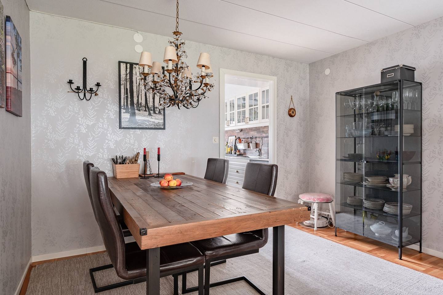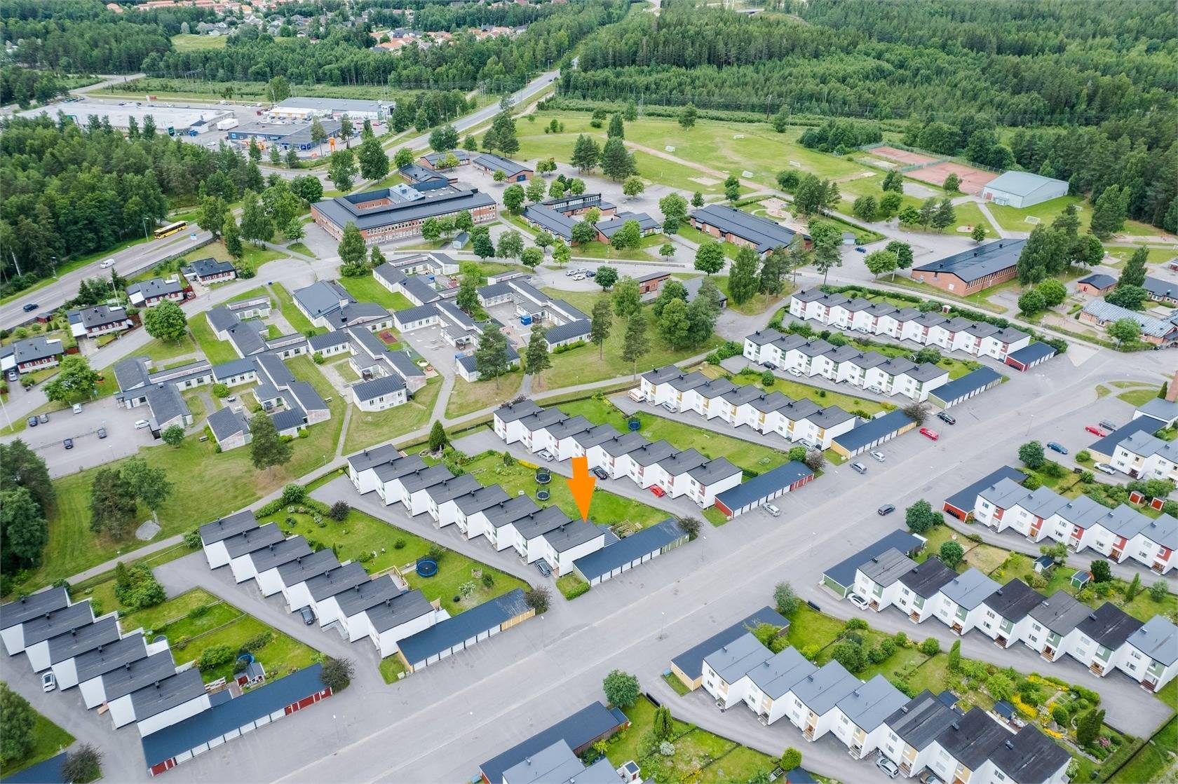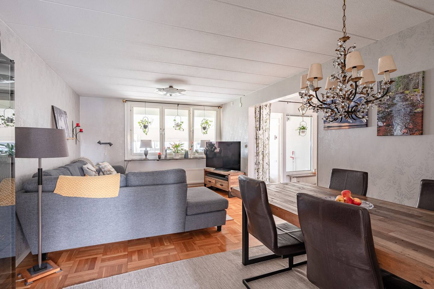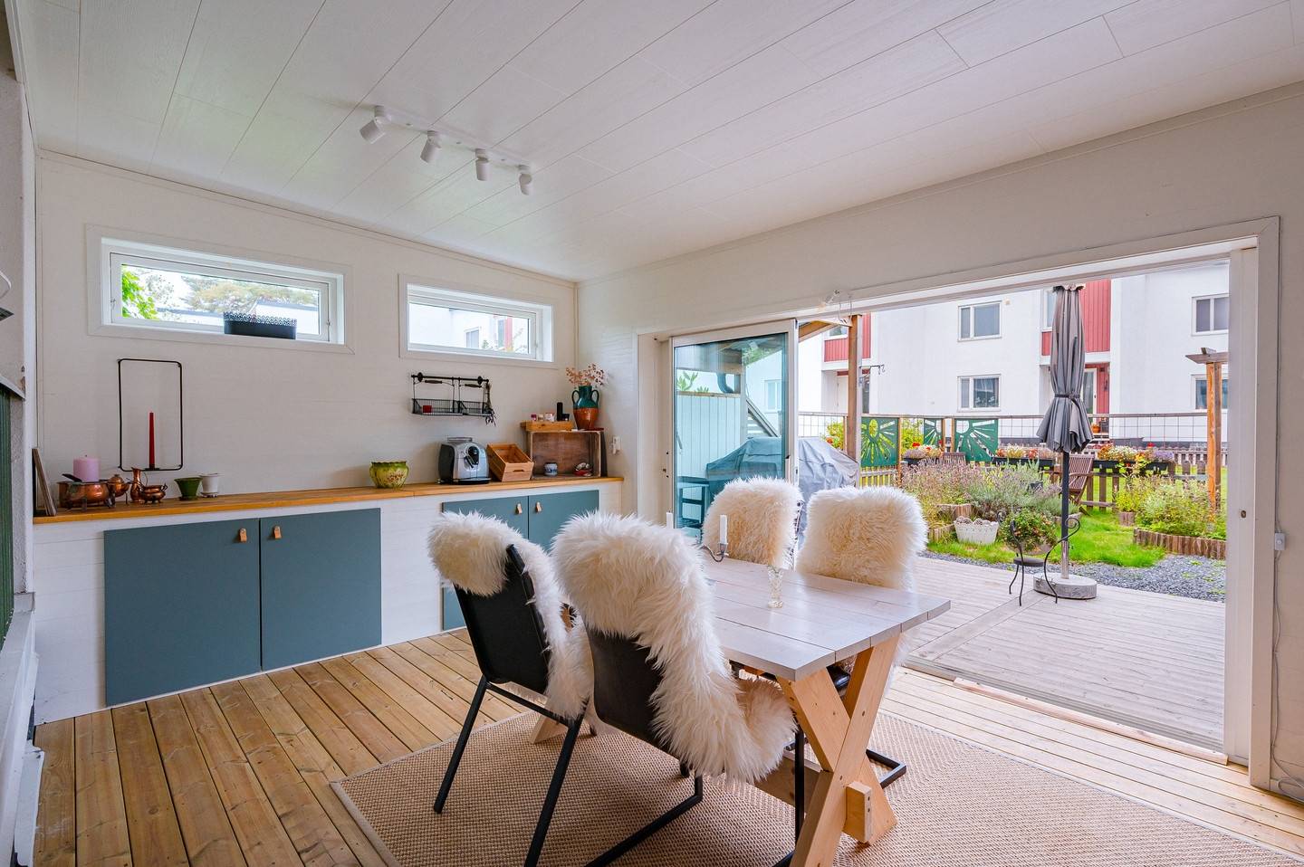 Välkommen till ett smakfullt och genomgående renoverat radhus i bostadsrättsform – ett hem där varje detalj är noga utvald för att skapa både funktion och trivsel. Här bor du med ett attraktivt gavelläge, i ett boende som erbjuder generösa ytor för hela familjen, fördelat på två plan samt källare. Redan vid första steget in möts du av ett ljust och luftigt hem där det moderna köket verkligen sticker ut. Köket är renoverat i en ljus lantlig stil med gedigna materialval såsom rostfri diskbänk, ekbänkskiva och ett charmigt tegelstänkskydd. Fullt utrustat med stor kyl och frys, diskmaskin, spis och fläkt – här finns allt för den matlagningsintresserade. Entréplanet rymmer även en gäst-wc, hall och ett rymligt vardagsrum med utgång till bostadens pärla – ett inglasat uterum i toppskick. Här kan du njuta av utemiljön större delen av året. Från uterummet når du ett soligt trädäck i västerläge samt en takad grillplats – perfekt för sociala tillställningar och sköna sommarkvällar. På övre plan finns tre välplanerade sovrum, en rymlig klädkammare samt ett stilrent helkaklat badrum med golvvärme, handdukstork och gott om förvaring. Källaren erbjuder ytterligare ytor med en fräsch tvättstuga utrustad med tvättmaskin, torktumlare och badkar, samt flera garderober. Här finns även en mysig gillestuga och gott om förrådsutrymmen. Bostaden är belägen i en HSB-ansluten bostadsrättsförening där bland annat värme, bredband och egen garageplats ingår i månadsavgiften. Här bor du med närhet till det mesta som skola, matbutiker, centrum och fina promenadstråk. Detta är ett hem som verkligen måste upplevas på plats. Välkommen att kontakta Helena Örnefeldt för mer information eller för att anmäla ditt intresse!46 images