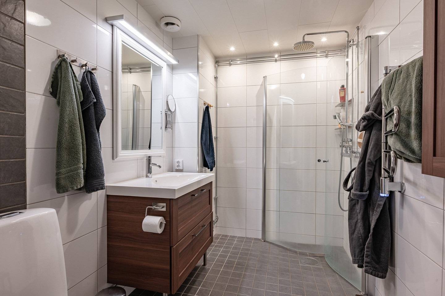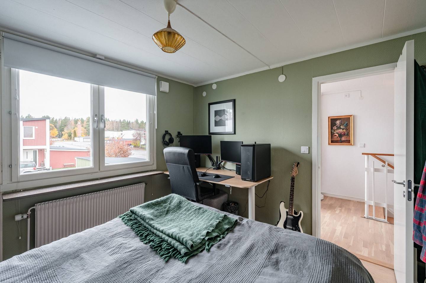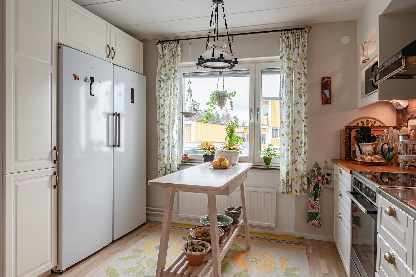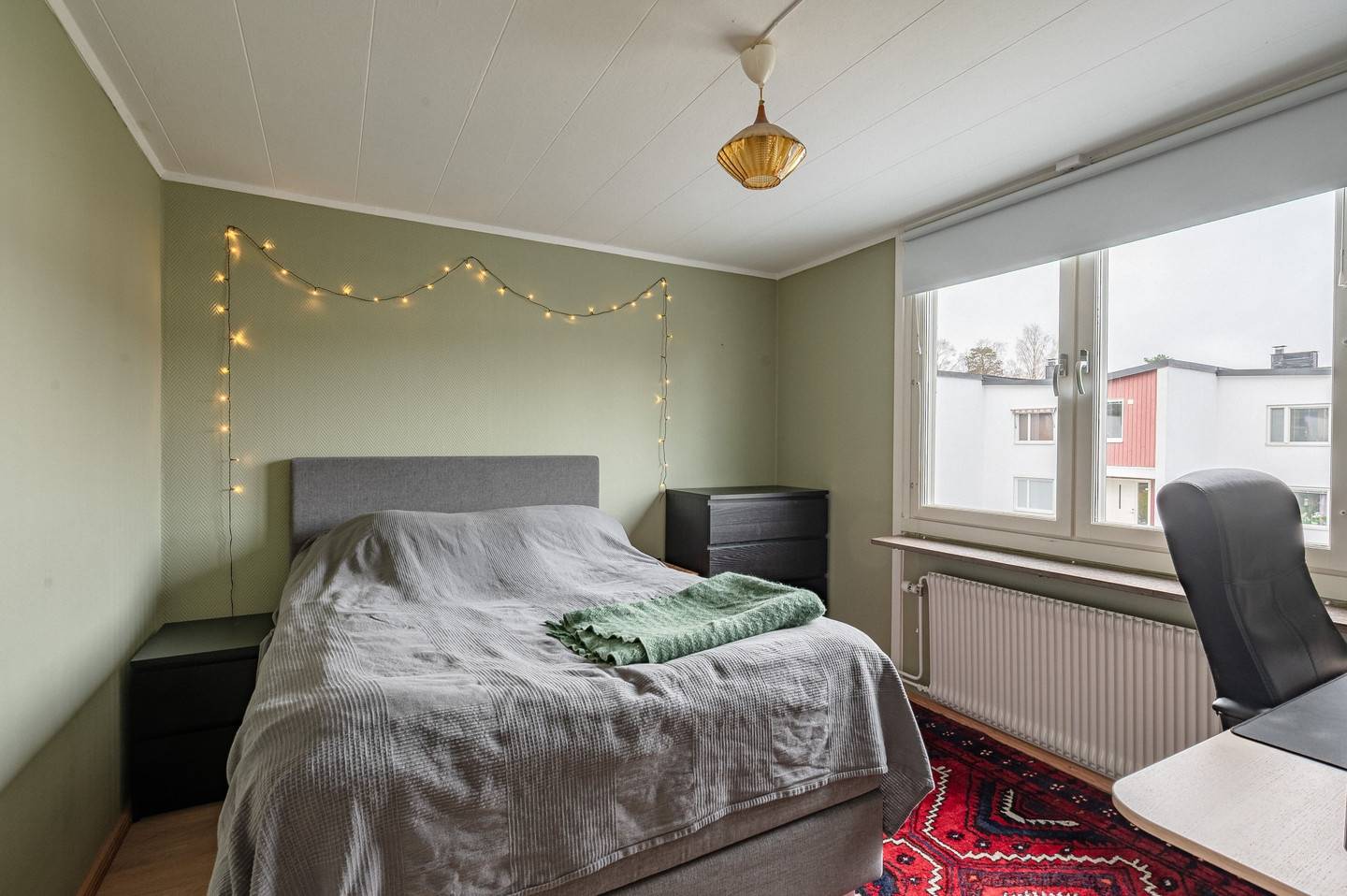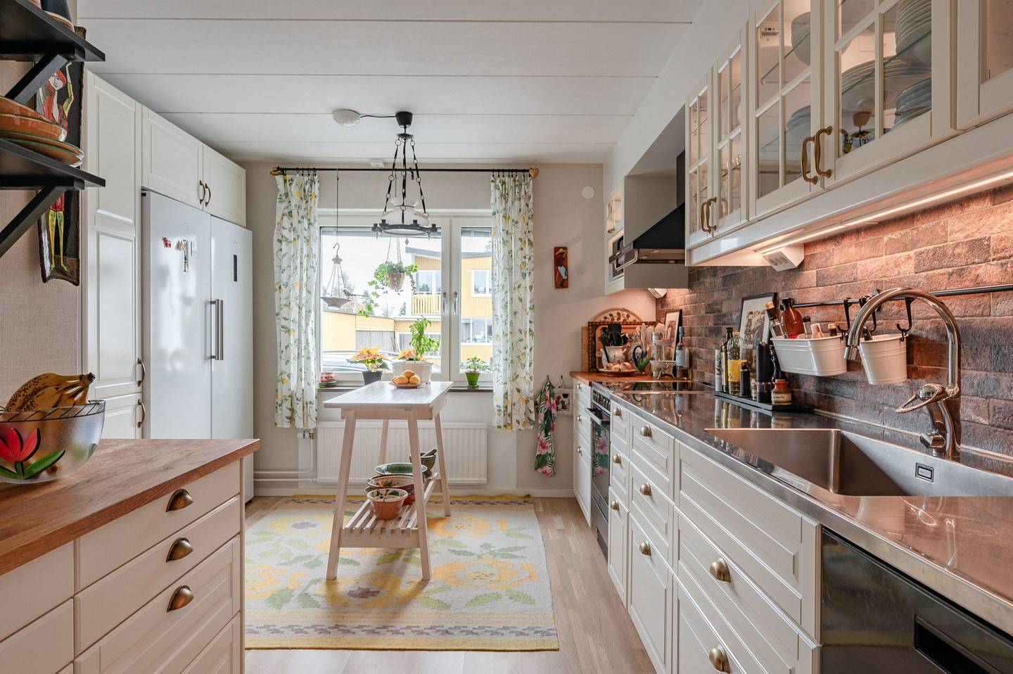 Välkommen till ett smakfullt och genomgående renoverat radhus i bostadsrättsform – ett hem där varje detalj är noga utvald för att skapa både funktion och trivsel. Här bor du med ett attraktivt gavelläge, i ett boende som erbjuder generösa ytor för hela familjen, fördelat på två plan samt källare. Redan vid första steget in möts du av ett ljust och luftigt hem där det moderna köket verkligen sticker ut. Köket är renoverat i en ljus lantlig stil med gedigna materialval såsom rostfri diskbänk, ekbänkskiva och ett charmigt tegelstänkskydd. Fullt utrustat med stor kyl och frys, diskmaskin, spis och fläkt – här finns allt för den matlagningsintresserade. Entréplanet rymmer även en gäst-wc, hall och ett rymligt vardagsrum med utgång till bostadens pärla – ett inglasat uterum i toppskick. Här kan du njuta av utemiljön större delen av året. Från uterummet når du ett soligt trädäck i västerläge samt en takad grillplats – perfekt för sociala tillställningar och sköna sommarkvällar. På övre plan finns tre välplanerade sovrum, en rymlig klädkammare samt ett stilrent helkaklat badrum med golvvärme, handdukstork och gott om förvaring. Källaren erbjuder ytterligare ytor med en fräsch tvättstuga utrustad med tvättmaskin, torktumlare och badkar, samt flera garderober. Här finns även en mysig gillestuga och gott om förrådsutrymmen. Bostaden är belägen i en HSB-ansluten bostadsrättsförening där bland annat värme, bredband och egen garageplats ingår i månadsavgiften. Här bor du med närhet till det mesta som skola, matbutiker, centrum och fina promenadstråk. Detta är ett hem som verkligen måste upplevas på plats. Välkommen att kontakta Helena Örnefeldt för mer information eller för att anmäla ditt intresse!46 images