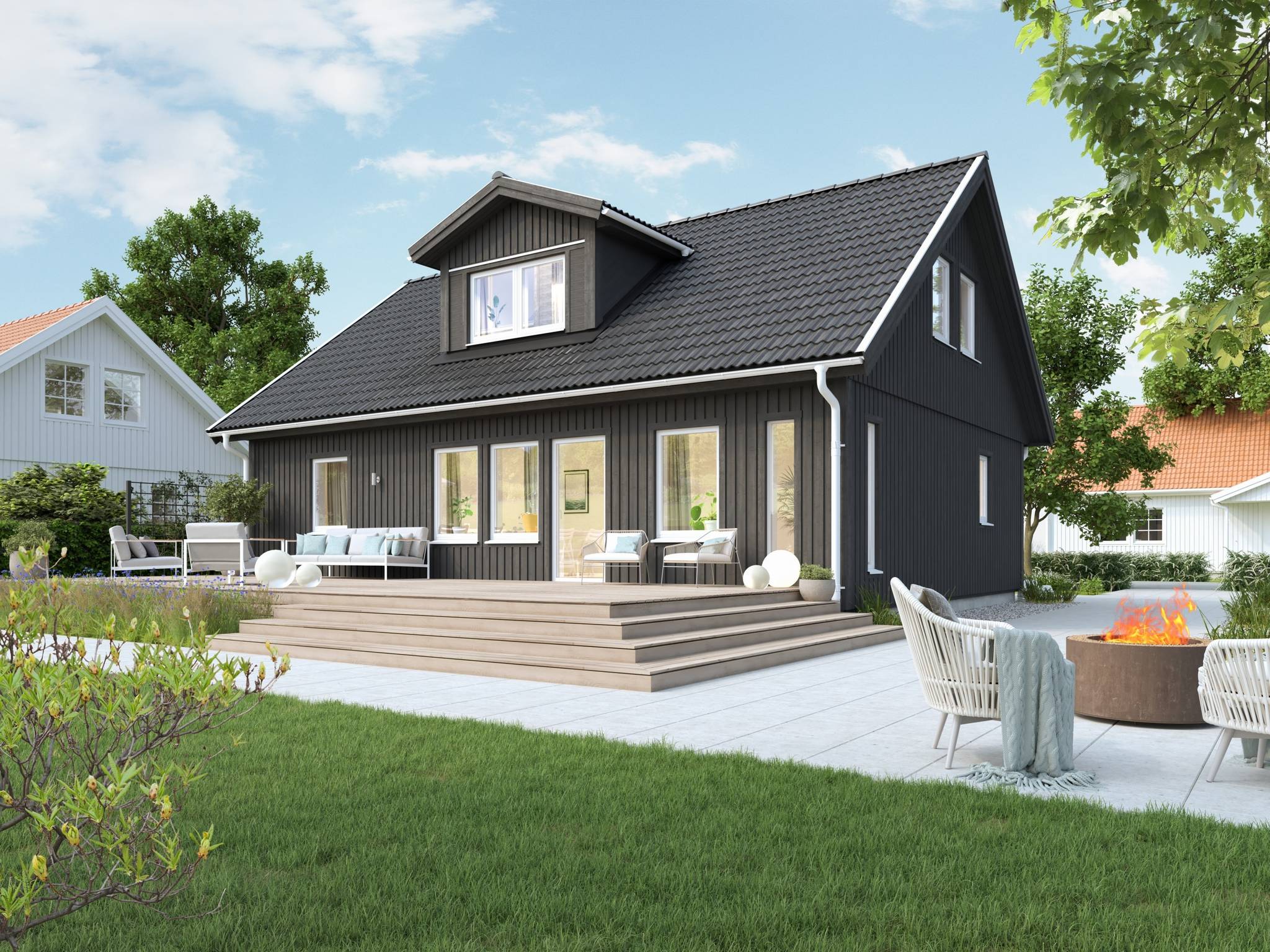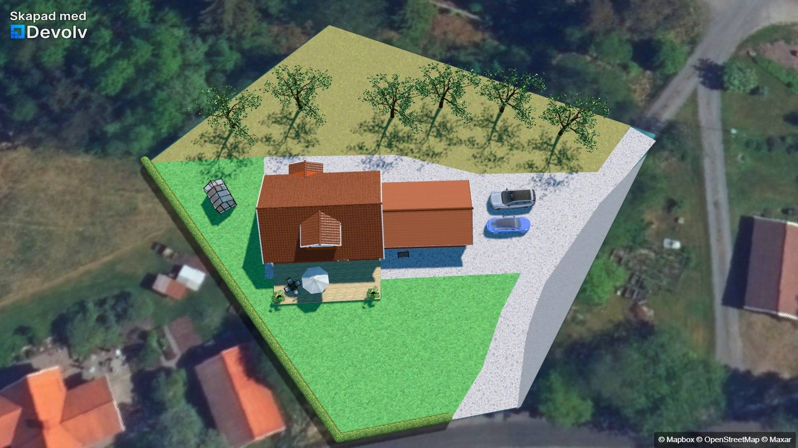 På Paradisvägen 165 erbjuds nu en stor, avstyckad och grovplanerad tomt om 1 618 m² i ett lugnt och naturnära område strax utanför Älvängen. Här bor du med skogen runt knuten, vacker utsikt och samtidigt nära både service, skola och kommunikationer. Tomten säljs av en annan markägare men är knuten till Älvsbyhus, vilket ger en trygg och smidig byggprocess. En stor fördel med Älvsbyhus är att du betalar huset först efter godkänd slutbesiktning – tryggt, enkelt och utan löpande delbetalningar under byggtiden. Nyckelfärdigt prisförslag I prisförslaget 5 216 825 kronor (baserat på tomtpris 1 500 000 kr) ingår husmodellen Villa Selma – ett mysigt och välplanerat trähus med 85 m² på entréplan och 44 m² inredningsbar övervåning. Perfekt för dig som vill ha ett smart och flexibelt boende som kan växa med familjen. Förslaget inkluderar även ett kopplat dubbelgarage, modell V.30, med 38 m² praktisk yta för bil och förvaring. I den bifogade produktionskalkylen hittar du detaljerad information om vad som ingår. Kontakta säljaren för mer information om markarbeten och eventuella tillval. Observera att de interiöra och exteriöra bilderna samt planritningen endast visar en visualisering av husmodellen. Bilderna kan visa vissa tillval som inte är inräknade i prisförslaget. Huset och garaget är förslag – du kan välja valfri husmodell från Älvsbyhus, så länge huset får plats på tomten. Kontakta Älvsbyhus säljare för att få en personlig kostnadskalkyl utifrån den av våra husmodeller du tycker mest om. Varmt välkommen att höra av dig för mer information!15 images