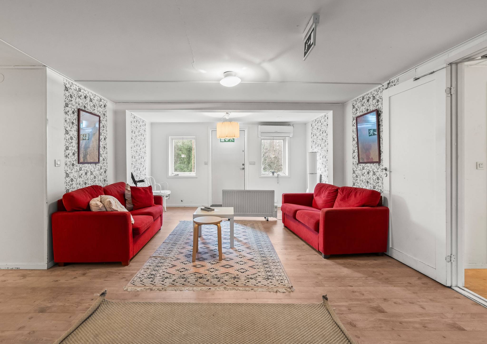 Mellan Österfärnebo och Grönsinka, med närhet till både skog, sjö och dalälvens glittrande vatten, ligger denna unika kommersiella fastighet med två rymliga byggnader och oändlig potential. Här finns alla förutsättningar för dig som drömmer om att driva verksamhet, skapa ett naturnära boende eller kombinera flera användningsområden under samma tak. Den äldre skolbyggnaden bjuder på en fantastisk mix av historia och funktionalitet. Här möts gammaldags charm med moderna bekvämligheter – bland annat ett uppdaterat kök, generösa sällskapsytor och vackra detaljer som minner om byggnadens tid som byskola. Den gamla gympasalen ger rummet extra karaktär och öppnar upp för kreativa användningsmöjligheter – tänk ateljé, yogasal eller samlingslokal. Den andra byggnaden, uppförd på 1970-talet, har tidigare huserat både gästgiveri, HVB-hem och boende för jaktlag under säsong. Här finns många rum, gemensamhetsytor och ett funktionellt upplägg som gör huset perfekt för uthyrning, verksamhet eller större familjeboende. Fastigheten ligger i Stärte, en lugn och naturnära plats med närhet till allt du behöver. En kort bilresa bort ligger charmiga Österfärnebo, den levande landsbygdsorten med stark gemenskap och närhet till både natur och service. Här har du bekvämligheter i form av skola, butik och café runt hörnet. Här finns även goda kommunikationer mot större orter som Sandviken och Gävle. Här finns även möjlighet att resa kollektivt till Horndal. Området är omgivet av storslagen natur med skog, vandringsleder och fiskrika vatten i både Dalälven och Fängsjön – en dröm för friluftsälskare, sportfiskare och jägare. Med två stora byggnader och flexibla planlösningar finns utmärkta möjligheter till hyresintäkter. Fastigheten lämpar sig lika väl för den som vill driva boende- eller vårdverksamhet, som för den som söker ett större generationsboende eller vill skapa ett retreat på landet. Här finns plats för idéer, drömmar och framtid. Möjligheterna är oändliga – det är bara fantasin som sätter gränserna. Kontakta ansvarig mäklare för mer information!50 images