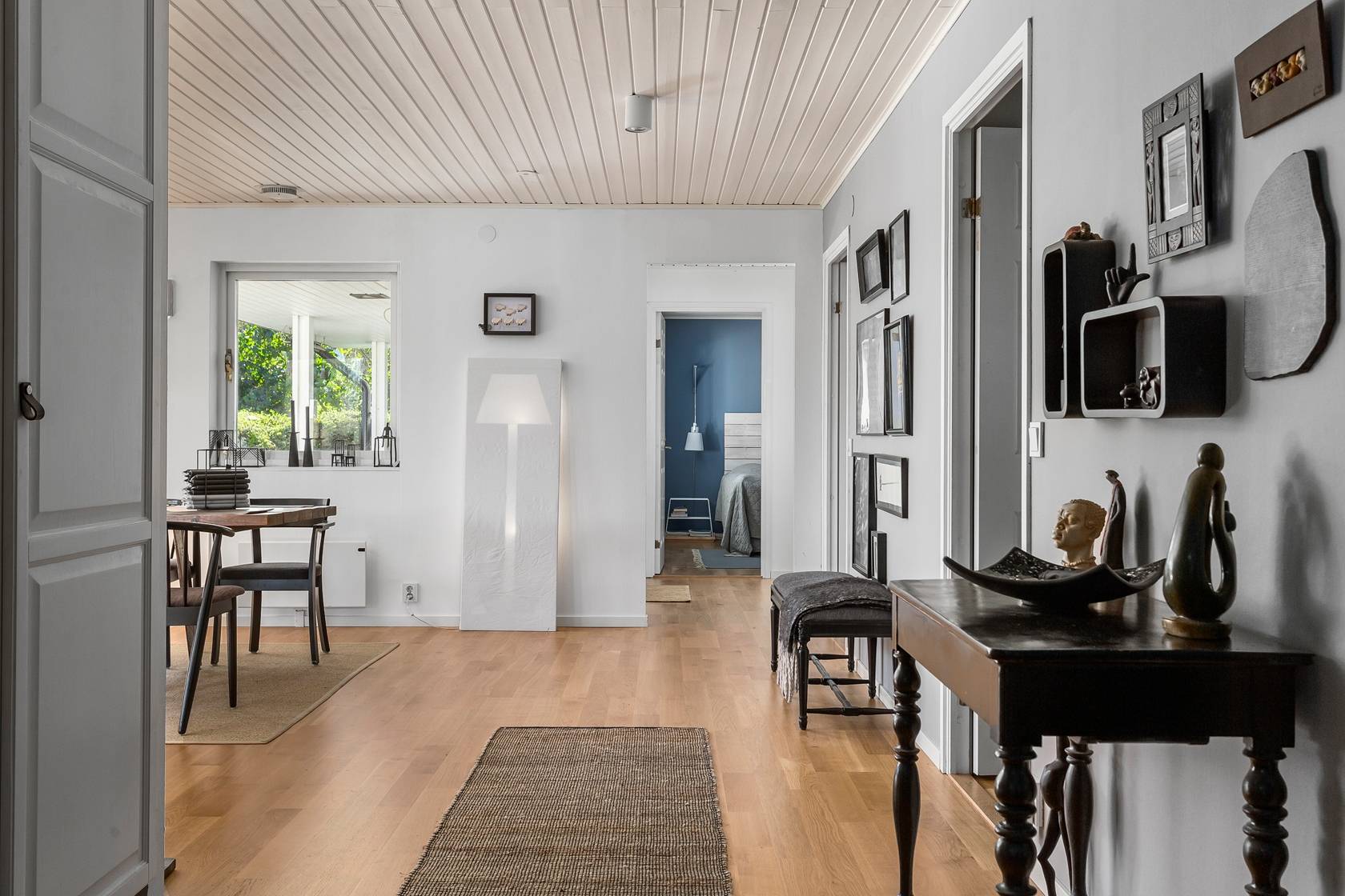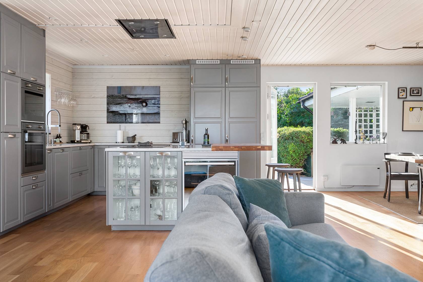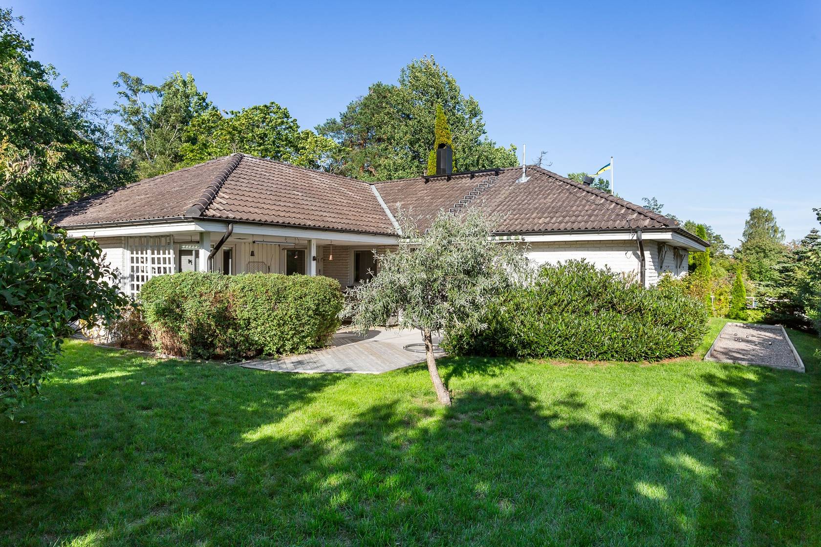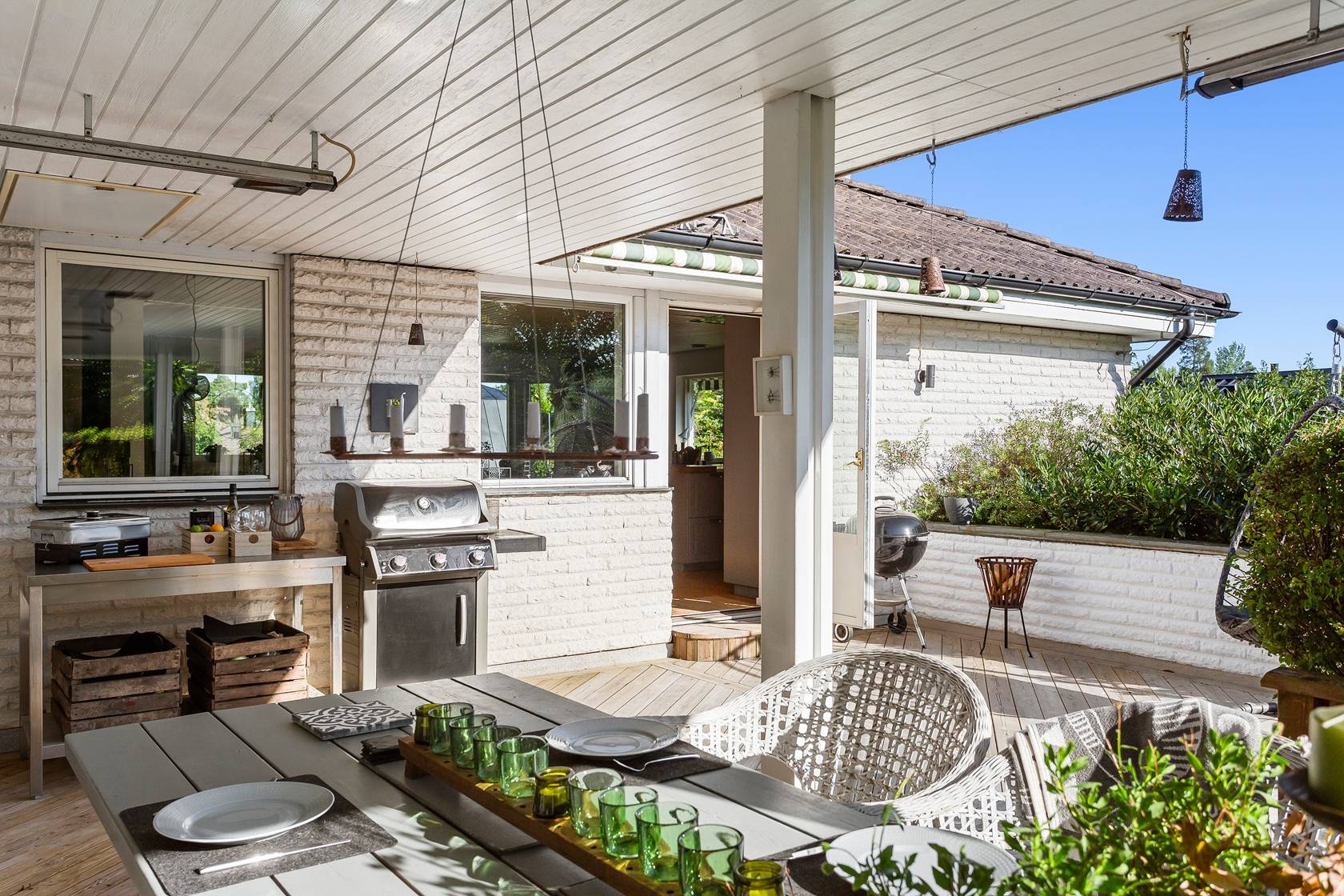 Välkommen till en modern och välplanerad villa med ett svårslaget läge i populära Björknäs. Här bor du högt och insynsskyddat med utsikt över trädtoppar, mycket himmel och sol från morgon till kväll. Huset ligger lugnt och ostört, omgiven av grönska, och erbjuder ett bekvämt boende i ett plan med generösa ytor och stilren design. Villan är 147 välplanerade kvadratmeter och har en öppen och luftig planlösning där kök och vardagsrum smälter samman till ett stort socialt hjärta för familjeliv och umgänge. Här finns tre rymliga sovrum, med möjlighet att enkelt skapa ett fjärde om behovet finns. Badrummet är stort och elegant med både dusch, badkar och WC, och i hallen finns dessutom en separat gästtoalett. Den praktiska groventrén rymmer både tvättstuga och gott om förvaring, och har egen ingång från utsidan. Sedan nuvarande ägare flyttade in 2017 har hela huset genomgått en omfattande och smakfull renovering där inget lämnats åt slumpen. Planlösningen har öppnats upp, ytskikt och installationer har uppdaterats och varje detalj är genomtänkt för att skapa ett bekymmersfritt och inbjudande hem. Uteplatsen är delvis under tak och delvis utan tak vilket gör att den kan nyttjas alla årstider och väder. Villan är dessutom mycket lättskött med enkla installationer och funktioner, tegelfasad och lättskött tomt. Trädgården är lättskött med en fin gräsmatta som badar i sol hela dagen, och tack vare det höga läget är den helt fri från insyn. Med sitt strategiska läge i Björknäs bor du nära både natur, badplatser, skolor, service och kommunikationer mot centrala Stockholm. Här får du ett modernt och inflyttningsklart hus med lugn, trygg omgivning och ett hem som är lika vackert som funktionellt. Välkommen att anmäla ditt intresse – detta är en villa du inte vill missa!45 images
