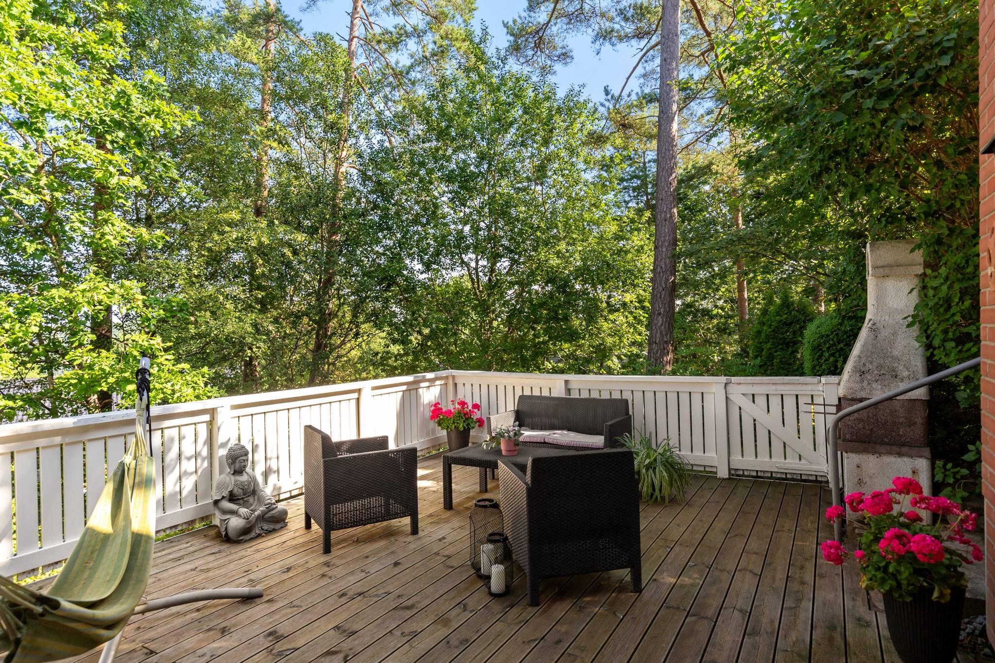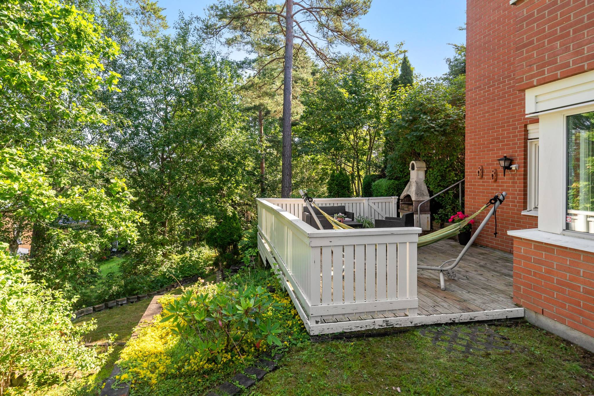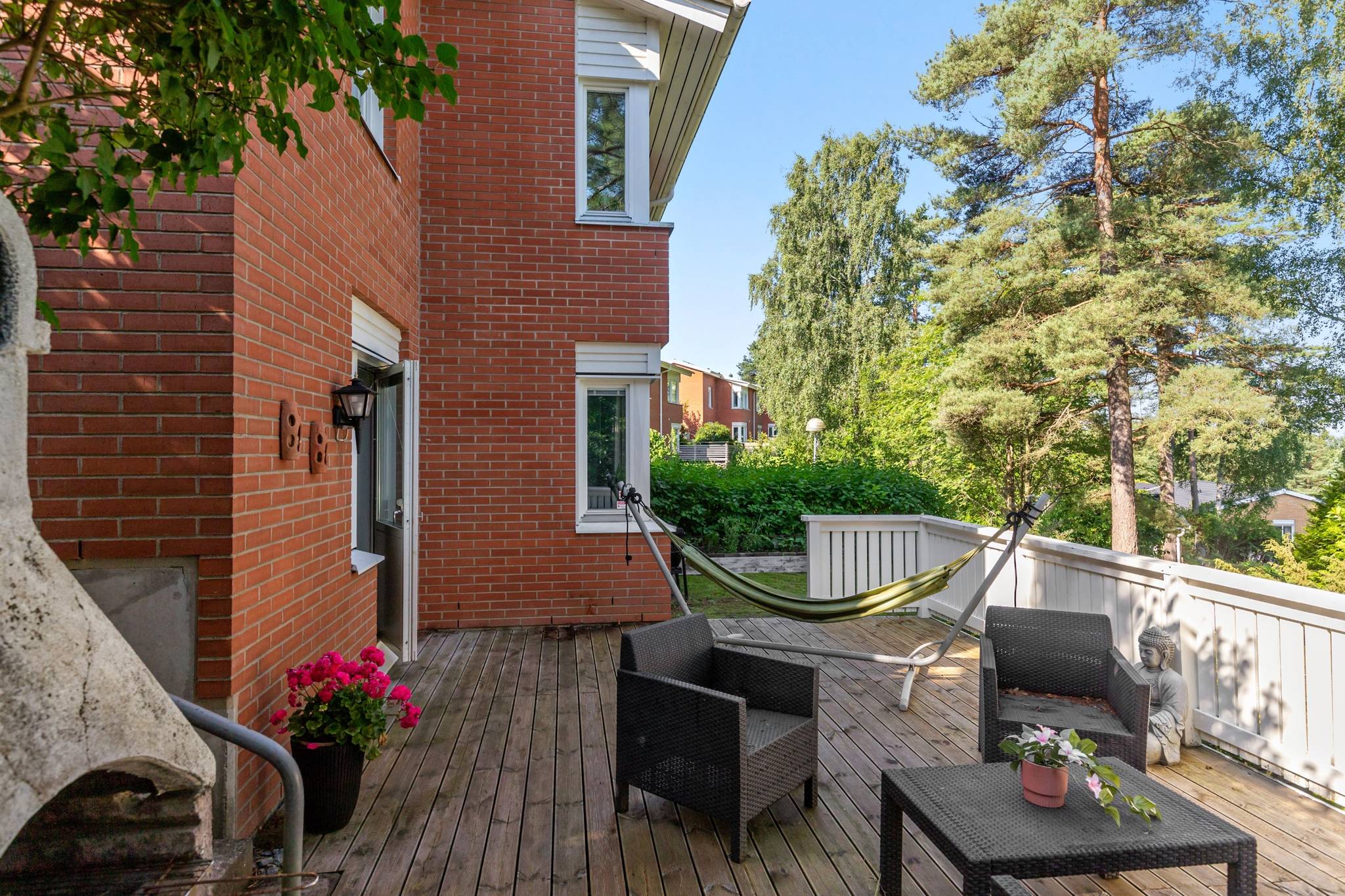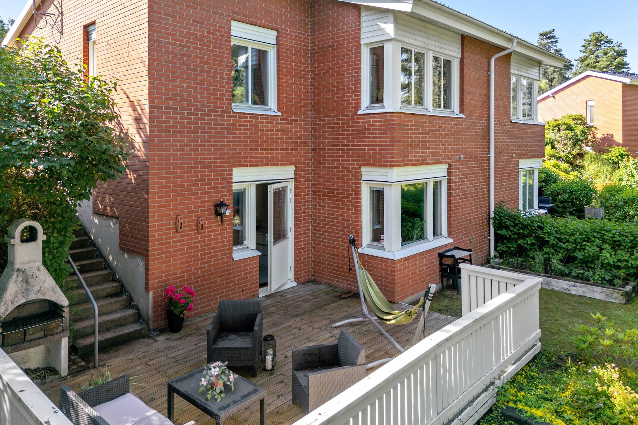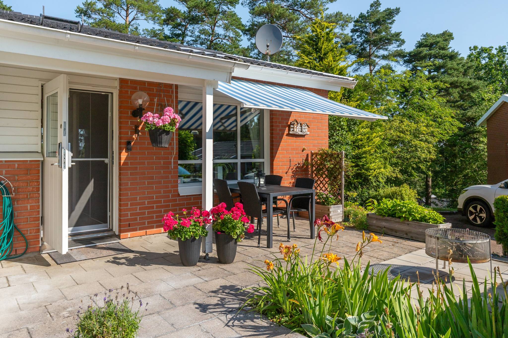 Nu har du möjlighet att in i ett totalrenoverat parhus på familjevänliga Hömånadsgatan. Huset genomgick en omfattande renovering år 2018, där inget lämnades åt slumpen. Ny parkett lades i hela huset, köket totalrenoverades med granitskiva och köksö, badrummen på både övre och nedre plan fick en lyxig uppgradering, och ytskikten fräschades upp. Här erbjuds du ett inflyttningsklart boende i bostadsrättsform, med uteplatser på både fram- och baksidan. Du parkerar bilen precis intill huset, och ytterligare parkeringsplatser finns framför huset för familj eller besökare. I avgiften ingår service på IVT-värmepump, kallvatten, sophämtning, snöröjning, parkeringsplats, bredband, kabel-TV samt bostadsrättstillägg på hemförsäkringen. Du bor i en familjevänlig oas omringad av grönska, natur och vandringsleder. I området har du både skolor, torg och kommunikationer inom behagligt gångavstånd. Därför är detta ett boende som passar de flesta, oavsett ålder – en chans ni inte bör missa, då den här typen av bostad sällan kommer ut till försäljning.27 images
