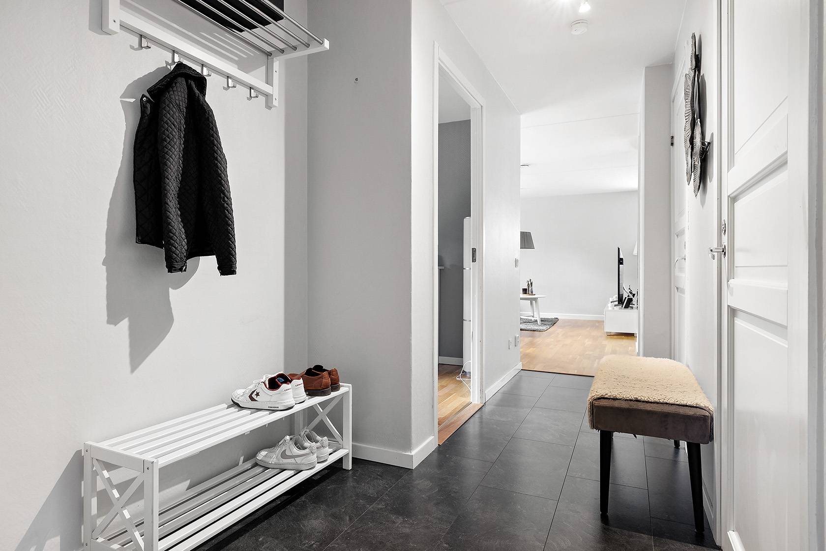 Välkommen till denna välplanerade tvåa med ett mycket centralt läge! Entrén har ett praktiskt klinkergolv och gott om utrymme för ytterkläder. Det vinklade vardagsrummet har en öppen planlösning som aMore...