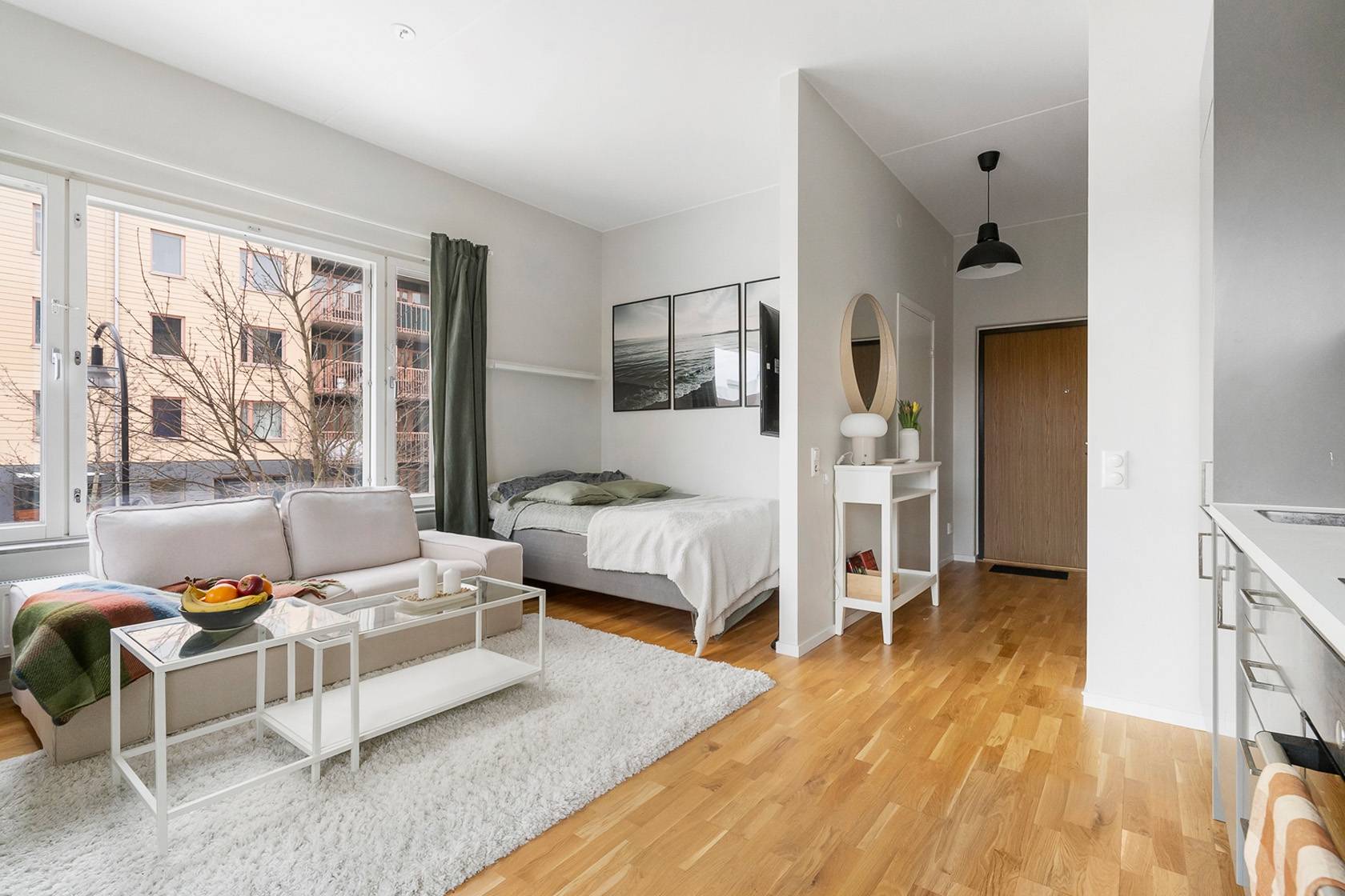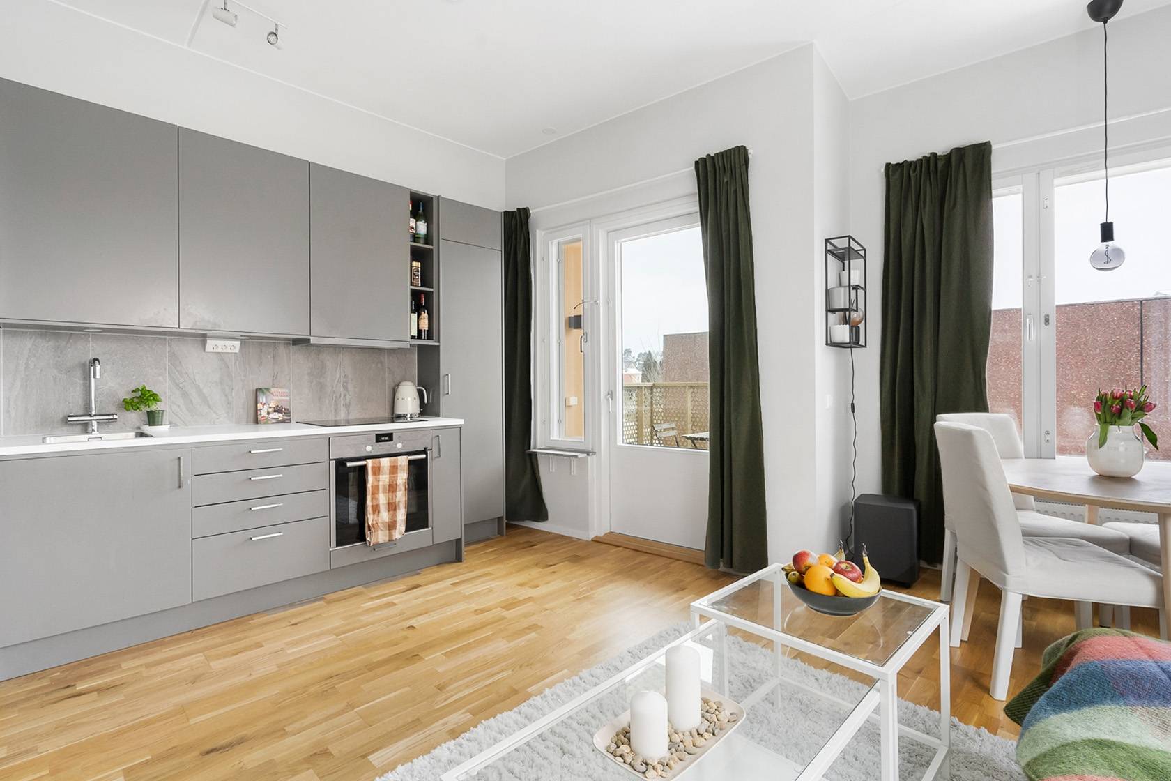 *Perfekt planerad gaveletta* *Modern arkitektur* *Stor balkong med begränsad insyn* *Takhöjd om nästan tre meter* *Praktiskt sovalkov* *Omedelbar närhet till kommunikationer och centrum Varmt välkommen till denna moderna och stilrena etta om 33 kvm! Med stora fönsterpartier som en takhöjd om nästan tre meter känns rymlig och trivsam att bo i. Köket från Vedum är modernt utrustat med bland annat diskmaskin och har gott om arbetsytor . Här finns även plats för mindre matbord. Den praktiska sovalkoven ger plats åt större säng utan att tumma på övriga ytor. Balkongen går att njuta av eftermiddags och kvällssol med begränsad insyn. Stort badrum utrustat med kombimaskin. För att underlätta förvaringen ytterligare finns även en rymlig klädkammare. BRF Lumen är en stabil förening med god ekonomi. I avgiften ingår kallvatten, värme samt bostadstättstillägg. Obligatoriskt tillägg på 230 kr/mån för TV/bredband Bostaden är belägen i ett lugnt läge med närhet till grönska, bad och härliga promenadstråk. Promenadavstånd till Sollentuna Centrum med utmärkt serviceutbud, matbutiker och shopping samt goda kommunikationer in till city gör detta till den perfekta bostaden! Kort promenad till Sollentuna Station som tar dig in till Stockholm City på en kvart. Välkommen att kontakta mäklaren William för mer info och boka visning!26 images