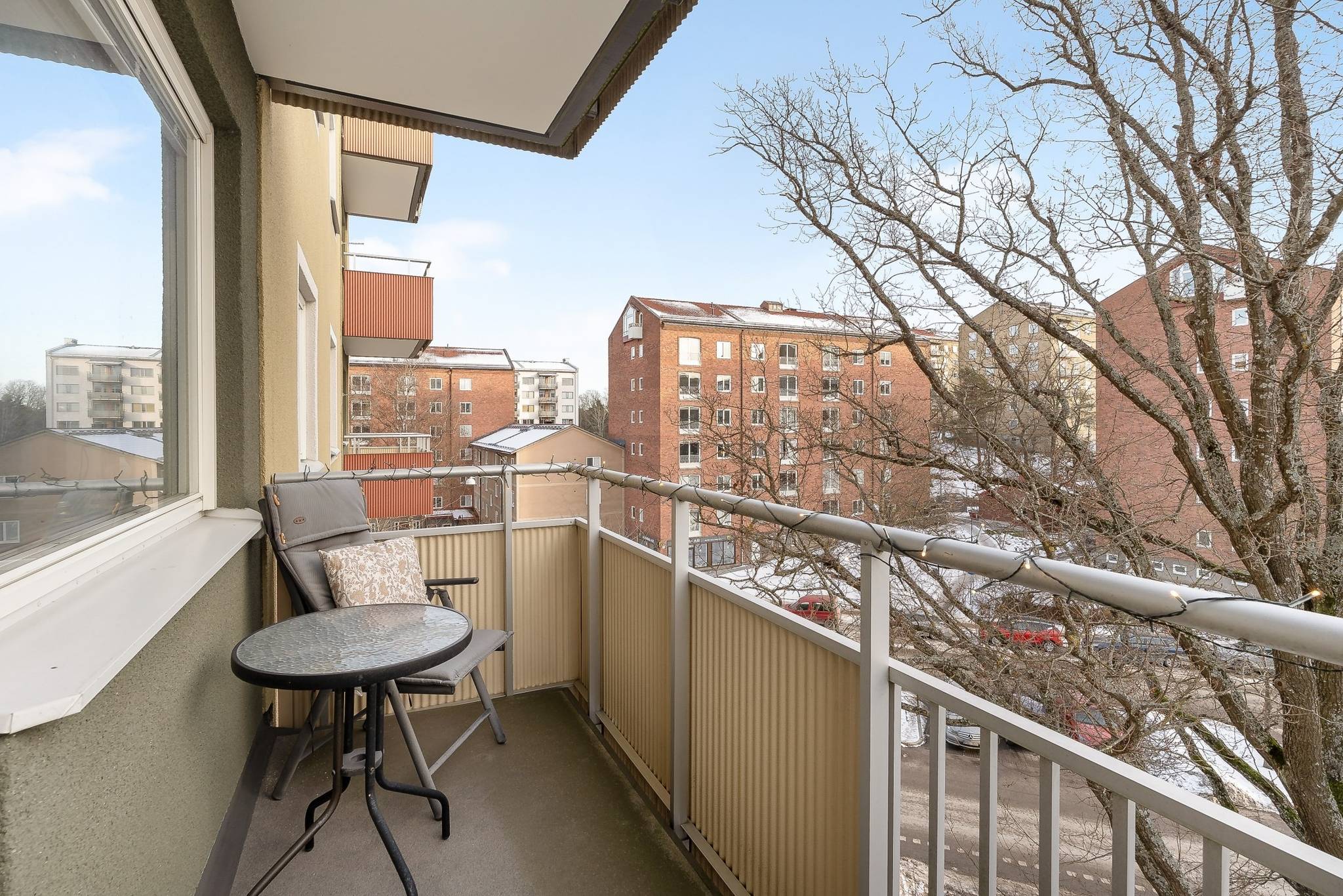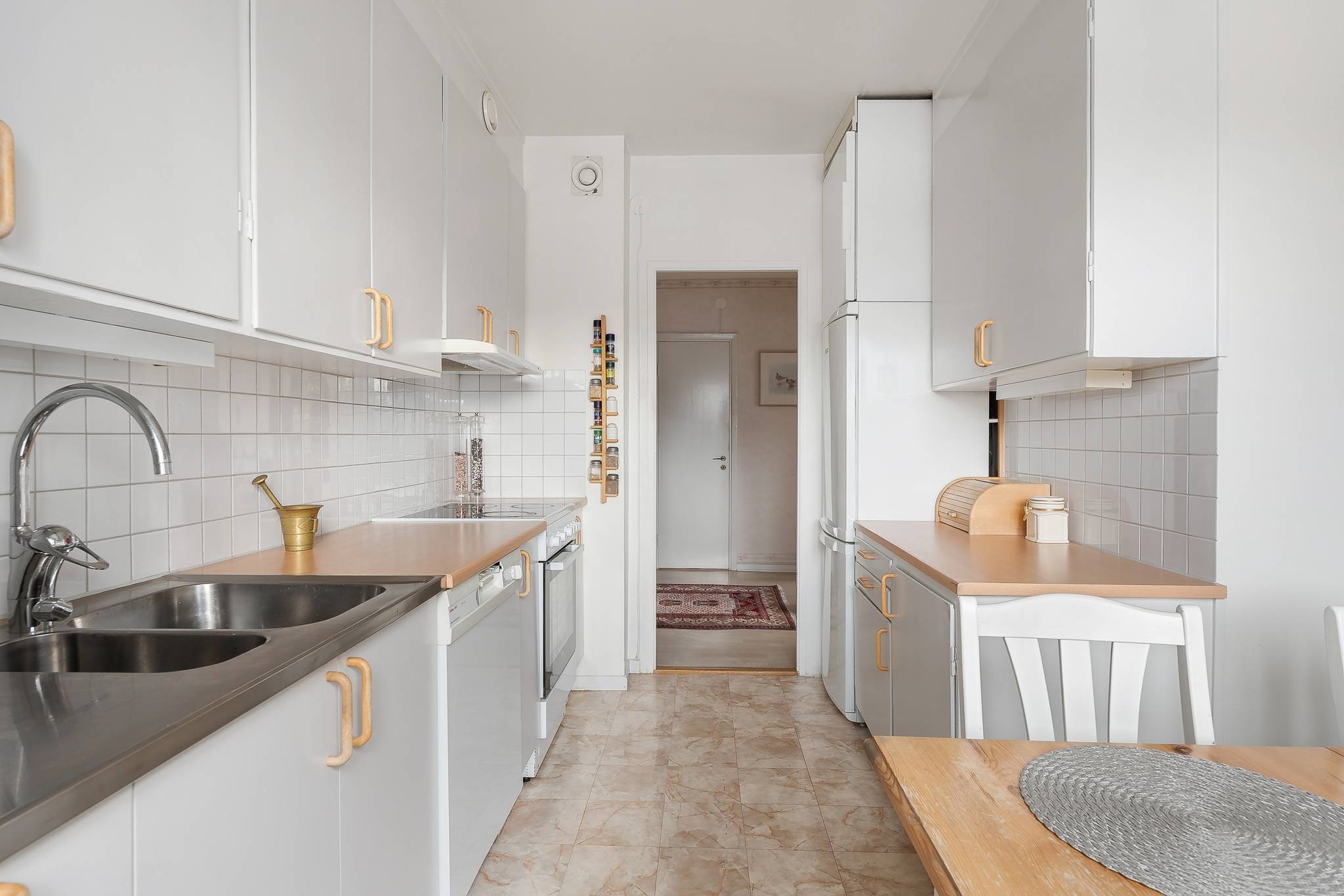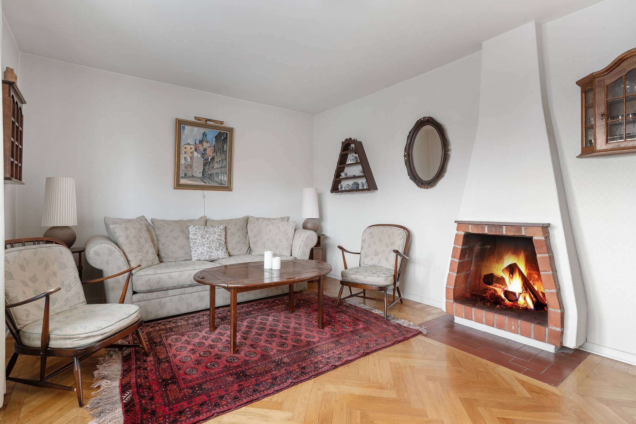 - Fungerande öppen spis - Balkong i soligt söderläge - Ljust och insynsskyddat läge - Två rymliga sovrum - Stambytt 2013 - Mycket stabil brf - låg avgift och lågt belånad - Direkt utanför porten finns tunnelbanestationen Näckrosen - Ett stenkast från matbutiker, bussar och annan service Här presenteras en välplanerad och ljus 3:a om 75 kvm på våning 4, med generösa sociala ytor, två sovrum och en härlig balkong i söderläge som bjuder på sol stora delar av dagen och in mot kvällen. Redan i hallen möts du av goda avhängningsmöjligheter och förvaring som skapar ett välkomnande och prydligt första intryck. I direkt anslutning finns ett praktiskt och stambytt badrum (2013) med dusch, wc och handfat. Bostaden erbjuder två rofyllda sovrum i bra storlek – perfekt som barnrum, gästrum eller hemmakontor. Från den funktionella innerhallen nås en rymlig klädkammare med utmärkta förvaringsmöjligheter. Förvaringen kompletteras dessutom av ett större vindsförråd samt ett matkällarförråd. Det stilrena köket är smart planerat med generösa arbetsytor, diskmaskin samt kyl och frys. Här finns gott om plats för både matlagning och förvaring, liksom en naturlig yta för matbordet med grönskande utsikt genom fönstret. Vardagsrummet är luftigt och lättmöblerat med plats för både soffgrupp och tv-möbel. Den stämningsfulla eldstaden blir en naturlig samlingspunkt under årets kallare månader och bidrar till extra trivsel. Härifrån nås även bostadens balkong i söderläge, där du kan njuta av soliga eftermiddagar, middagar i kvällssolen och fina vyer från våning 4. En genomtänkt planlösning, fint ljusinsläpp och inbjudande sällskapsytor gör detta till ett hem som passar både par och den lilla familjen – med bekvämt boende högt upp i huset och balkong med bästa solläge. Brf Strutsfarmen erbjuder cykelförråd, barnvagnsförråd samt tvättstuga med torkrum, utrustad med flera tvättmaskiner, torktumlare samt tork- och mangelrum. Stambyte av badrum, kök och el genomfördes 2013. Under 2016 installerades 3-glasfönster och fasaden renoverades. Föreningen har låg månadsavgift och låg belåning, vilket ger en stabil och trygg boendemiljö. Högst upp i huset finns föreningens gemensamma terrass som smidigt bokas inför användning!26 images