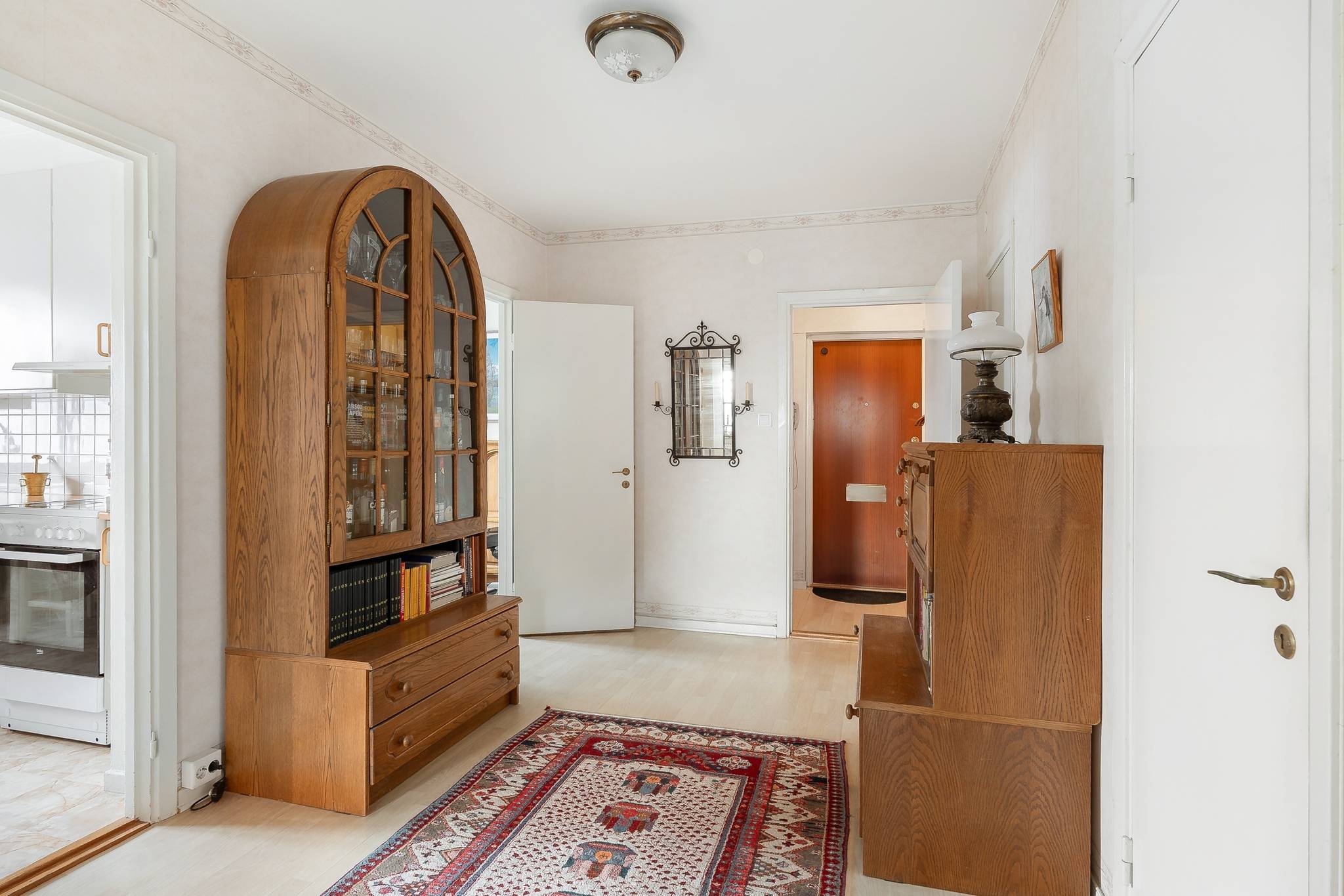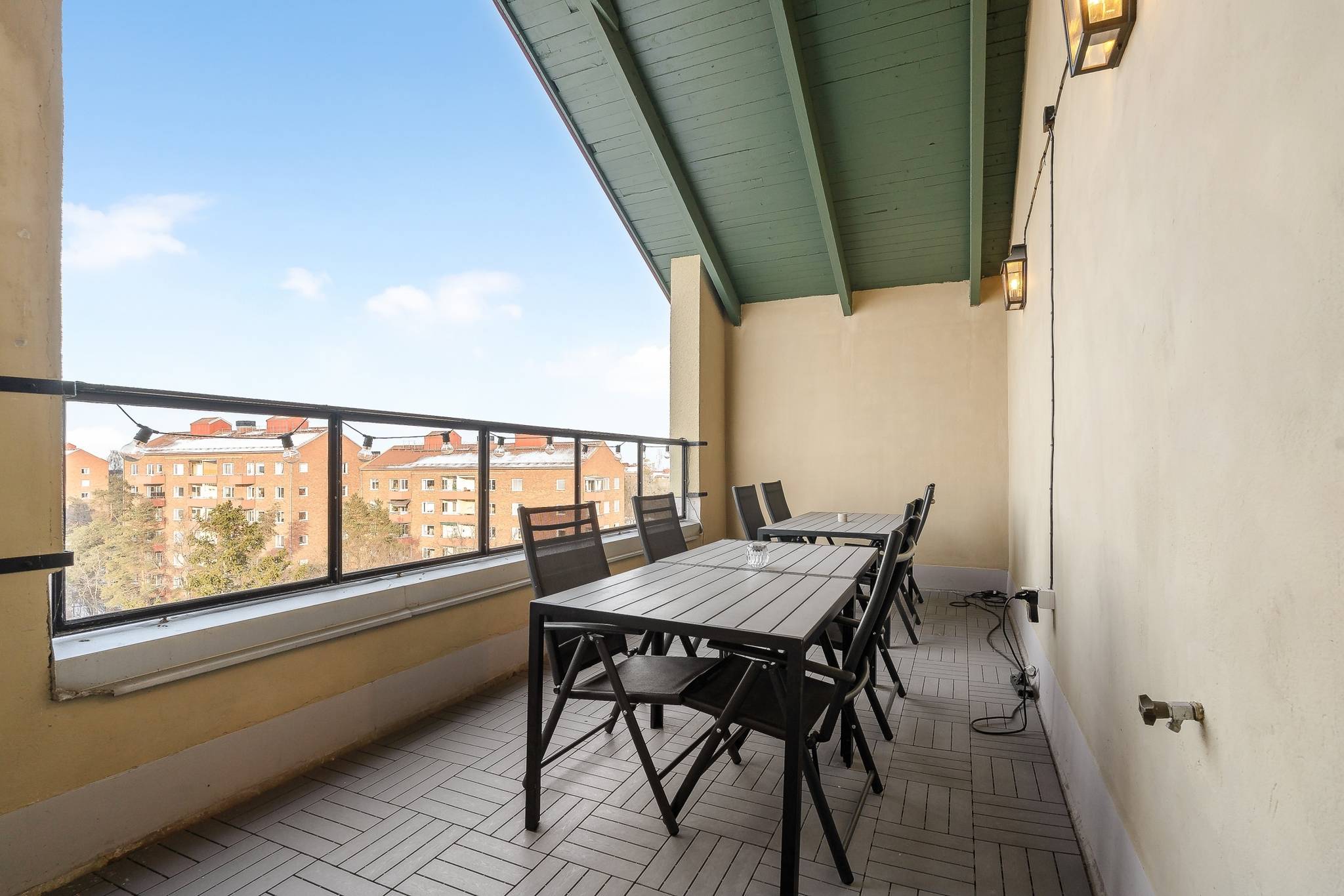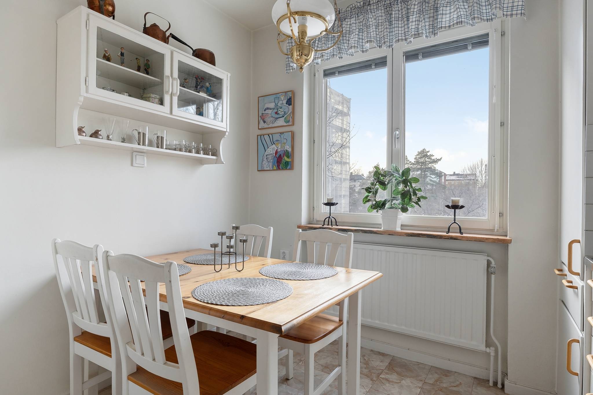 - Fungerande öppen spis - Balkong i soligt söderläge - Ljust och insynsskyddat läge - Två rymliga sovrum - Stambytt 2013 - Mycket stabil brf - låg avgift och lågt belånad - Direkt utanför porten finns tunnelbanestationen Näckrosen - Ett stenkast från matbutiker, bussar och annan service Här presenteras en välplanerad och ljus 3:a om 75 kvm på våning 4, med generösa sociala ytor, två sovrum och en härlig balkong i söderläge som bjuder på sol stora delar av dagen och in mot kvällen. Redan i hallen möts du av goda avhängningsmöjligheter och förvaring som skapar ett välkomnande och prydligt första intryck. I direkt anslutning finns ett praktiskt och stambytt badrum (2013) med dusch, wc och handfat. Bostaden erbjuder två rofyllda sovrum i bra storlek – perfekt som barnrum, gästrum eller hemmakontor. Från den funktionella innerhallen nås en rymlig klädkammare med utmärkta förvaringsmöjligheter. Förvaringen kompletteras dessutom av ett större vindsförråd samt ett matkällarförråd. Det stilrena köket är smart planerat med generösa arbetsytor, diskmaskin samt kyl och frys. Här finns gott om plats för både matlagning och förvaring, liksom en naturlig yta för matbordet med grönskande utsikt genom fönstret. Vardagsrummet är luftigt och lättmöblerat med plats för både soffgrupp och tv-möbel. Den stämningsfulla eldstaden blir en naturlig samlingspunkt under årets kallare månader och bidrar till extra trivsel. Härifrån nås även bostadens balkong i söderläge, där du kan njuta av soliga eftermiddagar, middagar i kvällssolen och fina vyer från våning 4. En genomtänkt planlösning, fint ljusinsläpp och inbjudande sällskapsytor gör detta till ett hem som passar både par och den lilla familjen – med bekvämt boende högt upp i huset och balkong med bästa solläge. Brf Strutsfarmen erbjuder cykelförråd, barnvagnsförråd samt tvättstuga med torkrum, utrustad med flera tvättmaskiner, torktumlare samt tork- och mangelrum. Stambyte av badrum, kök och el genomfördes 2013. Under 2016 installerades 3-glasfönster och fasaden renoverades. Föreningen har låg månadsavgift och låg belåning, vilket ger en stabil och trygg boendemiljö. Högst upp i huset finns föreningens gemensamma terrass som smidigt bokas inför användning!26 images