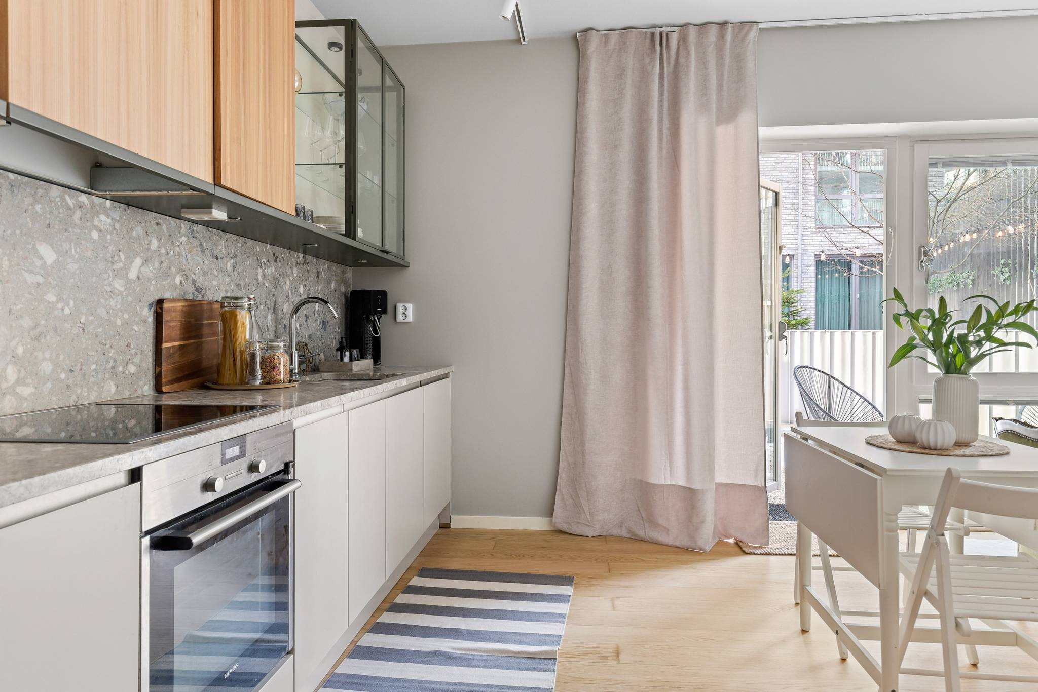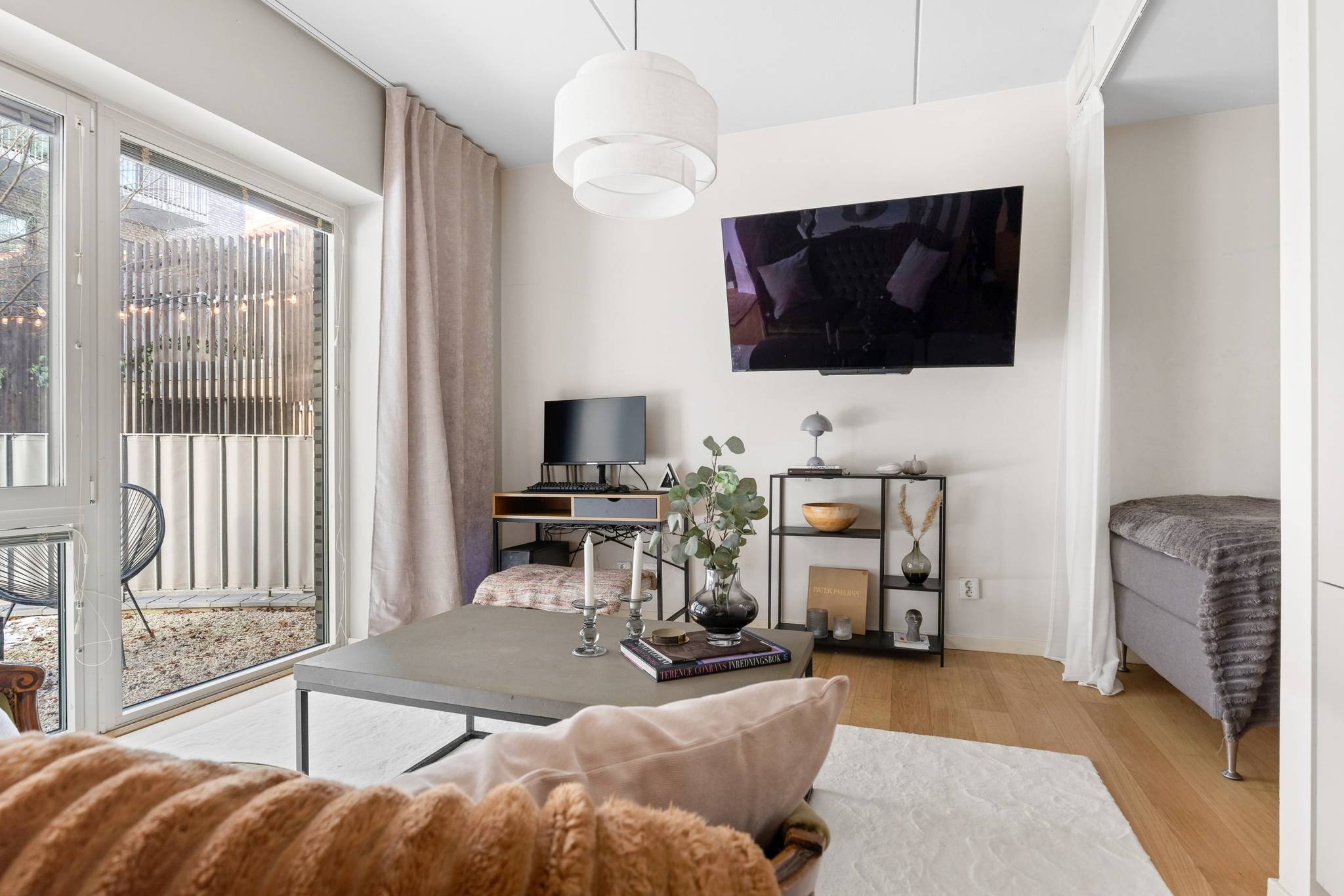 Wow-känslan infinner sig direkt när du kliver in i trapphuset till denna spektakulära fastighet. Med stor omsorg om stil, design och detaljer har Tobin Properties skapat ett exklusivt konceptboende för dig som ställer höga krav på ditt hem. Lägenheten utmärks av genomtänkta och påkostade materialval som tillsammans med generös takhöjd om hela 2,80 meter skapar en fantastisk rymd och ett svårslaget ljusinsläpp. Specialdesignade kopparlampor, framtagna unikt för huset, ingår och förstärker bostadens karaktär. Köket och vardagsrummet möts i en öppen och social planlösning där möbleringen faller sig naturlig och inbjuder till både vardagsliv och umgänge. Längs bostaden sträcker sig en stor, privat uteplats som blir en självklar förlängning av hemmet under årets varmare månader. Hallen erbjuder gott om förvaring och bostaden avslutas med ett rymligt, stilrent badrum med generösa förvaringsmöjligheter samt praktisk kombimaskin. Ett hem att trivas i – varmt välkommen att uppleva det på plats! I huset har medlemmarna tillgång till en läcker takterass med orangeri och i markplan finns festlokal och övernattningslägenhet, som liksom övriga huset håller riktigt hög klass. Läget på Vintergatan kan inte bli bättre. Bostaden är centralt belägen men ändå väldigt lugn och skyddad från trafik och buller. På 5 minuter når du det krogtäta Sundbyberg om du vill slippa matlagningen eller ta en fikapaus på något av de trevliga caféerna. I närområdet finns flertalet matvaruaffärer, skola samt förskolor. För naturälskaren finns fina promenadvägar runt Lötsjön och Råstasjön och för sportfantasten finns simhall, sporthall, gym, ridstall samt Ursviks motionsområde inom bekvämt avstånd. Även Marabouparken och Tornparken ligger på nära avstånd. Och när det gäller kommunikationer lovar vi att inte heller göra er besvikna. Med Citybanan är Odenplan knappt 10 min bort. Här finns även T-bana, tvärbanan, fjärrtåg och bussar som nås på fem minuter med en rask promenad. Bromma flygplats ligger 3 hållplatser bort med buss!26 images