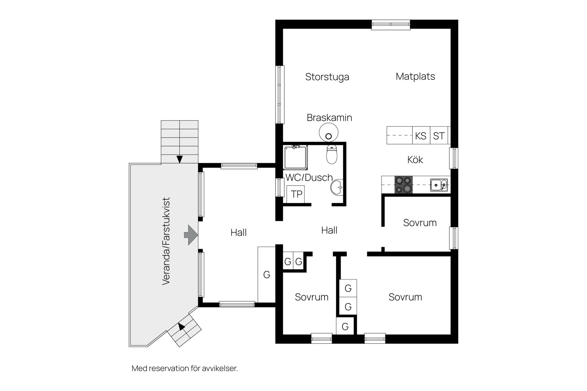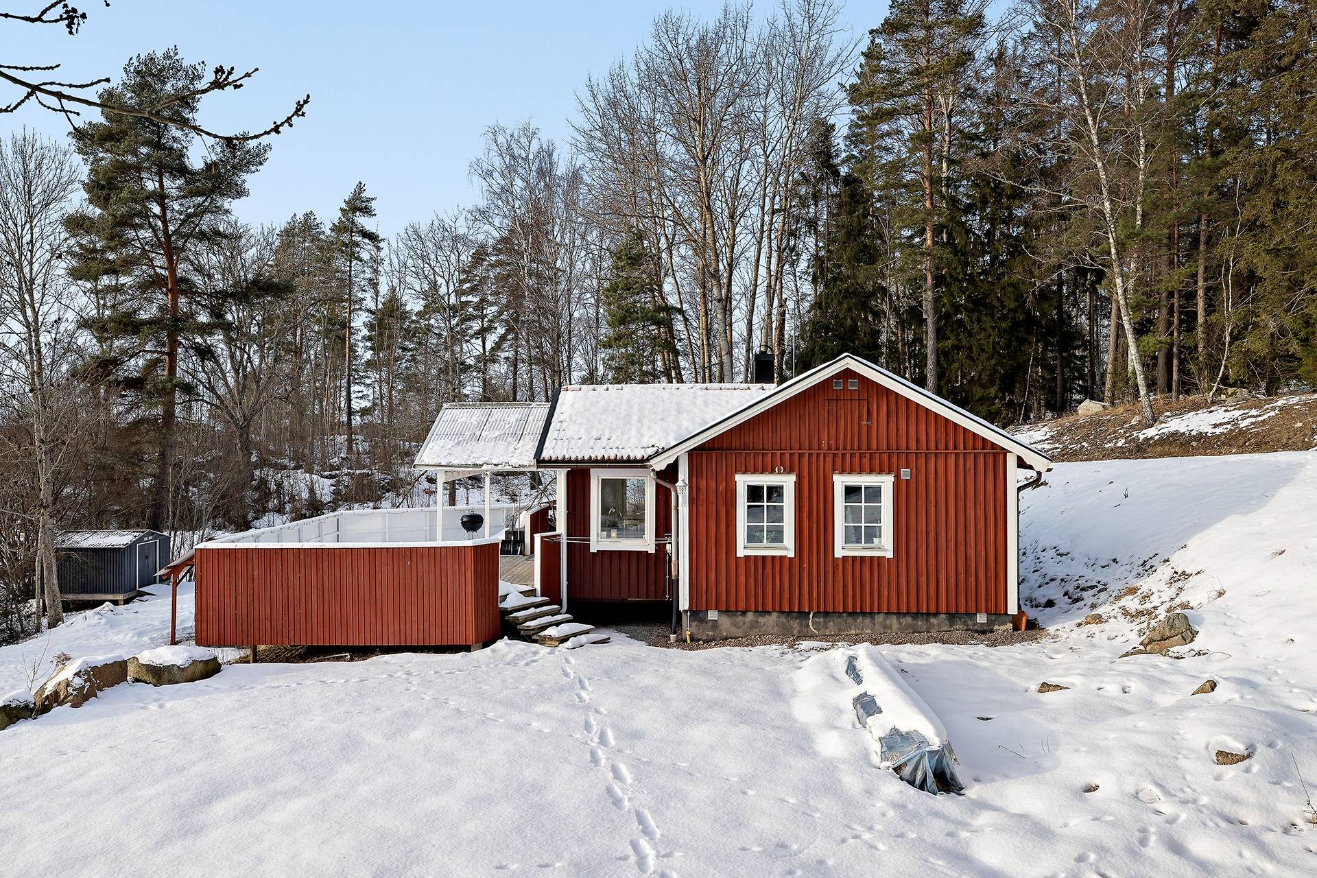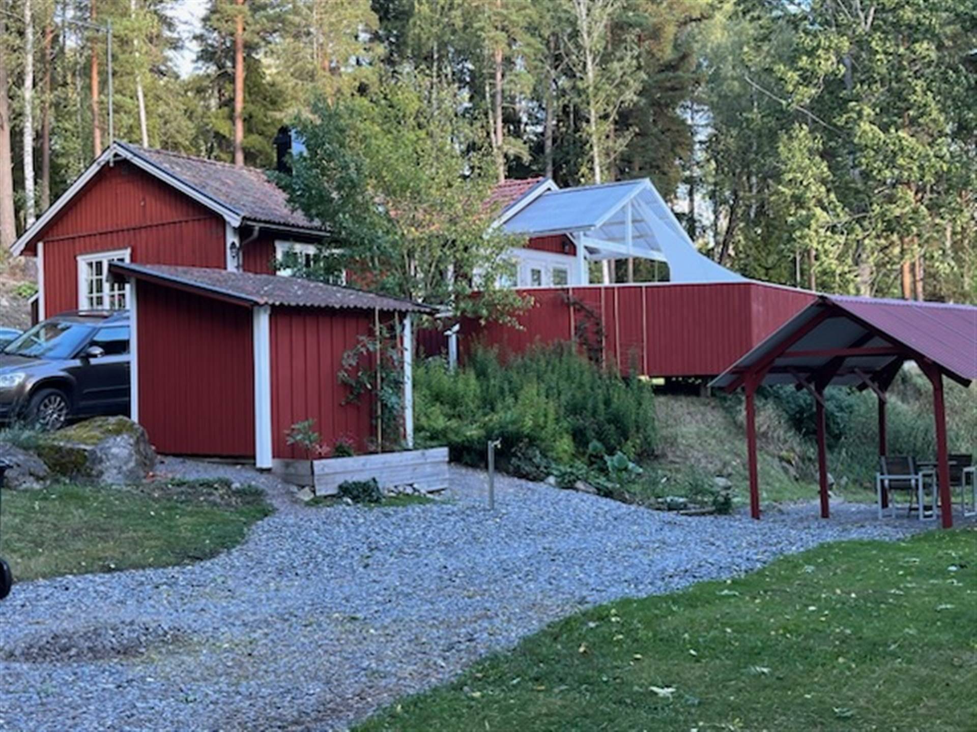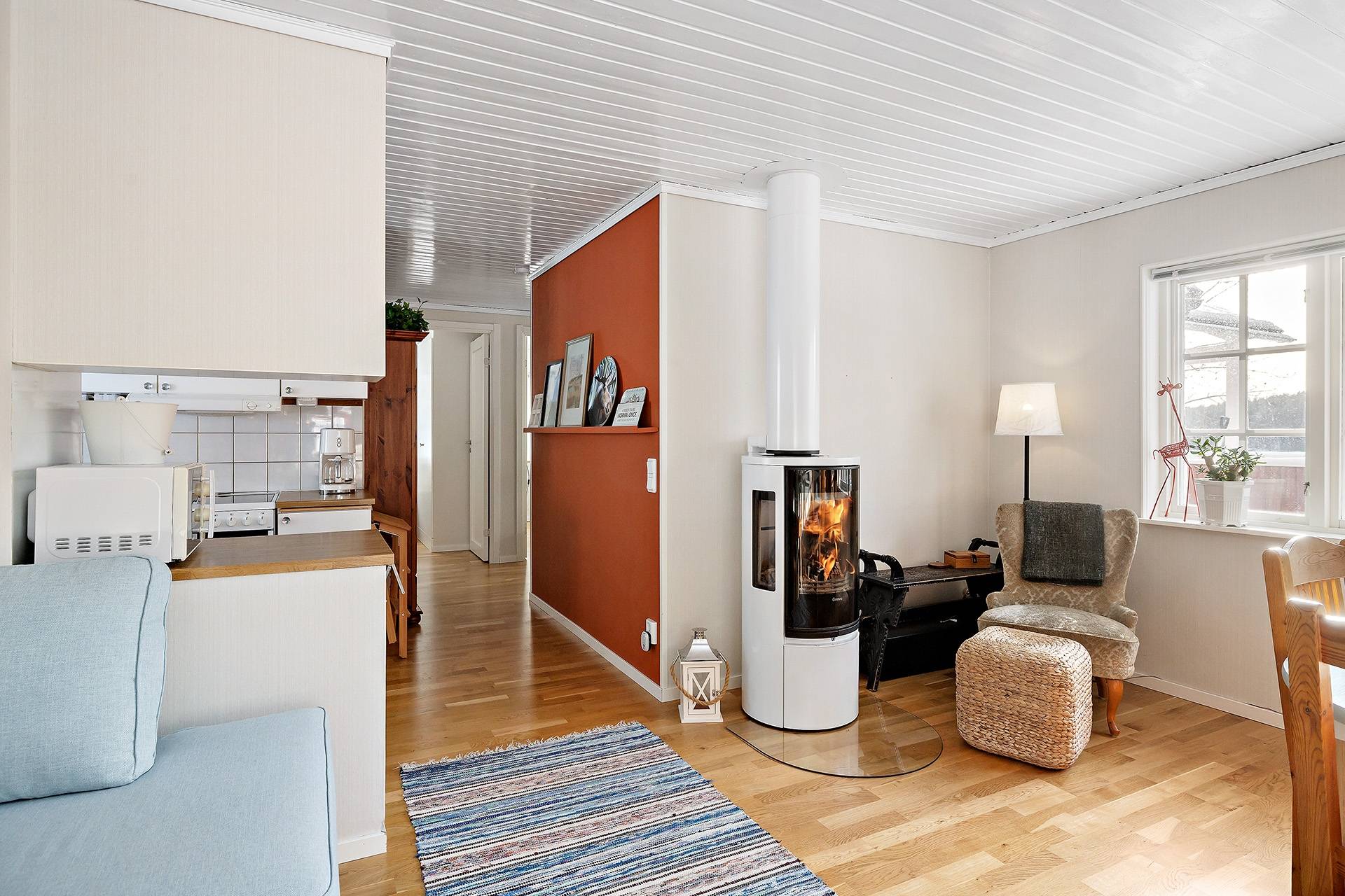 Välkommen till ett trivsamt enplanshus i lantlig miljö med fri utsikt över åker och äng. Här bor du med lugnt och enskilt läge med öppna vyer samtidigt som huset erbjuder en praktisk och social planlösning. Bostaden har en öppen planlösning mellan vardagsrum och matplats som skapar generösa sällskapsytor och ett fint ljusinsläpp. I vardagsrummet finns en öppen spis som bidrar med både värme och trivsel. Det finns tre sovrum, en stor hall, ett praktiskt arbetskök samt ett duschrum med tvättpelare. Det klassiska röda huset med vita knutar ger en tidlös och omtyckt karaktär. På tomten finns även förråd och carport som ger praktiska förvaringsmöjligheter. Uteplats som precis som huset ligger på en höjd, med fin utsikt över omgivningarna. Ett bekvämt boende i ett plan – perfekt för dig som söker ett lugnt läge med utsikt över öppna landskap.25 images