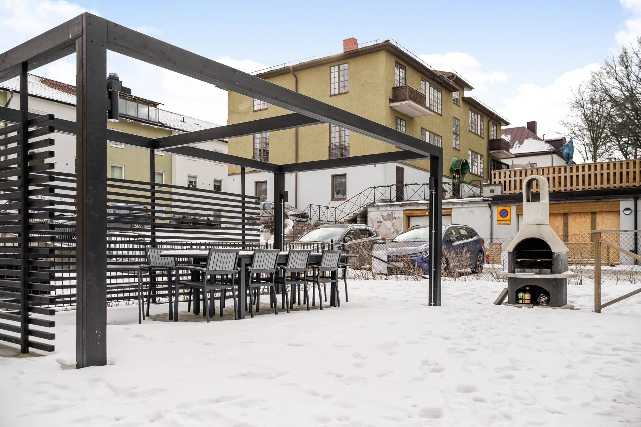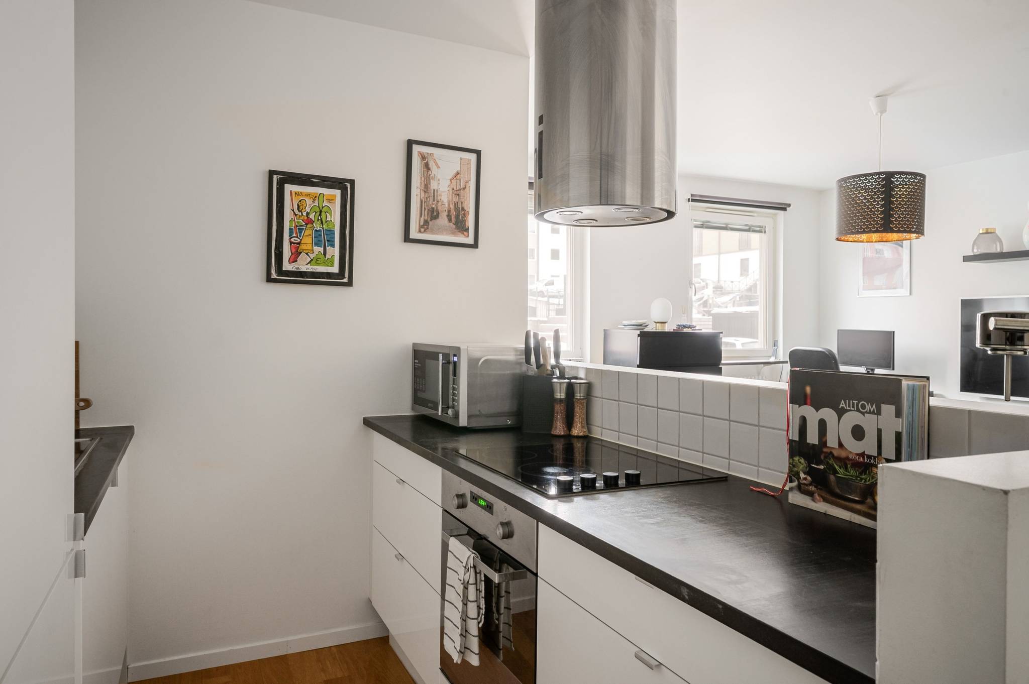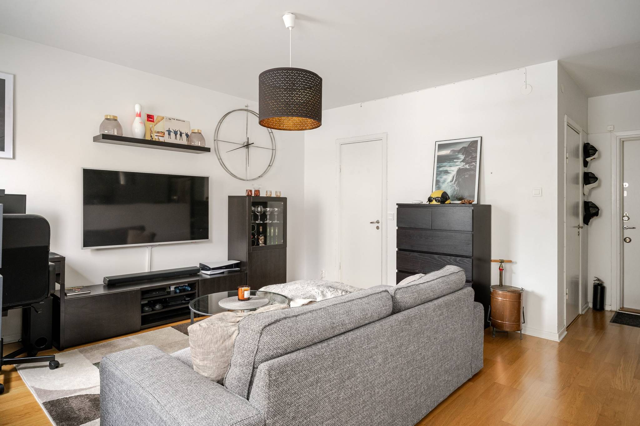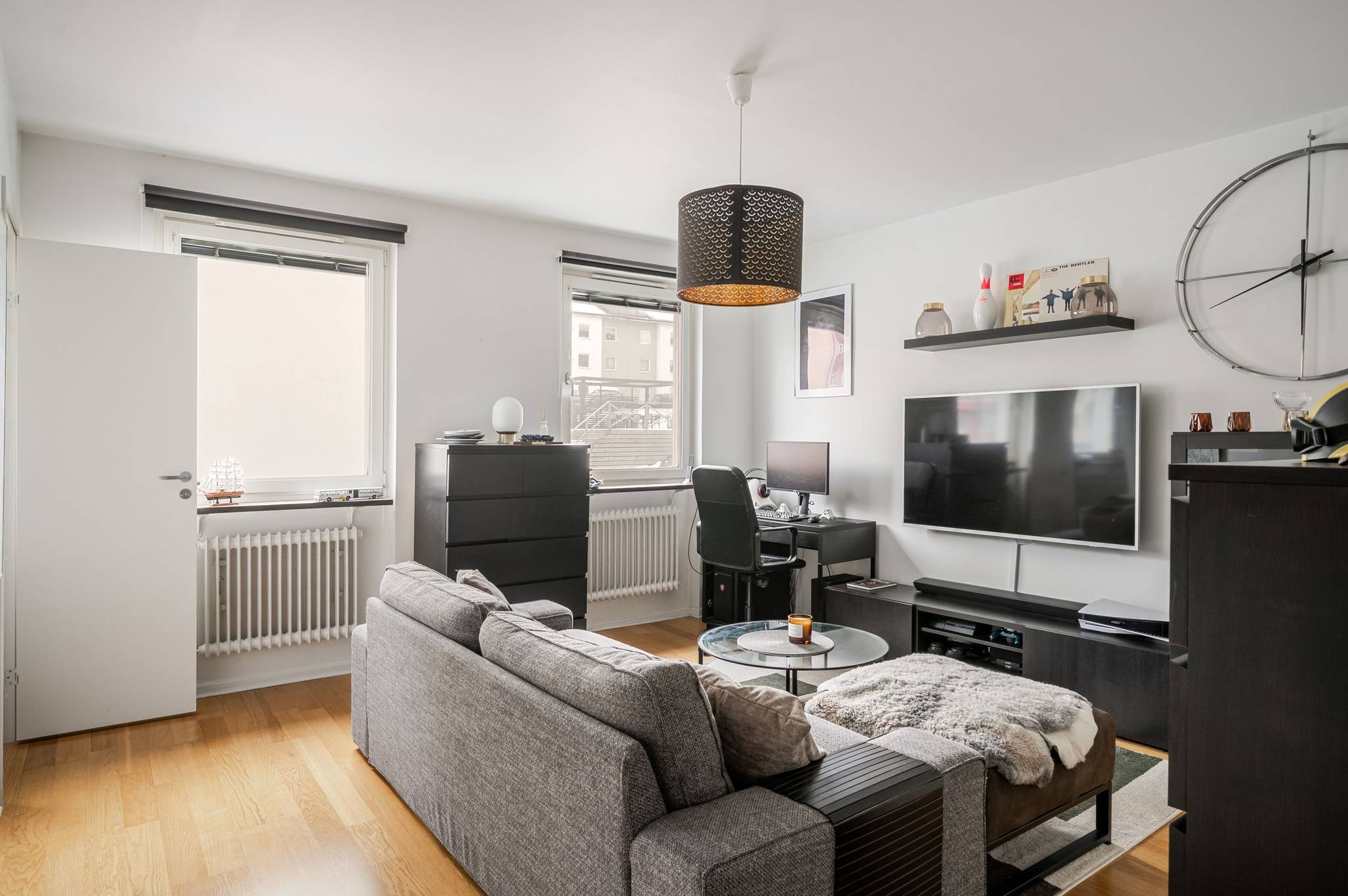 Välkommen till en stilren och genomtänkt bostad med modern känsla och smart planlösning. Redan i entrén möts du av generösa ytor med gott om plats för avhängning och förvaring. Till vänster öppnar bostaden upp sig mot ett modernt kök med köksö som naturligt binder samman kök och vardagsrum i en öppen och social planlösning – perfekt för både vardag och umgänge. Vardagsrummet präglas av två stora fönster som släpper in rikligt med ljus, samtidigt som den begränsade insynen skapar en privat och trivsam atmosfär. Det renoverade badrummet är helkaklat och modernt utfört med golvvärme och spotlights i tak, vilket ger både komfort och en exklusiv känsla. Förvaringen är väl tilltagen med en stor garderob smidigt placerad med access från vardagsrummet. Sovrummet är rofyllt och harmoniskt, med samma fina ljusinsläpp men utan insyn mot gata – en perfekt plats för återhämtning. En lättmöblerad bostad med bra planlösning, goda ljusförhållanden och ett privat läge. BRF Flustret 4 är en äkta bostadsrättsförening belägen i Solna. Föreningen registrerades år 2007 och omfattar cirka 41 lägenheter, varav en mindre del är hyresrätt. Föreningen äger marken och består av två hus längs Södra Långgatan, byggda 1947 med en blandning av lägenheter för olika behov. Ekonomin bedöms som mycket stabil med betyget A hos AllaBRF. Detta indikerar god långsiktig hållbarhet. Föreningen erbjuder medlemmarna tillgång till gemensamma utrymmen och en trivsam innergård med bland annat gräsmatta samt plats för cyklar och barnvagnar.14 images