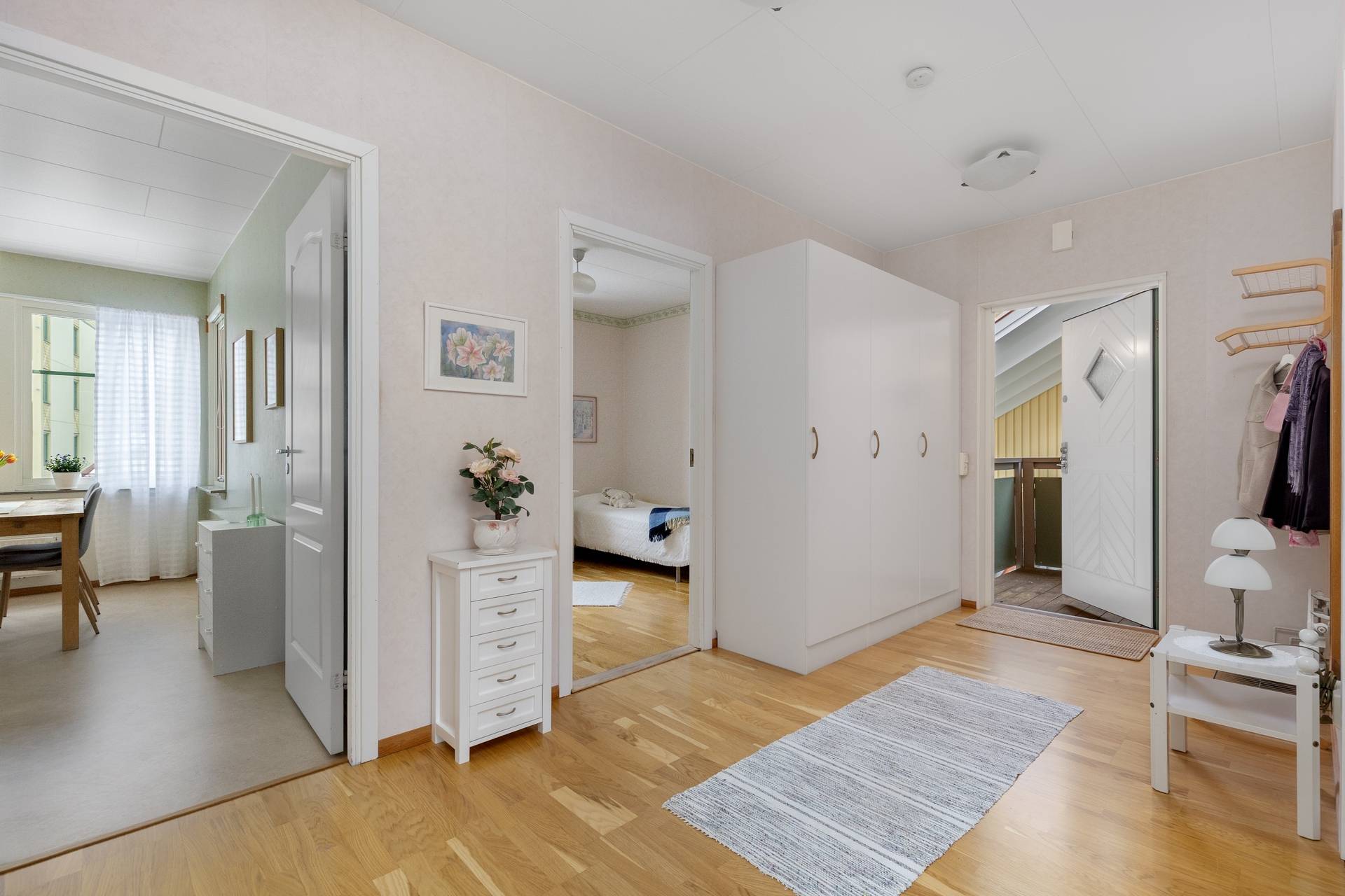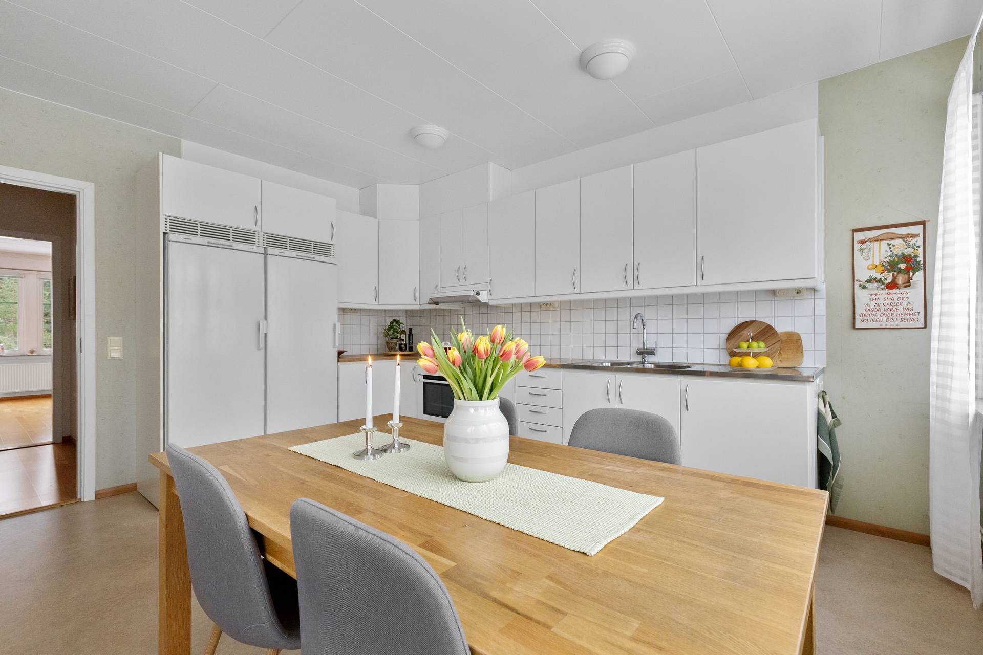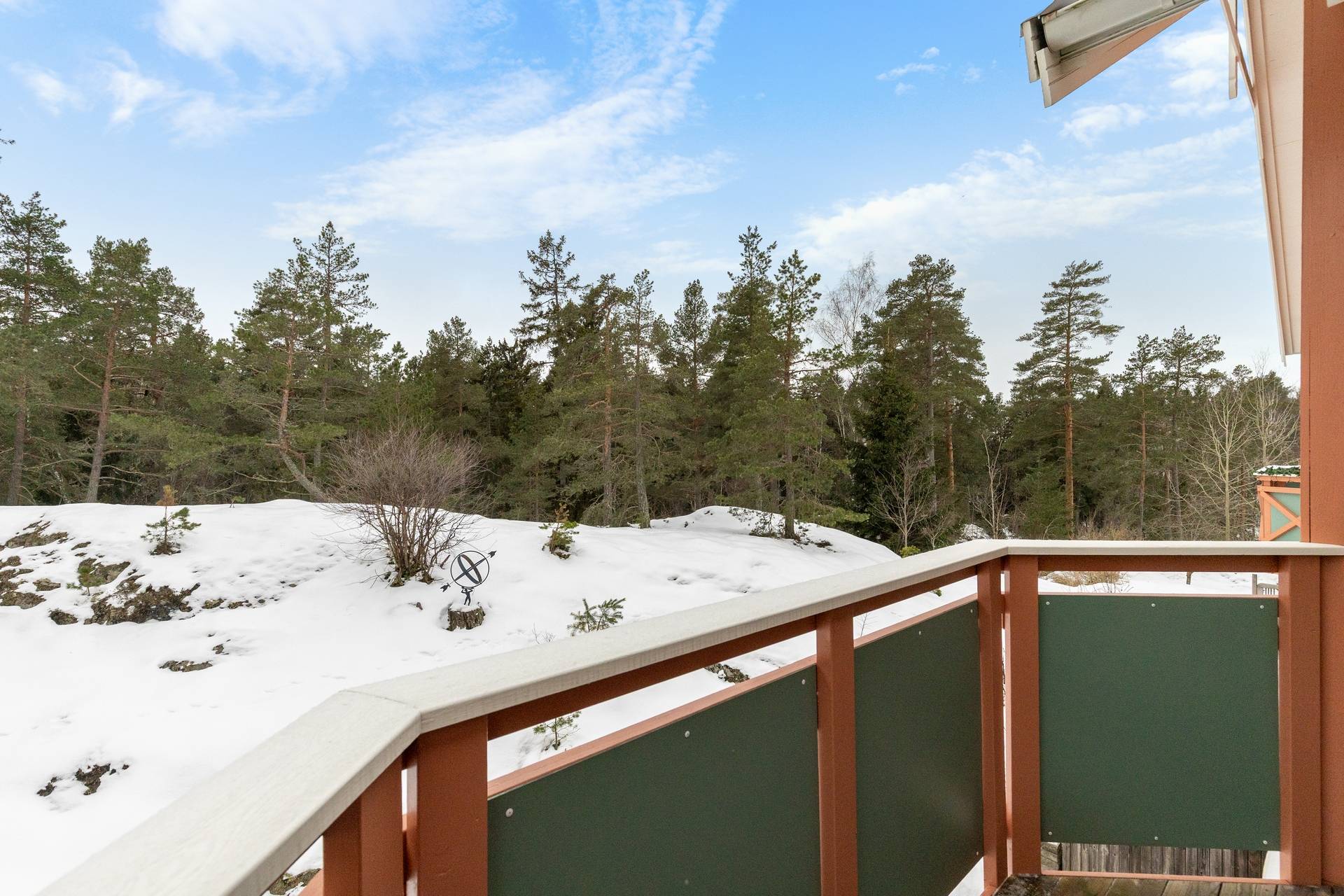 På en höjd nära ett skogsområde i det mysiga stationssamhället Rönninge finns denna ljusa och trivsamma trerummare om 76 kvm – ett hem för dig som vill ha lugnet nära naturen, men samtidigt ha närheten till stadens puls. Här bor du omgiven av skogsstigar, sjöar och vacker natur, samtidigt som centrum och pendeltåg ligger på bekvämt promenadavstånd. Husen som byggdes 2003 har en vacker utvändig karaktär från sekelskiftet som smälter bra in i den naturnära miljön. Lägenheten är belägen en våning upp med en stor möblerbar balkong i sydvästläge som ligger mot ett mindre skogsparti. Här kan du njuta av eftermiddagssolen. Bostaden är välplanerad med fördelade ytor mellan sovrummen, kök och vardagsrummet. Takhöjd på 2,60 ger en rymlig känsla – perfekt för såväl vardagsliv som sociala tillställningar. Praktisk placering av förråd direkt utanför entrédörren. Parkeringsplats med laddstolpe ingår i avgiften. Mycket omtyckt område och välskött bostadsrättsförening. Från Rönninge station tar du dig till Stockholm Centralstation på endast 31 minuter – en perfekt kombination av naturnära lugn och en bra och smidig pendling. Ett hem att trivas i och att längta hem till.26 images