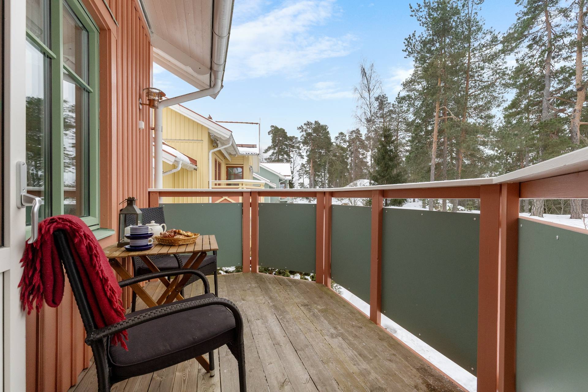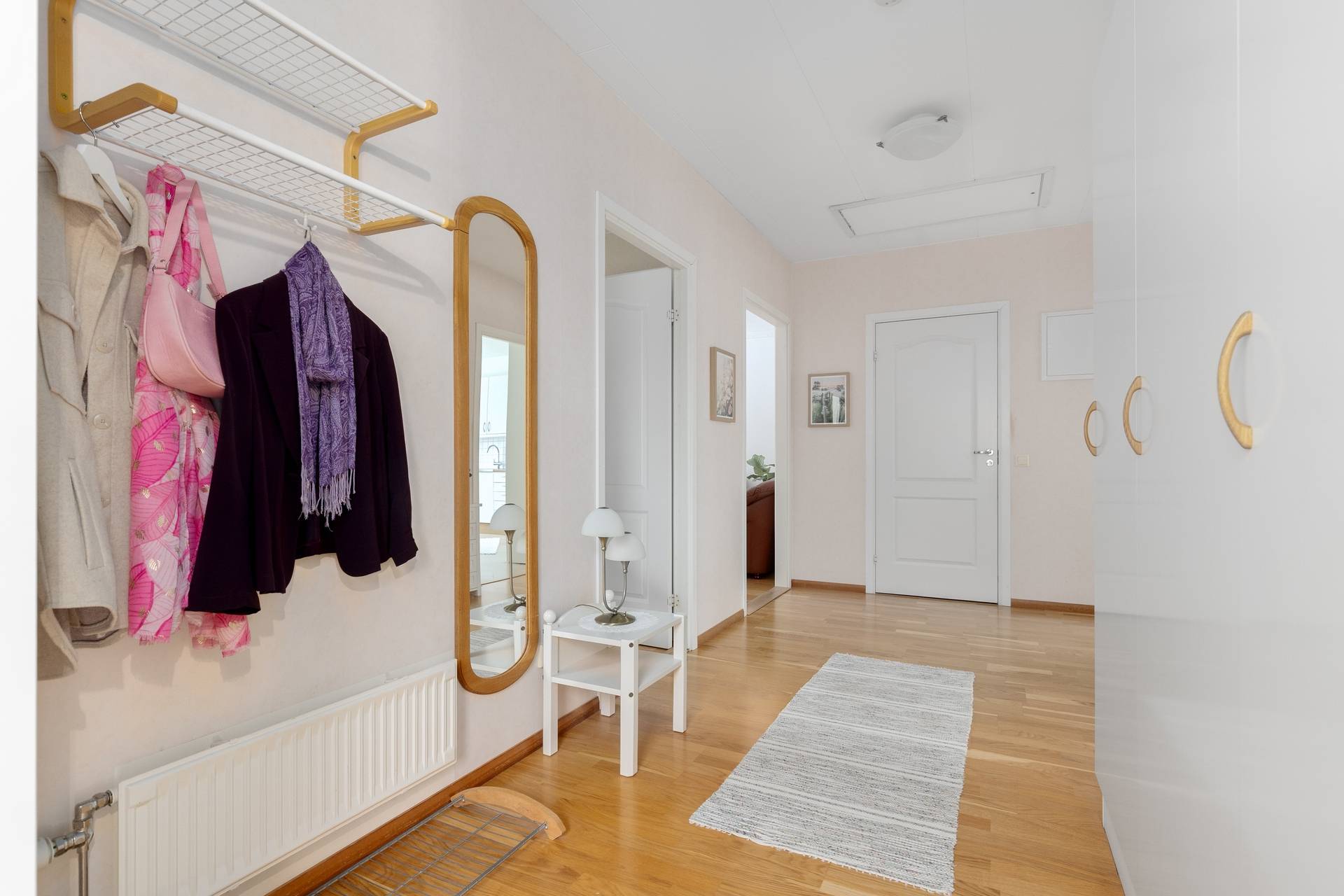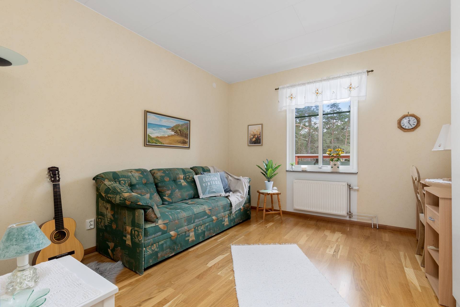 På en höjd nära ett skogsområde i det mysiga stationssamhället Rönninge finns denna ljusa och trivsamma trerummare om 76 kvm – ett hem för dig som vill ha lugnet nära naturen, men samtidigt ha närheten till stadens puls. Här bor du omgiven av skogsstigar, sjöar och vacker natur, samtidigt som centrum och pendeltåg ligger på bekvämt promenadavstånd. Husen som byggdes 2003 har en vacker utvändig karaktär från sekelskiftet som smälter bra in i den naturnära miljön. Lägenheten är belägen en våning upp med en stor möblerbar balkong i sydvästläge som ligger mot ett mindre skogsparti. Här kan du njuta av eftermiddagssolen. Bostaden är välplanerad med fördelade ytor mellan sovrummen, kök och vardagsrummet. Takhöjd på 2,60 ger en rymlig känsla – perfekt för såväl vardagsliv som sociala tillställningar. Praktisk placering av förråd direkt utanför entrédörren. Parkeringsplats med laddstolpe ingår i avgiften. Mycket omtyckt område och välskött bostadsrättsförening. Från Rönninge station tar du dig till Stockholm Centralstation på endast 31 minuter – en perfekt kombination av naturnära lugn och en bra och smidig pendling. Ett hem att trivas i och att längta hem till.26 images