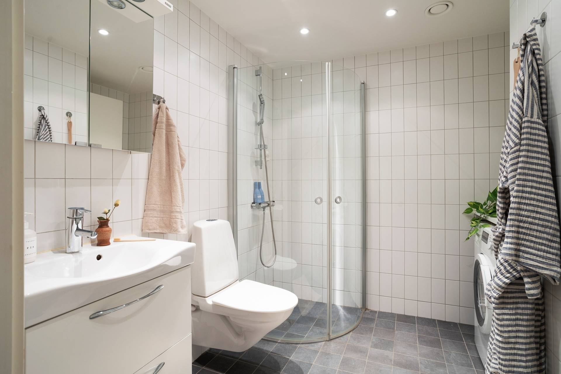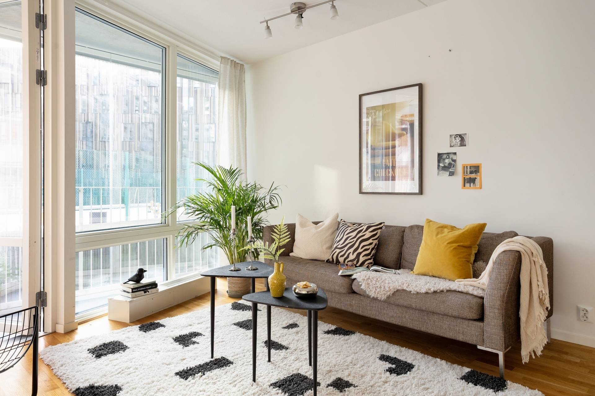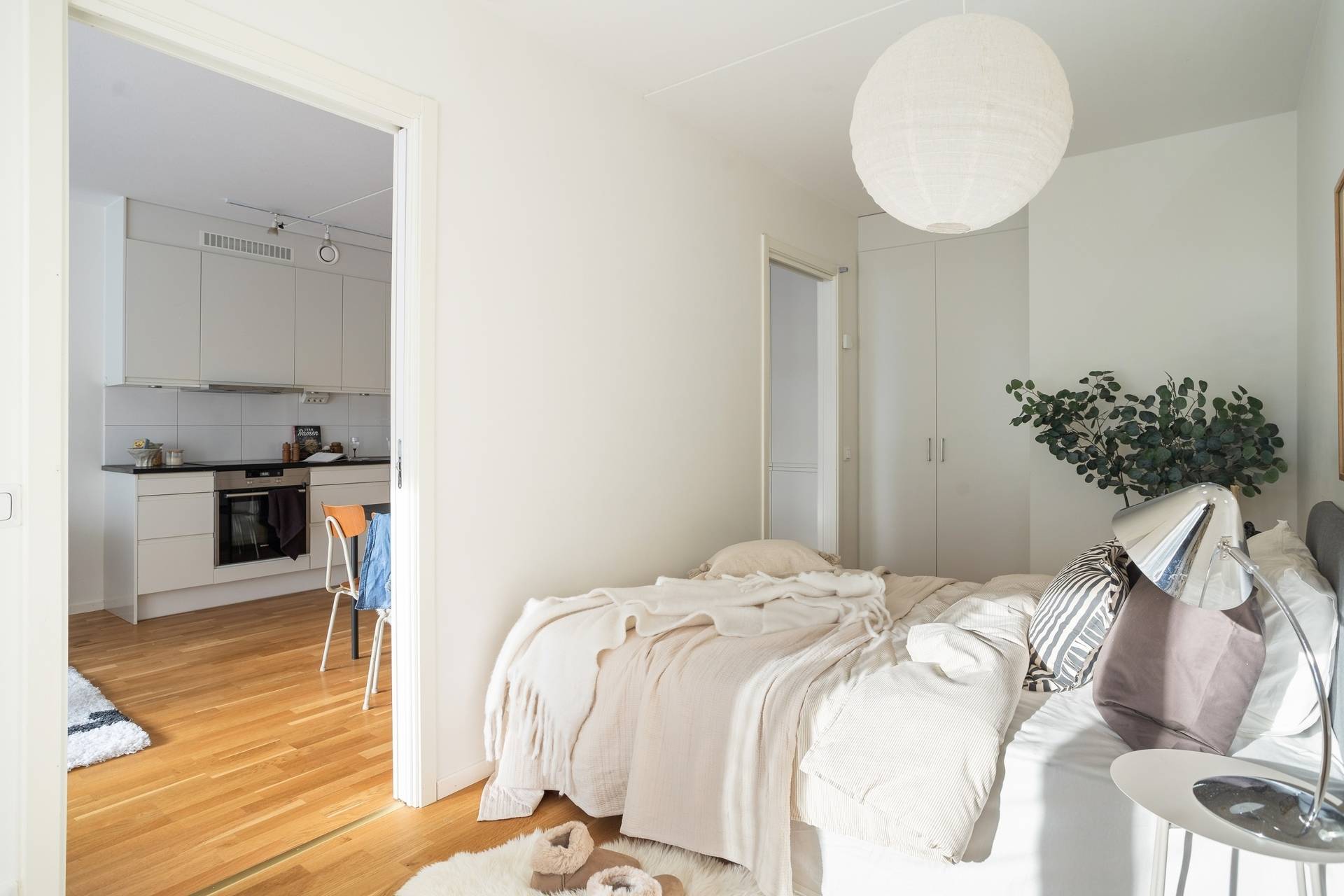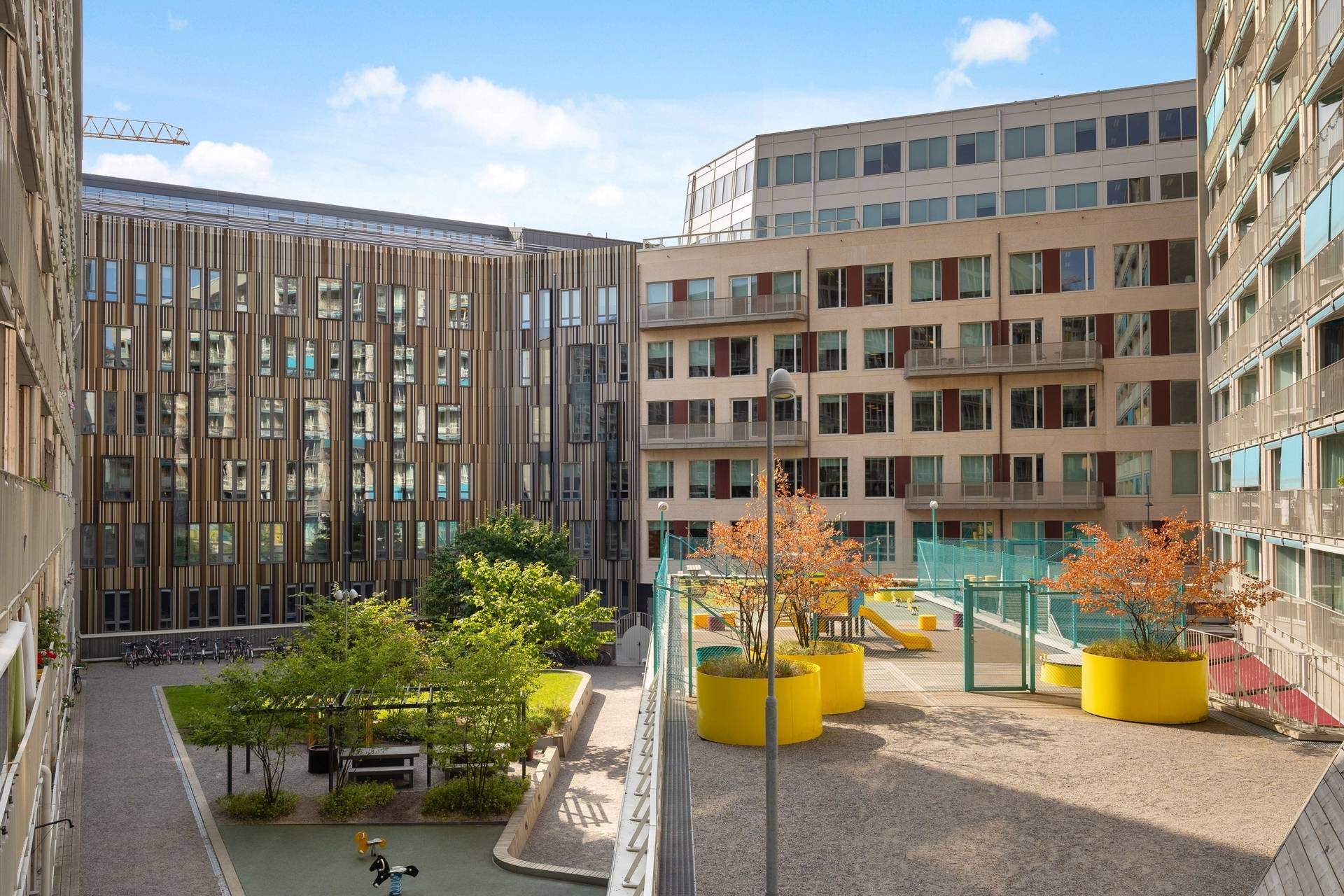 Redan vid första steget in möts du av ett imponerande ljusflöde från de stora fönsterpartierna som sträcker sig från golv till tak. Tillsammans med den öppna planlösningen skapas en luftig och inbjudande atmosfär där vardagsrum och kök samspelar i en social och trivsam helhet. De dubbla glasdörrarna leder ut till den generösa balkongen – en självklar förlängning av bostaden under årets varmare månader. Planlösningen är både genomtänkt och flexibel med goda förvaringsmöjligheter, egen tvättdel i badrummet samt ett rymligt sovrum som med enkla medel kan delas av för att skapa ytterligare ett rum – perfekt som arbetsrum, barnrum eller walk-in-closet. Här bor du med ett centralt och bekvämt läge, där vardagen blir enkel med tunnelbanan och bussar runt hörnet, Lindhagens galleria med ICA Maxi, systembolag och service i närheten samt badbryggor och Mälarens strandpromenad bara en kort promenad bort. Föreningen är stabil och klimatsmart, äger marken och erbjuder garageplatser i källarplan som nås smidigt med hiss. Till bostaden hör även ett separat förråd. Välkommen hem!53 images