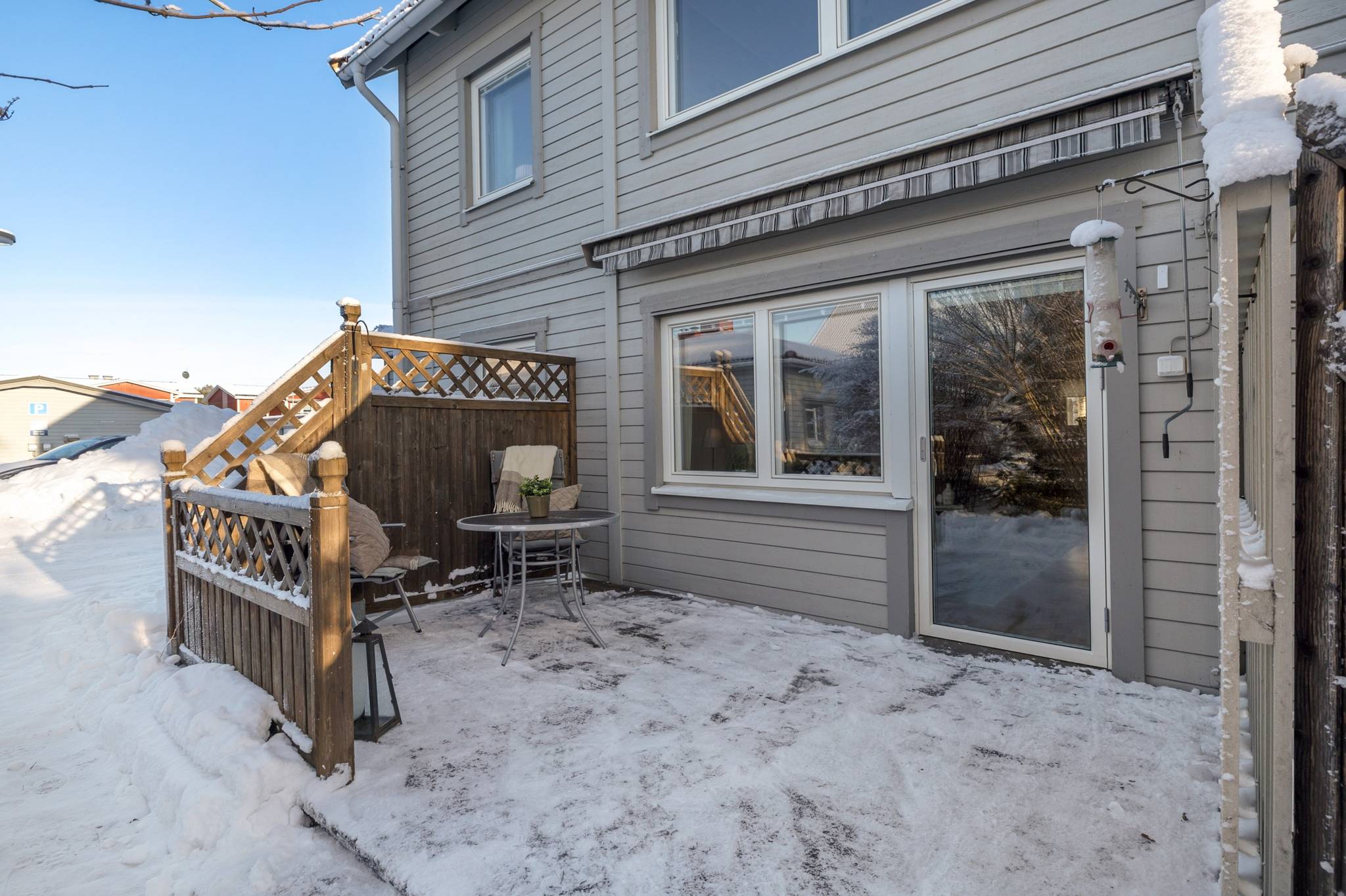 Välkommen till denna unika möjlighet att förvärva en välplanerade 3-rumslägenhet om 82,5 kvm i attraktivt gavelläge på markplan med egen ingång vilket bidrar till en mysig villakänsla. Denna lägenhet erbjuder flertalet mervärden som skiljer denna lägenhet från mängden såsom eget varmgarage med direkt access från bostaden med automatisk port och elbilsladdare, tillsammans två rymliga förråd i anslutning till garaget. Därtill finns en härlig altan i soligt läge. Invändigt möts du av en öppen och social planlösning mellan kök och vardagsrum. Det stora köket har gott om förvaring med både över- och underskåp samt generösa arbetsytor. Vardagsrummet som löper vidare från köket är lättmöblerat och har en glasad altandörr som leder ut till bostadens härliga trädäckade altan i soligt läge. Utöver det finns två trevliga sovrum med goda möbleringsmöjligheter för både säng och annat möblemang. Badrum med kakel och klinker praktiskt försedd med tvättmaskin. Ett bekvämt och lättillgängligt boende med genomtänkt planlösning som passar lika bra för dig som flyttar från villan eller för dig som vill njuta av villakänsla i ett smidigare format. Välkommen att boka dig till visning!24 images
