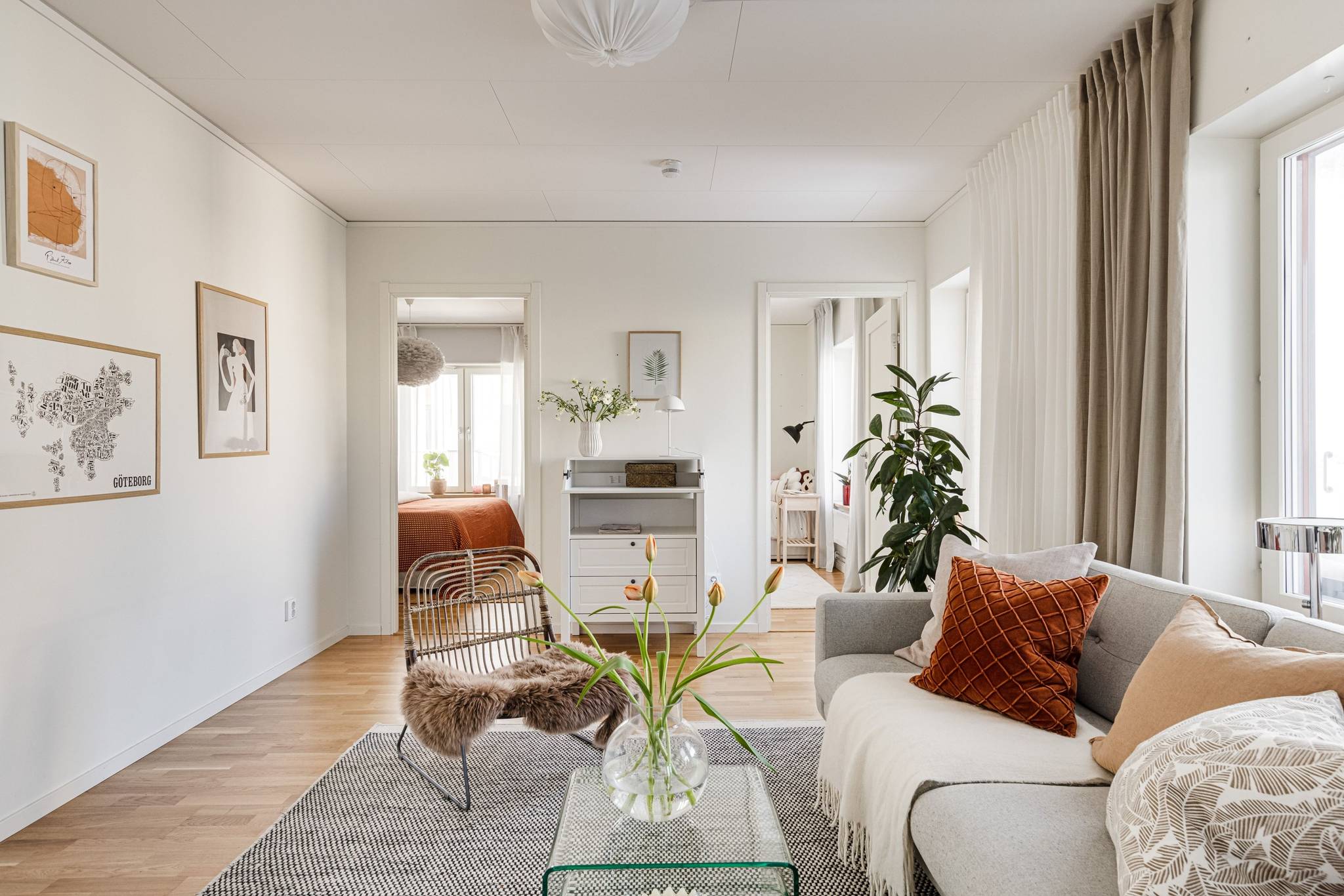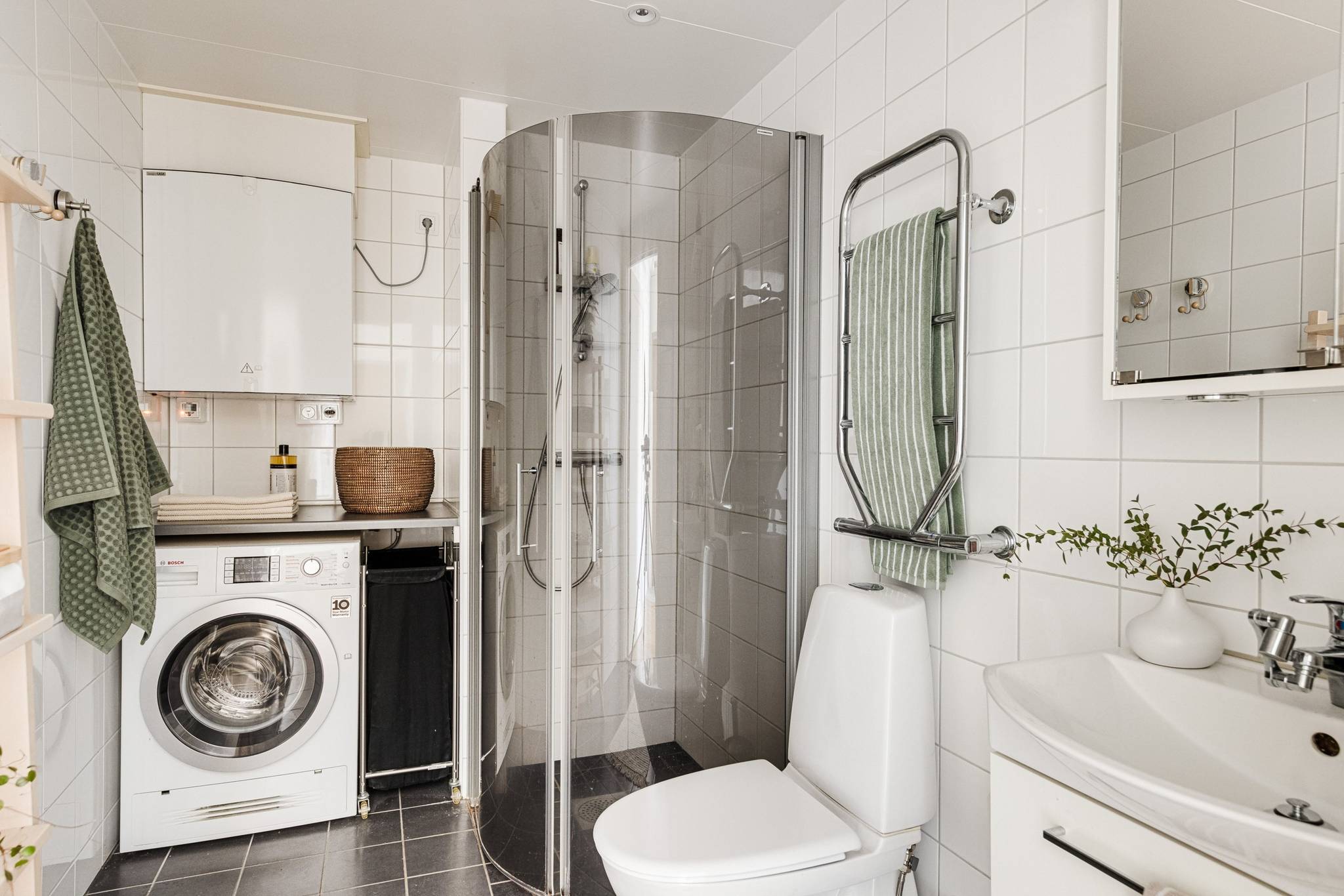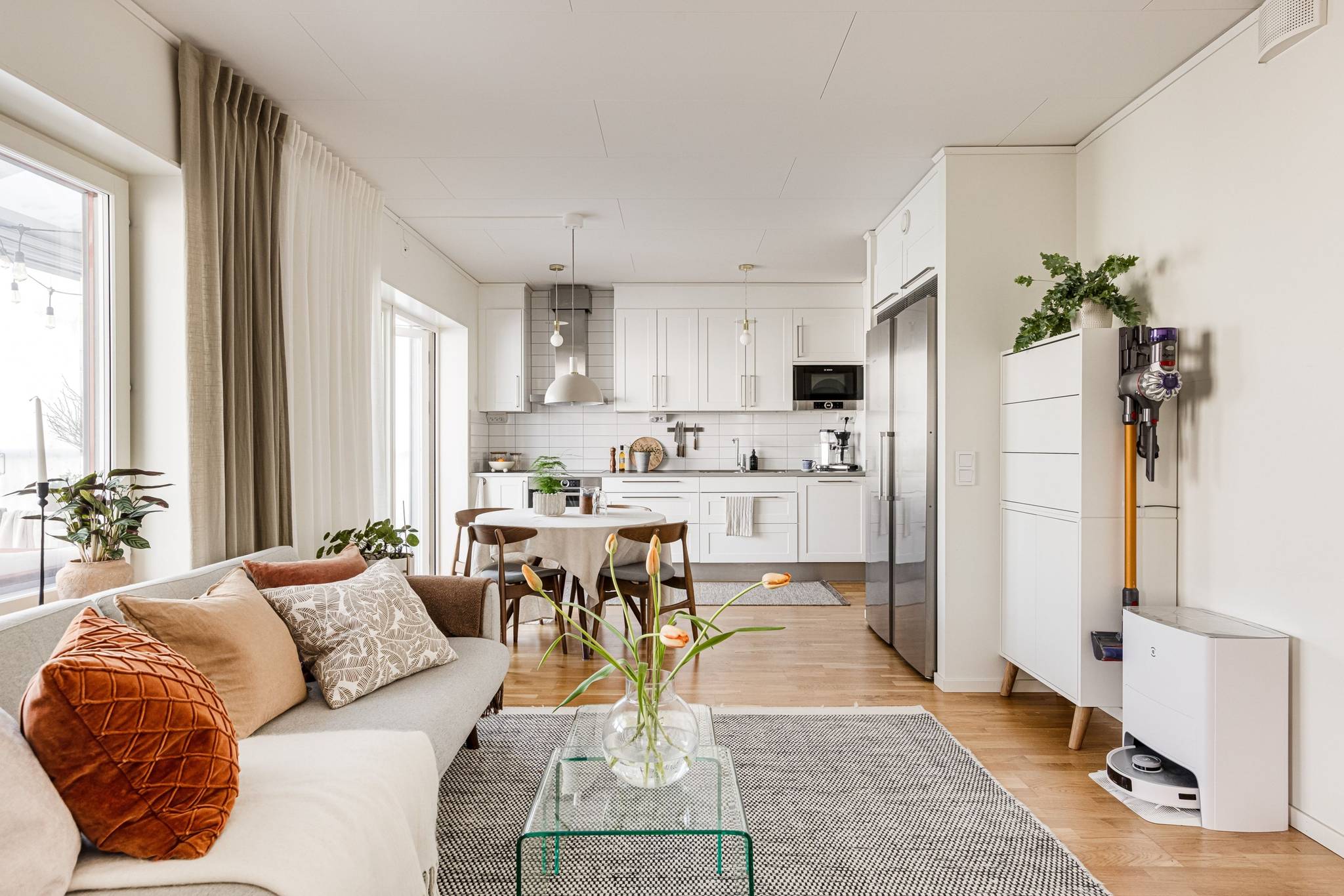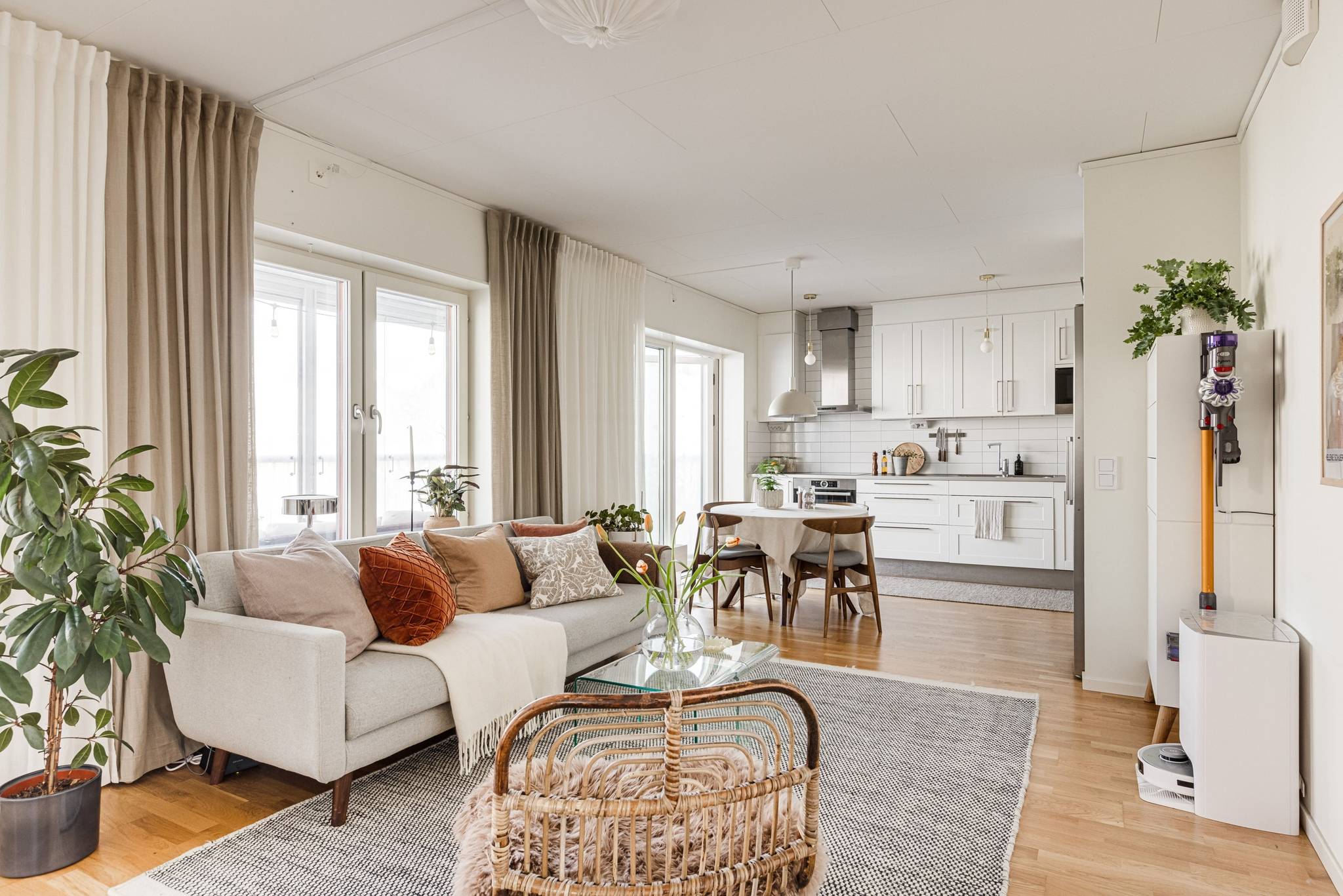 Bostaden välkomnar med generöst ljusinsläpp från stora fönsterpartier, stilren parkett och vitmålade väggar som skapar en tidlös och ljus helhet. Hallen är praktisk med goda avhängningsmöjligheter och plats för sittmöbel. Det helkaklade badrummet är smakfullt utformat med dusch bakom tonade glasväggar samt tvättdel med kombinerad tvättmaskin/torktumlare, bänkskiva och förvaringsskåp. Kök och vardagsrum samspelar i en öppen och social planlösning med modernt kök, goda arbetsytor och komplett utrustning. Vardagsrummet är lättmöblerat med plats för större soffgrupp och utgång till den inglasade balkongen – en trivsam förlängning av bostaden. Två sovrum, varav ett med direkt anslutning till rymlig klädkammare. Som boende i föreningen har du även tillgång till gemensamt orangeri & övernattningslägenhet. Via föreningen finns möjlighet att ansöka om grönt bolån, vilket kan ge förmånligare räntevillkor för köparen Ett ljust, välplanerat hem med hög trivselfaktor – välkommen att trivas!22 images
