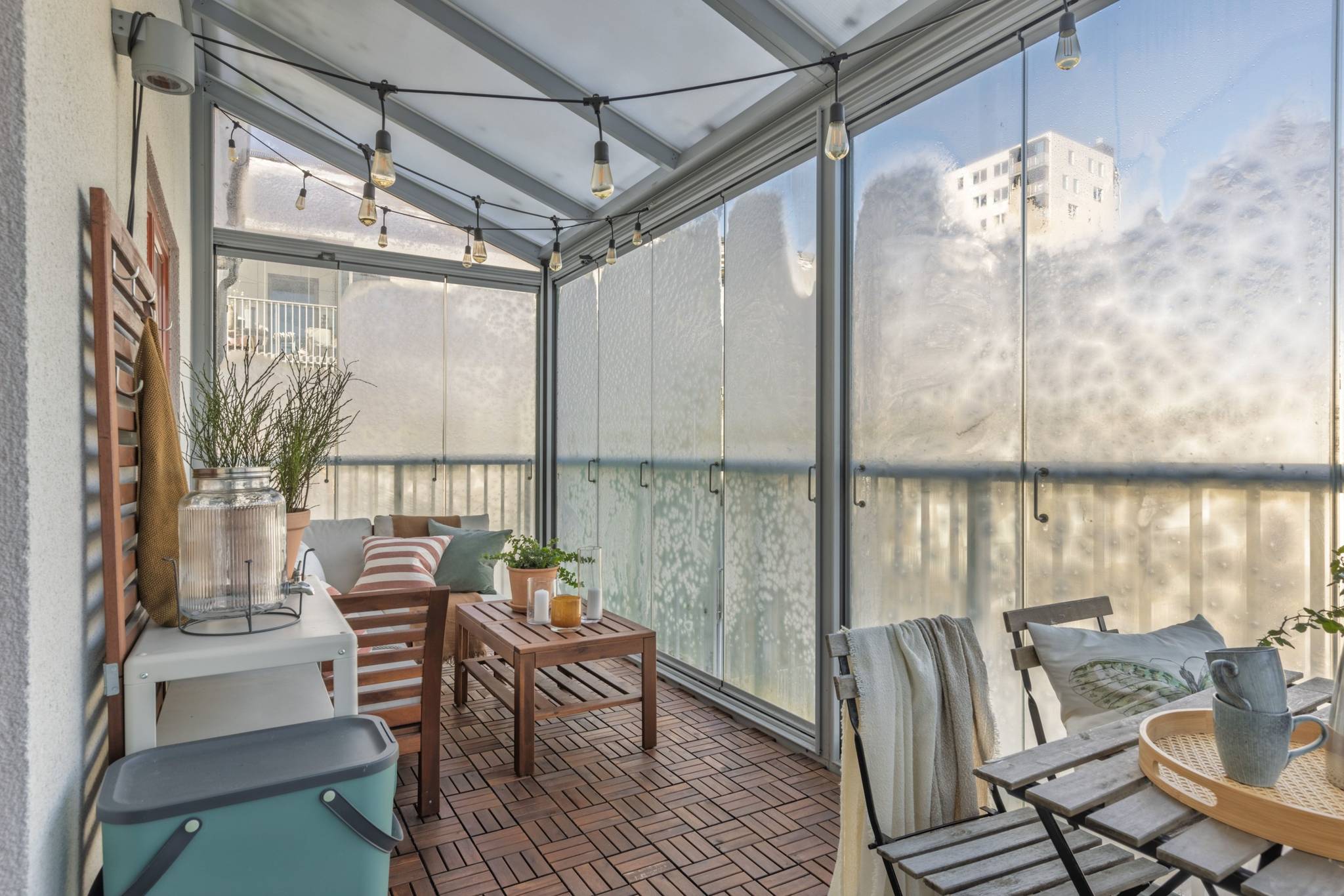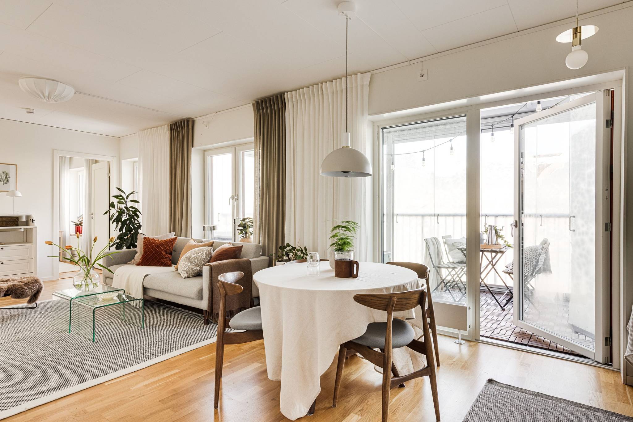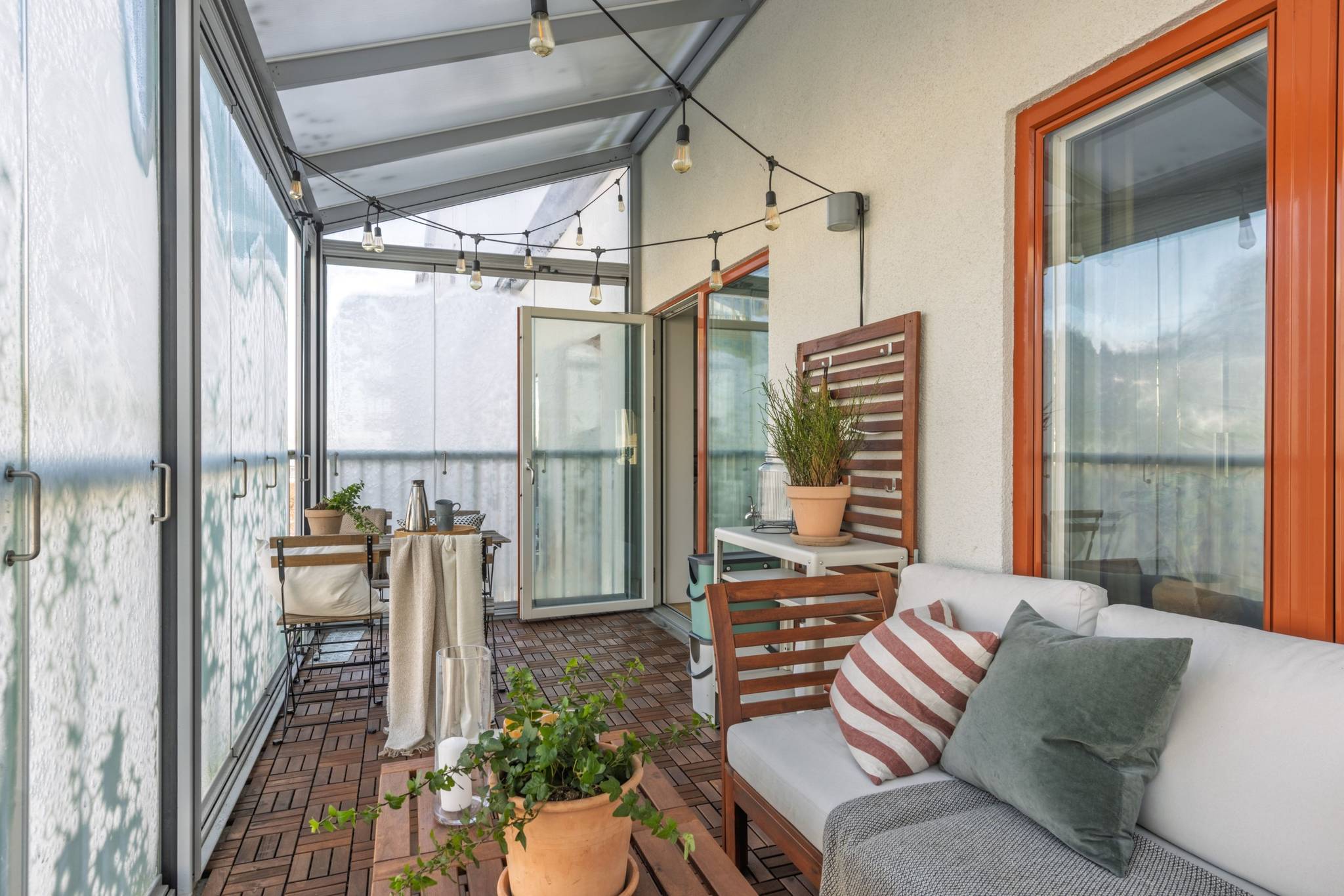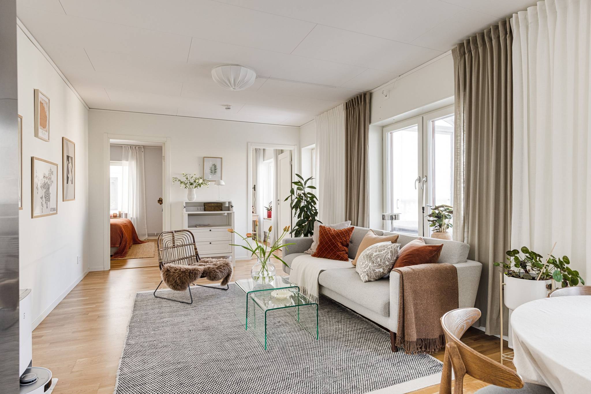 Bostaden välkomnar med generöst ljusinsläpp från stora fönsterpartier, stilren parkett och vitmålade väggar som skapar en tidlös och ljus helhet. Hallen är praktisk med goda avhängningsmöjligheter och plats för sittmöbel. Det helkaklade badrummet är smakfullt utformat med dusch bakom tonade glasväggar samt tvättdel med kombinerad tvättmaskin/torktumlare, bänkskiva och förvaringsskåp. Kök och vardagsrum samspelar i en öppen och social planlösning med modernt kök, goda arbetsytor och komplett utrustning. Vardagsrummet är lättmöblerat med plats för större soffgrupp och utgång till den inglasade balkongen – en trivsam förlängning av bostaden. Två sovrum, varav ett med direkt anslutning till rymlig klädkammare. Som boende i föreningen har du även tillgång till gemensamt orangeri & övernattningslägenhet. Via föreningen finns möjlighet att ansöka om grönt bolån, vilket kan ge förmånligare räntevillkor för köparen Ett ljust, välplanerat hem med hög trivselfaktor – välkommen att trivas!22 images
