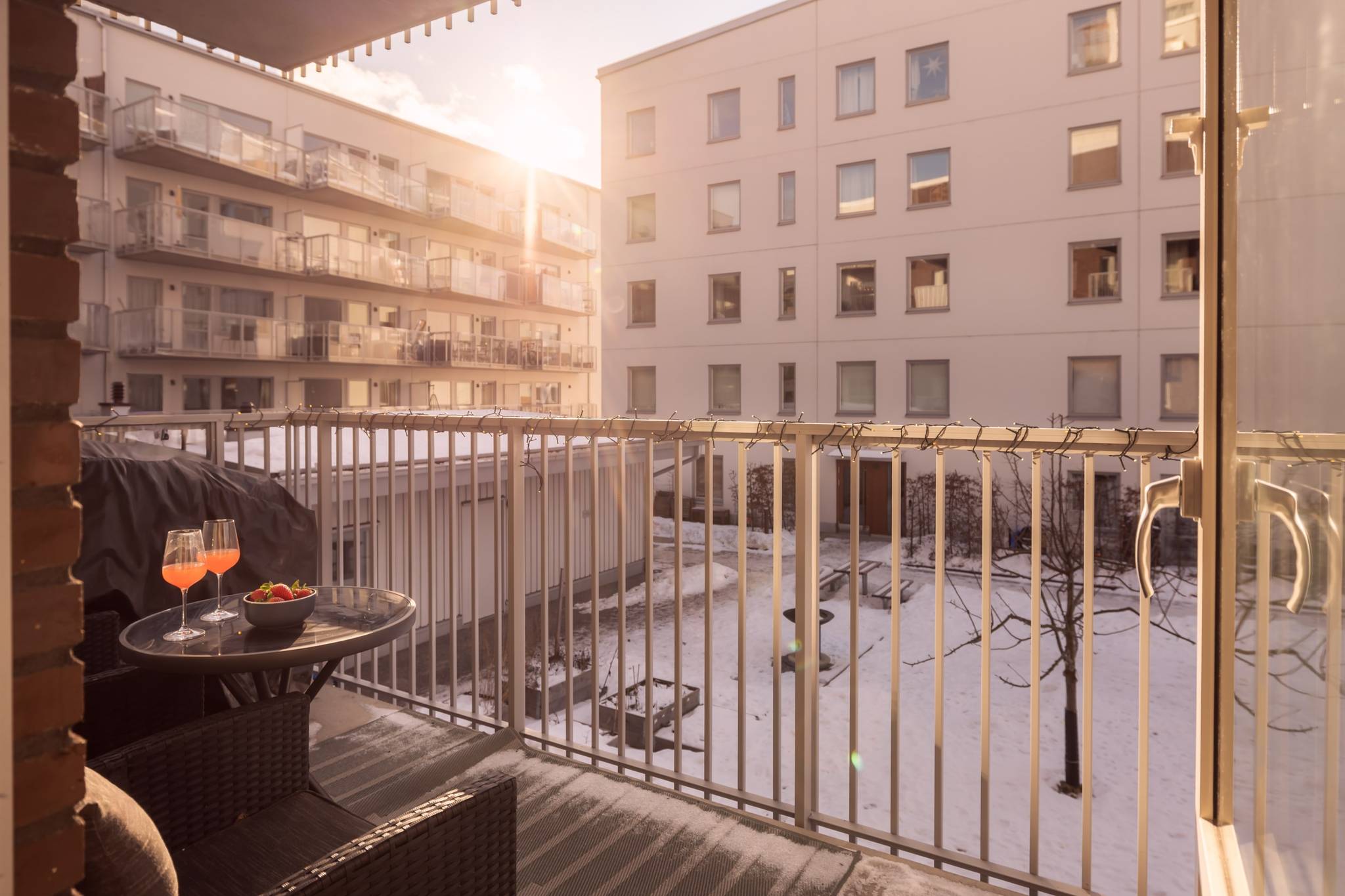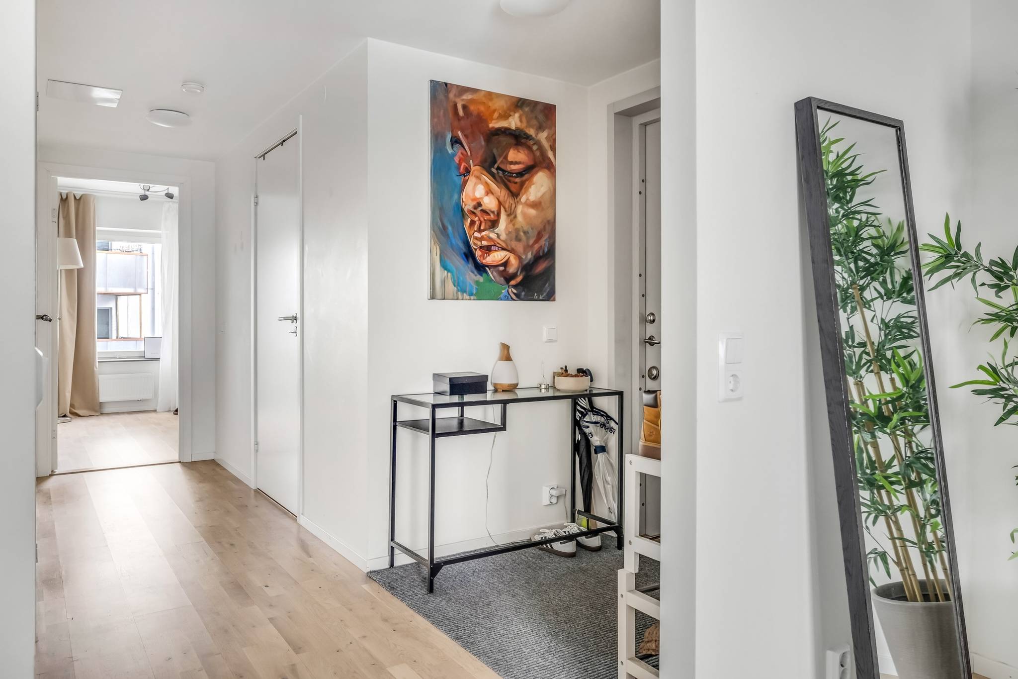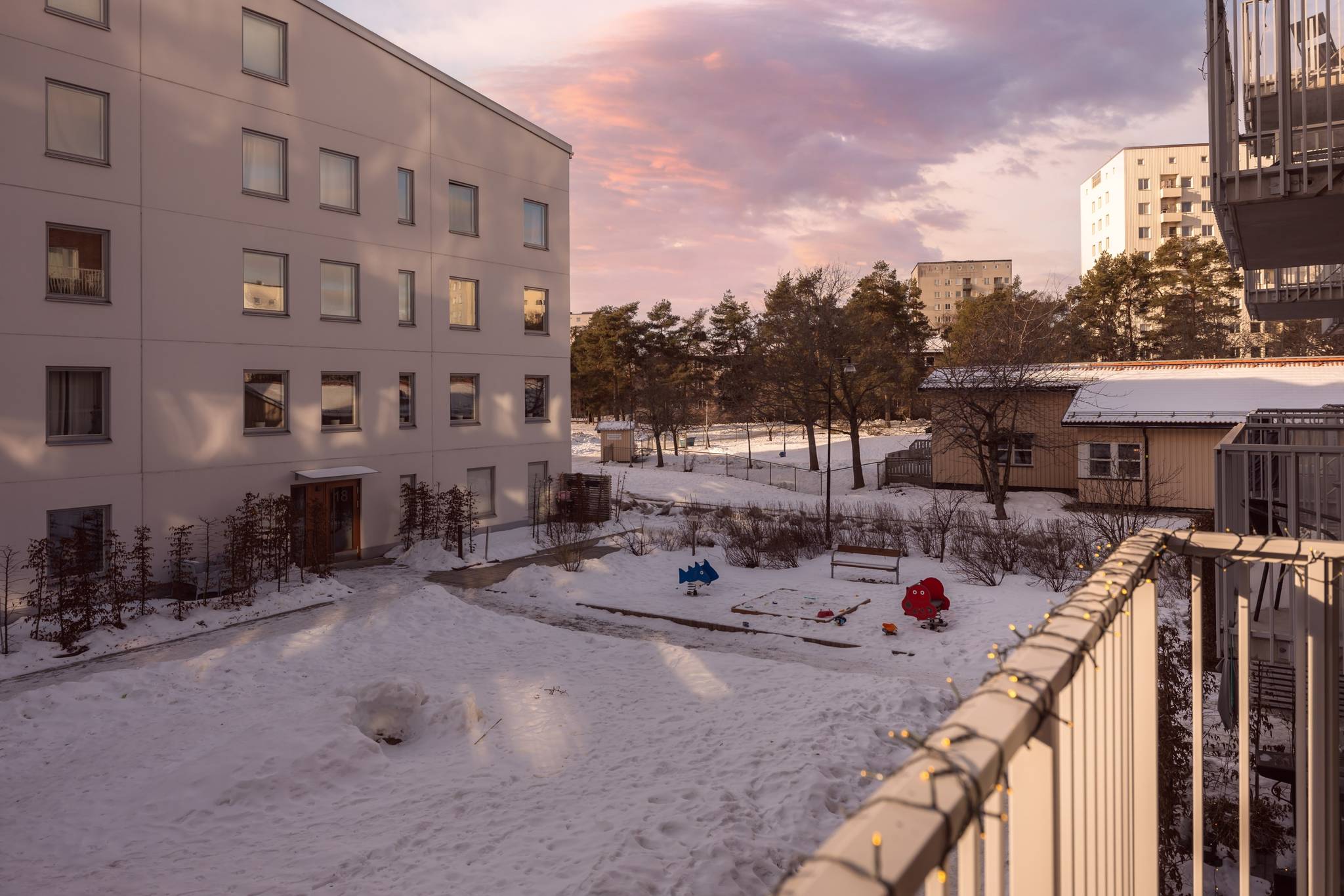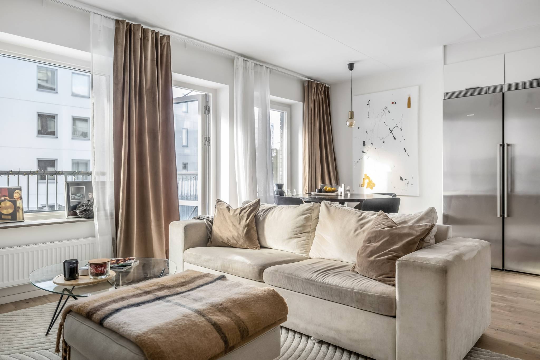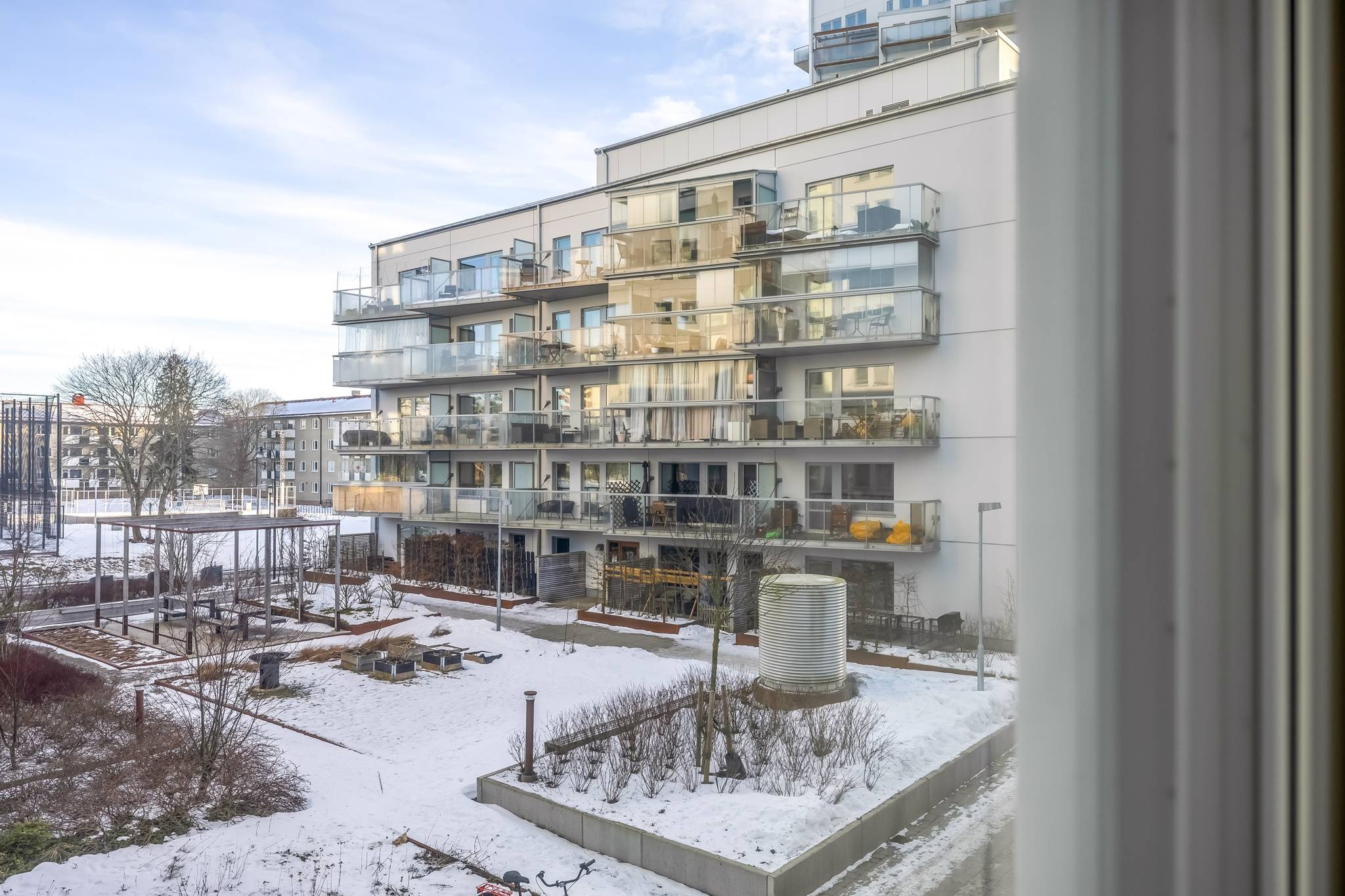 Välkommen till ett hem där nyproduktionens komfort möter genomtänkt planlösning och ett fantastiskt läge bara minuter från tunnelbana och service. Denna stilrena 3-rumslägenhet om 69 kvm, uppförd 2022, erbjuder ett boende med hög standard, generöst ljusinsläpp och sociala ytor skapade för både vardagsliv och umgänge. Här bor du i ett lugnt kvarter samtidigt som Högdalens centrum ligger bokstavligen ett stenkast bort. Ett perfekt boende för dig som vill kombinera smidiga kommunikationer, högdalens bekvämligheter och naturen inom bekvämt räckhåll. Lägenheten präglas av stora fönsterpartier med morgon- och eftermiddagssol, genomgående parkettgolv, sobra färgval och moderna material. Den öppna planlösningen mellan kök och vardagsrum skapar rymd och gör hemmet lika trivsamt till vardags som vid middagar och sociala tillställningar, där ljuset flödar in via både fönster och balkongdörren vilket skapar en luftig och harmonisk atmosfär. Balkongen är belägen mot den trevliga innergården och erbjuder en lugn plats för morgonkaffet eller kvällens avkoppling. Här erbjuds sol från morgon till eftermiddag – ett ostört läge där du kan njuta av dagens första kaffe eller koppla av i kvällssolen, med Högdalens bekvämligheter och naturen inom bekvämt räckhåll. Köket är modernt och elegant utformat med släta vita luckor, vitt kakel ovan bänkskivan och en stilfull marmorbänkskiva som tillsammans med generösa arbetsytor skapar en exklusiv och inbjudande helhet, perfekt för både matlagning och umgänge. Den fulla maskinella utrustningen i rostfritt utförande kombinerar funktion och estetik och intill fönsterpartiet finns gott om plats för en större matgrupp som blir en naturlig samlingspunkt i hemmet. Vardagsrummet erbjuder utrymme för en generös soffgrupp och mediadel utan att kompromissa med utrymme. Bostaden erbjuder två välplanerade sovrum. Det större sovrummet har plats för dubbelsäng och sängbord och kompletteras av en stor och exklusiv walk-in-closet som ger utmärkta förvaringsmöjligheter och en hotelliknande känsla i vardagen. Det andra sovrummet är ljust och lättmöblerat och passar perfekt som barnrum, gästrum eller hemmakontor. Badrummet är stilrent helkaklat i ljusa, harmoniska toner med tydlig nordisk design där kakel och klinker samspelar i en modern och tidlös färgsättning. Här finns en rymlig duschhörna med glasdörrar, kommod med förvaring samt spegelskåp med belysning som ger ett behagligt ljus. Infällda spotlights tillsammans med golvvärme skapar en varm och ombonad känsla. Den genomtänkta planeringen förenar estetik och funktion och badrummet kompletteras av en praktisk tvättdel med tvättmaskin och torktumlare placerade ovan varandra vilket frigör golvyta och förenklar vardagen. Hallen välkomnar med ett luftigt intryck och goda avhängningsmöjligheter. Här finns även ett praktiskt förråd som erbjuder extra förvaring i vardagen. Förvaringsmöjligheterna är väl tilltagna och kompletteras av en walk in closet i anslutning till sovrummet vilket ger gott om plats för både kläder och säsongsförvaring. Brf Regissören i Teaterkvarteret är en äkta bostadsrättsförening som äger marken och består av 52 lägenheter. Den nyproducerade fastigheten från 2022 innebär lågt underhållsbehov och en trygg ekonomi. Föreningen erbjuder garage med 20 parkeringsplatser, 2 st MC-platser som är beläget direkt under kvarteret. Källarförråd, 3-glasfönster och uppvärmning via fjärrvärme. Här bor du centralt men lugnt med direkt närhet till allt. Tunnel37 images