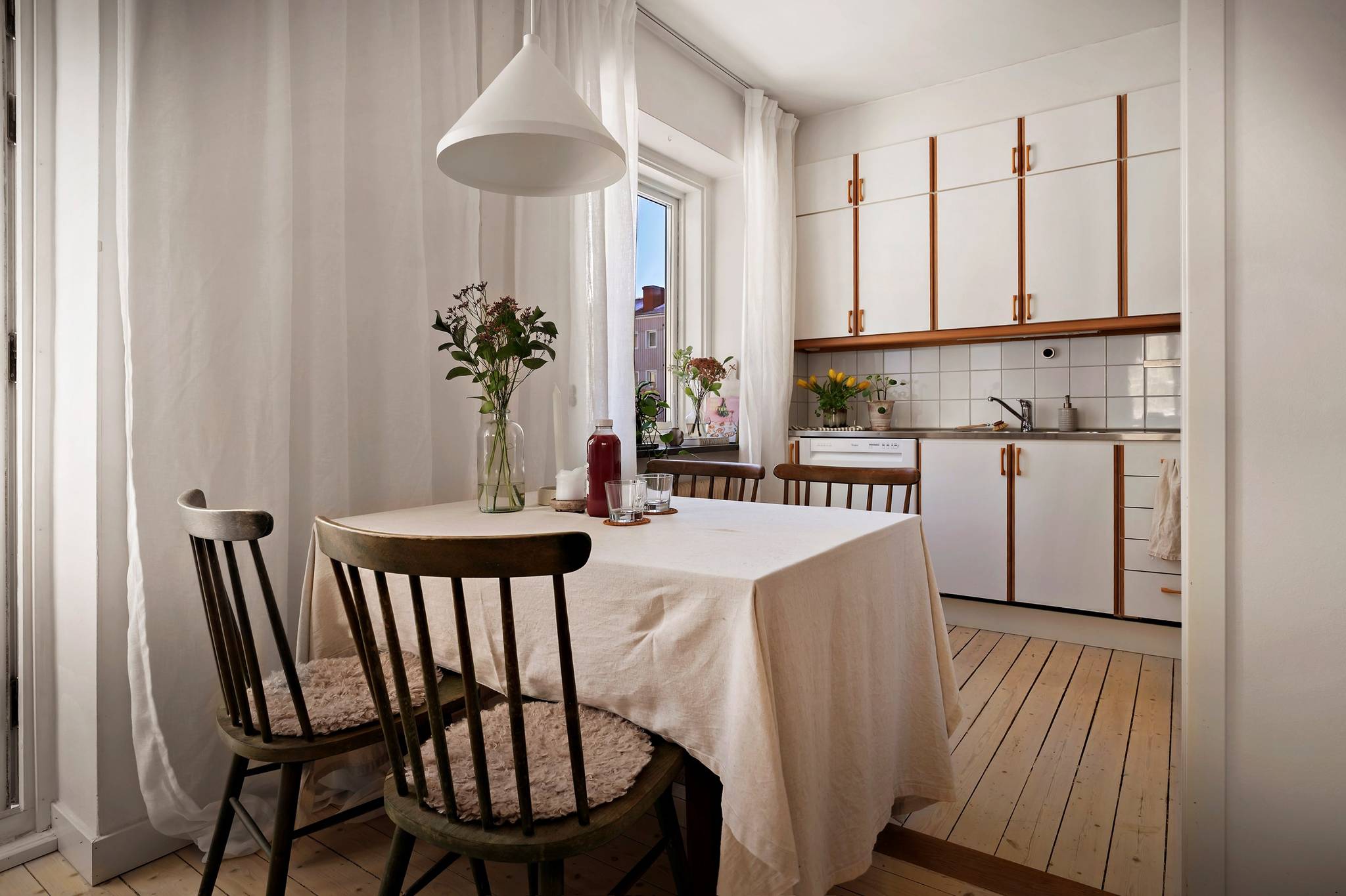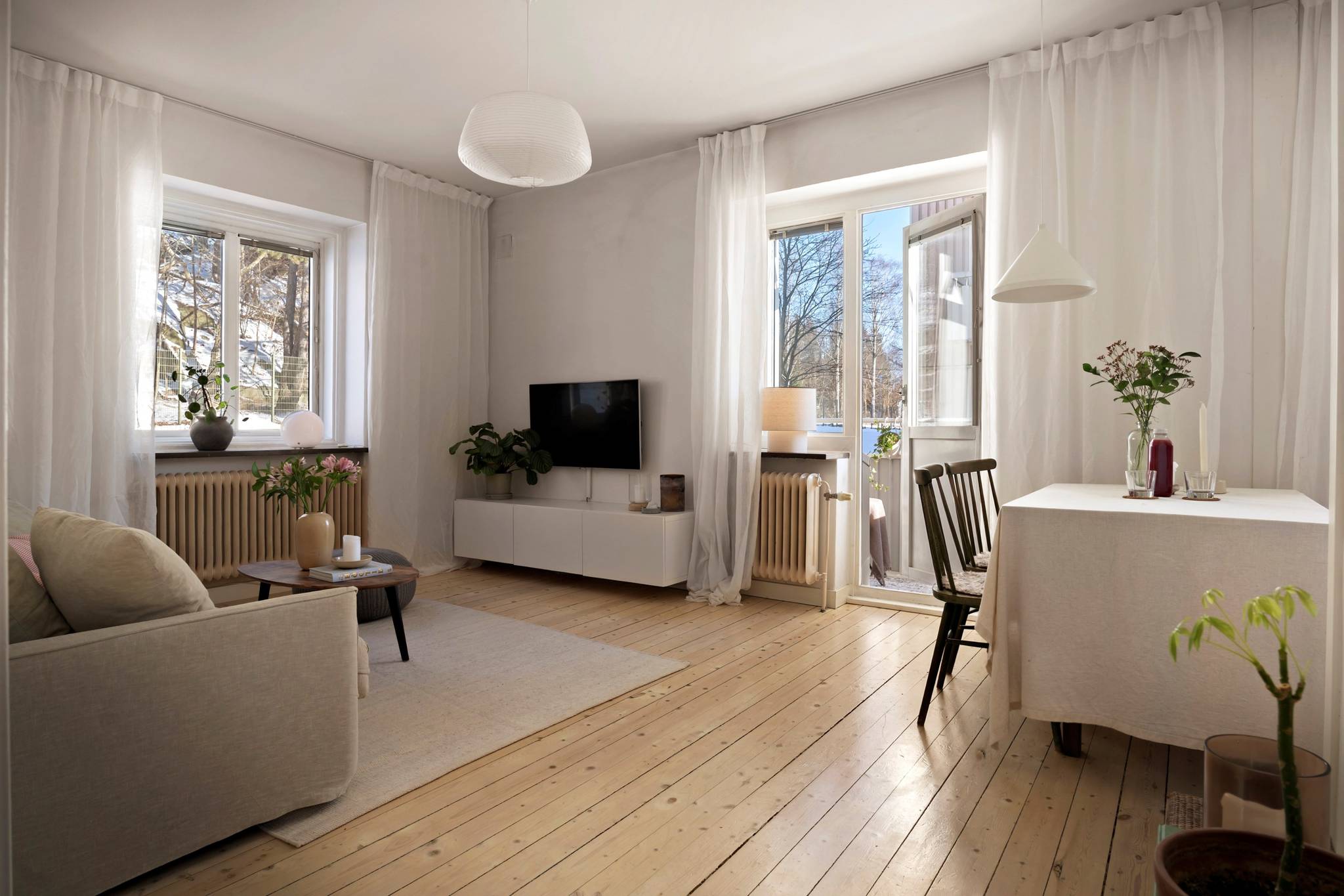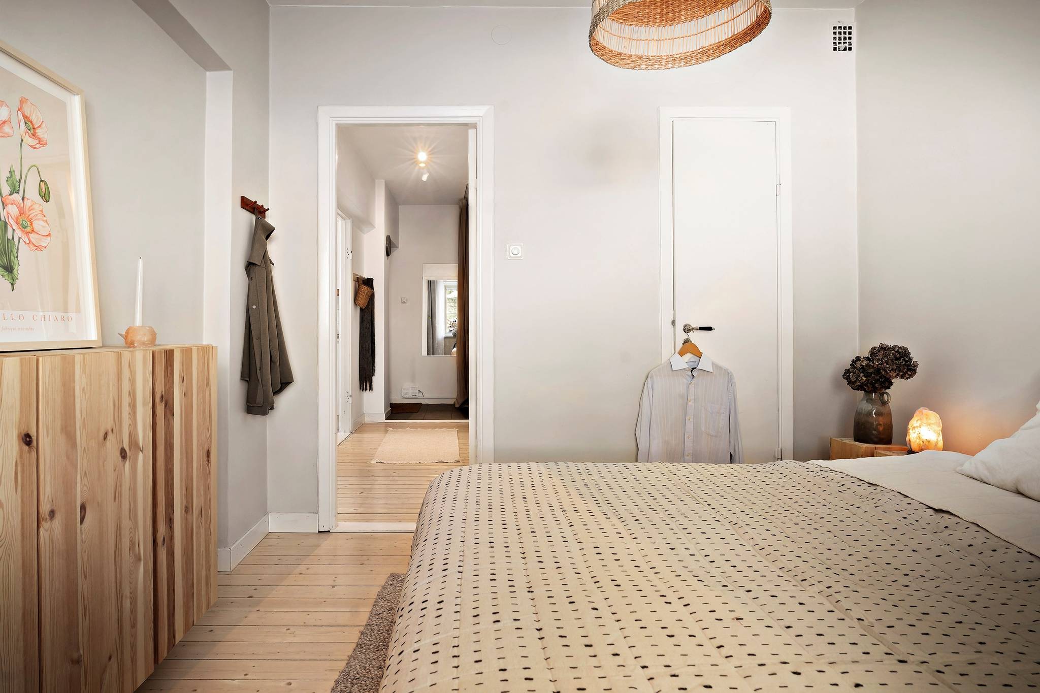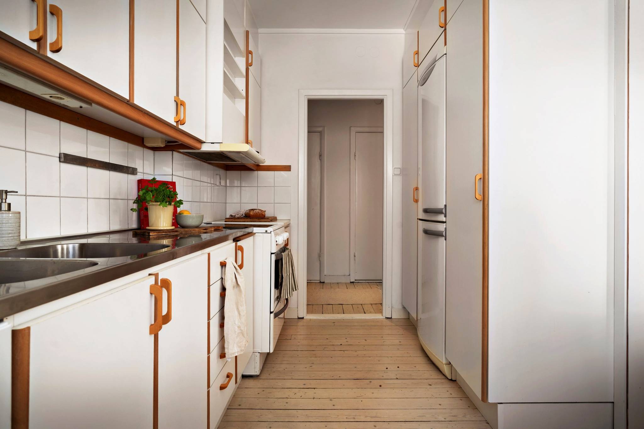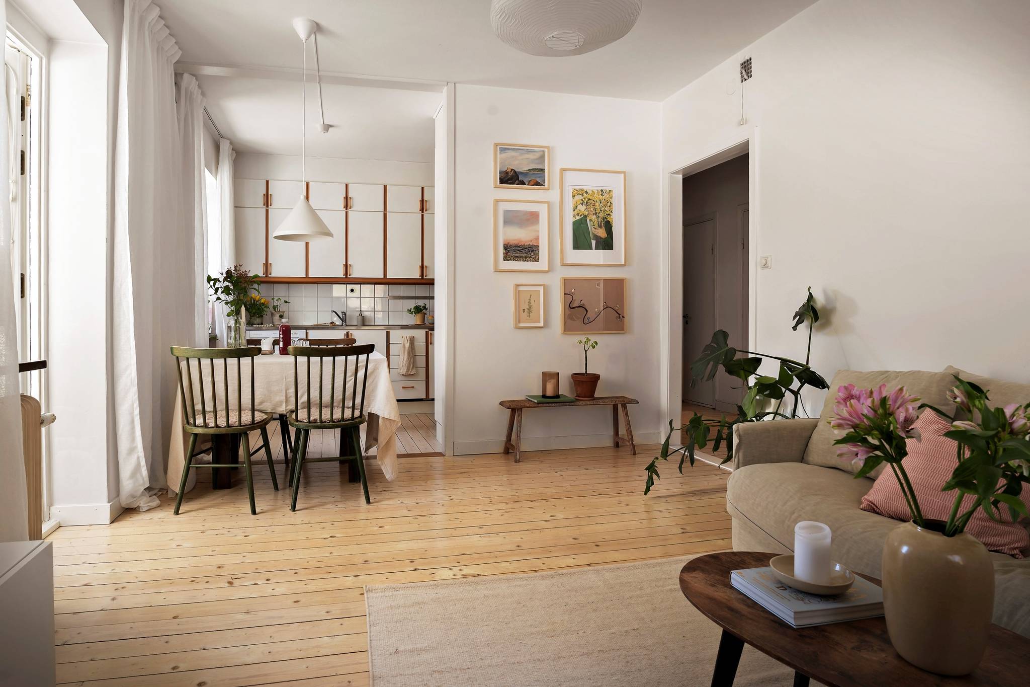 Bostaden välkomnar med en ljus och rymlig hall med goda förvaringsmöjligheter samt en praktisk klädkammare. Köket har generöst ljusinsläpp, gott om förvaring och bra arbetsytor, och är fullt utrustat More...
