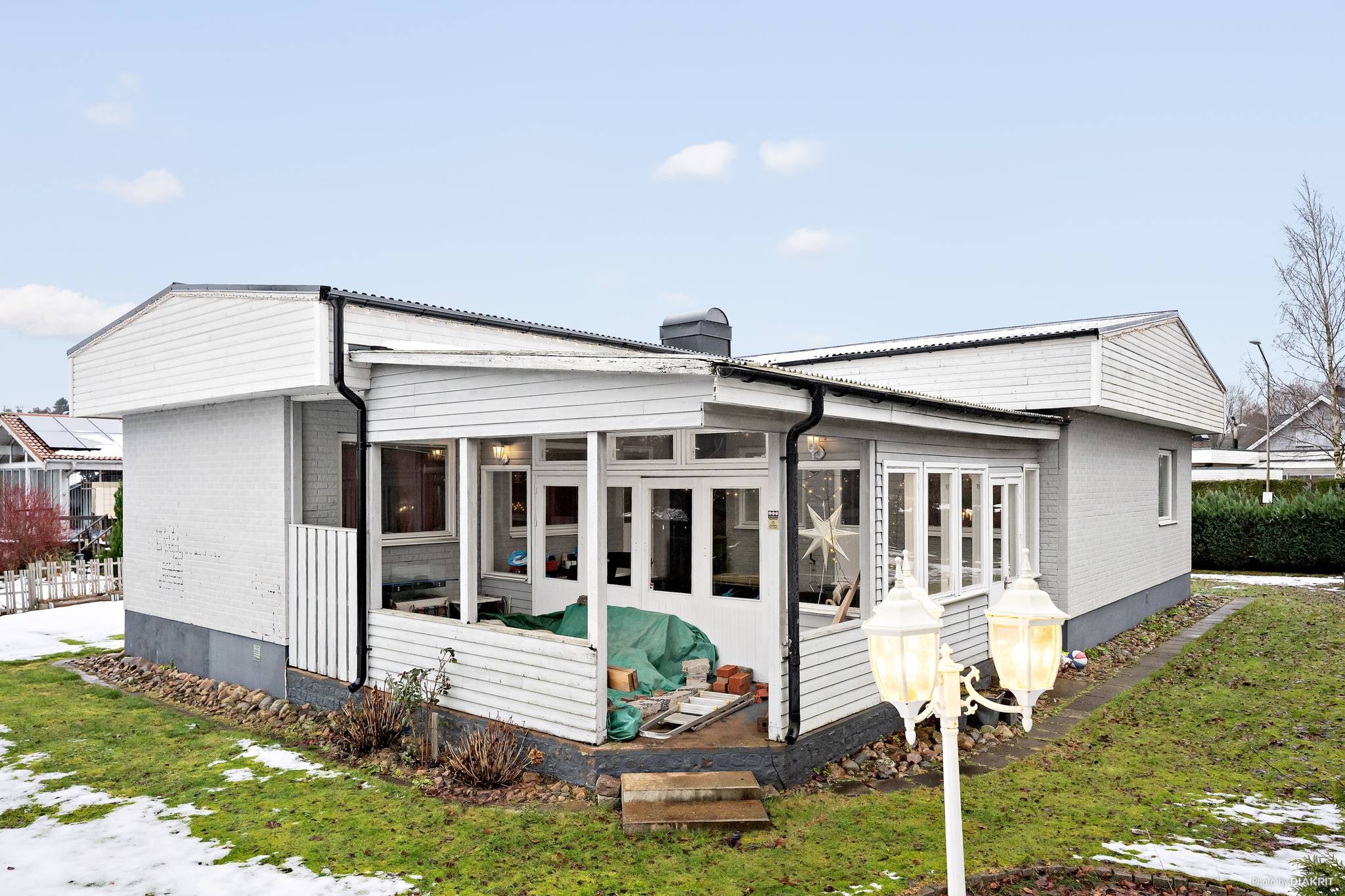 Välkommen till ett hem som är redo för nästa familj att trivas i. Musikvägen 9 erbjuder en genomtänkt enplansvilla med inredd källare om 101 plus 122 kvadratmeter. Huset har renoverats löpande med viktiga åtgärder som dränering och nytt tak. Interiört möts ni av en genomgående hög standard och ytor som är enkla att trivas i. Entréplanet bjuder på ett stilrent kök med goda arbetsytor och plats för ett mindre matbord. Här finns två sovrum i bra storlek och ett rymligt vardagsrum med plats för både soffgrupp och matgrupp. Från vardagsrummet nås det stora inglasade uterummet som ger en uppskattad extra yta under stora delar av året. På entréplanet finns även ett helkaklat badrum i tidlös stil. Källarplanet överraskar med flera inredda rum som skapar goda möjligheter för familjen. Här finns ett tonårsrum, hobbyrum, ytterligare ett helkaklat badrum samt en separat toalett. Planlösningen gör källaren till en naturlig del av bostaden och ger gott om plats för familjen att växa i. Musikområdet är ett av de mest omtyckta bostadsområdena i Perstorp. Här bor ni med närhet till skolor, förskolor och vackra strövområden som uppskattas av både stora och små. Centrum ligger på bekvämt cykelavstånd och tågstationen tar er enkelt vidare mot Hässleholm, Helsingborg och övriga regionen. Utemiljön är lättskött och ger utrymme för både lek och avkoppling. Fiber är indraget till fastigheten. Här finns även garage med plats för bilen och extra förvaring. Övriga fordon placeras med fördel på uppfarten. Bostadshuset har genomgått en noggrann besiktning av Anticimex och säljaren kommer att teckna en dolda-felförsäkring vid överlåtelsen för er trygghet. Besiktningsprotokoll kommer finnas tillgängligt i samband med visningen för spekulanter. Varmt välkomna att upptäcka Musikvägen 9. Här börjar nästa kapitel.28 images