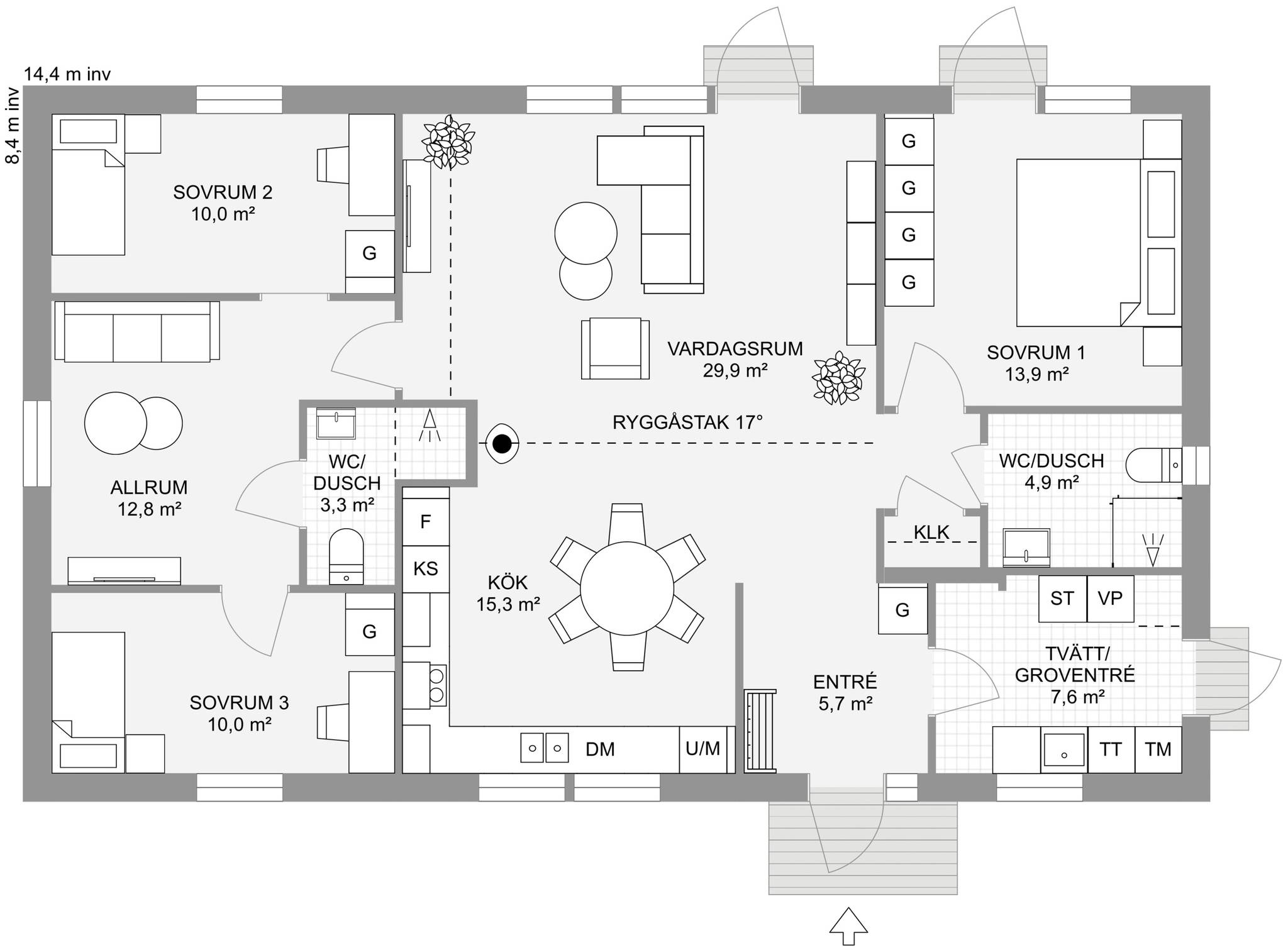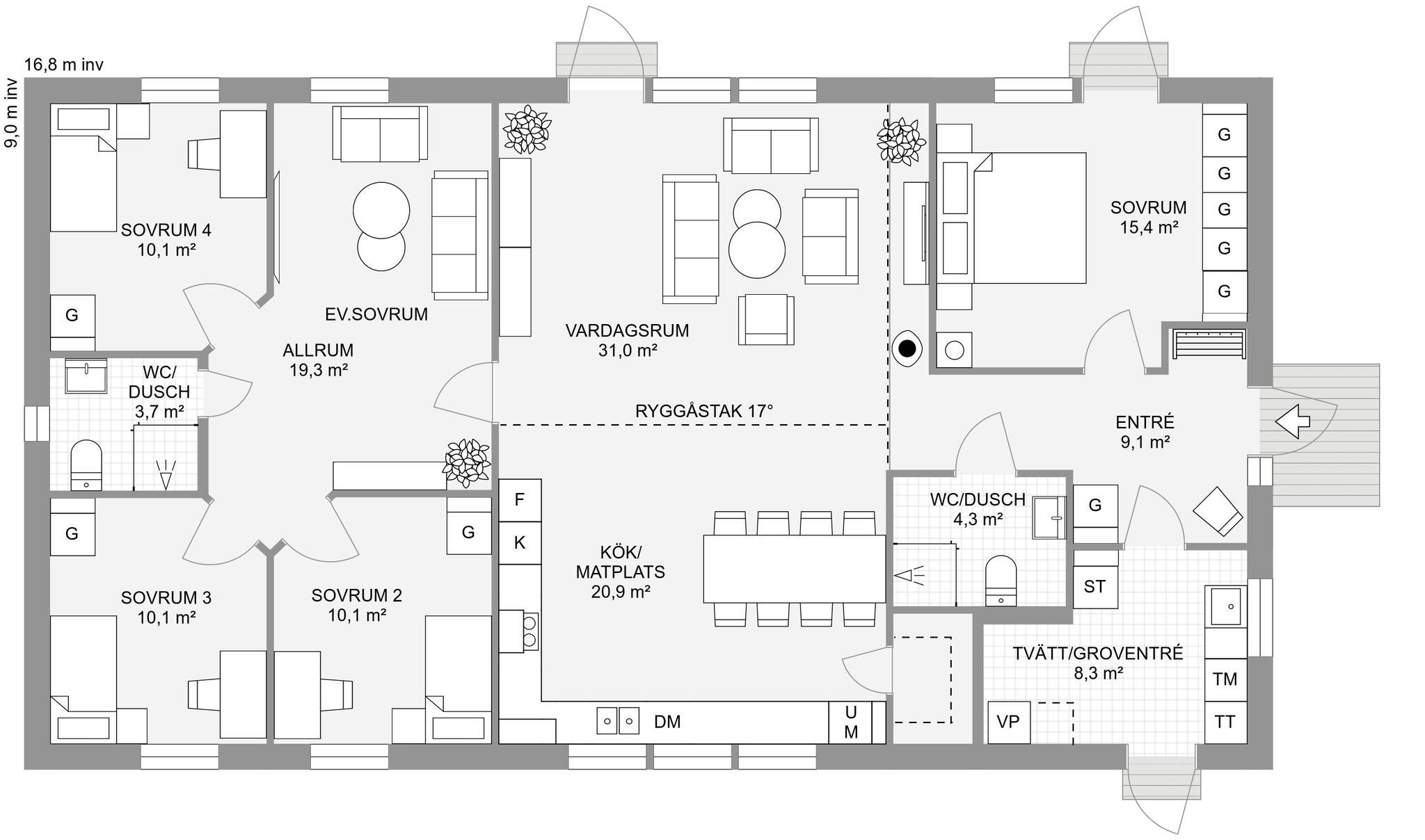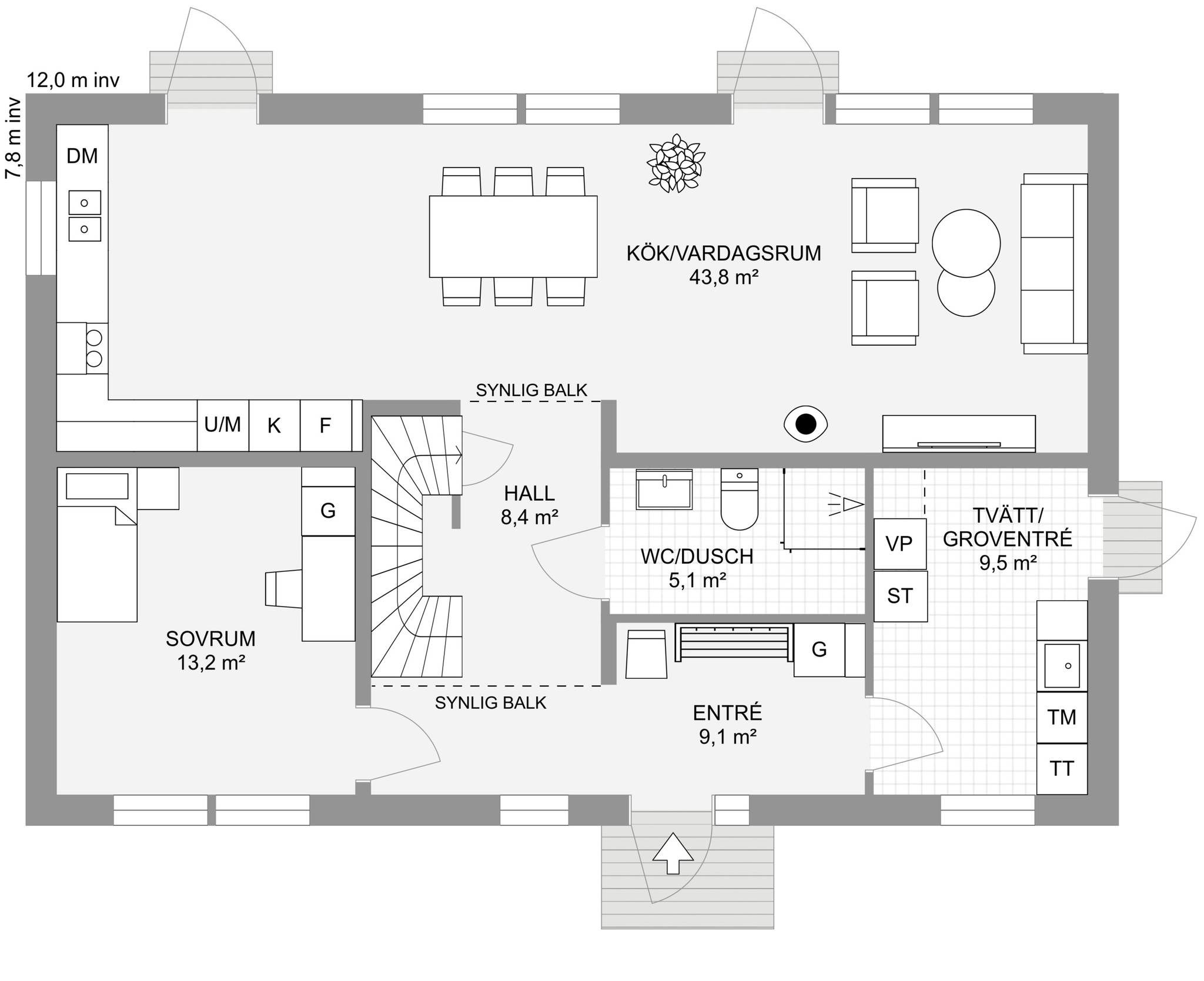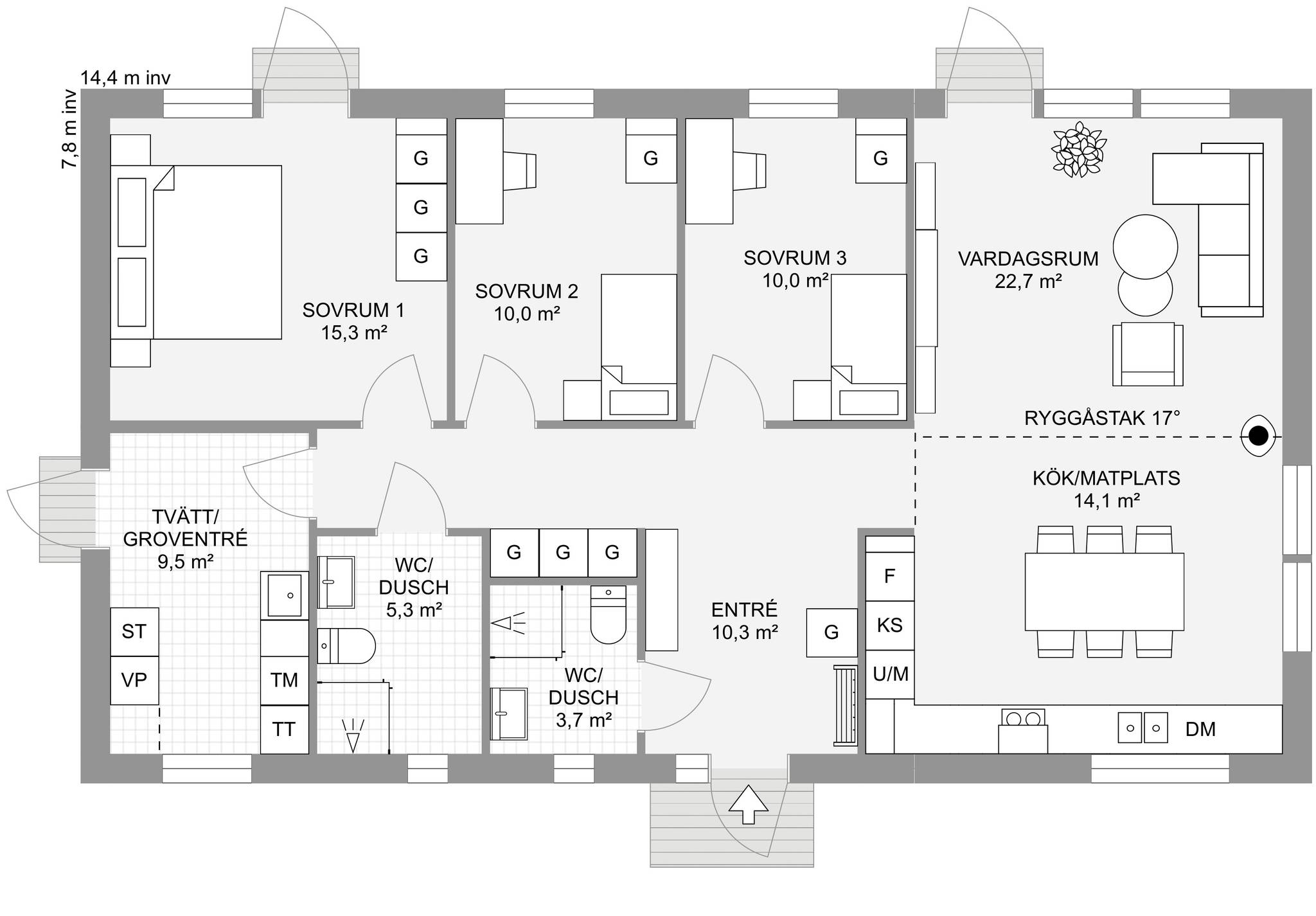 Nyckelfärdigt hus med tomt från 4 395 000 kr Drömmer du om att bygga nytt i naturnära miljö? Nu finns möjligheten att förvärva en tomt med helentreprenad från Bra Hus – ett perfekt tillfälle för dig som vill skapa ett hem helt efter dina egna visioner. Välj bland flera genomtänkta husmodeller eller låt fantasin flöda och rita ditt eget hus utifrån personliga önskemål och behov. I charmiga Mellansvartbäck bor du med naturen och grönskan som närmsta granne, samtidigt som den vackra Bjännsjön ligger endast ett stenkast bort – idealiskt för såväl avkopplande promenader som aktiva dagar utomhus. Här får du det bästa av två världar: ett lugnt och naturskönt läge med närhet till friluftsliv, men utan att kompromissa med tillgängligheten. Centrala Umeå nås enkelt med en kort bilfärd, och goda kommunikationsmöjligheter gör vardagen smidig för både arbete och fritid. Välkommen att ta första steget mot ditt framtida drömboende! PS. Bilderna är datorgenererade och visar hur ett färdigt hus i denna affär kan se ut. Modell – Plan – Boyta – Byggyta – Antal rum Smultronstället 94 – 1 planshus – 93,6 m² – 108,4 m² – 3 rok Smultronstället 112 – 1 planshus – 112,3 m² – 128,8 m² – 4 rok Smultronstället 121 – 1 planshus – 121,0 m² – 137,9 m² – 5 rok Smultronstället 135 – 1 planshus – 135,4 m² – 157,0 m² – 4 rok Smultronstället 141 – 1 planshus – 141,1 m² – 161,9 m² – 5 rok Smultronstället 147 – 1 planshus – 147,2 m² – 169,4 m² – 6 rok Smultronstället 151 – 1 planshus – 151,2 m² – 170,3 m² – 5 rok Smultronstället 169 – 1,5 planshus – 168,7 m² – 108,4 m² – 6 rok Smultronstället 156 - 2 planshus utan/med carport – 155,6 m²- 6–7 rok https://www.brahus.se/vara-hus/smultronstallet/ Här väljer vi att premiera ''Smultronstället-husen'' vilket är Bra Hus mest prisvärda husmodeller och ger dig mycket för pengarna! Pris varierar beroende på husvariant. Det går även att välja andra modeller, arkitektritat eller något av de hus ni finner i nedanstående länk. Länk till alla modeller: https://www.brahus.se/vara-hus/ Livolo Bygg AB kompletterar med arbete, betongplatta samt kakel, klinker, spackel och invändig målning – så att huset blir helt nyckelfärdigt. Skog på tomt är till stor del röjd och innebär ingen extra kostnad. Bygglovshandlingar ingår i priset. Kostnader som kunden själv behöver ta hänsyn till (ingår ej): - Bygg-el: ca 10 000 - 25 000 kr beroende på årstid. - Geoteknisk undersökning: ca 33 000 kr - Anslutningsavgifter: VA (kommunalt): ca 290 000 kr. El: ca 50 000 kr - Bygglovskostnader: Nybyggnadskarta ca 10 000 kr, startbesked ca 40 000 kr, utstakning ca 12 000 kr. - Kontrollansvarig: ca 20 000 - 30 000 kr beroende på hur många platsbesök som krävs. Drift per år (schablonberäknat): - Försäkring: 5 000 kr - Vatten/avlopp: 2 600 kr - Elförbrukning: 18 000 kr, 10 000 kWh (hushållsel samt uppvärmning) - Renhållning: 1 800 kr Summa: 27 400 kr/år (preliminär, varierar beroende på förbrukning och avtal) Ytterligare dokument gällande konstruktion, materialval, tillval, https://www.brahus.se/bygga-hus/bra-hus-konstruktion/ https://standardochtillval.brahus.se/produkt/e/905/franluftsvarmepump-s735/25 images