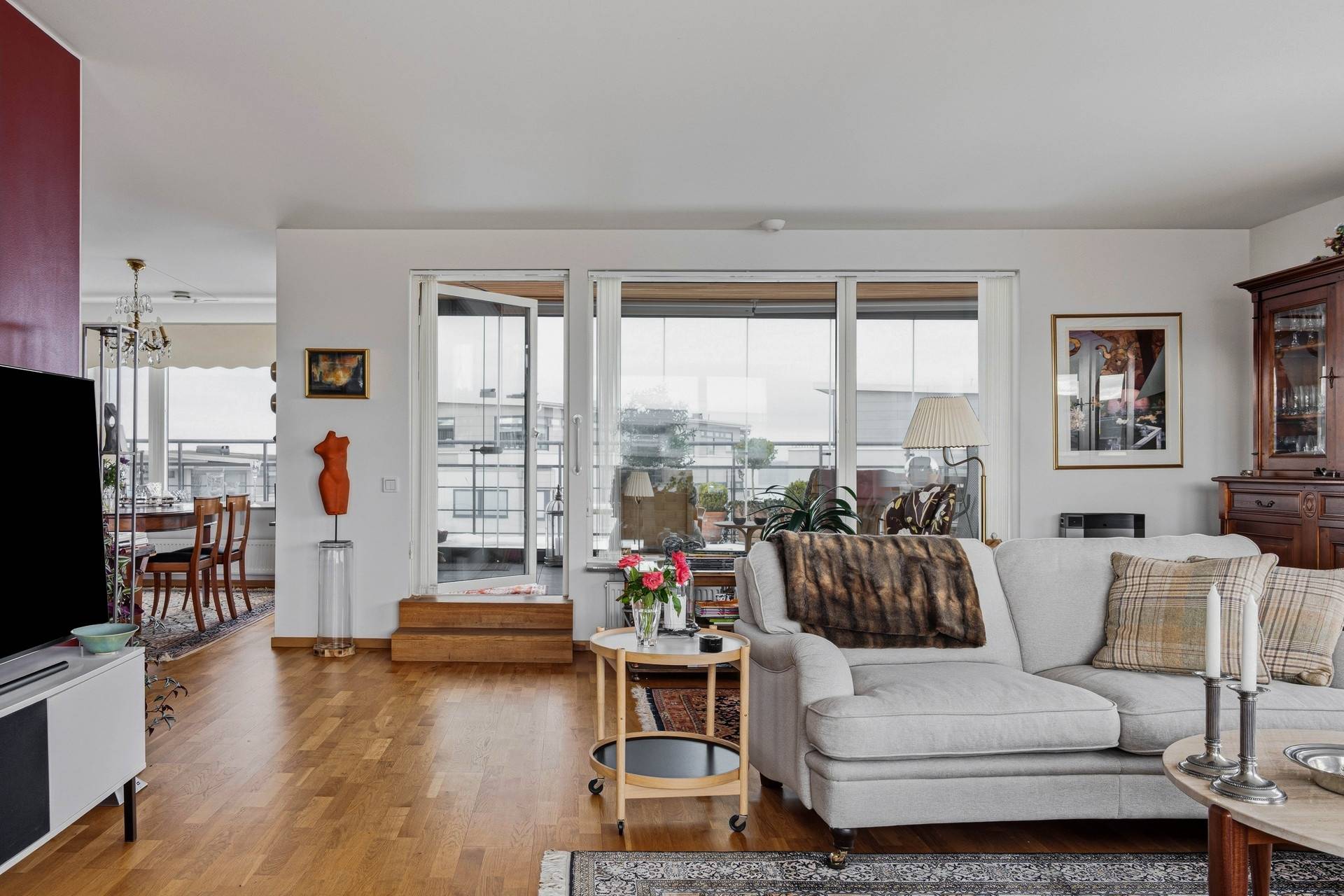 Välkommen till denna unika och stilfulla takvåning om 106 kvm, högst upp i huset på våning 5 av 5. Här bor du ostört med ett fantastiskt ljusinsläpp från tre väderstreck och med en boendemiljö som komMore...