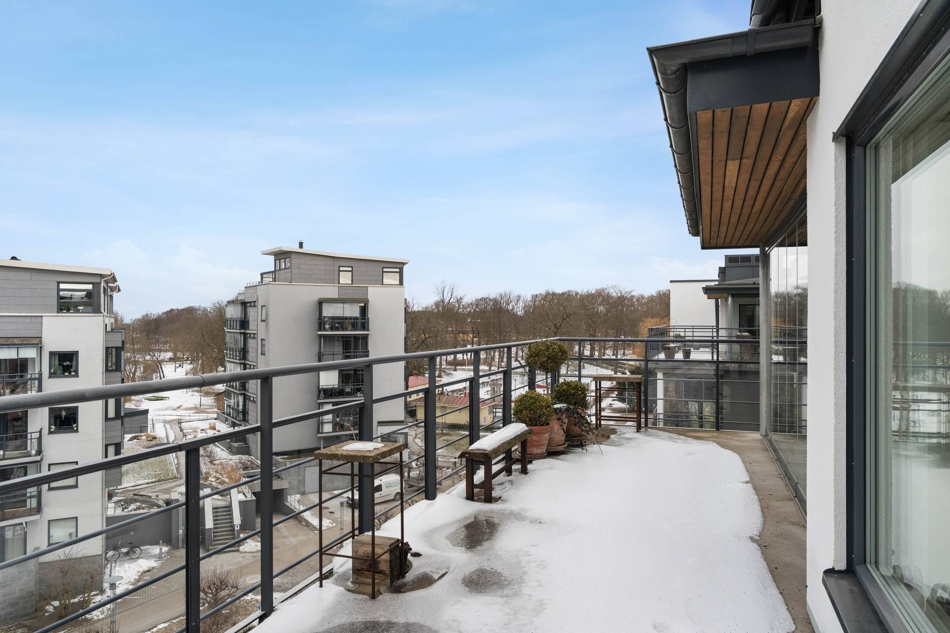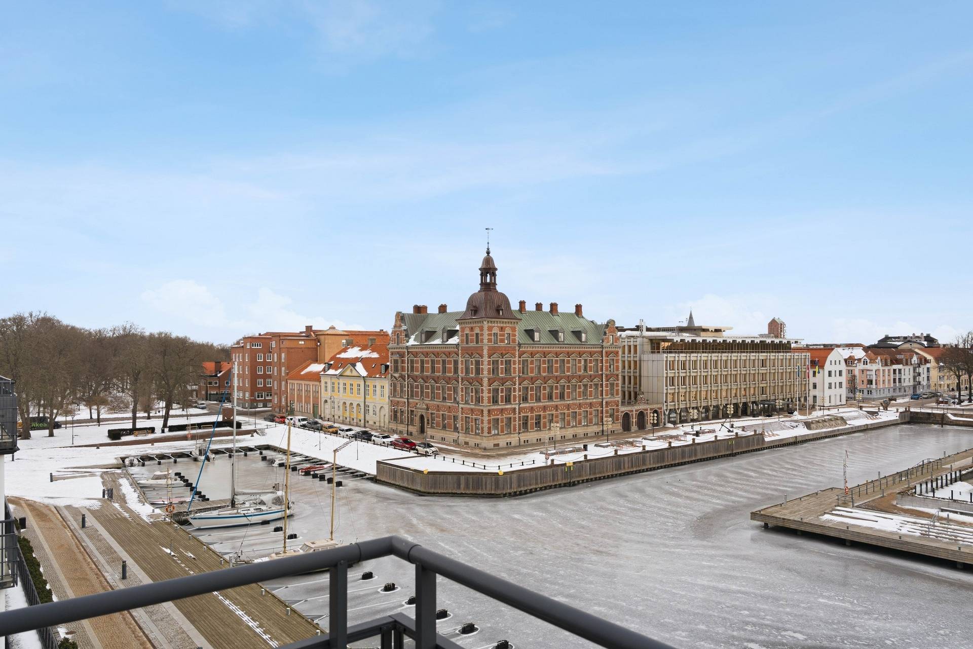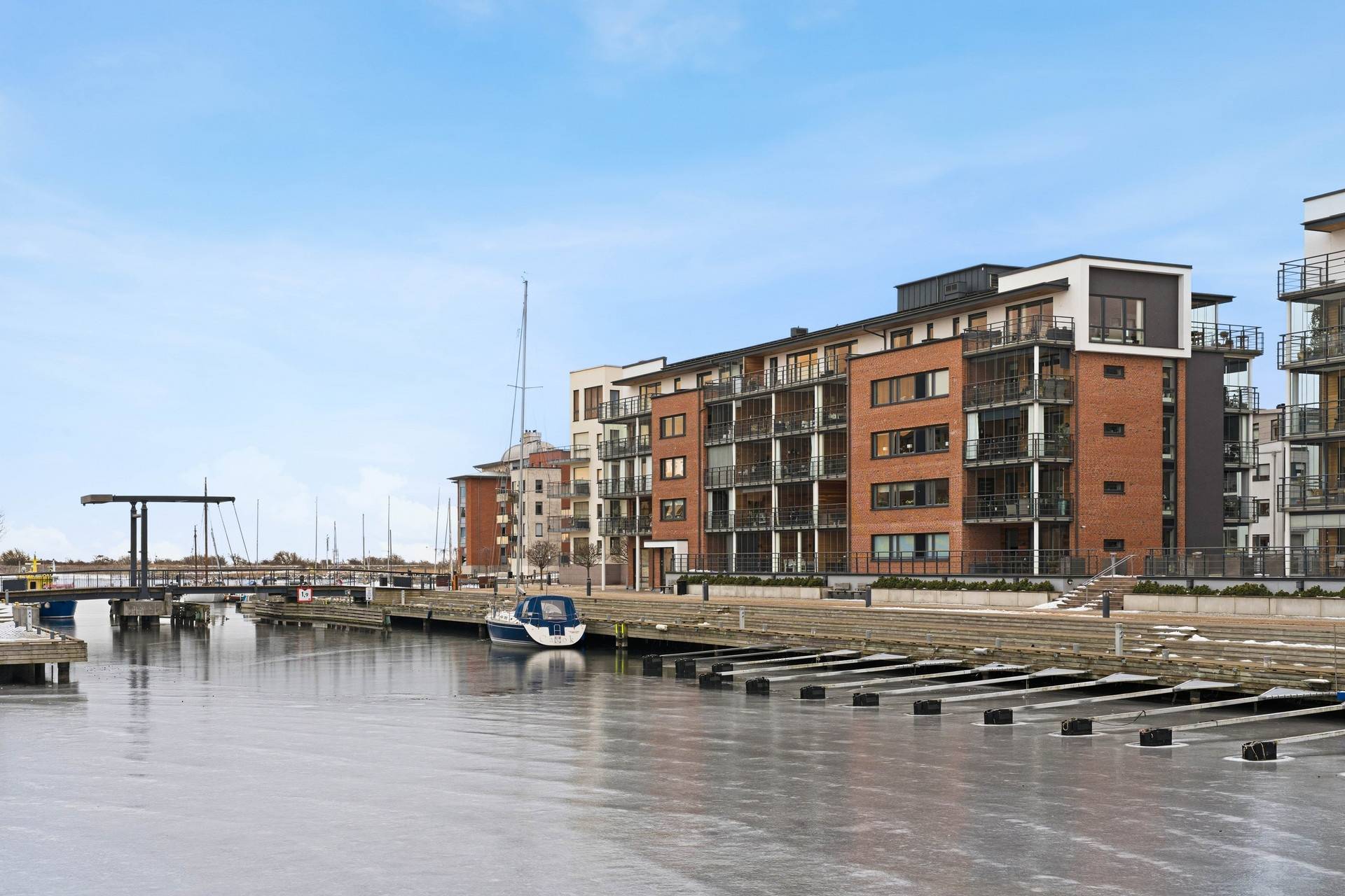 Välkommen till denna unika och stilfulla takvåning om 106 kvm, högst upp i huset på våning 5 av 5. Här bor du ostört med ett fantastiskt ljusinsläpp från tre väderstreck och med en boendemiljö som kombinerar elegans, rymd och livskvalitet. Bostaden erbjuder en social och inbjudande öppen planlösning där kök och vardagsrum samspelar i en harmonisk helhet - perfekt för både vardagsliv och umgänge. De generösa fönsterpartierna skapar en ljus och luftig atmosfär samtidigt som de suddar ut gränsen mellan inne och ute. Takvåningen rymmer två rogivande sovrum, ett smakfullt badrum samt en separat gästtoalett - en praktisk och genomtänkt planlösning som passar både familjen och den som uppskattar extra komfort. Bostadens absoluta signum är de två stora takterrasserna som erbjuder olika uttryck och upplevelser. Den ena vetter mot väster och bjuder på vackra kvällssolnedgångar samt en rogivande havsglimt. Den andra terrassen vetter mot charmiga byggnader och den stillsamma vattenkanalen - en perfekt plats för morgonkaffet eller avkopplande stunder i en inspirerande miljö. Dessutom finns det en stor inglasad balkong mot väst. P-plats finns i källaren (separat kö). Nyhamn är ett levande och trivsamt område mitt i centrala Landskrona där stadsliv möter kustkänsla. Här bor du med Öresund och småbåtshamnen som närmaste granne, omgiven av restauranger, kaféer, shopping och service inom gångavstånd. Promenadstråk längs vattnet, den populära citystranden, utomhusbadet Citadellbadet och den historiska Citadellen skapar en attraktiv livsmiljö för både vardag och helgaktiviteter. Från Nyhamn har du också nära till kollektivtrafik och staden i övrigt, samtidigt som den marina atmosfären ger en unik känsla av rymd och liv vid havet.27 images