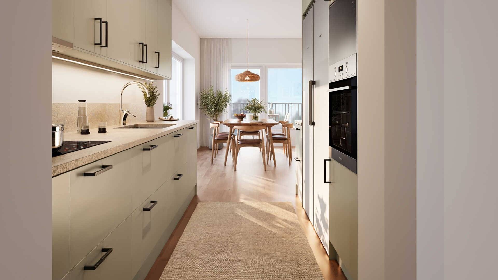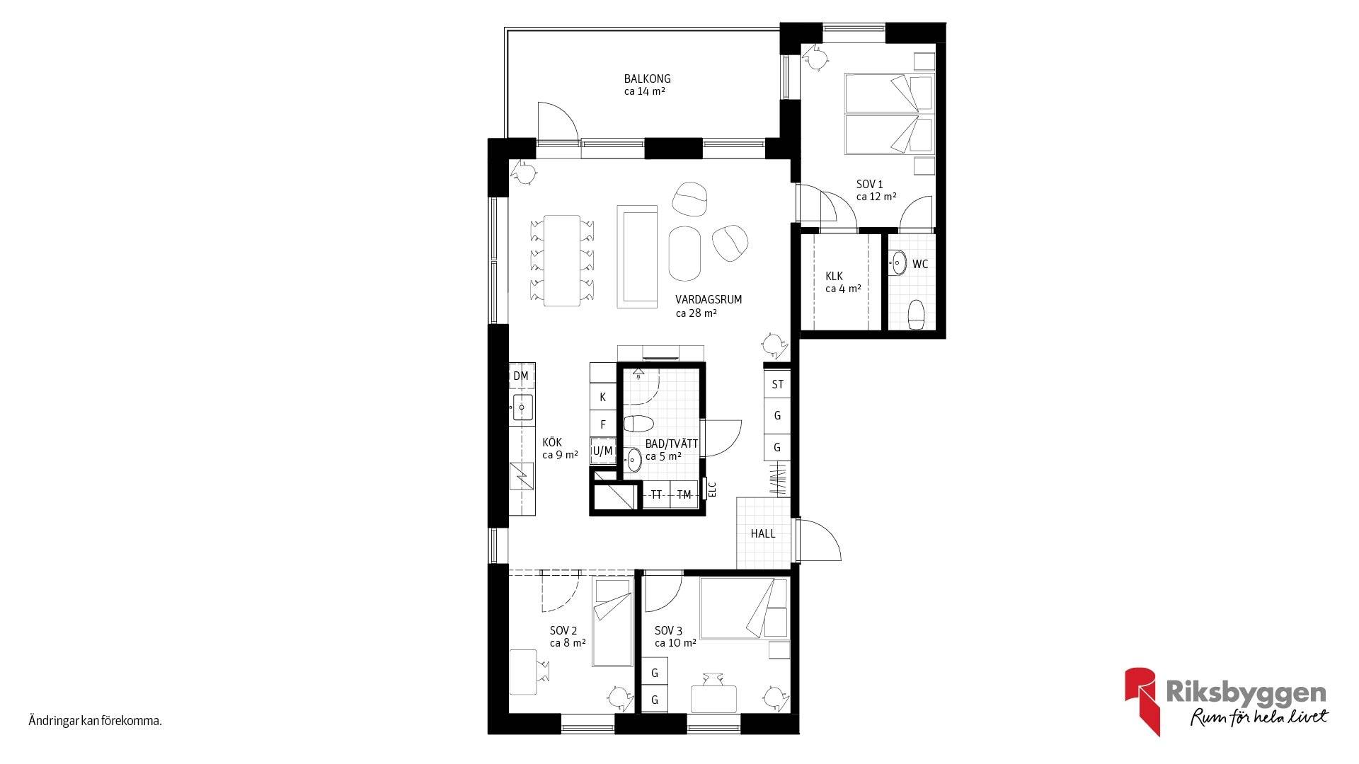 Rymlig och flexibel fyra med västerbalkong - privat masterdel och generösa sociala ytor Välkommen till ett hem som erbjuder det lilla extra i både yta, planlösning och livskvalitet. Denna välplanerade fyra om ca 96 kvm kombinerar stora sociala ytor med en smart privatdel - perfekt för familjen, paret som vill ha gott om plats eller dig som prioriterar komfort och flexibilitet. Redan i entrén möts du av en genomtänkt planlösning som leder vidare till bostadens hjärta: det generösa vardagsrummet och köket i öppen och social disposition. Här finns gott om plats för både större matbord och sällskapsdel, och den öppna känslan gör hemmet lika trevligt till vardags som vid middagsbjudningar. Från vardagsrummet nås balkongen i västerläge, där eftermiddags- och kvällssolen skapar en naturlig förlängning av hemmet - en härlig plats för avkoppling, middagar och sommarkvällar. Köket är modernt och stilrent med bra arbetsytor och full utrustning i form av integrerad diskmaskin, ugn och mikro i högskåp samt kyl och frys - funktionellt, snyggt och lätt att trivas i. Bostaden erbjuder en tydlig privatdel med master bedroom, walk-in-closet och egen WC, vilket ger en hotellkänsla i vardagen och extra bekvämlighet för dig som värdesätter avskildhet. Utöver detta finns ytterligare sovrum som passar utmärkt som barnrum, gästrum eller hemmakontor. Planlösningen är dessutom flexibel - det mindre sovrummet i anslutning till köket kan väljas bort för att istället skapa ännu större och mer luftiga sällskapsytor. Ett perfekt alternativ för dig som vill anpassa bostaden efter livsstil och behov. Det helkaklade badrummet är smakfullt inrett och utrustat med egna tvättmöjligheter, vilket förenklar vardagen ytterligare. Ett stilrent, modernt och genomtänkt hem där elegans möter funktion – i ett nyproduktionsprojekt som uppskattas av många. Riksbyggens Trygghetslöfte ger dig ekonomisk trygghet mot oförutsägbara händelser.21 images