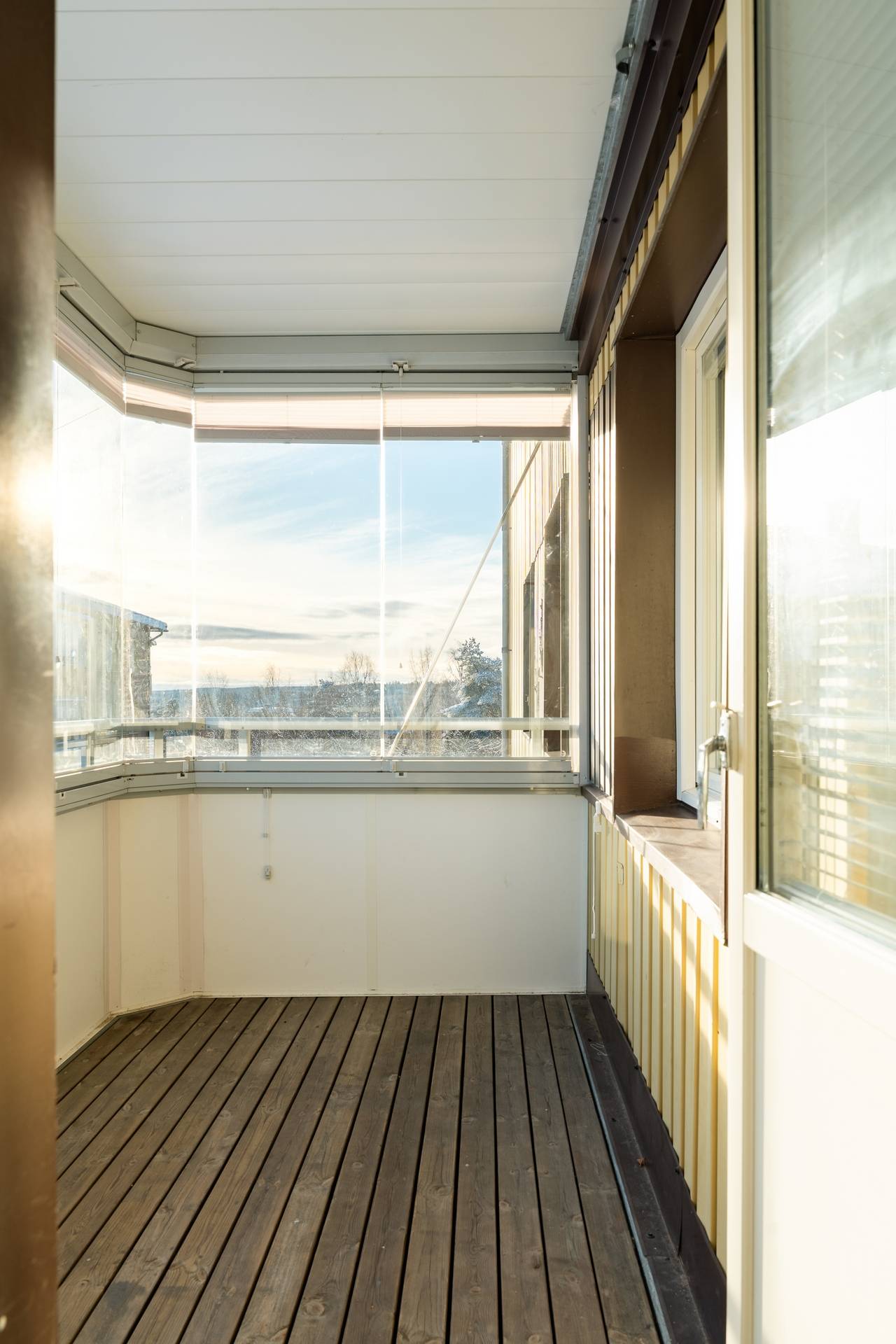 Här bor du högt, lugnt och insynsskyddat med fönster åt två håll i vardagsrummet vilket ger ett härligt ljusflöde och en rymlig känsla genom hela bostaden. Den inglasade balkongen blir ett naturligt More...