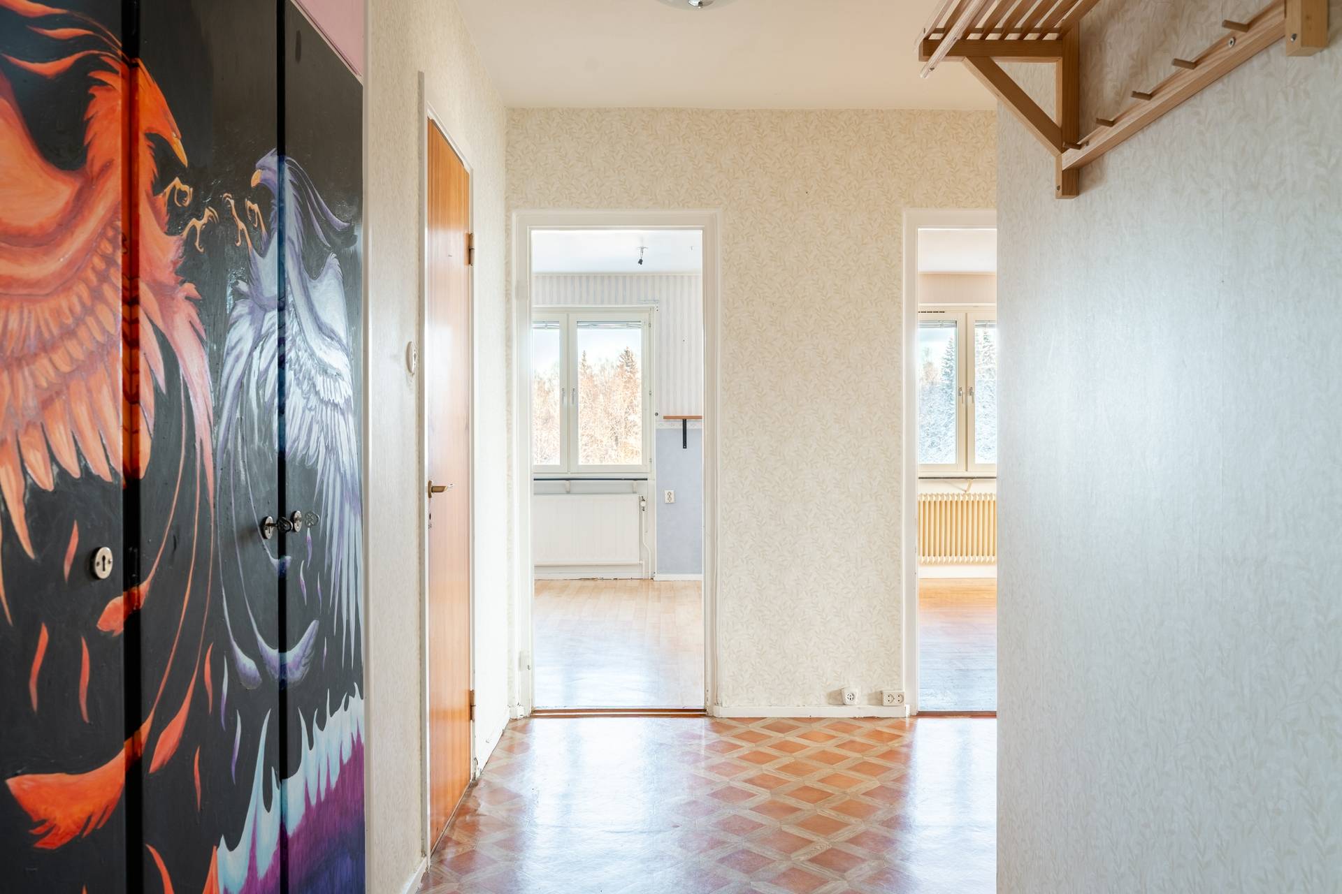 Här bor du högt, lugnt och insynsskyddat med fönster åt två håll i vardagsrummet vilket ger ett härligt ljusflöde och en rymlig känsla genom hela bostaden. Den inglasade balkongen blir ett naturligt extra rum året runt – perfekt för morgonkaffet, en bokstund eller för att njuta av eftermiddagssolen i en skyddad miljö. Sovrummet är lugnt och rymligt, med goda möjligheter till förvaring. Några få promenadsteg utanför porten finns en busshållplats som ger smidiga förbindelser och på kort promenadavstånd når du även centrum med service och butiker. Dessutom bor du nära skog och natur – perfekt för dig som uppskattar promenader, löpning eller bara ett avbrott från vardagen. En trivsam, lättskött och bekväm bostad med både hiss och utmärkta kommunikationer – varmt välkommen att upptäcka den på plats!17 images