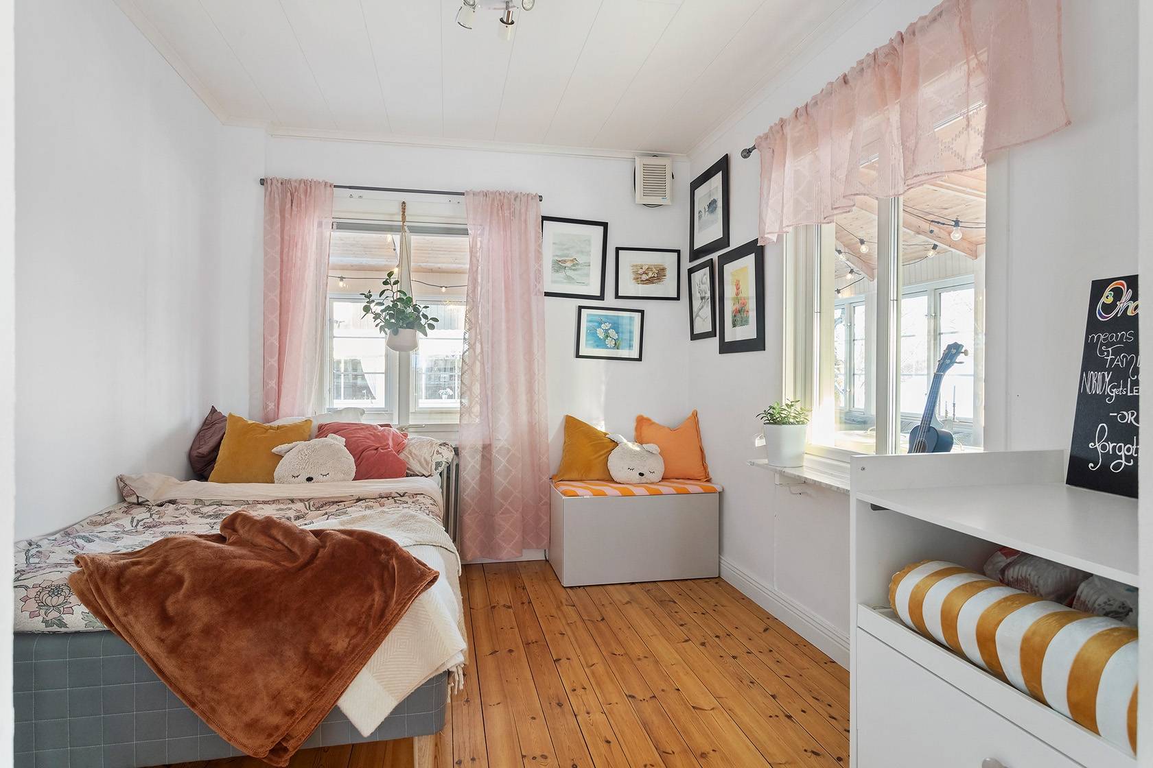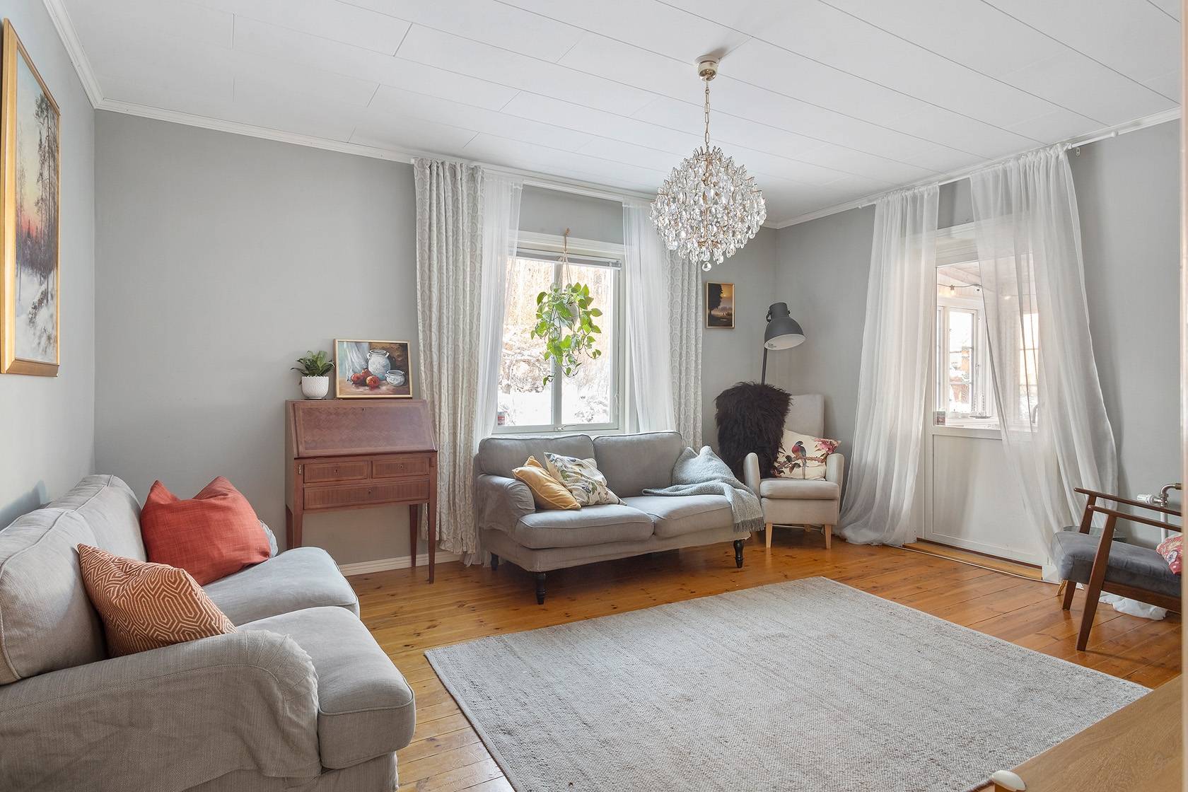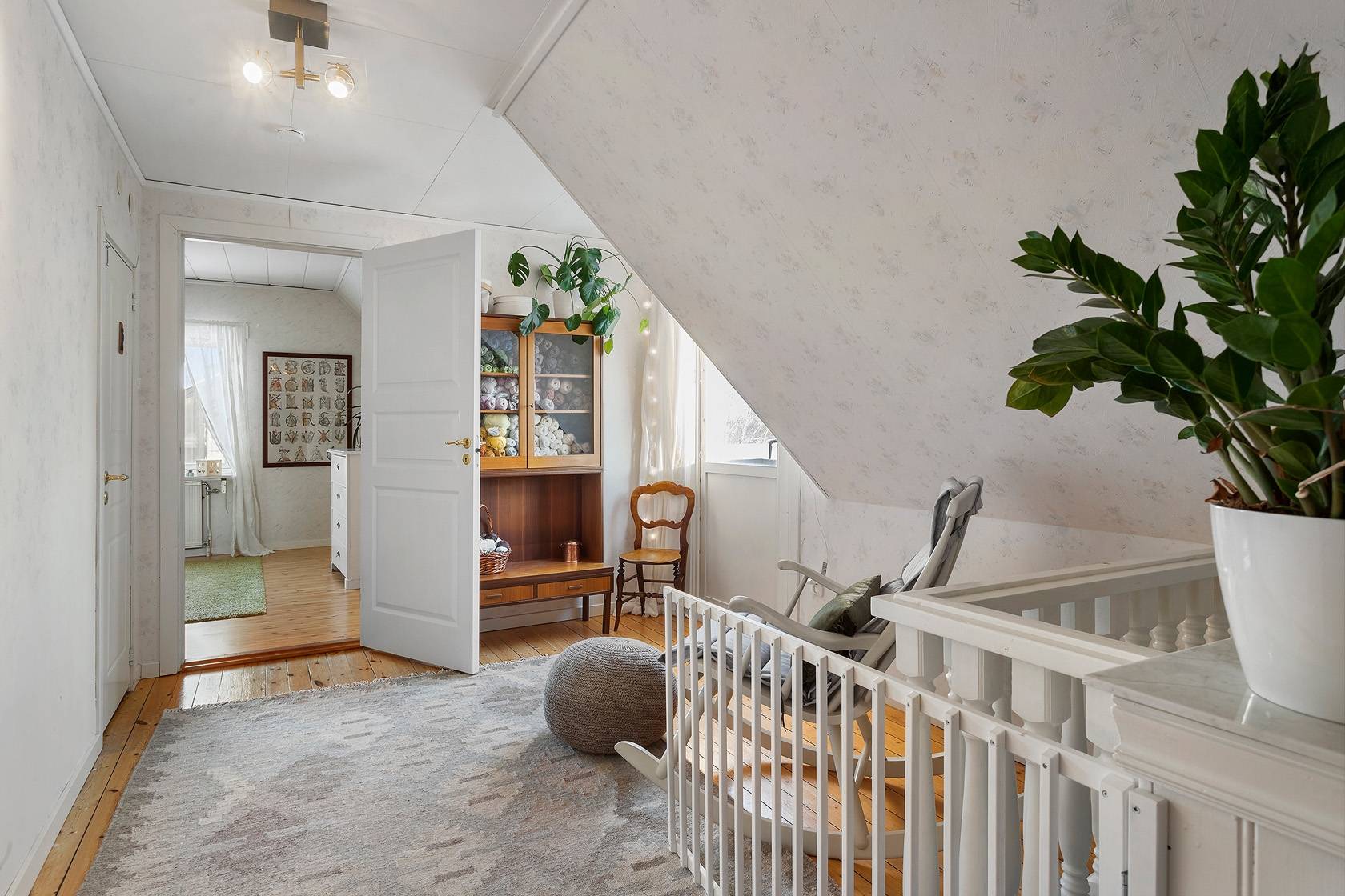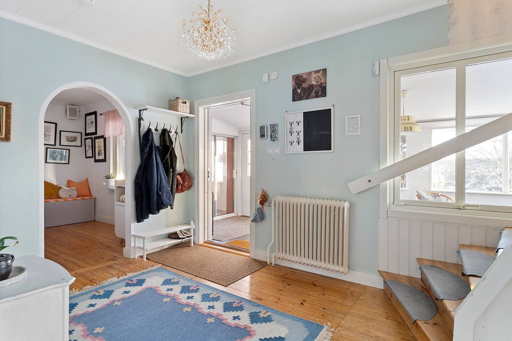 Välkommen till Kvinnersta Fredrikshäll och detta hemtrevliga hus med karaktär! Här möts du av charmiga detaljer, vackra trägolv, murstock och en varm känsla som sätter tonen för hela hemmet. Boytan uppgår till 90 kvm, och därtill finns ett stort inglasat uterum om cirka 40 kvm – perfekt för att duka upp för stora sällkap eller ha som extra sällskapsyta. Entréplanet erbjuder ett rymligt kök renoverat 2020 i varma toner, med gott om plats för matbord. Intill köket ligger vardagsrummet med fint ljusinsläpp och utgång till det generösa uterummet – en naturlig förlängning av hemmet med plats för både långbord och soffgrupp eller kanske som framtida utökad boyta för den som vill isolera och skapa mer plats för familjen. På entréplanet finns även ett av de tre möjliga sovrummen. En trappa upp väntar två rymliga sovrum, en toalett samt utgång till balkong. Under golven döljer sig vackra trägolv som väntar på att få komma fram igen och ge övervåningen samma genuina känsla som nedervåningen. Källaren erbjuder flera praktiska utrymmen: badrum, relaxavdelning med dusch, liten tvättstuga, allrum samt verkstad/garage – gott om plats för både avkoppling och hobby. Huset har genomgått flera viktiga förbättringar under senare år, bland annat nytt tak, flera utbytta fönster, fiber, utförd dränering, bergvärme, installerade luftvärmepumpar. Fastigheten ligger högt och insynsskyddat med ett lugnt och enskilt läge – här hörs fågelsång och naturens ljud snarare än trafik. Den lummiga trädgården bjuder på fruktträd, sandlåda för barnen och en generös gräsyta för lek och samvaro. Samtidigt finns goda kommunikationer som gör det enkelt att ta sig in till stan. På tomten finns garage. Här bor du med närhet till promenader i naturen, mortionsspår, Eskilstuna golfklubb, Idrottsandläggningar för bland annat friidrott, tennis, fotboll och ishall. Närhet till motorvägen vilket gör det idealiskt för pendlaren. Kvinnersta Fredrikshäll är ett hem för dig som söker charm, rymd och möjligheten att forma boendet efter familjens behov.39 images
