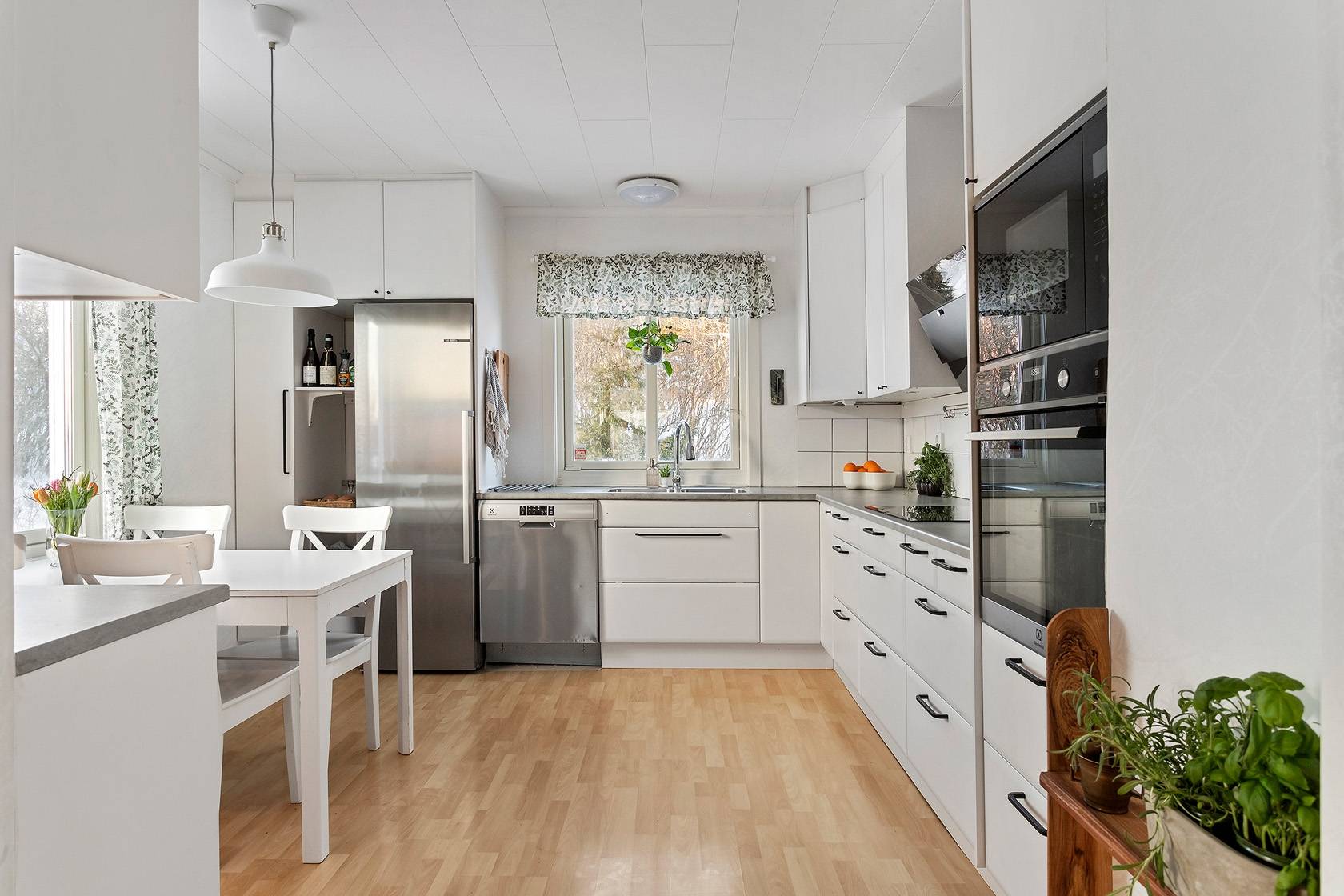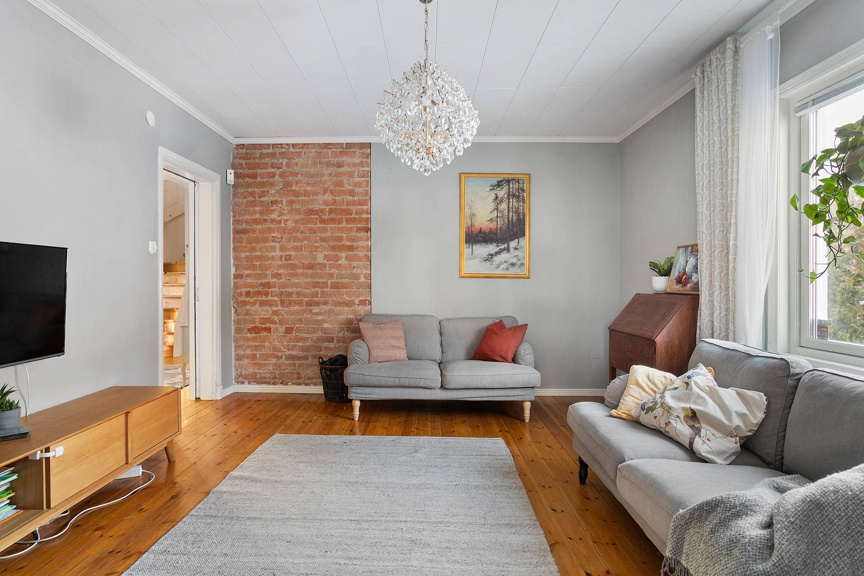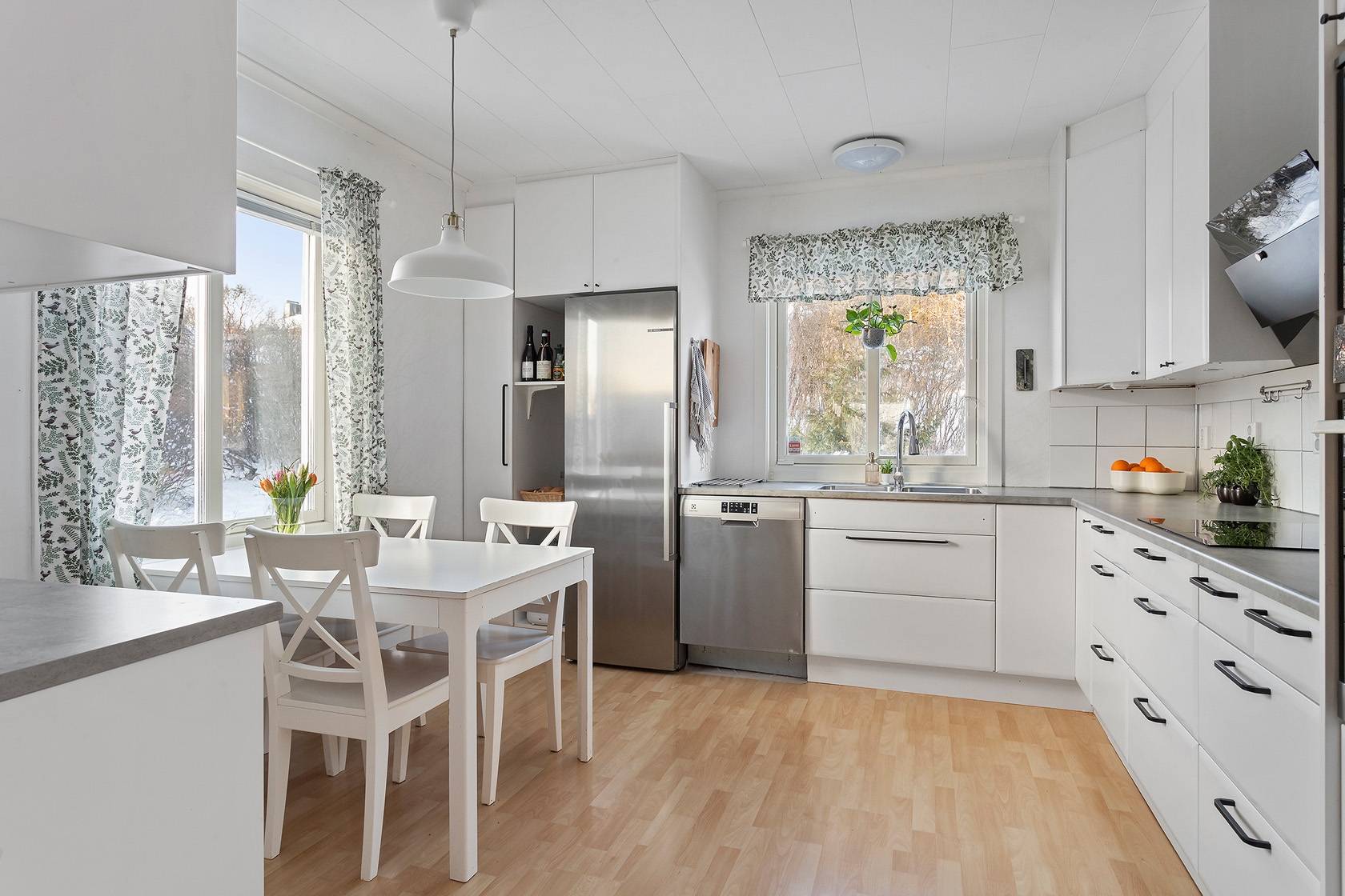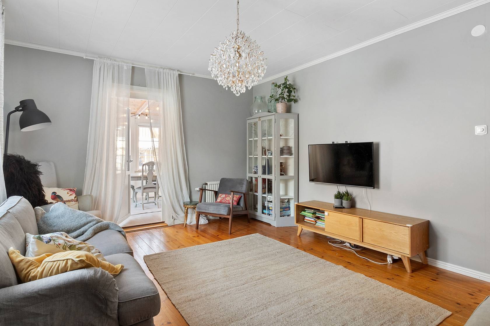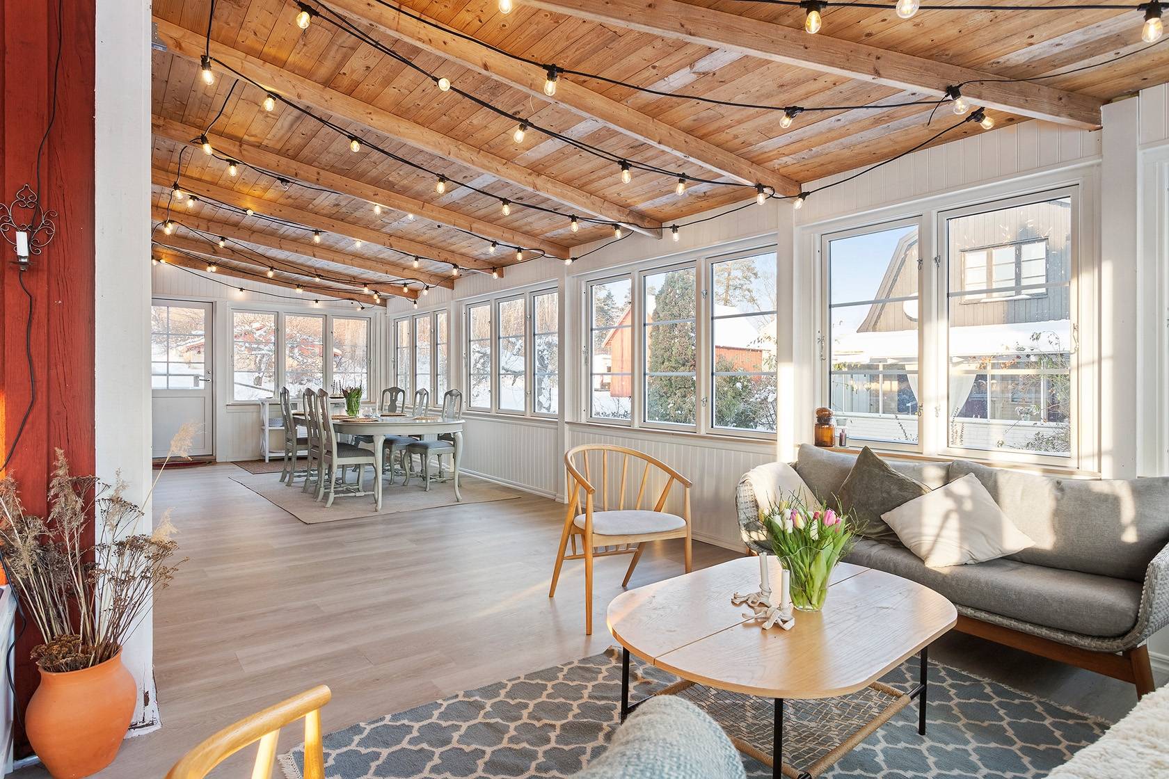 Välkommen till Kvinnersta Fredrikshäll och detta hemtrevliga hus med karaktär! Här möts du av charmiga detaljer, vackra trägolv, murstock och en varm känsla som sätter tonen för hela hemmet. Boytan uppgår till 90 kvm, och därtill finns ett stort inglasat uterum om cirka 40 kvm – perfekt för att duka upp för stora sällkap eller ha som extra sällskapsyta. Entréplanet erbjuder ett rymligt kök renoverat 2020 i varma toner, med gott om plats för matbord. Intill köket ligger vardagsrummet med fint ljusinsläpp och utgång till det generösa uterummet – en naturlig förlängning av hemmet med plats för både långbord och soffgrupp eller kanske som framtida utökad boyta för den som vill isolera och skapa mer plats för familjen. På entréplanet finns även ett av de tre möjliga sovrummen. En trappa upp väntar två rymliga sovrum, en toalett samt utgång till balkong. Under golven döljer sig vackra trägolv som väntar på att få komma fram igen och ge övervåningen samma genuina känsla som nedervåningen. Källaren erbjuder flera praktiska utrymmen: badrum, relaxavdelning med dusch, liten tvättstuga, allrum samt verkstad/garage – gott om plats för både avkoppling och hobby. Huset har genomgått flera viktiga förbättringar under senare år, bland annat nytt tak, flera utbytta fönster, fiber, utförd dränering, bergvärme, installerade luftvärmepumpar. Fastigheten ligger högt och insynsskyddat med ett lugnt och enskilt läge – här hörs fågelsång och naturens ljud snarare än trafik. Den lummiga trädgården bjuder på fruktträd, sandlåda för barnen och en generös gräsyta för lek och samvaro. Samtidigt finns goda kommunikationer som gör det enkelt att ta sig in till stan. På tomten finns garage. Här bor du med närhet till promenader i naturen, mortionsspår, Eskilstuna golfklubb, Idrottsandläggningar för bland annat friidrott, tennis, fotboll och ishall. Närhet till motorvägen vilket gör det idealiskt för pendlaren. Kvinnersta Fredrikshäll är ett hem för dig som söker charm, rymd och möjligheten att forma boendet efter familjens behov.39 images