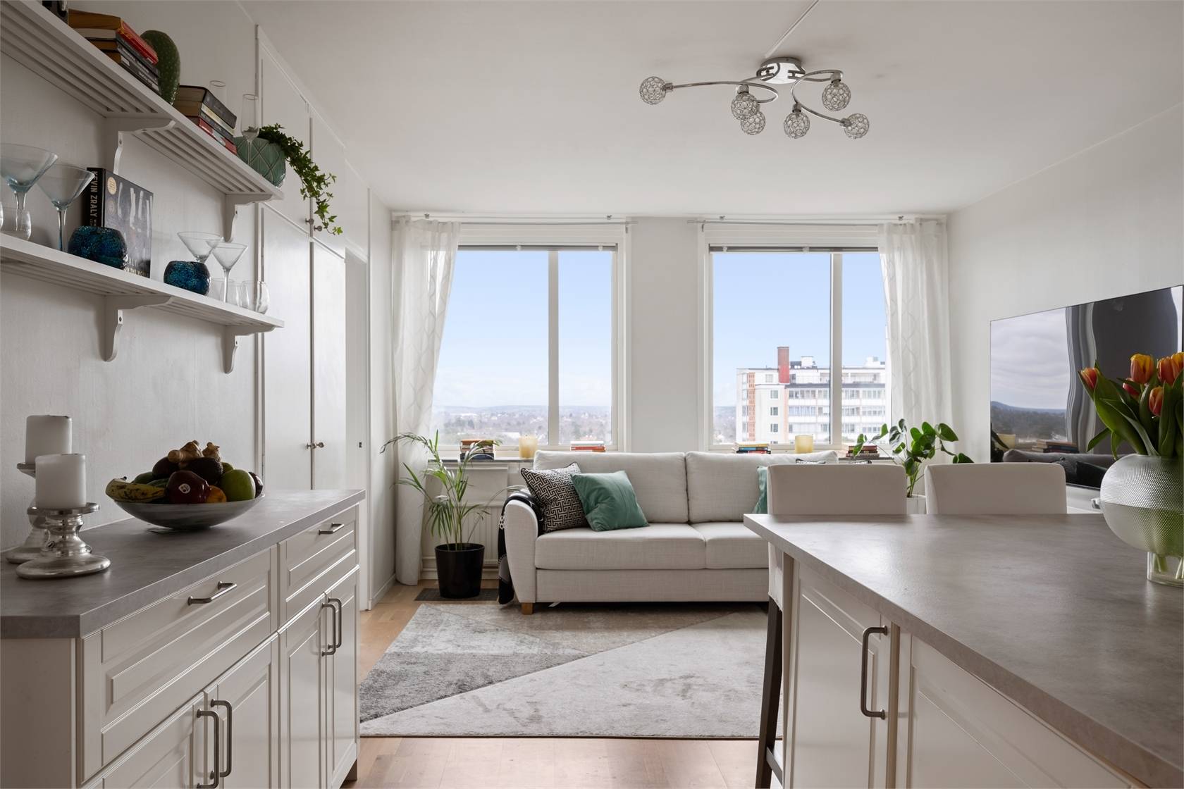 Hjärtligt välkomna till denna ljusa och smart ombyggda 1 rok disponerad som 2:a en toppfin bostad om 35,9 kvm med ett fantastiskt läge högst upp i huset på Mörbydalen 18. Här bor du i en välplanerad lägenhet som passar lika bra för en person som för ett par, med milsvid utsikt över Djursholm och Stocksund samt direkt tillgång till en stor gemensam takterrass i soligt syd- och västläge. Lägenheten erbjuder en modern och social planlösning där vardagsrum och kök möts i en öppen och inbjudande yta. I centrum finns en stilren köksö som inte bara ger extra arbetsyta utan även fungerar utmärkt som matplats med plats för barstolar, perfekt för både middagar med vänner och lugna hemmakvällar. Köket är fullt utrustat och kombinerar funktionalitet med elegant design. Vardagsrummet präglas av ett härligt ljusinsläpp från stora fönster som skapar en luftig och trivsam atmosfär året om. Här finns gott om utrymme för både umgänge och avkoppling. Sovdelen är smart planerad och erbjuder praktisk, platsbyggd förvaring som maximerar ytan och skapar en harmonisk och ordnad miljö. Detta är ett hem för dig som söker något utöver det vanliga, en bostad med genomtänkta lösningar, sociala ytor, fantastisk utsikt och ett svårslaget läge. Föreningen är välskött med god ekonomi och låg belåning. Lägenheten är attraktivt belägen i samma hus som ICA Myran och endast en kort promenad från tunnelbanan vid Mörby centrum samt Danderyds sjukhus med utmärkta kommunikationer via buss och tunnelbanans röda linje. Härifrån når du Universitetet på cirka 6 minuter, Tekniska Högskolan på 9 minuter och T-Centralen på cirka 15 minuter. Inom kort promenadavstånd finns även skolor, förskolor, simhall, bad vid Edsviken samt Stockholms golfklubb med en vacker 18-hålsbana. Kontakta ansvarig mäklare Roberto Gonzalez för mer information: Tel: 072-147 95 65 Mail: [email protected]16 images