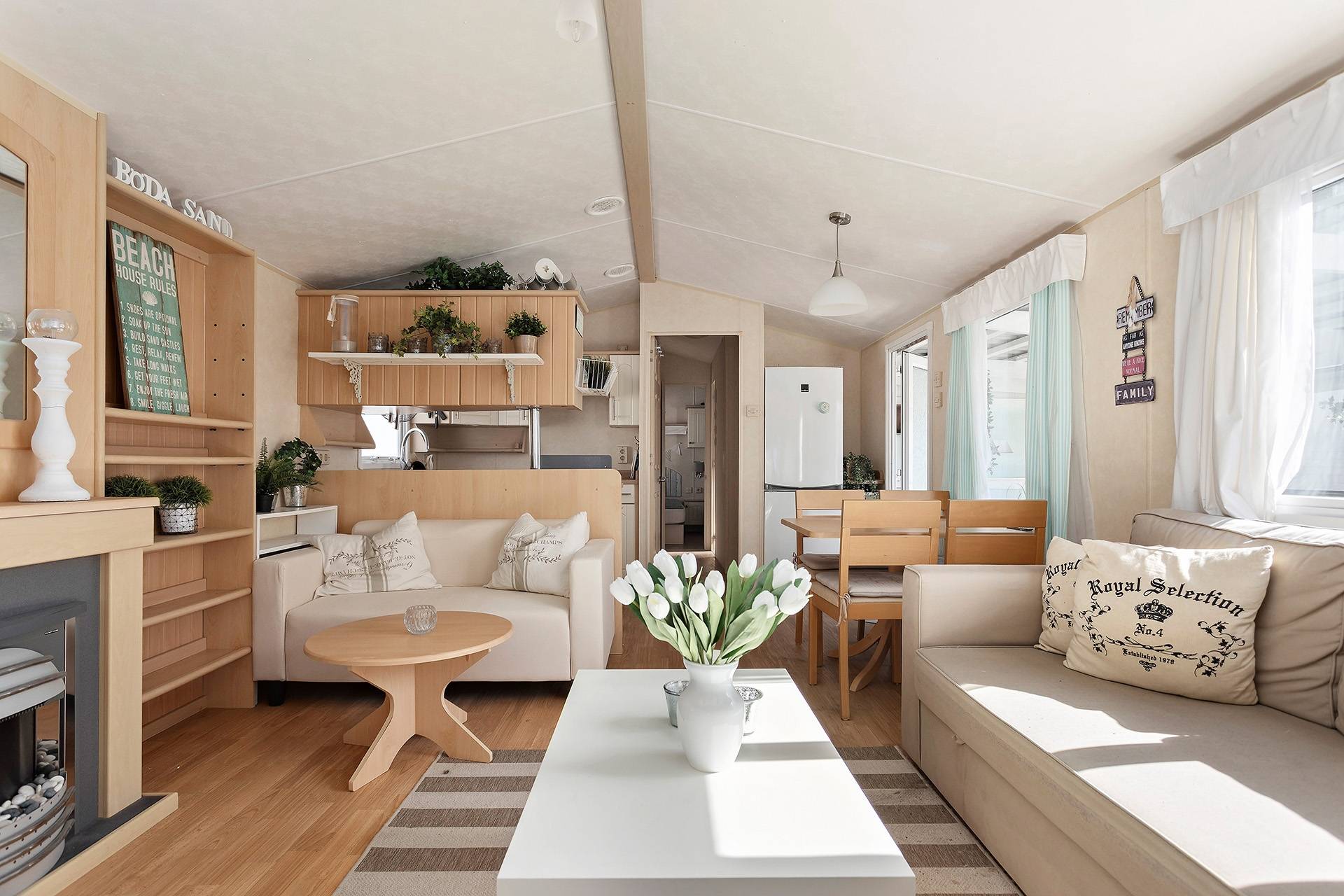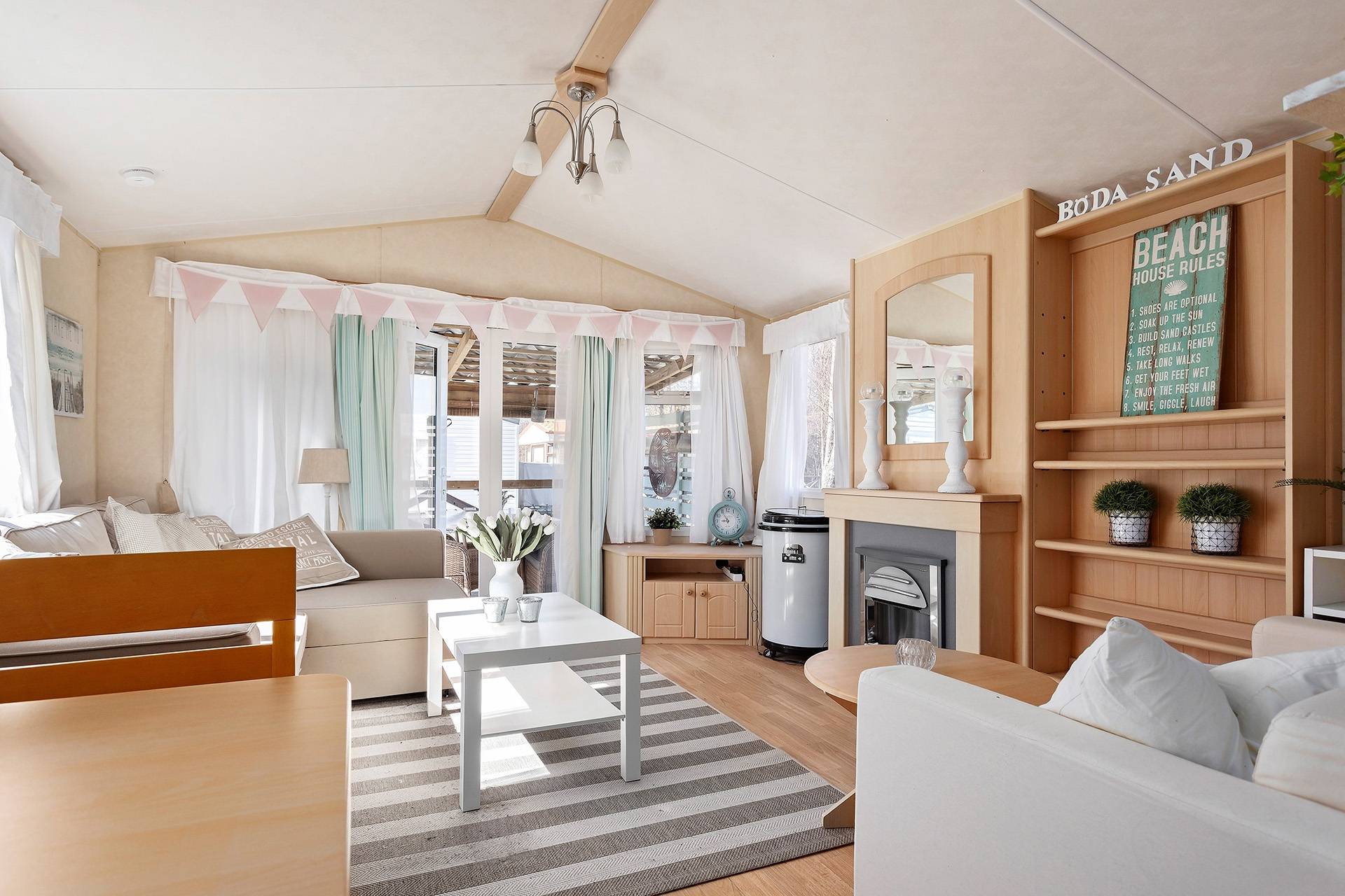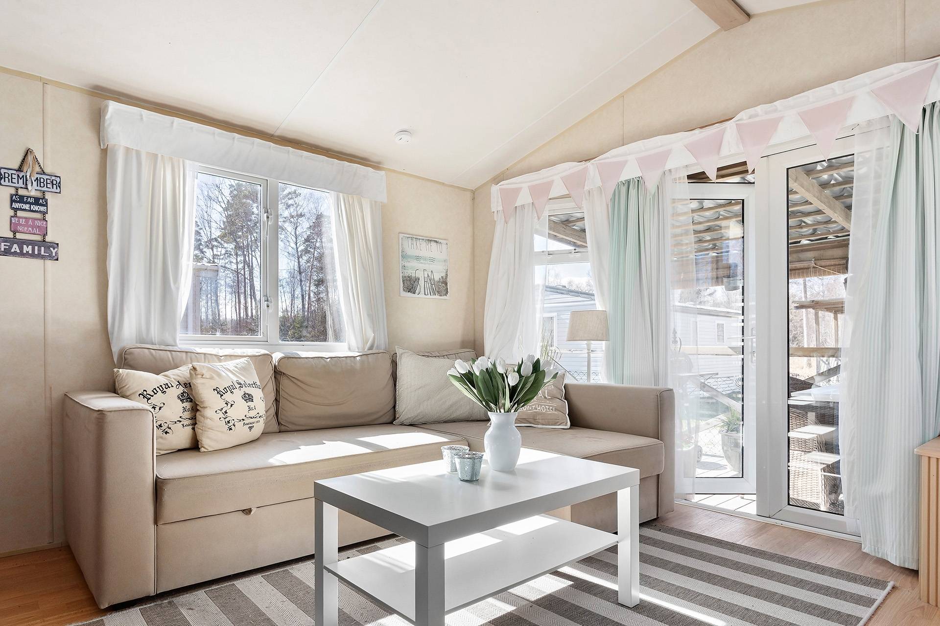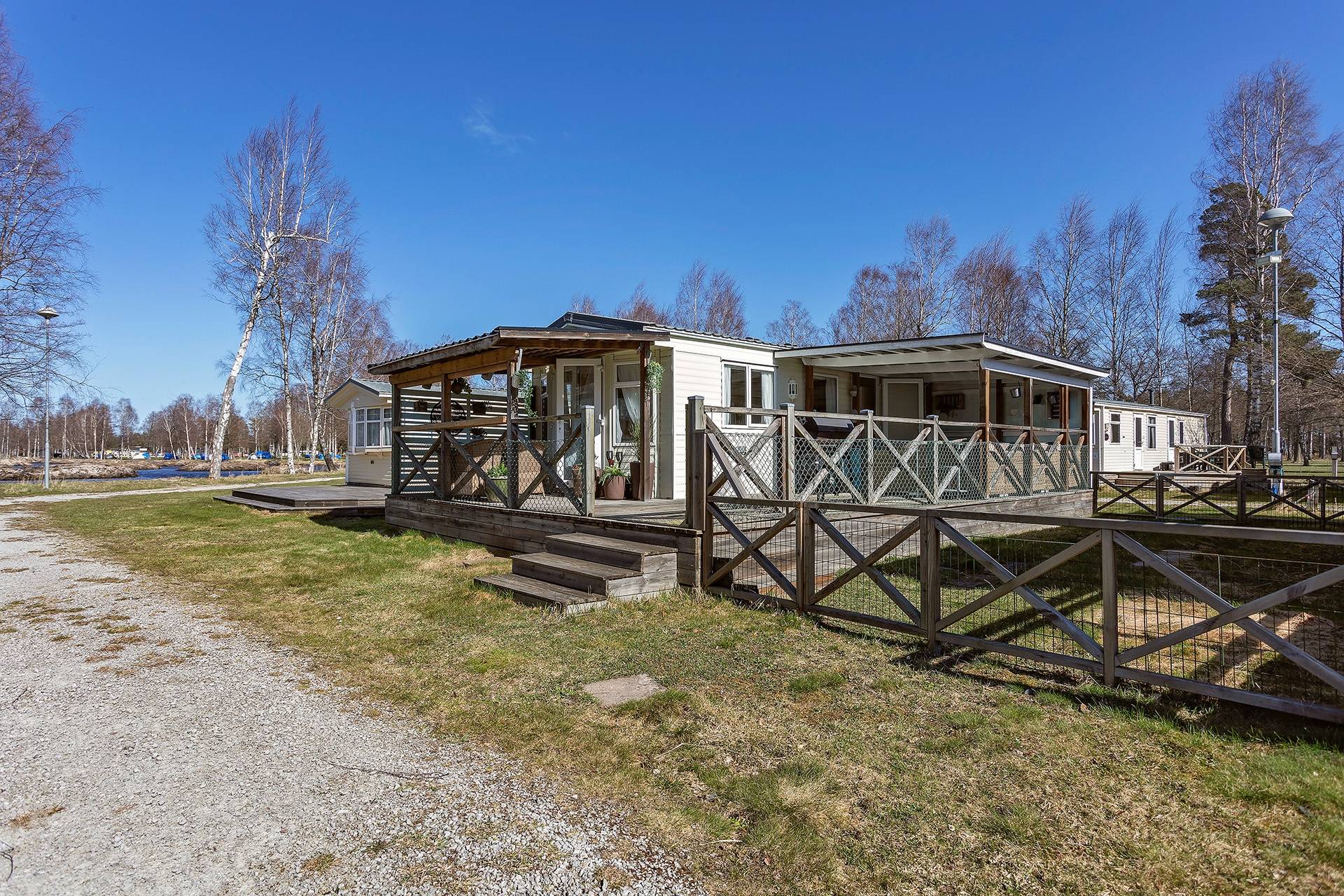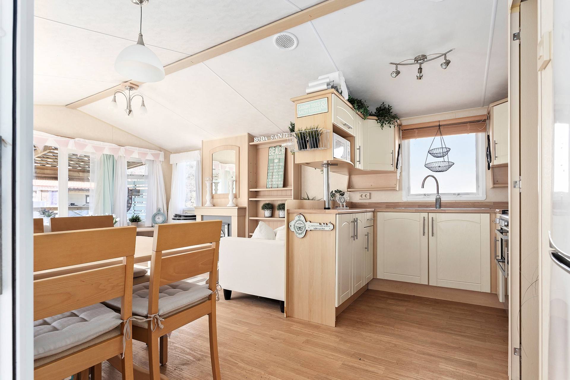Välkommen till denna charmiga villavagn med ett rofyllt läge på populära Böda Sand Camping – en plats där lugnet möter havets närhet. Här bor du i ett stillsamt område med kort promenadavstånd till Bödas vidsträckta och finkorniga sandstrand, perfekt för lata dagar i solen och kvällspromenader längs vattnet. Villavagnen om generösa 10,8 x 3,7 meter erbjuder ett trivsamt och välplanerat boende. Här möts du av ett ljust och rymligt vardagsrum med en stämningshöjande värmefläkt förklädd som en braskamin som skapar en ombonad känsla under svalare kvällar. Köket är funktionellt och inbjuder till matlagning i goda vänners lag, medan de två sovrummen erbjuder bekvämt boende – varav ett med dubbelsäng. Badrummet är utrustat med dusch för extra komfort. Utomhusmiljön är något alldeles extra. Det tilltagna altandäcket som löper runt halva vagnen blir en naturlig samlingsplats för både avkoppling och sociala stunder. Här finns gott om plats för ett större soffmöblemang samt en rymlig matplats, perfekt för långa, ljumma middagar. De två takade delarna ger möjlighet att njuta av utelivet oavsett väder – från morgonkaffet i stillhet till kvällar fyllda av skratt och gemenskap. Villavagnen erbjuder dessutom god ventilation och möjlighet att installera luft-/luftvärmepump, vilket ger förutsättningar för ett behagligt inomhusklimat året om. Ett stort plus med villavagnen är att den erbjuder hela 6 sovplatser, och dessutom har campingen tillgång till wifi vilket gör vistelsen extra bekväm. Till villavagnen hör även en tillhörande markyta på högra sidan, vilket skapar extra utrymme för både avkoppling och egna möjligheter. Detta är ett boende för dig som söker något mer än bara en plats att vara på – här får du en sommaroas där varje dag bjuder in till lugn, närhet till naturen och livets enkla njutningar. Varmt välkommen att kontakta ansvarig mäklare för mer information!16 images