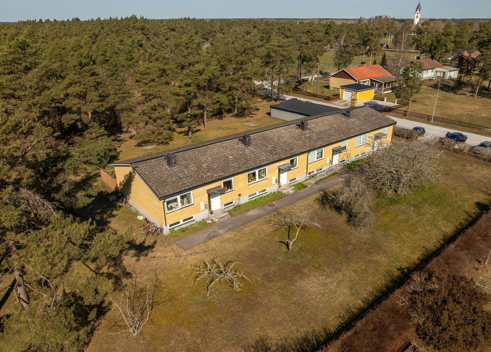 Tillfälle att förvärva välskött fastighet med god avkastning i Stånga på sydöstra Gotland. Beläget på stor tomt med lekplats och grönytor i lugnt villakvarter som gränsar mot stort grönområde. Byggnaden är uppdelad i fyra lika stora lägenheter om tre rum och kök, ca 80 kvm, i bottenvåning samt tillhörande källardel. Samtliga lägenheter uthyrda till permanentboende och hyresgästerna har besittningsrätt. PLANLÖSNING LÄGENHETER: Hall med avhängning, entré, trappa till källare, garderob. Kök med matplats, elspis, kyl & frys, fläkt, plastmatta eller parkettgolv. Äldre skåpinredningar med släta målade luckor. Sovrum med parkett eller plastmatta och dubbelgarderob. Sovrum med parkett eller plastmattan och garderob. Vardagsrum med parkett eller plastmatta, utgång till terrass i västläge med stenlagd yta. Badrum med wc, kaklade väggar (i två av lägenheterna) eller våtrumstapet (övriga två), dusch, handfat, våtrumsmatta (i tre av lägenheterna) eller klinkerlagt golv (i den fjärde). Källarvåning med gillestuga med plastmatta, förrådsrum. Toalett med plastmatta, wc och handfat. Stort förrådsrum. Matkällare. Tvättstuga med klädkammare, betonggolv, tvättmaskin, tvättbänk. Förrådsrum/torkrum. Den norra lägenheten har lite mindre källare då del av ytan utgörs av pannrum ca 15 kvm med entré från utsidan. Pannrummet inrymmer värmepump med varmvattenberedare. Fastighetsmäklaren har bilder på lägenheterna som spekulanter får ta del av vid förfrågan. Observera att denna typ av fastighet ofta har andra villkor för belåning så kontrollera finansieringsmöjlighet med din bank före eventuell visning.16 images