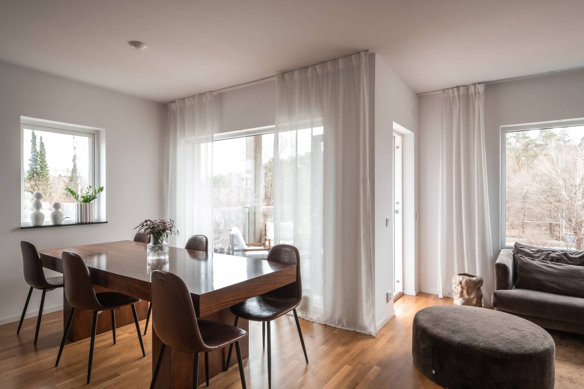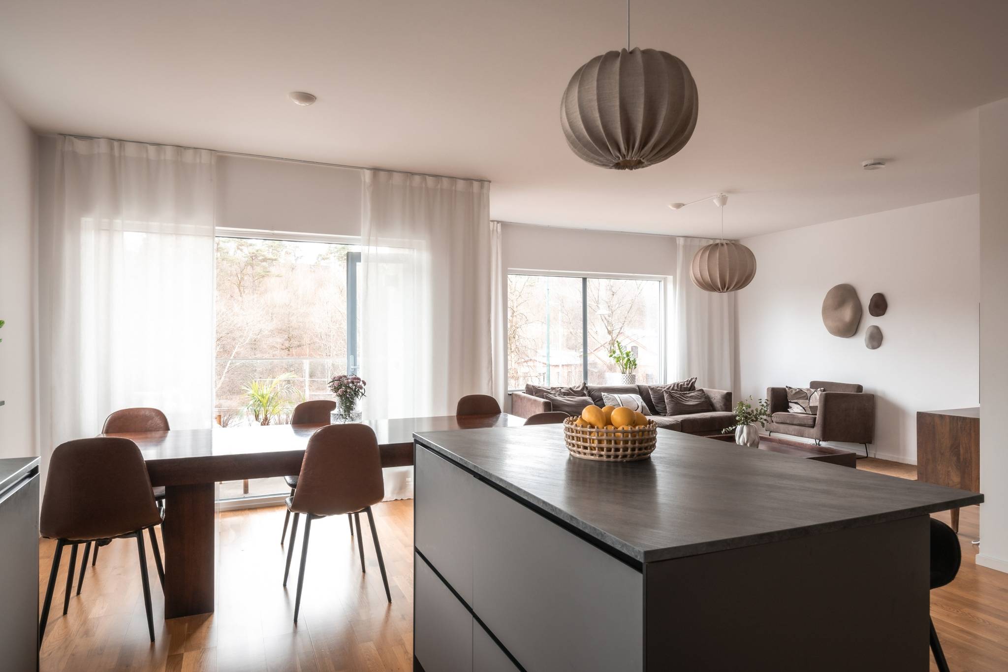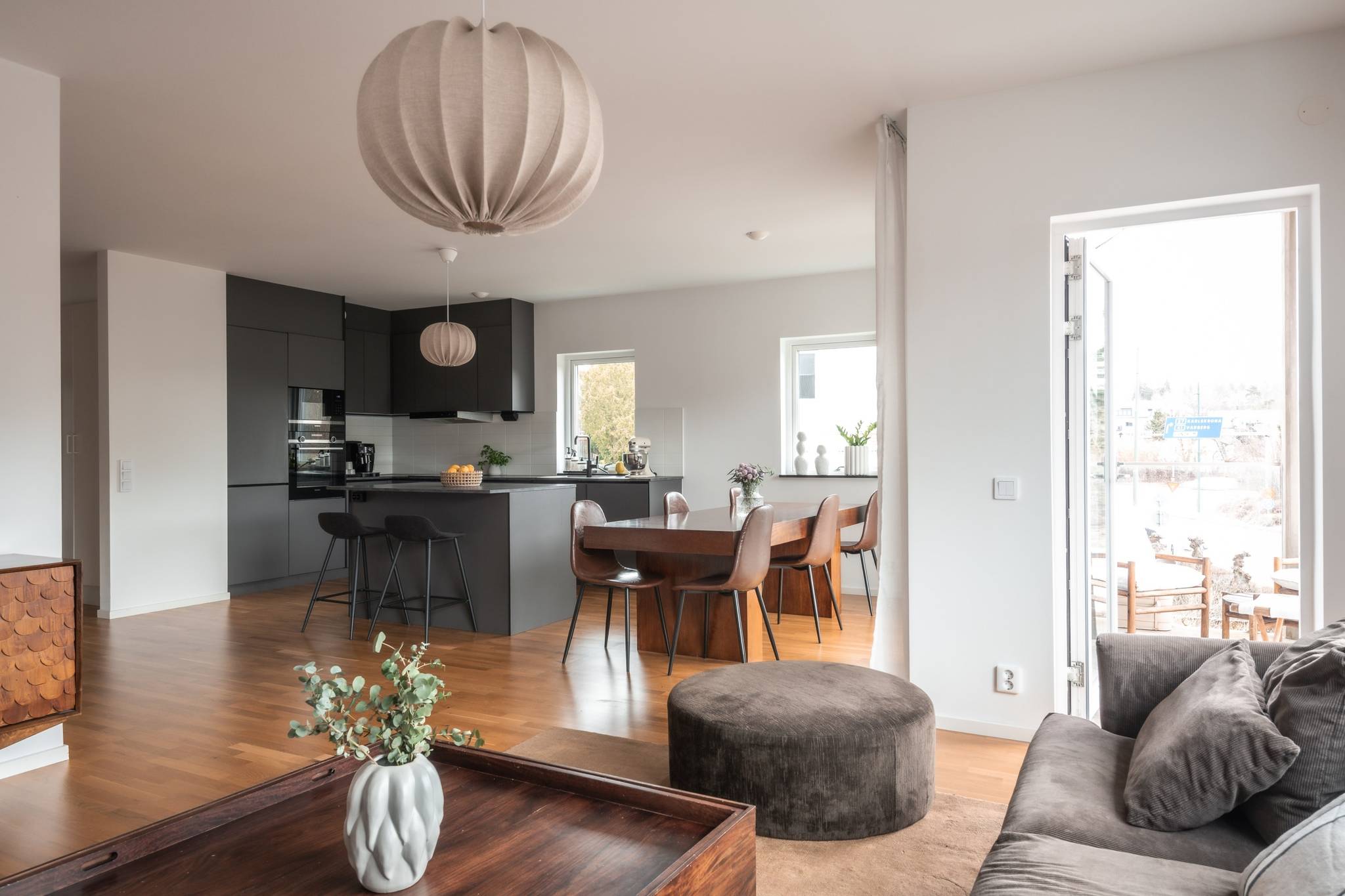 Välkommen till ett hem där modern elegans möter funktionalitet – en stilren och välplanerad trea på attraktiva Ållebergsgatan 5. Här möts du av en genomtänkt planlösning med ett generöst ljusinsläpp från stora fönsterpartier som tillsammans med de harmoniska färgvalen skapar en lugn och inbjudande atmosfär. Bostadens sociala ytor präglas av den öppna planlösningen mellan kök, matplats och vardagsrum – en naturlig samlingspunkt för både vardag och umgänge. Köket är modernt och smakfullt utformat med släta, mörka luckor, integrerade vitvaror och en centralt placerad köksö som både erbjuder arbetsyta och sittplatser. Här skapas en perfekt balans mellan estetik och funktion. Vardagsrummet är luftigt och lättmöblerat med plats för en generös soffgrupp. De stora fönsterpartierna förstärker känslan av rymd och ljus, och härifrån nås bostadens balkong – en trivsam förlängning av vardagsrummet med rofyllt läge. Bostaden erbjuder två sovrum i bra storlek. Det större sovrummet har en rogivande känsla med plats för dubbelsäng och förvaring, medan det andra rummet passar utmärkt som barnrum, arbetsrum eller gästrum. Det helkaklade badrummet är stilrent och funktionellt, utrustat med dusch samt egen tvättavdelning med både tvättmaskin och torktumlare – en bekväm lösning i vardagen. Genomgående parkettgolv i varm ton tillsammans med ljusa, harmoniska ytskikt ger bostaden en enhetlig och modern helhet. Ett hem att trivas i från första stund. På Ållebergsgatan bor du i ett lugnt och trivsamt område med närhet till både natur och stadens utbud. Här finns fina grönområden, promenadstråk och lekplatser som bidrar till en hög livskvalitet i vardagen. Samtidigt har du bekvämt avstånd till Borås centrum med ett brett utbud av restauranger, butiker och service. Goda kommunikationer i närområdet gör det enkelt att ta sig vidare, oavsett om du pendlar eller vill ta del av stadens puls. Ett attraktivt läge som kombinerar det bästa av två världar – lugn och närhet till stadsliv.14 images