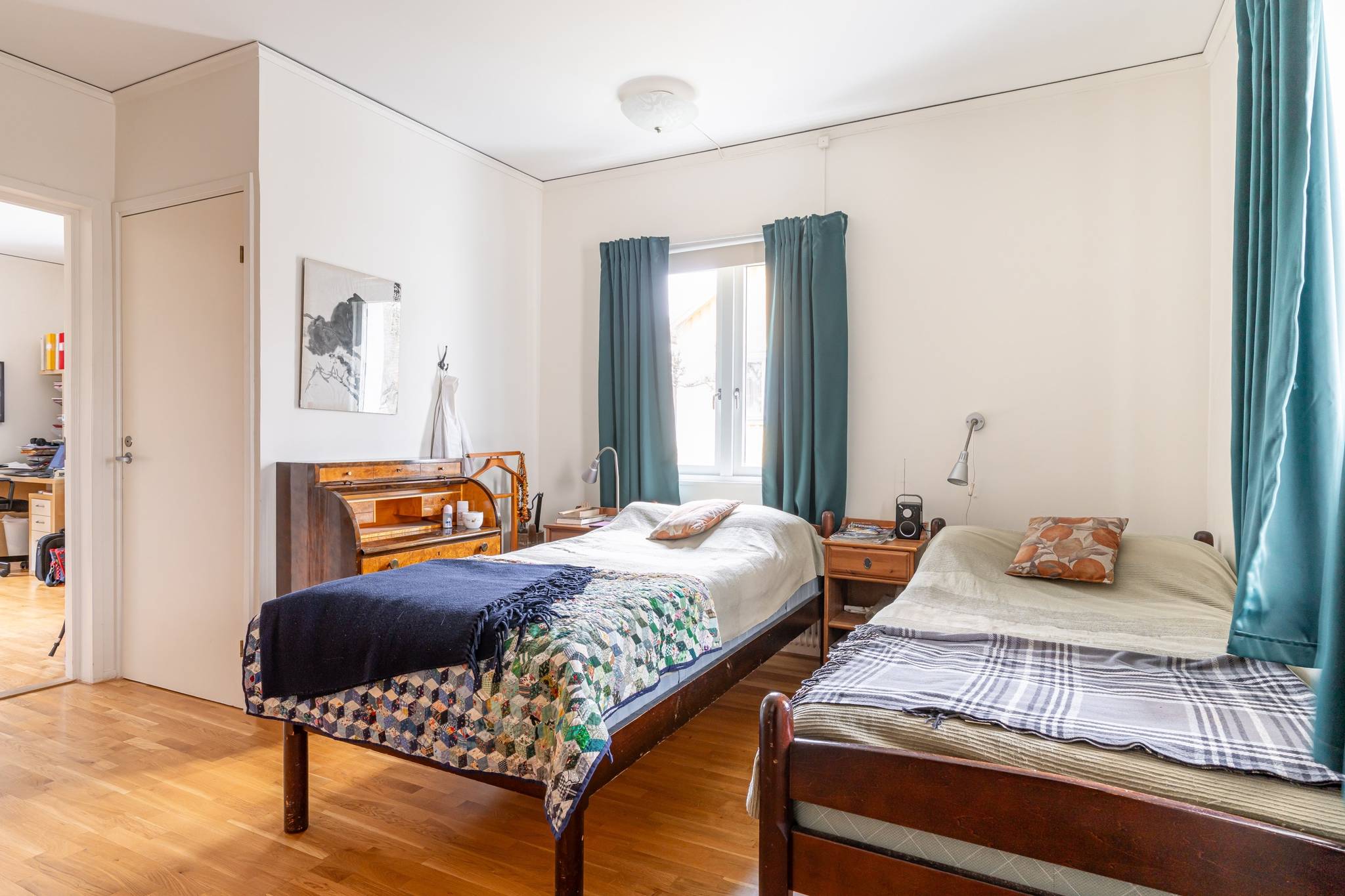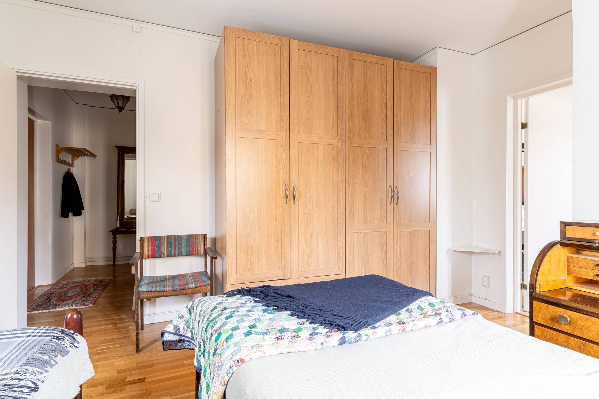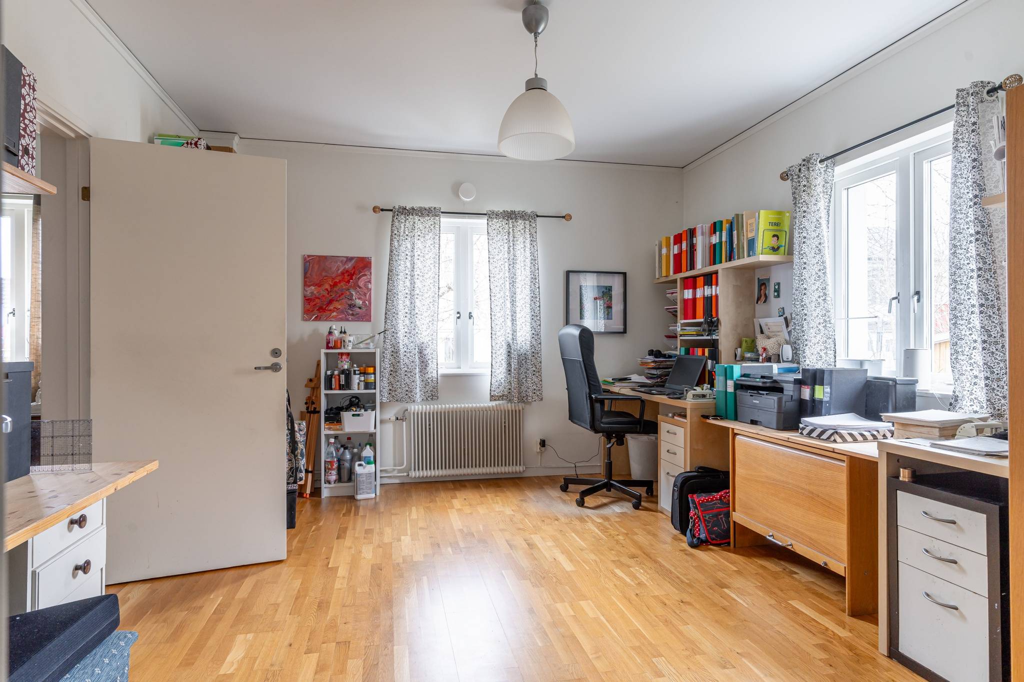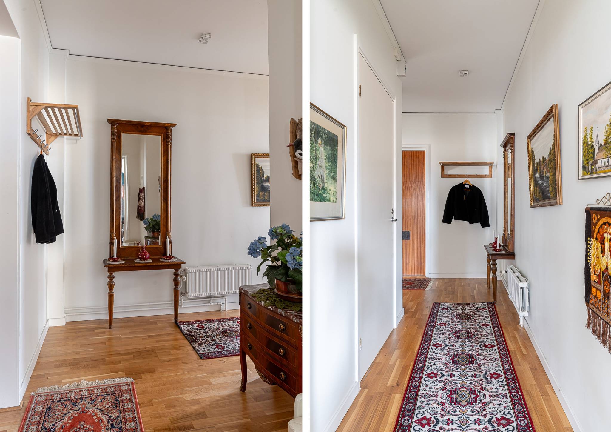 Välkommen till denna generösa och välplanerade fyrarumslägenhet i en trivsam och familjär förening! Här erbjuds hela 110 kvadratmeter fördelade över 4 rum och kök, med genomgående fina ytskikt i form av ekparkett och ljusa väggar. Bostadens hjärta utgörs av de stora, luftiga sällskapsytorna där den vackra kakelugnen skapar både karaktär och en inbjudande atmosfär. Det hemtrevliga köket är fullt utrustat och erbjuder dessutom gott om plats för ett matbord intill fönstret. Vardagsrum och matsal/salong ligger i fil och bjuder på en härlig rymd tack vare den generösa takhöjden samt stora fönsterpartier som släpper in rikligt med ljus. Lägenheten erbjuder två fräscha, helkaklade badrum – båda utrustade med dusch, varav det ena även har en praktisk tvättpelare. Bostaden erbjuder två stycken sovrum samt även en separat klädkammare. För ytterligare förvaring finns ett stort vindsförråd. Här bor du med ett bekvämt läge, endast några meter från välsorterad matbutik, apotek, restauranger och frisör. Inom kort gångavstånd finns även grundskola (F–9), fina grönområden samt goda bussförbindelser. Ett charmigt och bekvämt boende med det lilla extra – varmt välkommen på visning!17 images