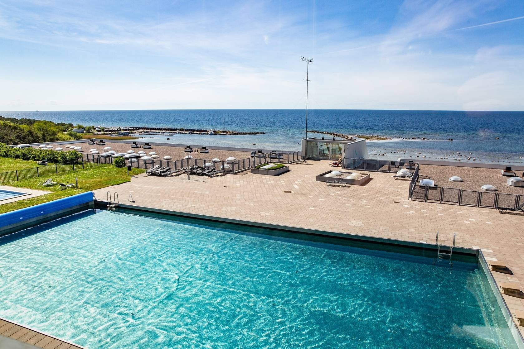 Fantastisk lägenhet med balkong om 22 m2. Optimalt planerad med 3 rum, varav 2 sovrum. Denna välplanerade trea håller hög standard då huset byggdes 2017. Köket och vardagsrummet disponeras i en öppen planlösning där blickarna direkt dras till den hänförande utsikten. Den rejäla balkongen mot havet ger ett fint ljus in i vardagsrummet och här kan man njuta av att se solnedgångarna över havet. Det helkaklade badrummet har golvvärme och en kombinerad tvättmaskin/torktumlare. Lägenheten har ett perfekt läge med närhet till grönområden och promenadavstånd till sandstrand. Här kan man avnjuta en picknick, jogga längs strandpromenaden som är en cirka 5 km lång promenad- och cykelväg som går längs kusten i norra Visby, eller varför inte hyra båtplats i Flundreviken. Restaurang Isola Bella ligger nere vid havet och om du blir sugen på fika finns populära Krusmyntagården som ligger ca 7 km norrut. • 3st pooler av varierande storlek på poolområdet, den största är 25m lång • Stor barnpool för de minsta • Gungor och lekplats för barn • Stor gemensam utegrill på poolområdet • 2st tennisbanor (varav en grus) • Inomhusgym med både maskiner samt fria vikter. • Ca 300m ner till sandstrand och restauranger • Fin gång-/cykelväg längs havet in till Visby innerstad59 images