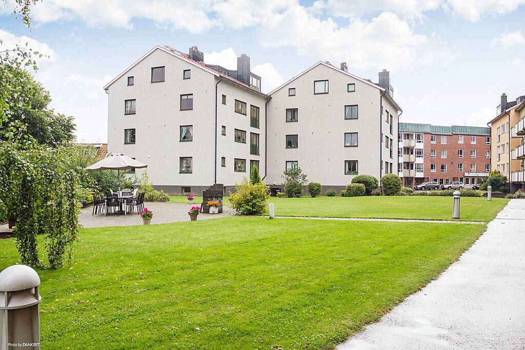 Välkommen till denna mycket trevliga och charmiga bostadsrätt på attraktiva Holgersgatan 4A – mitt i hjärtat av Falkenberg! Här bor du i ett centralt men samtidigt lugnt läge, med bekvämt gångavstånd till stadens breda utbud av butiker, caféer och restauranger. Kulturcentret Argus, Falkhallen, bio, bibliotek och teater finns alldeles i närheten, och de vackra promenadstråken längs Ätran samt närheten till havet gör läget svårslaget. Bostaden erbjuder en genomtänkt planlösning med generösa ytor och ett härligt ljusinsläpp som genomsyrar hela hemmet. Lägenheten upplevs som mycket lugn och harmonisk, belägen högre upp i huset, vilket bidrar till en stillsam och trivsam boendemiljö. Det rymliga vardagsrummet är varmt och inbjudande med ljusa väggar, stilfull fondvägg och stora fönsterpartier som släpper in rikligt med dagsljus. Här finns gott om plats för både umgänge och avkoppling. Från vardagsrummet nås även balkongen – en fin plats att njuta av lugnet med utsikt mot omgivningarna, där både Ätran och havet finns inom räckhåll. Köket är ljust, luftigt och praktiskt utformat med goda arbetsytor och två fönster som ger ett fint ljusflöde. Den generösa ytan gör det enkelt att röra sig och arbeta kring köksbordet, och den separata matplatsen erbjuder gott om utrymme för middagar med familj och vänner. Det stora sovrummet rymmer enkelt en dubbelsäng samt övrigt möblemang och erbjuder bra förvaring i form av inbyggd garderob. Även här bidrar en fondvägg till en ombonad och personlig känsla. Entrén välkomnar med ljusa ytskikt och ljust laminatgolv samt goda möjligheter till avhängning och förvaring. Genomgående i bostaden finns vackra fönsterbrädor i marmor som förstärker den tidlösa känslan. Badrummet är helkaklat och utrustat med kommod, spegel och badkar – ett praktiskt och lättskött utrymme. I fastigheten finns hiss och en praktisk gemensam tvättstuga. Till lägenheten hör dessutom två större förråd samt en matkällare, vilket ger goda förvaringsmöjligheter. Detta är ett hem som kombinerar ljus, rymd och funktion med ett centralt men rofyllt läge – varmt välkommen på visning!30 images