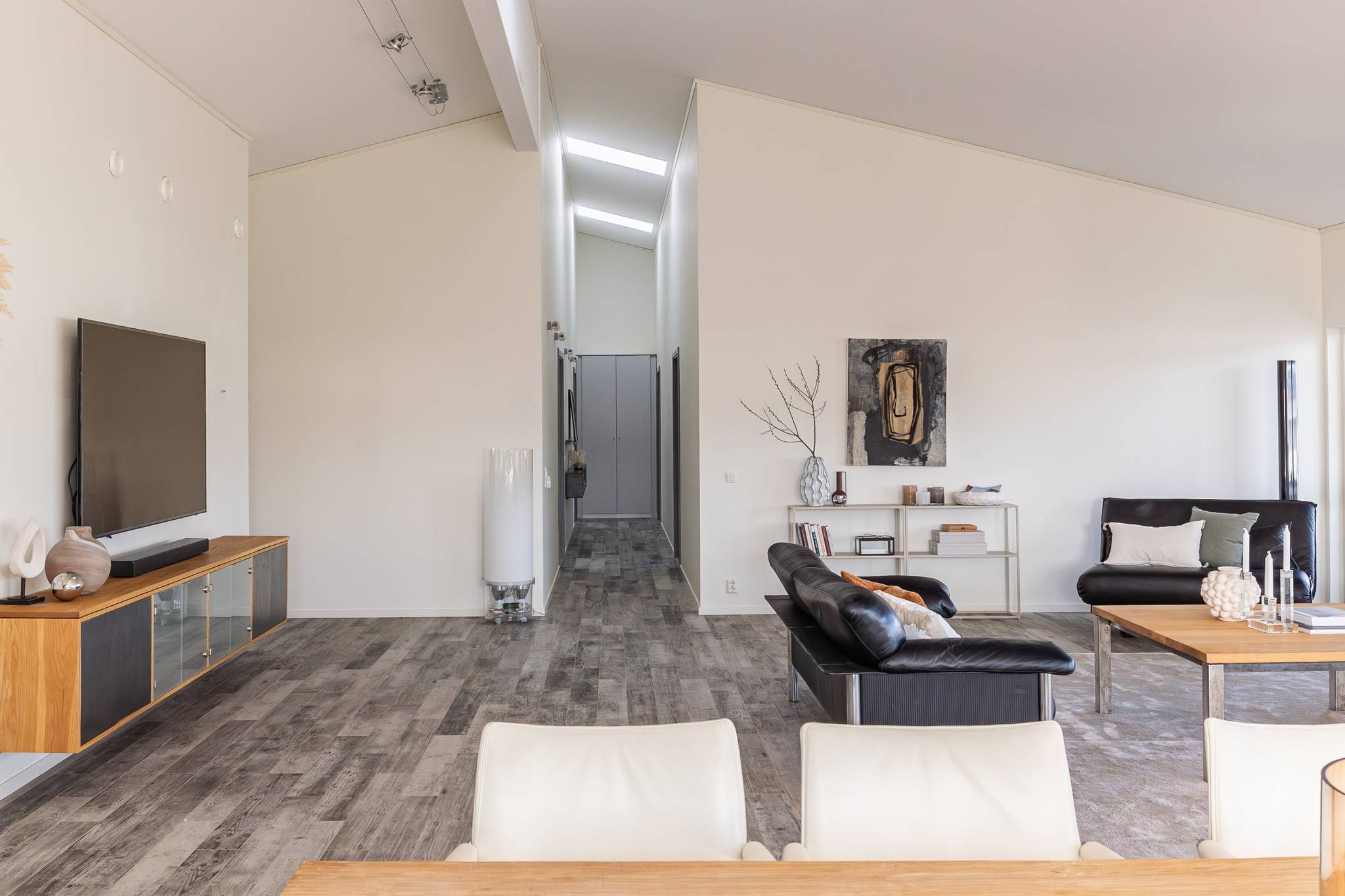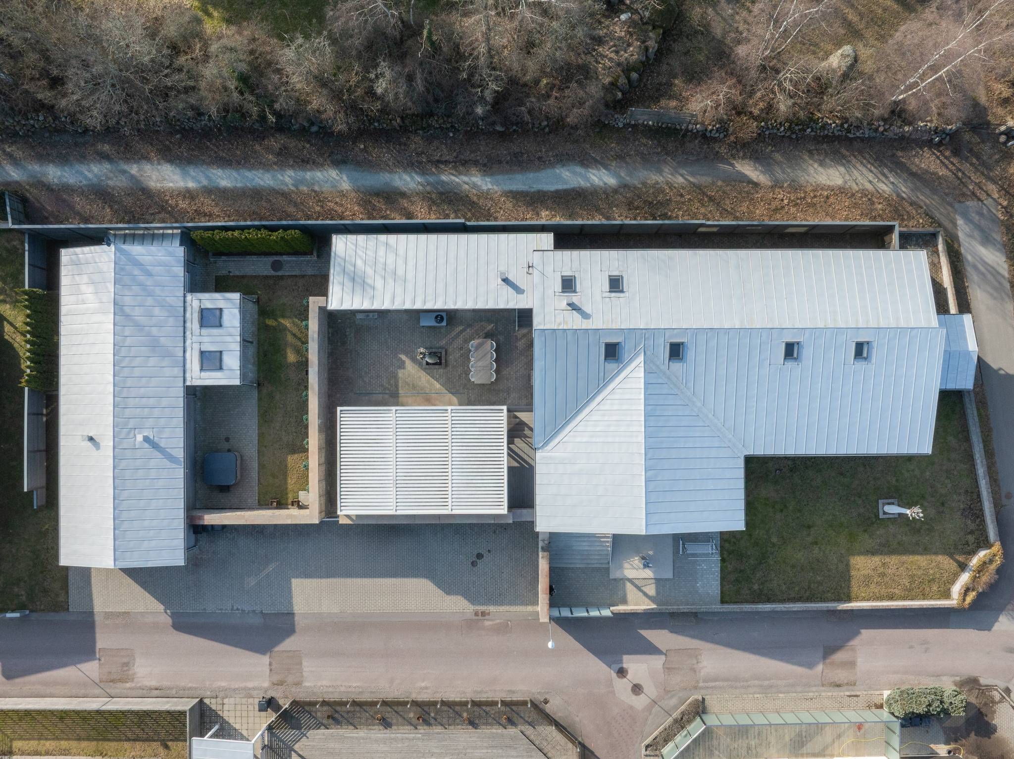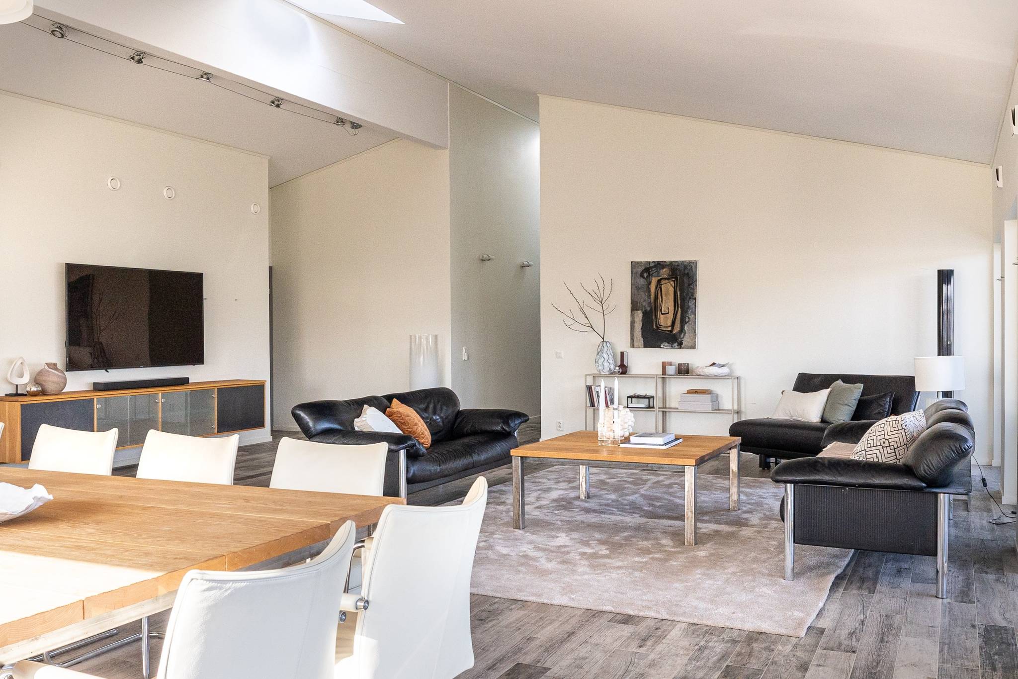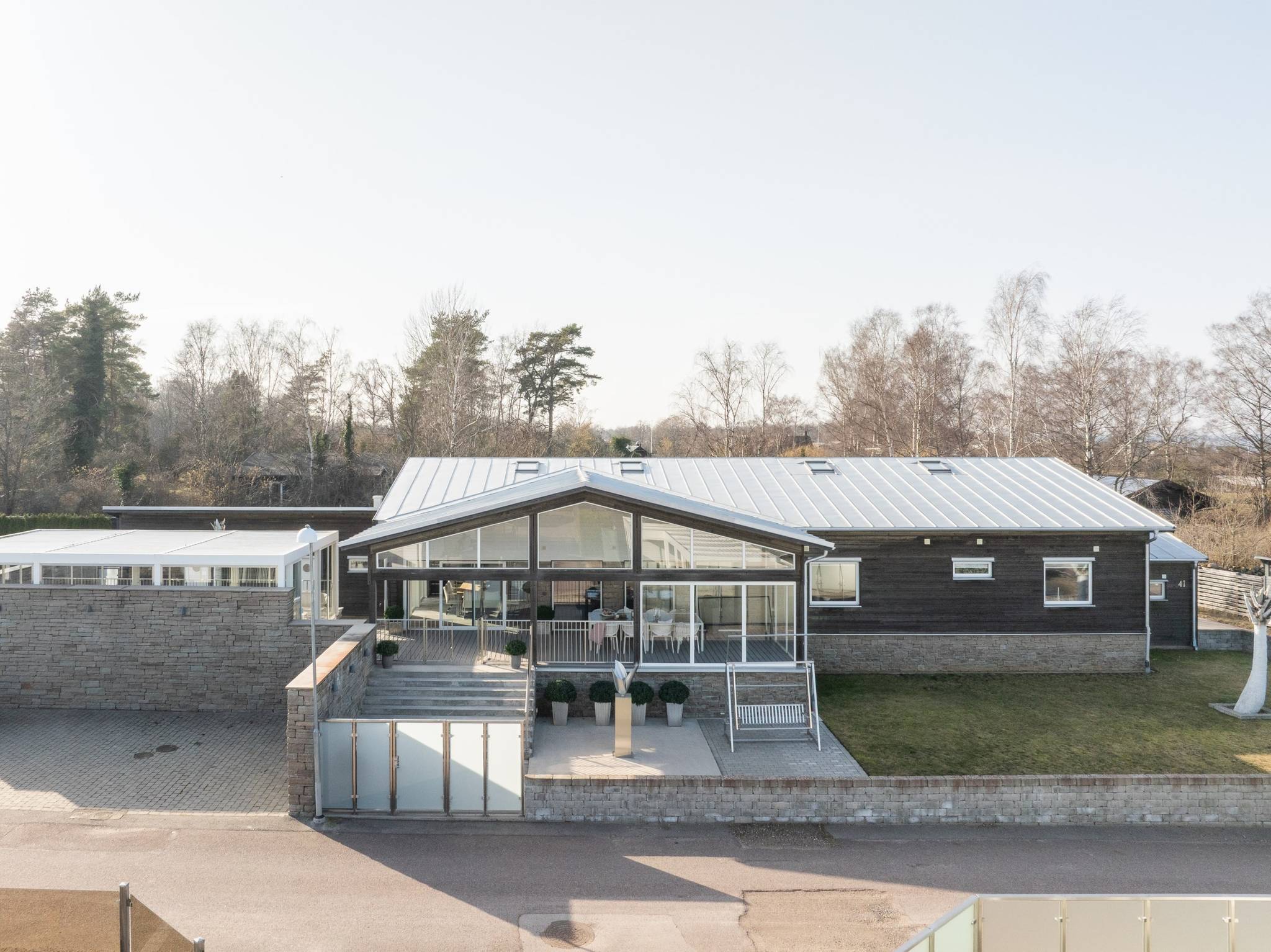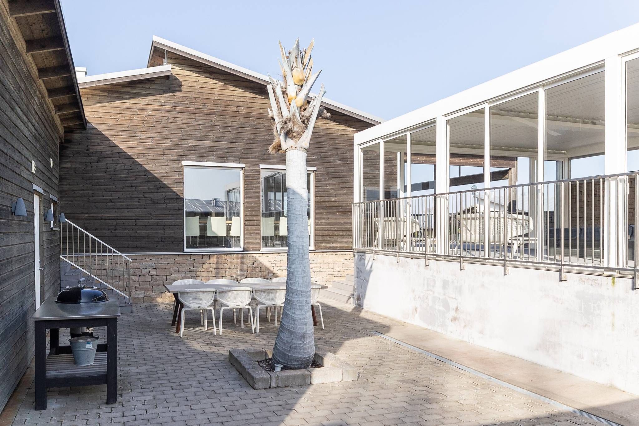 På fyra sammanlagda fastigheter i eftertraktade Björkviken har ett hem vuxit fram som närmast kan beskrivas som ett eget litet kvarter. Här breder cirka 440 kvadratmeter byggnader ut sig – med ett generöst bostadshus om cirka 235 kvm kompletterat av gästhus om cirka 60 kvm samt ytterligare omkring 140 kvm biarea i form av bastuhus, gästrum och ett stort dubbelgarage. Arkitekturen är självsäker och genomtänkt där material och proportioner knyter an till Ölands landskap. Murar av öländsk kalksten delar upp tomten i olika rum och skapar en utemiljö med både struktur och integritet – något som ger platsen en nästan medelhavslik karaktär. I bostadshuset möts man av generösa sällskapsytor där ljuset strömmar in genom stora glaspartier och ger en luftig och öppen känsla genom rummen. Här finns fyra sovrum – samtliga med egna badrum en suite – samt en separat gästtoalett, vilket gör huset lika väl anpassat för familjeliv som för större middagar och besök av gäster. Från den stora uteplatsen, med gott om plats för ett generöst matbord, öppnar sig vyerna över Kalmarsund där kvällssolen dröjer sig kvar över vattnet. Här kan middagarna gärna bli långa medan ljuset sakta sjunker bakom horisonten. Den mekaniska pergolan skapar en flexibel utemiljö och intill väntar ett stort swimspa som förlänger badsäsongen långt in på året. Fastigheten erbjuder även ett stort dubbelgarage samt uppställningsplats för ytterligare flera bilar – praktiskt när huset fylls av familj och vänner. Helheten ger känslan av ett privat retreat där både arkitektur och omgivning samspelar. Björkviken, strax utanför Borgholm, tillhör några av Ölands mest eftertraktade områden. Här möts öppna landskap, havets närvaro och den speciella stillhet som gjort ön så älskad i generationer. Naturen är ständigt närvarande – med kuststräckor, vandringsleder och cykelvägar som bjuder in till morgonpromenader och kvällsturer i solnedgången. Läget är dessutom idealiskt placerat mellan Borgholm och Köpingsvik. På några minuter når du Borgholms restauranger och caféer där gourmetmat och stadsliv möter sommarkvällarnas puls, samtidigt som Köpingsvik erbjuder några av Ölands mest uppskattade badstränder och en levande kvällsstämning under sommaren. Samtidigt ligger allt detta på ett behagligt avstånd från hemmets lugn. Kombinationen av natur, hav, närhet till stadsliv och den generösa fastigheten gör detta till ett boende som är svårt att jämföra med något annat på Öland.57 images