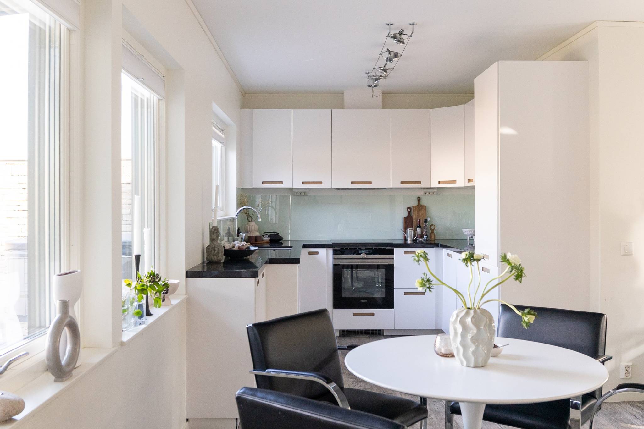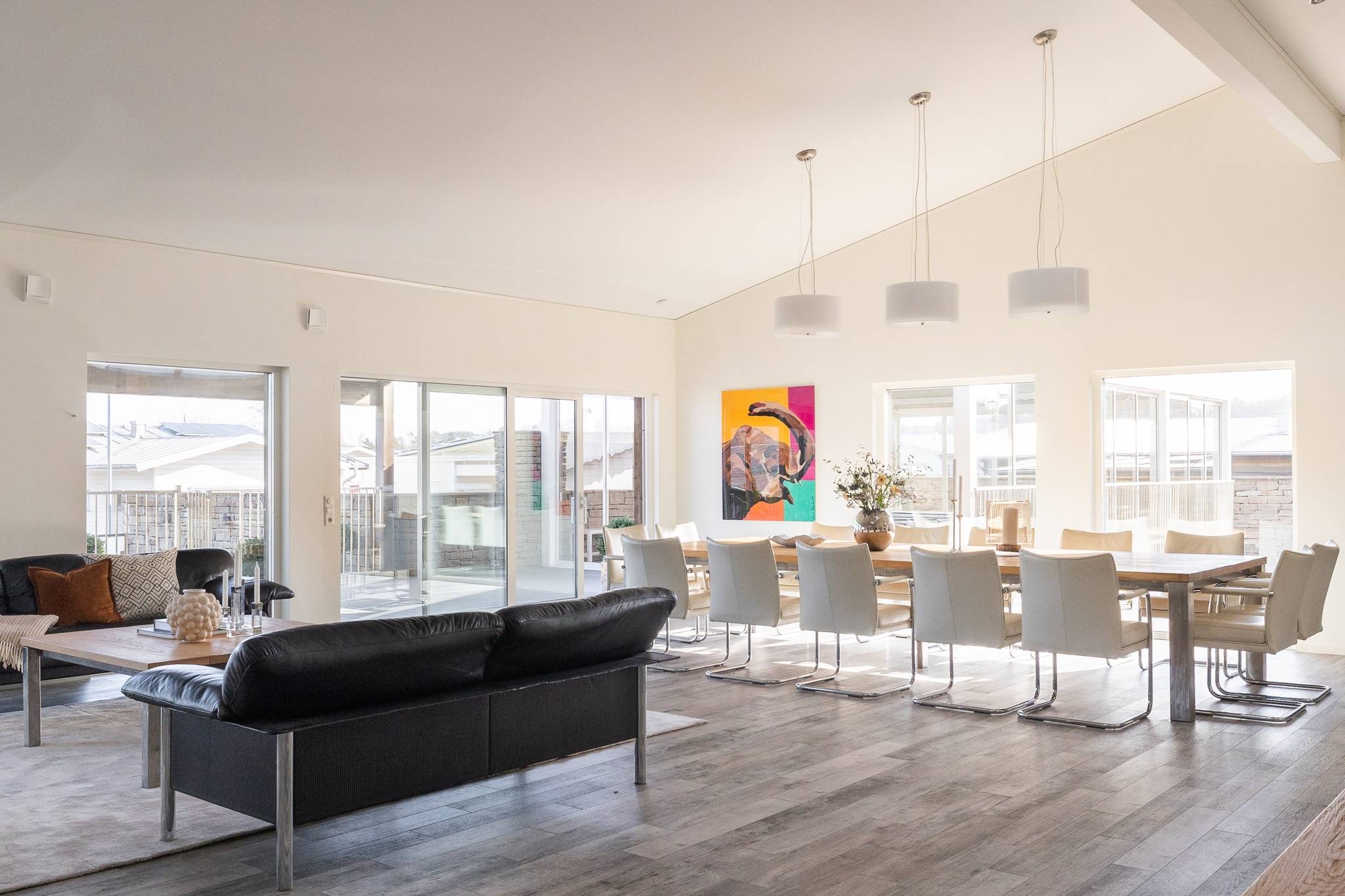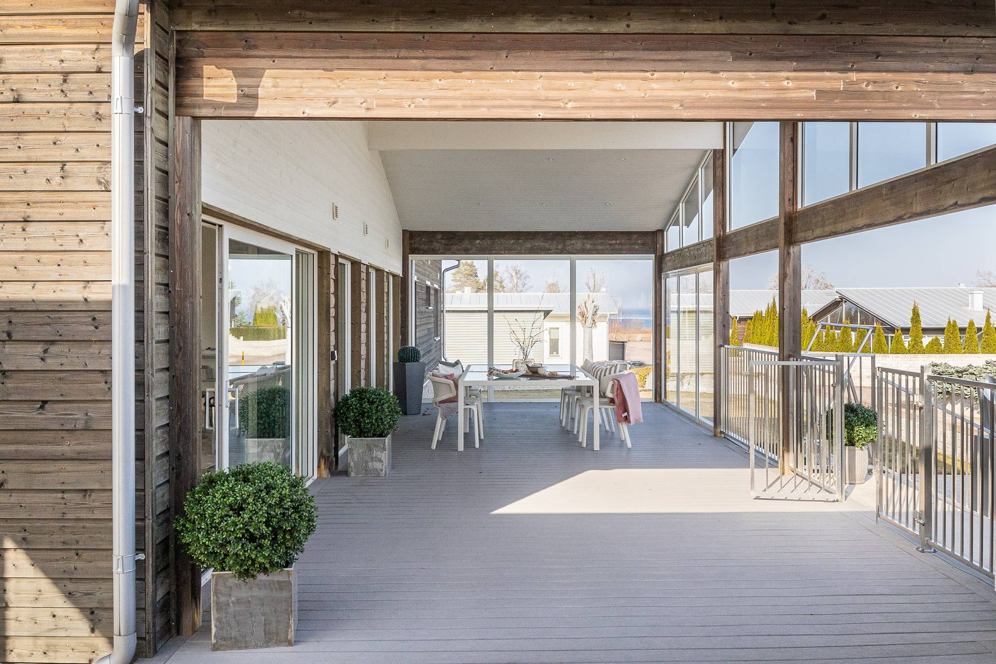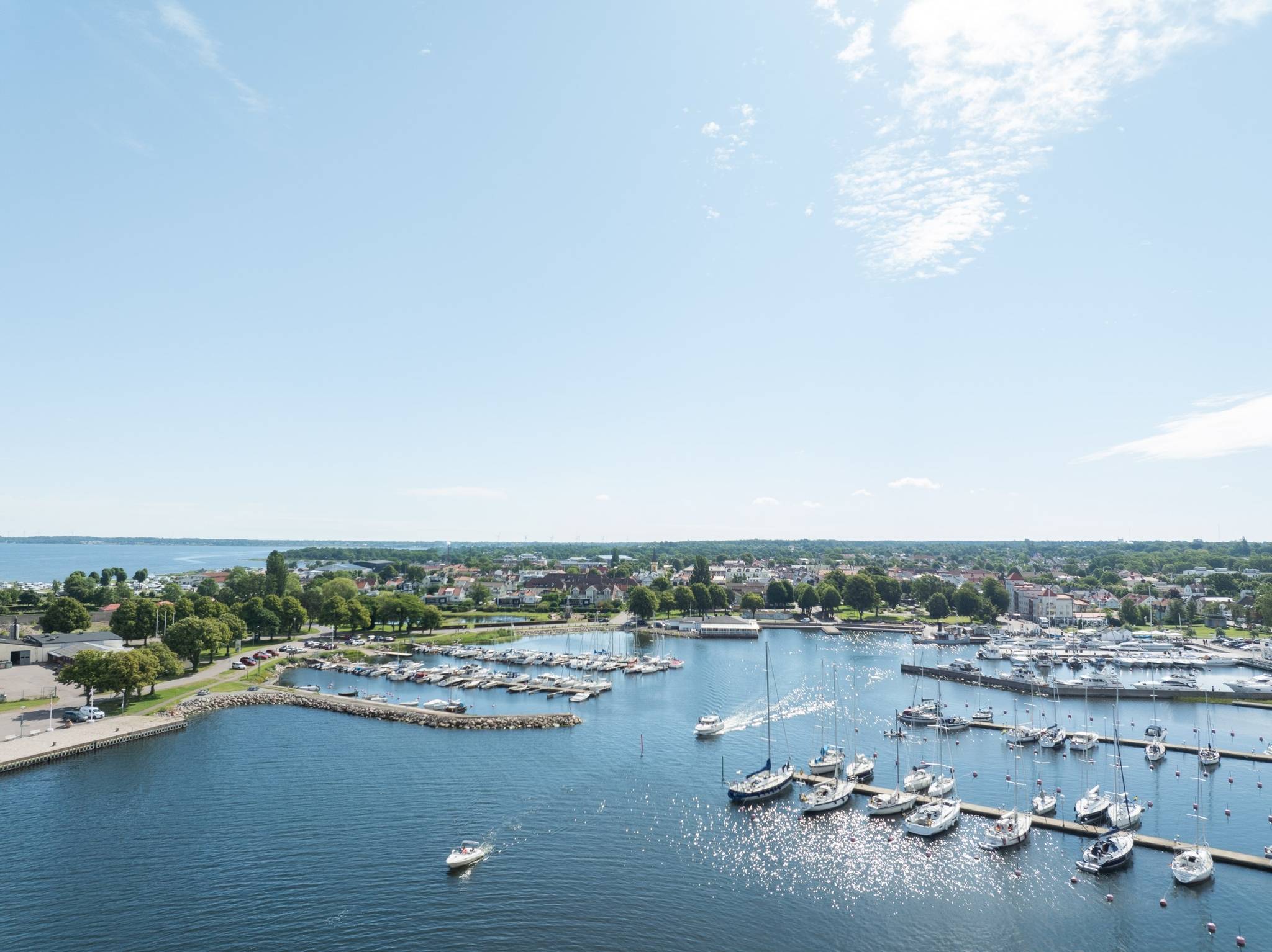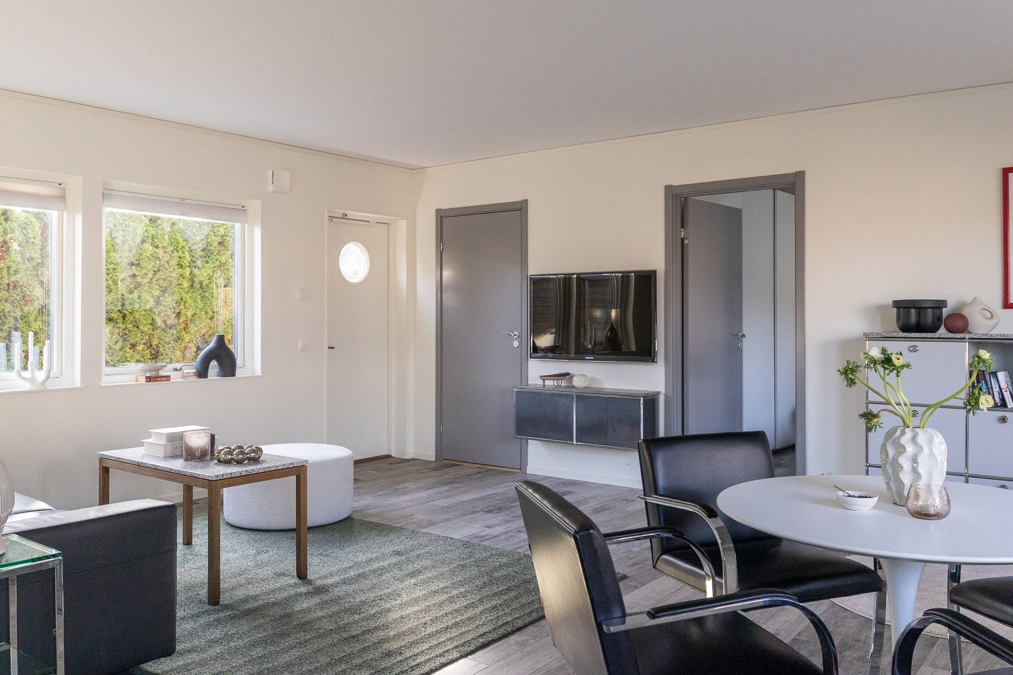 På fyra sammanlagda fastigheter i eftertraktade Björkviken har ett hem vuxit fram som närmast kan beskrivas som ett eget litet kvarter. Här breder cirka 440 kvadratmeter byggnader ut sig – med ett generöst bostadshus om cirka 235 kvm kompletterat av gästhus om cirka 60 kvm samt ytterligare omkring 140 kvm biarea i form av bastuhus, gästrum och ett stort dubbelgarage. Arkitekturen är självsäker och genomtänkt där material och proportioner knyter an till Ölands landskap. Murar av öländsk kalksten delar upp tomten i olika rum och skapar en utemiljö med både struktur och integritet – något som ger platsen en nästan medelhavslik karaktär. I bostadshuset möts man av generösa sällskapsytor där ljuset strömmar in genom stora glaspartier och ger en luftig och öppen känsla genom rummen. Här finns fyra sovrum – samtliga med egna badrum en suite – samt en separat gästtoalett, vilket gör huset lika väl anpassat för familjeliv som för större middagar och besök av gäster. Från den stora uteplatsen, med gott om plats för ett generöst matbord, öppnar sig vyerna över Kalmarsund där kvällssolen dröjer sig kvar över vattnet. Här kan middagarna gärna bli långa medan ljuset sakta sjunker bakom horisonten. Den mekaniska pergolan skapar en flexibel utemiljö och intill väntar ett stort swimspa som förlänger badsäsongen långt in på året. Fastigheten erbjuder även ett stort dubbelgarage samt uppställningsplats för ytterligare flera bilar – praktiskt när huset fylls av familj och vänner. Helheten ger känslan av ett privat retreat där både arkitektur och omgivning samspelar. Björkviken, strax utanför Borgholm, tillhör några av Ölands mest eftertraktade områden. Här möts öppna landskap, havets närvaro och den speciella stillhet som gjort ön så älskad i generationer. Naturen är ständigt närvarande – med kuststräckor, vandringsleder och cykelvägar som bjuder in till morgonpromenader och kvällsturer i solnedgången. Läget är dessutom idealiskt placerat mellan Borgholm och Köpingsvik. På några minuter når du Borgholms restauranger och caféer där gourmetmat och stadsliv möter sommarkvällarnas puls, samtidigt som Köpingsvik erbjuder några av Ölands mest uppskattade badstränder och en levande kvällsstämning under sommaren. Samtidigt ligger allt detta på ett behagligt avstånd från hemmets lugn. Kombinationen av natur, hav, närhet till stadsliv och den generösa fastigheten gör detta till ett boende som är svårt att jämföra med något annat på Öland.57 images