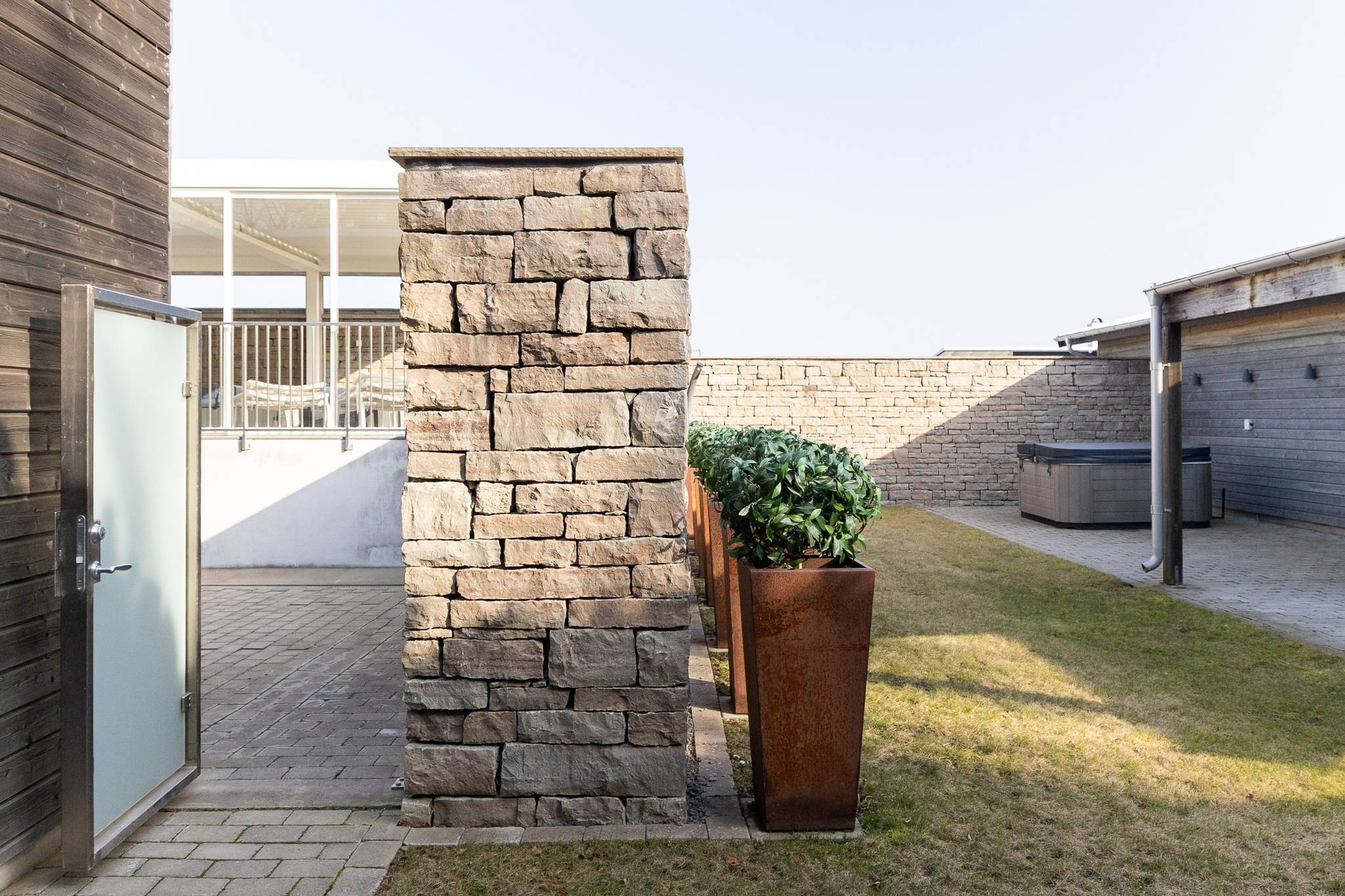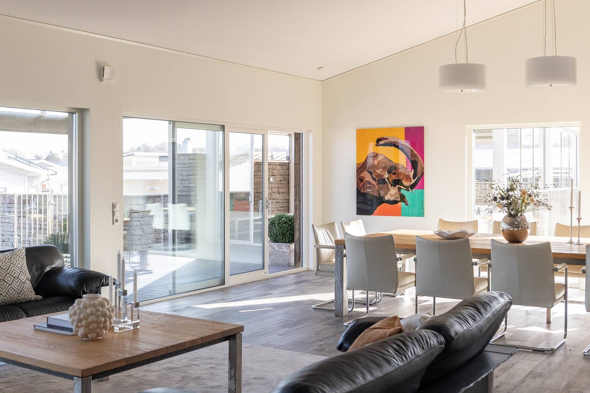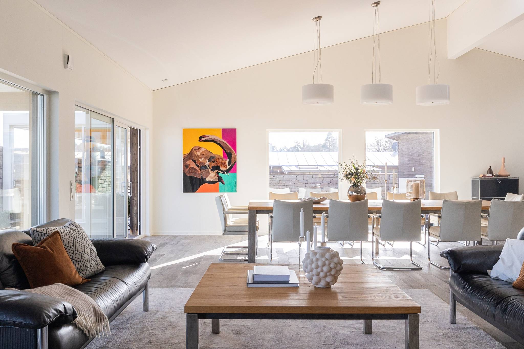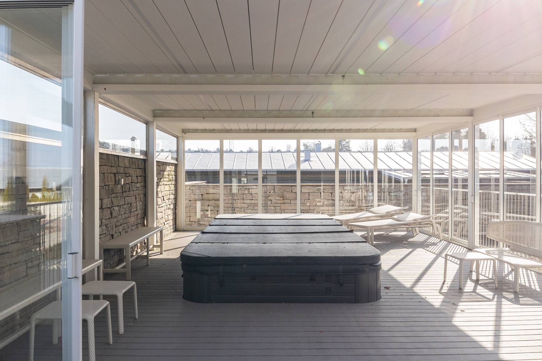 På fyra sammanlagda fastigheter i eftertraktade Björkviken har ett hem vuxit fram som närmast kan beskrivas som ett eget litet kvarter. Här breder cirka 440 kvadratmeter byggnader ut sig – med ett generöst bostadshus om cirka 235 kvm kompletterat av gästhus om cirka 60 kvm samt ytterligare omkring 140 kvm biarea i form av bastuhus, gästrum och ett stort dubbelgarage. Arkitekturen är självsäker och genomtänkt där material och proportioner knyter an till Ölands landskap. Murar av öländsk kalksten delar upp tomten i olika rum och skapar en utemiljö med både struktur och integritet – något som ger platsen en nästan medelhavslik karaktär. I bostadshuset möts man av generösa sällskapsytor där ljuset strömmar in genom stora glaspartier och ger en luftig och öppen känsla genom rummen. Här finns fyra sovrum – samtliga med egna badrum en suite – samt en separat gästtoalett, vilket gör huset lika väl anpassat för familjeliv som för större middagar och besök av gäster. Från den stora uteplatsen, med gott om plats för ett generöst matbord, öppnar sig vyerna över Kalmarsund där kvällssolen dröjer sig kvar över vattnet. Här kan middagarna gärna bli långa medan ljuset sakta sjunker bakom horisonten. Den mekaniska pergolan skapar en flexibel utemiljö och intill väntar ett stort swimspa som förlänger badsäsongen långt in på året. Fastigheten erbjuder även ett stort dubbelgarage samt uppställningsplats för ytterligare flera bilar – praktiskt när huset fylls av familj och vänner. Helheten ger känslan av ett privat retreat där både arkitektur och omgivning samspelar. Björkviken, strax utanför Borgholm, tillhör några av Ölands mest eftertraktade områden. Här möts öppna landskap, havets närvaro och den speciella stillhet som gjort ön så älskad i generationer. Naturen är ständigt närvarande – med kuststräckor, vandringsleder och cykelvägar som bjuder in till morgonpromenader och kvällsturer i solnedgången. Läget är dessutom idealiskt placerat mellan Borgholm och Köpingsvik. På några minuter når du Borgholms restauranger och caféer där gourmetmat och stadsliv möter sommarkvällarnas puls, samtidigt som Köpingsvik erbjuder några av Ölands mest uppskattade badstränder och en levande kvällsstämning under sommaren. Samtidigt ligger allt detta på ett behagligt avstånd från hemmets lugn. Kombinationen av natur, hav, närhet till stadsliv och den generösa fastigheten gör detta till ett boende som är svårt att jämföra med något annat på Öland.57 images