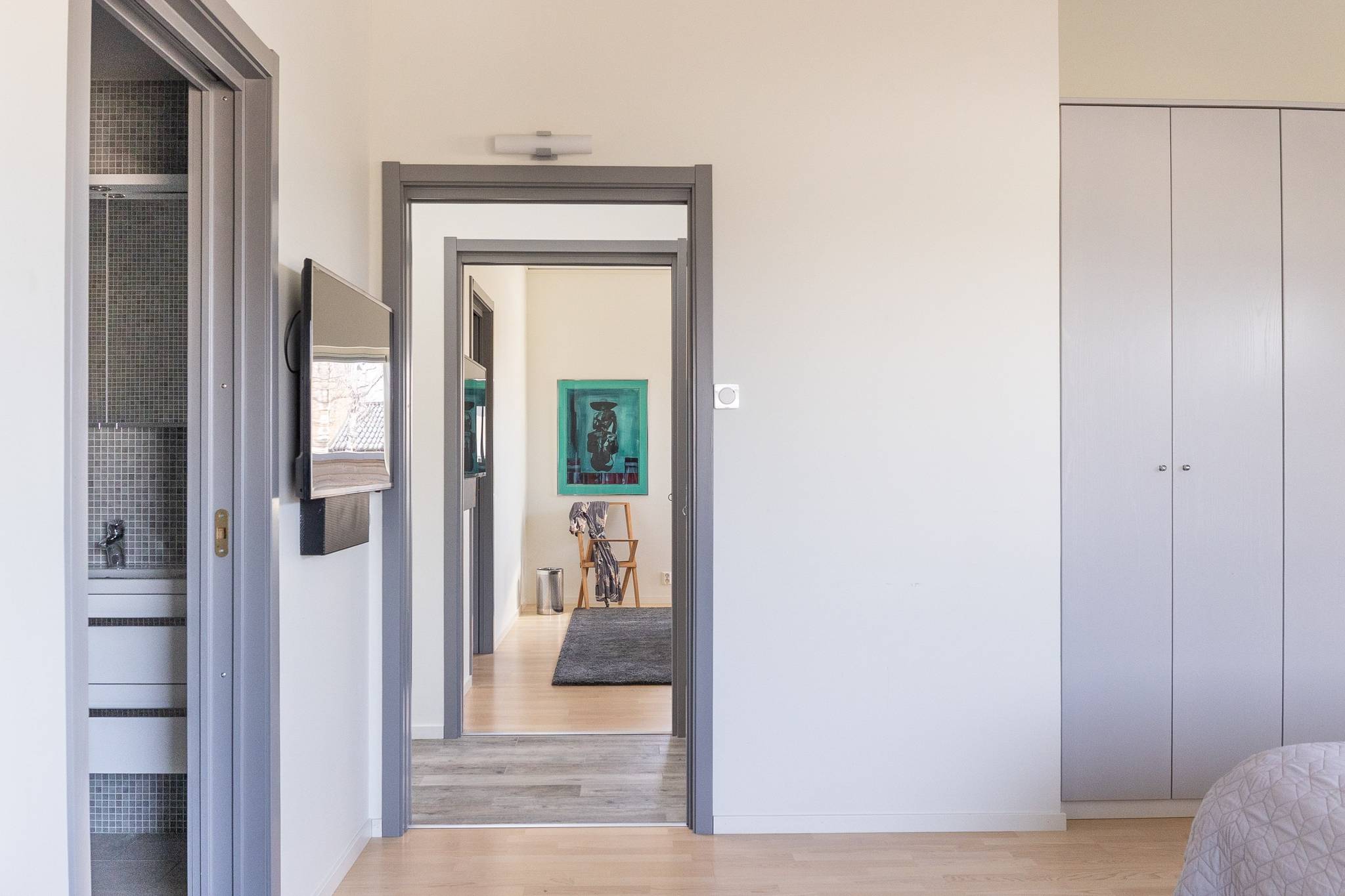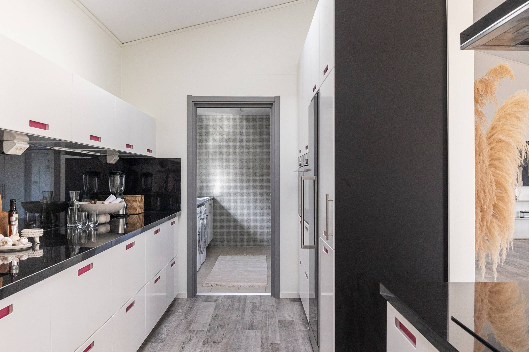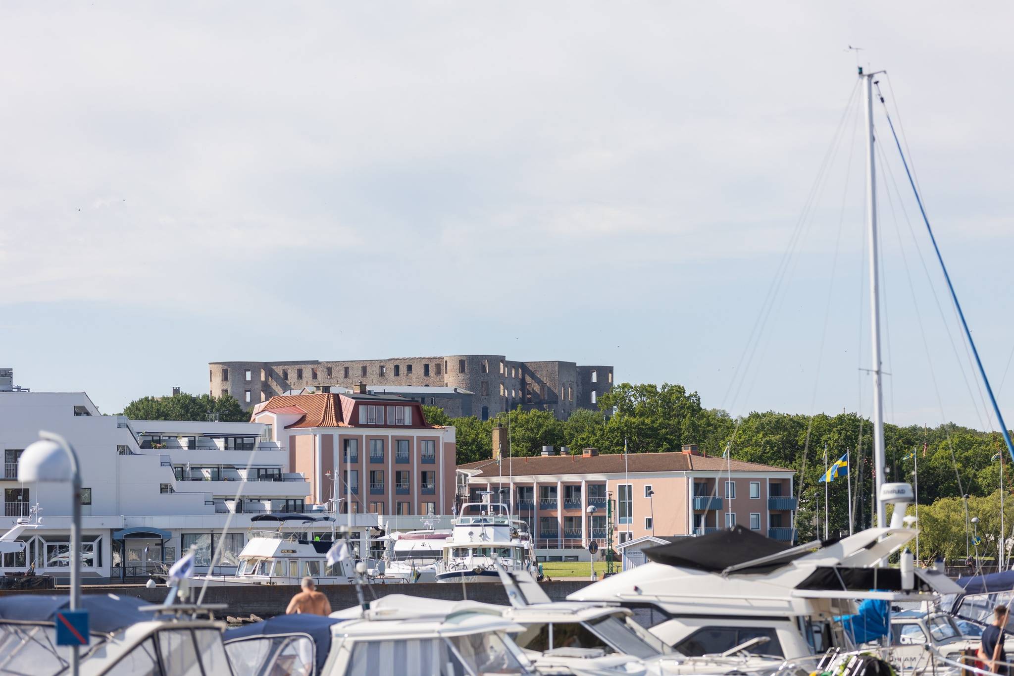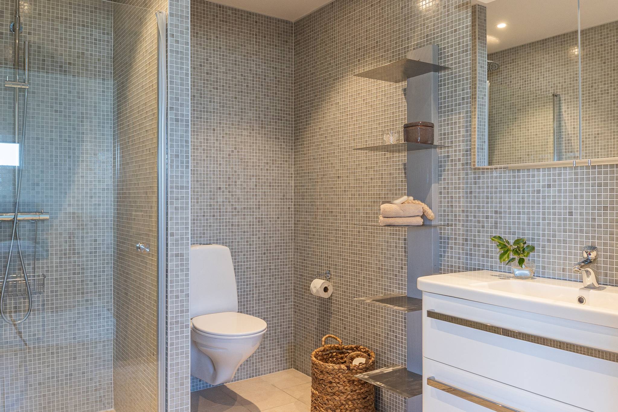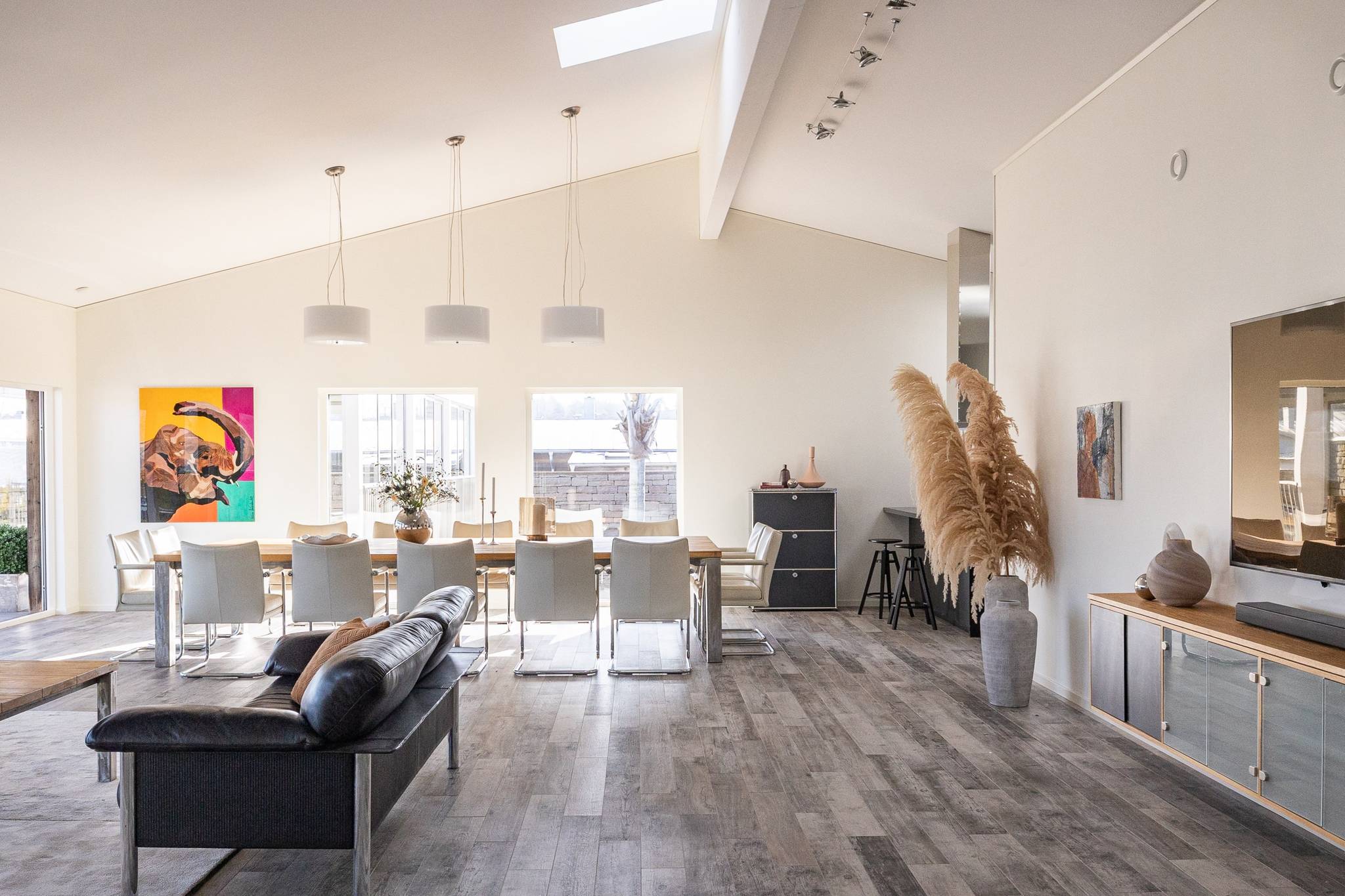 På fyra sammanlagda fastigheter i eftertraktade Björkviken har ett hem vuxit fram som närmast kan beskrivas som ett eget litet kvarter. Här breder cirka 440 kvadratmeter byggnader ut sig – med ett generöst bostadshus om cirka 235 kvm kompletterat av gästhus om cirka 60 kvm samt ytterligare omkring 140 kvm biarea i form av bastuhus, gästrum och ett stort dubbelgarage. Arkitekturen är självsäker och genomtänkt där material och proportioner knyter an till Ölands landskap. Murar av öländsk kalksten delar upp tomten i olika rum och skapar en utemiljö med både struktur och integritet – något som ger platsen en nästan medelhavslik karaktär. I bostadshuset möts man av generösa sällskapsytor där ljuset strömmar in genom stora glaspartier och ger en luftig och öppen känsla genom rummen. Här finns fyra sovrum – samtliga med egna badrum en suite – samt en separat gästtoalett, vilket gör huset lika väl anpassat för familjeliv som för större middagar och besök av gäster. Från den stora uteplatsen, med gott om plats för ett generöst matbord, öppnar sig vyerna över Kalmarsund där kvällssolen dröjer sig kvar över vattnet. Här kan middagarna gärna bli långa medan ljuset sakta sjunker bakom horisonten. Den mekaniska pergolan skapar en flexibel utemiljö och intill väntar ett stort swimspa som förlänger badsäsongen långt in på året. Fastigheten erbjuder även ett stort dubbelgarage samt uppställningsplats för ytterligare flera bilar – praktiskt när huset fylls av familj och vänner. Helheten ger känslan av ett privat retreat där både arkitektur och omgivning samspelar. Björkviken, strax utanför Borgholm, tillhör några av Ölands mest eftertraktade områden. Här möts öppna landskap, havets närvaro och den speciella stillhet som gjort ön så älskad i generationer. Naturen är ständigt närvarande – med kuststräckor, vandringsleder och cykelvägar som bjuder in till morgonpromenader och kvällsturer i solnedgången. Läget är dessutom idealiskt placerat mellan Borgholm och Köpingsvik. På några minuter når du Borgholms restauranger och caféer där gourmetmat och stadsliv möter sommarkvällarnas puls, samtidigt som Köpingsvik erbjuder några av Ölands mest uppskattade badstränder och en levande kvällsstämning under sommaren. Samtidigt ligger allt detta på ett behagligt avstånd från hemmets lugn. Kombinationen av natur, hav, närhet till stadsliv och den generösa fastigheten gör detta till ett boende som är svårt att jämföra med något annat på Öland.57 images