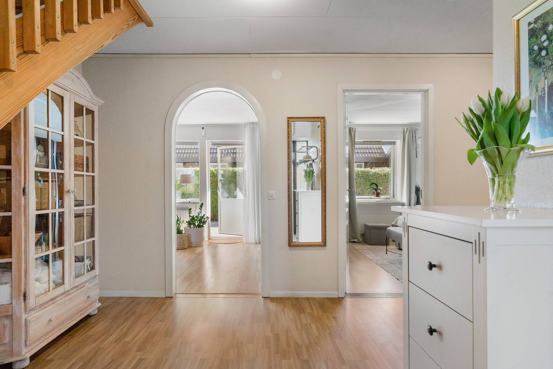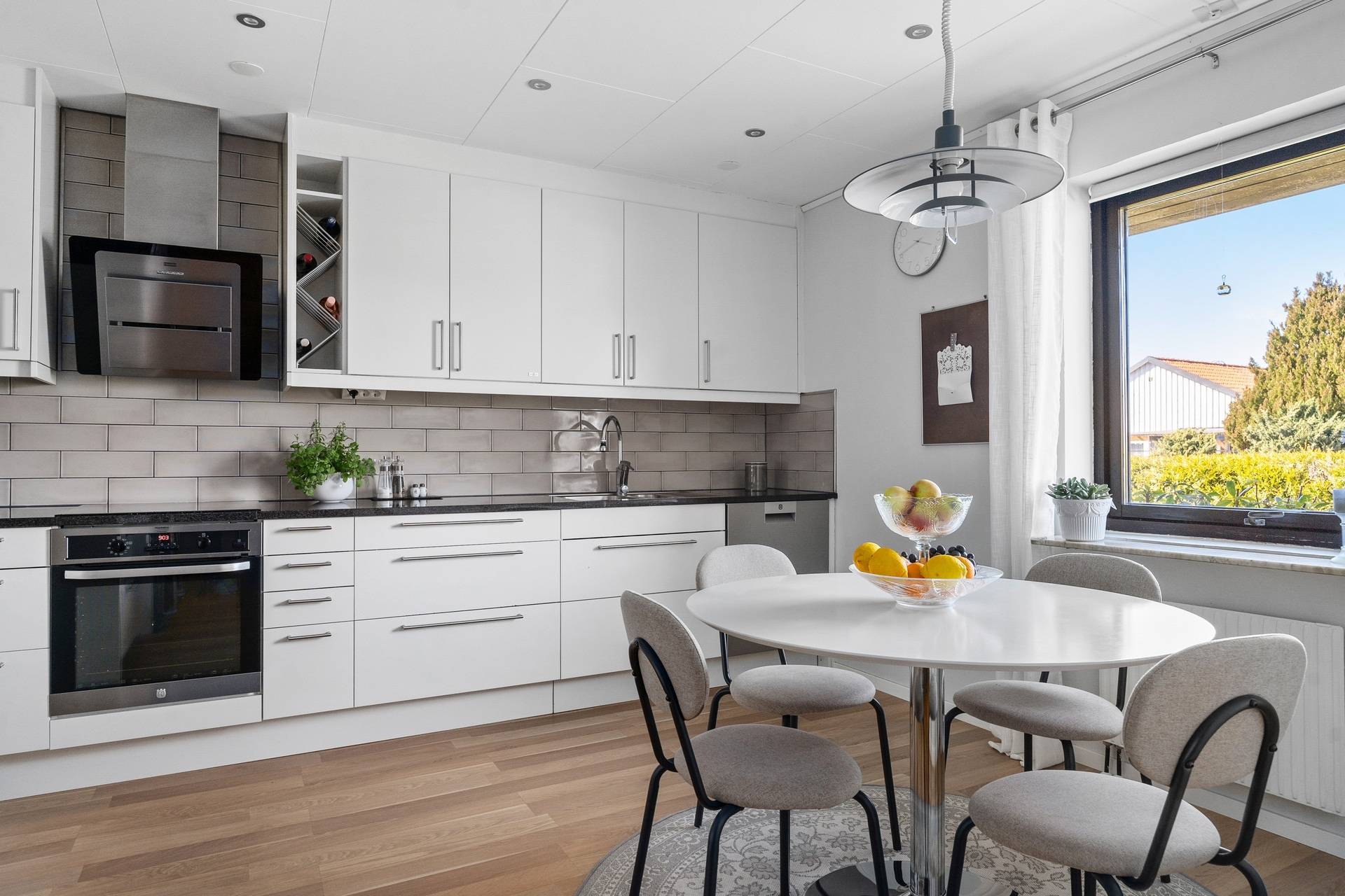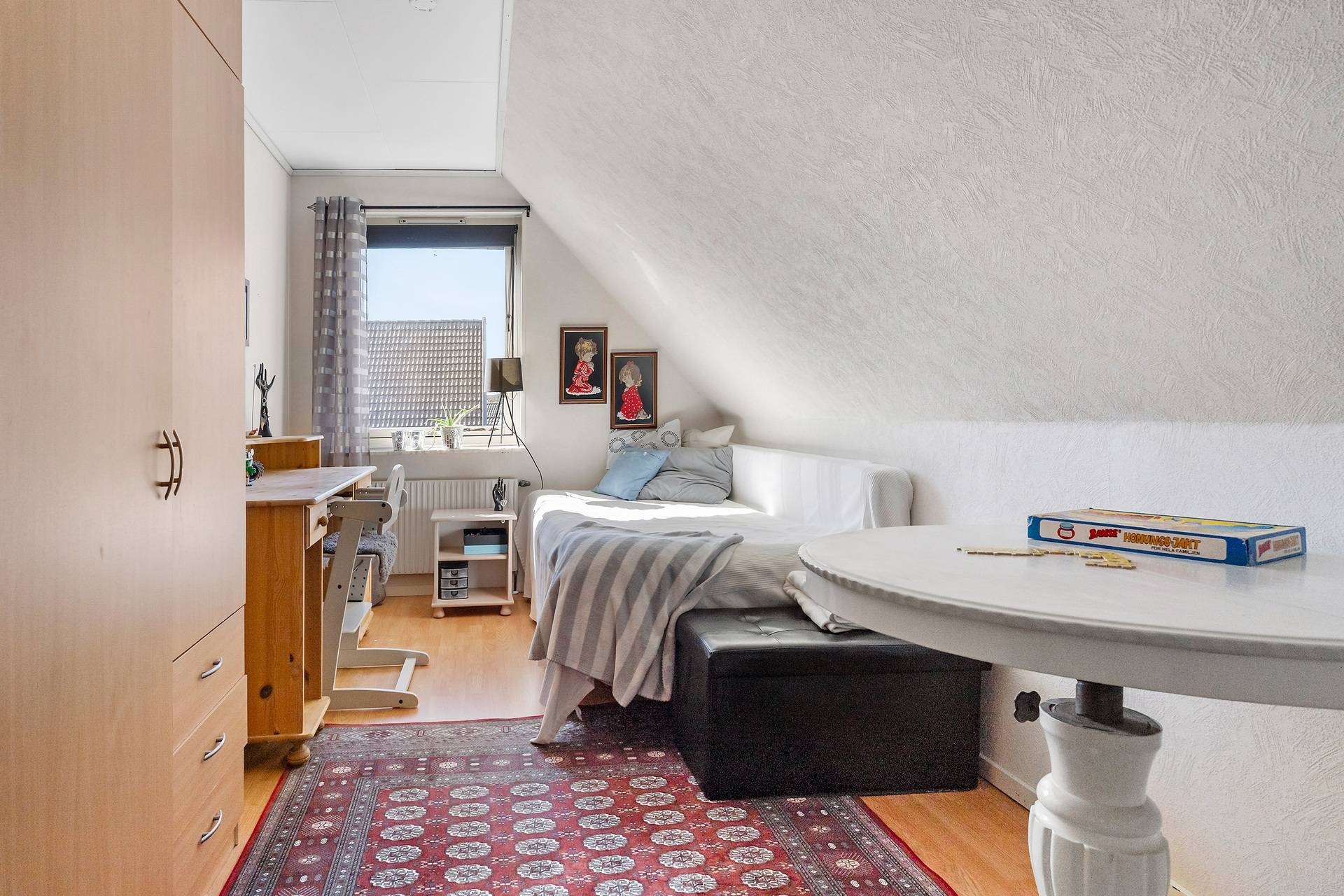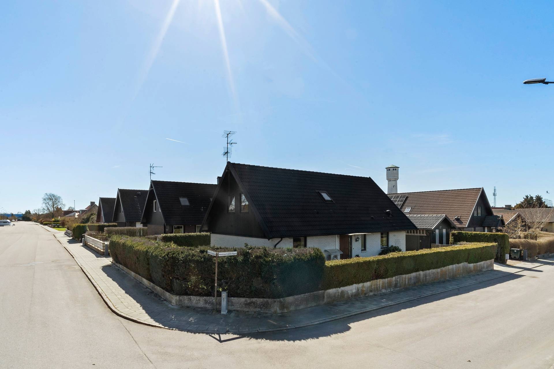 1,5-plansvilla belägen på hörntomt av modell Österlenhus. Planlösningen fördelas på entréhall i vinkel, kök, tvättstuga med groventré till uppfarten, vardagsrum i vinkel med utgång till uteplats, ett sovrum samt badrum med badkar. En trappa upp finns allrum, två sovrum, klädkammare och helkaklat badrum med dusch. Lättskött trädgård med trädäck. Garage. Här bor man bra! Familjen har bott i huset sedan 1993. Trädgården är lagom rymlig, insynsskyddad och lättskött och där har vi firat allt från studenter till födelsedagar. Det har varit en trygg uppväxt för barnen, som haft nära till skolan, till tåget, till stan och sina vänner och området har haft samma grannar i många år. Utsikten från barnens rum skulle kunna vara ett vykort av Eslöv - man ser bl a kyrkan, gamla vattentornet och gamla skofabriken. Även när barnen blev unga vuxna stannade de kvar och hade ovanvåningen för sig själva. Området är idealiskt både för barnfamiljer och äldre par som söker ett stabilt och lugnt område med stor trivselfaktor.37 images