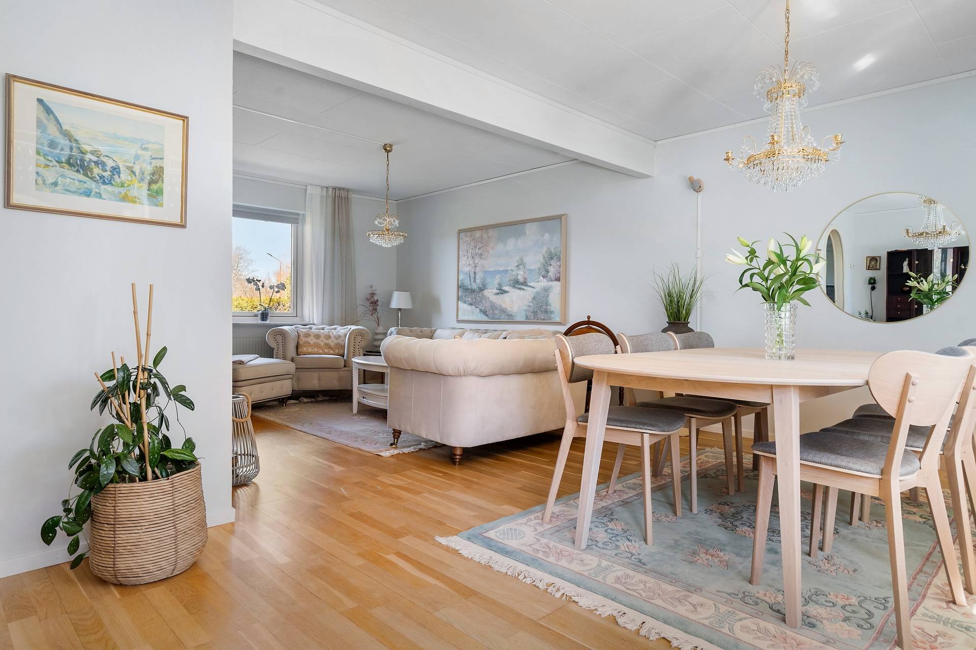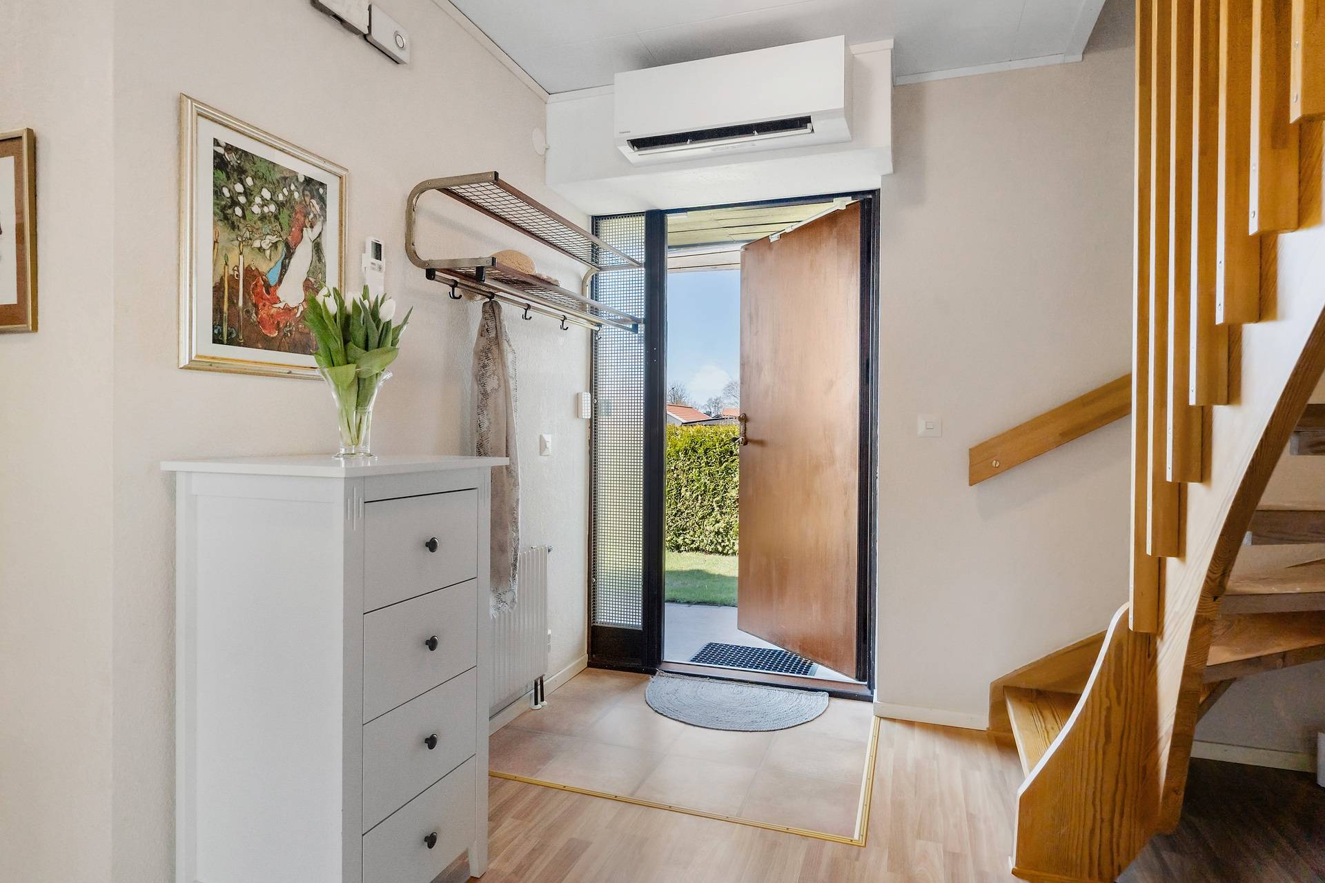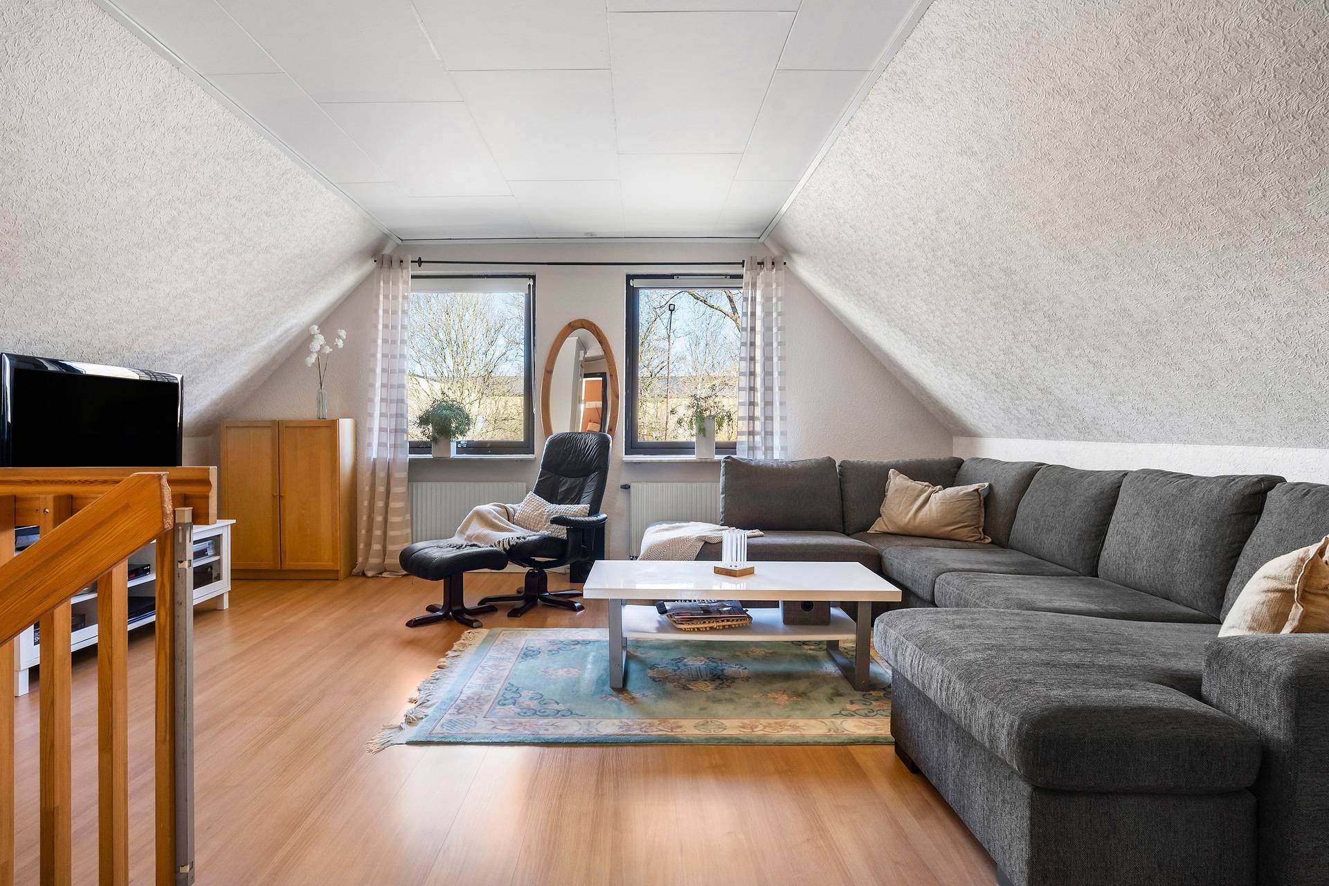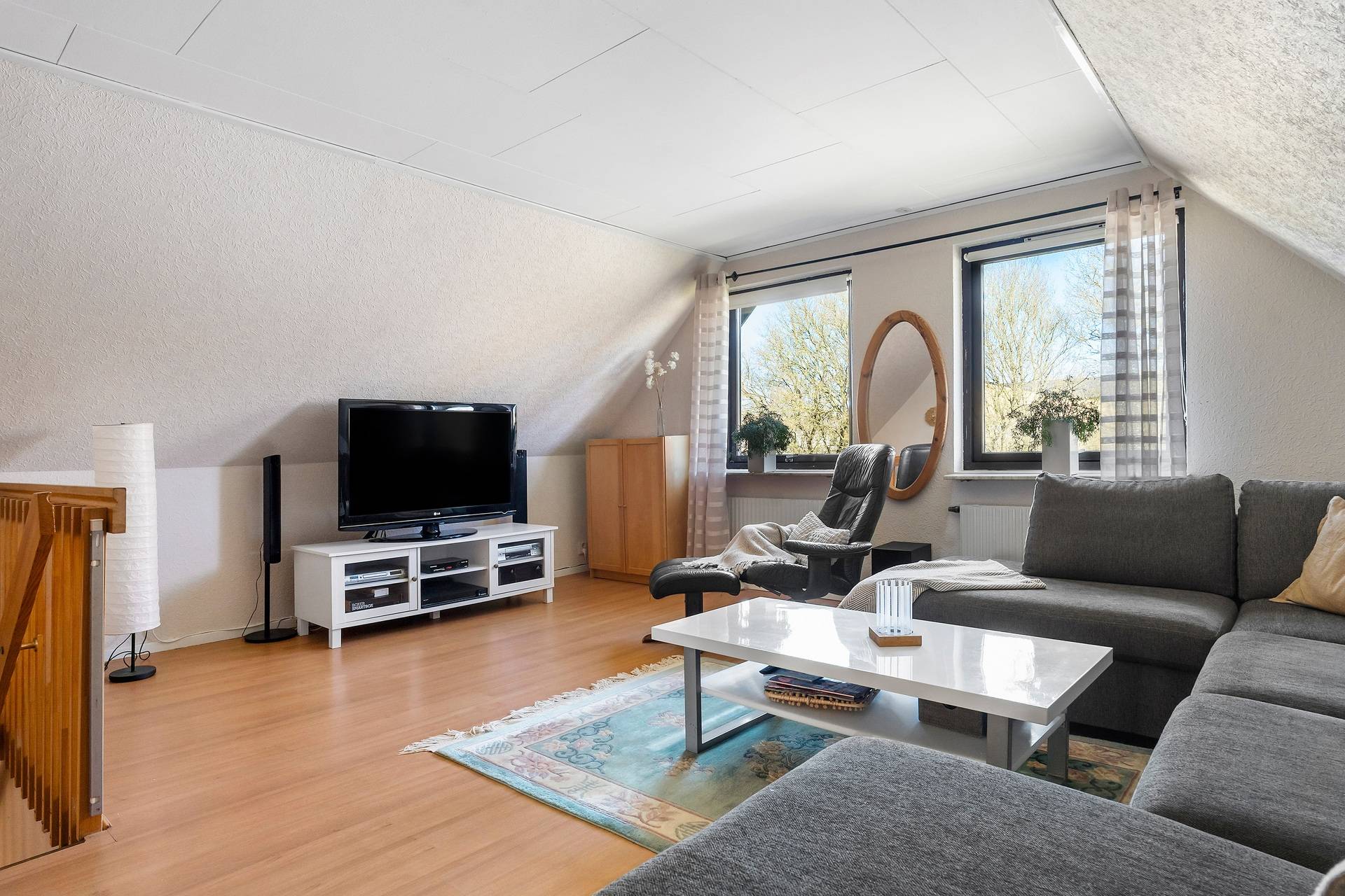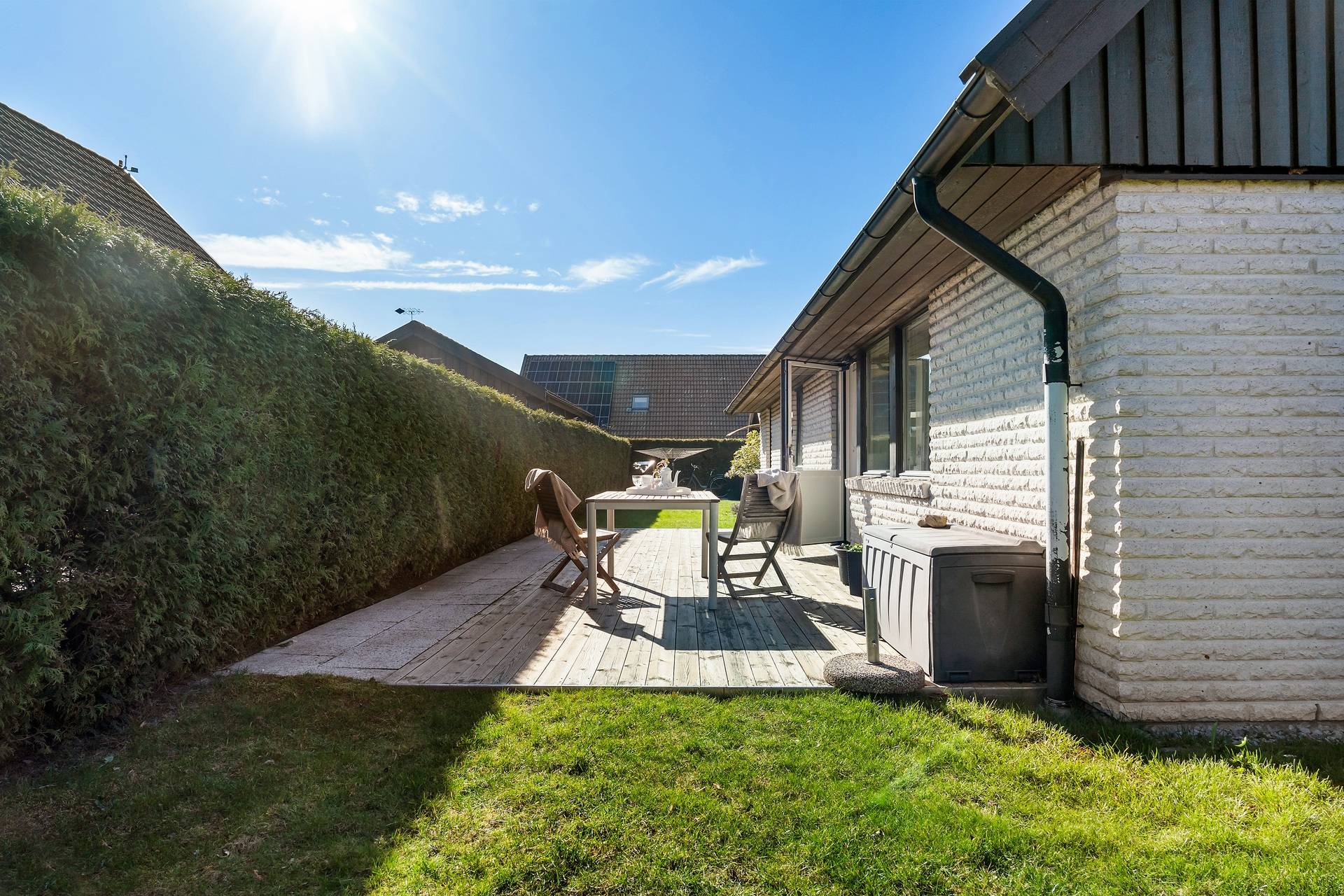 1,5-plansvilla belägen på hörntomt av modell Österlenhus. Planlösningen fördelas på entréhall i vinkel, kök, tvättstuga med groventré till uppfarten, vardagsrum i vinkel med utgång till uteplats, ett sovrum samt badrum med badkar. En trappa upp finns allrum, två sovrum, klädkammare och helkaklat badrum med dusch. Lättskött trädgård med trädäck. Garage. Här bor man bra! Familjen har bott i huset sedan 1993. Trädgården är lagom rymlig, insynsskyddad och lättskött och där har vi firat allt från studenter till födelsedagar. Det har varit en trygg uppväxt för barnen, som haft nära till skolan, till tåget, till stan och sina vänner och området har haft samma grannar i många år. Utsikten från barnens rum skulle kunna vara ett vykort av Eslöv - man ser bl a kyrkan, gamla vattentornet och gamla skofabriken. Även när barnen blev unga vuxna stannade de kvar och hade ovanvåningen för sig själva. Området är idealiskt både för barnfamiljer och äldre par som söker ett stabilt och lugnt område med stor trivselfaktor.37 images