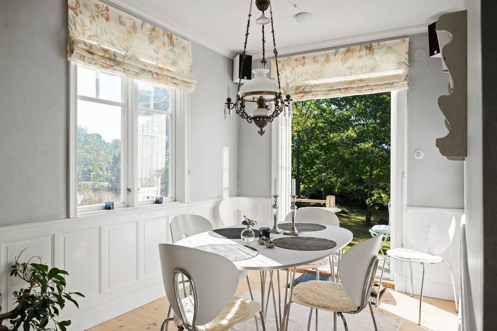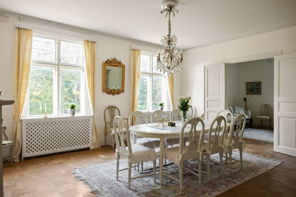 Denna eleganta sekelskiftesvilla belägen i Svalnäs, omges av vackra naturmiljöer och bär på en rik historia. Byggd 1914 för överste friherre Å W Thott, har fastigheten varit i samma familjs ägo sedan 1917 och har genomgått en omsorgsfull renovering som belönats med Djursholms Villaägareförenings Renoveringspris. Interiört möts vi av en elegant atmosfär där stora, öppna ytor erbjuder en perfekt miljö för både vardag och fest. Villan har en total yta på 490 kvm varav 260 kvm boarea och 230 kvm biarea, disponerad i två plan samt inredd vind och källare. Här ryms ett välutrustat kök med matplats, uteplats direkt ut från köket, matsal, salong, vardagsrum, 2 eldstäder, bibliotek, 4-7 sovrum, 2 badrum, 3 wc, gym, vedeldad bastu samt en rymlig glasveranda med ovanpåliggande altan. Tomten är högt belägen och med både gräsmattor och delar med orörd mark för blommor, ljung och blåbärsris. Stora månghundraåriga ekar och tallar liksom gullregn, äpple och päronträd, fläder, bok, lönn, rönn, asp och gran. Detta är en villa som på ett exceptionellt sätt förmedlar den tidiga villastadens karaktär, i ett område av riksintresse.42 images
