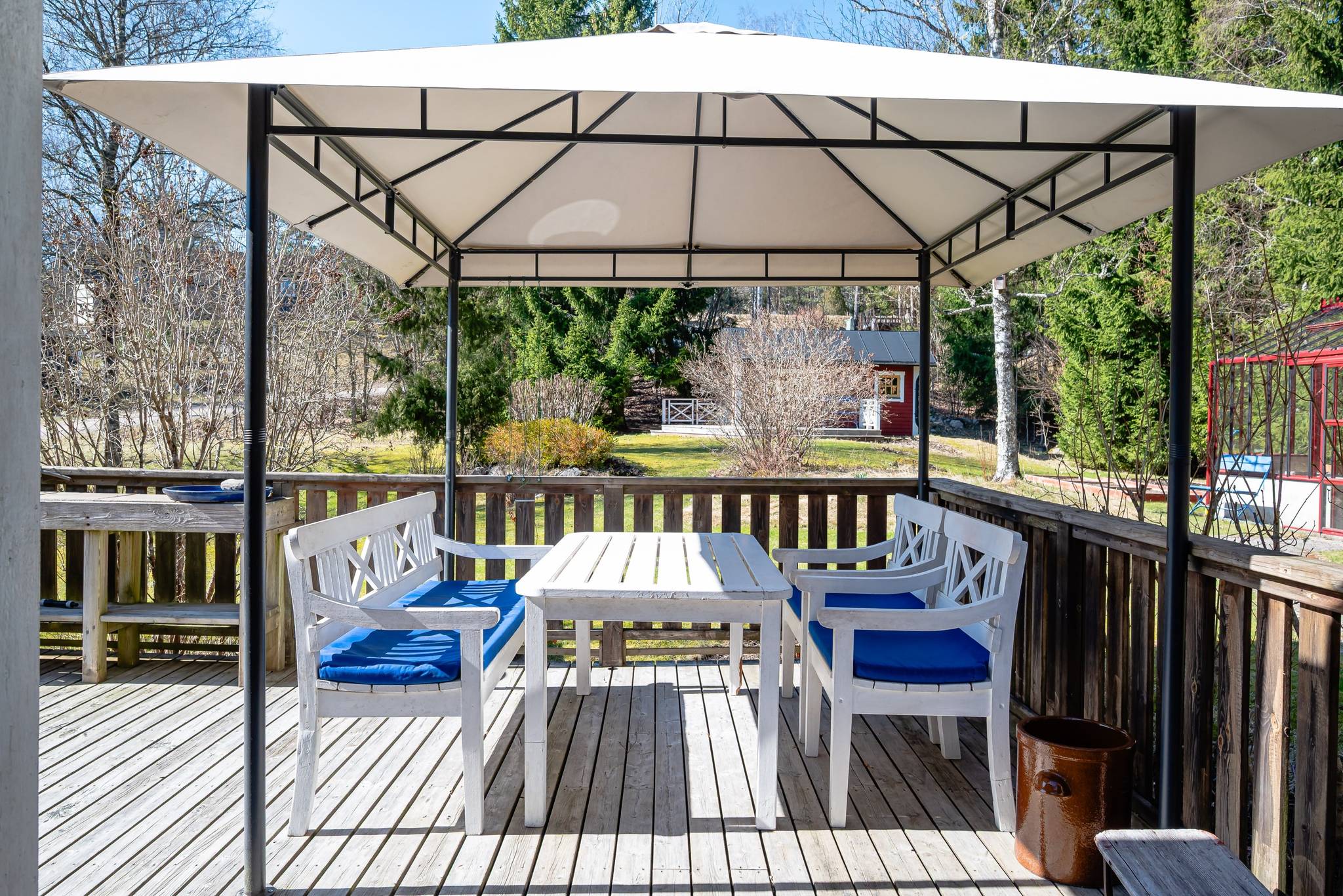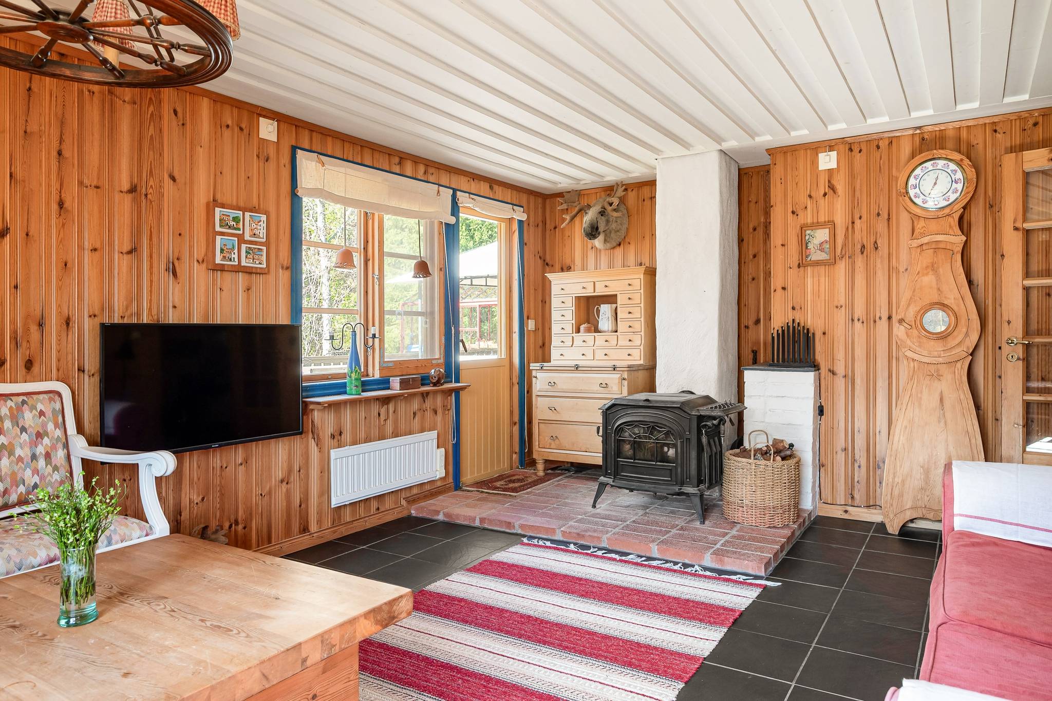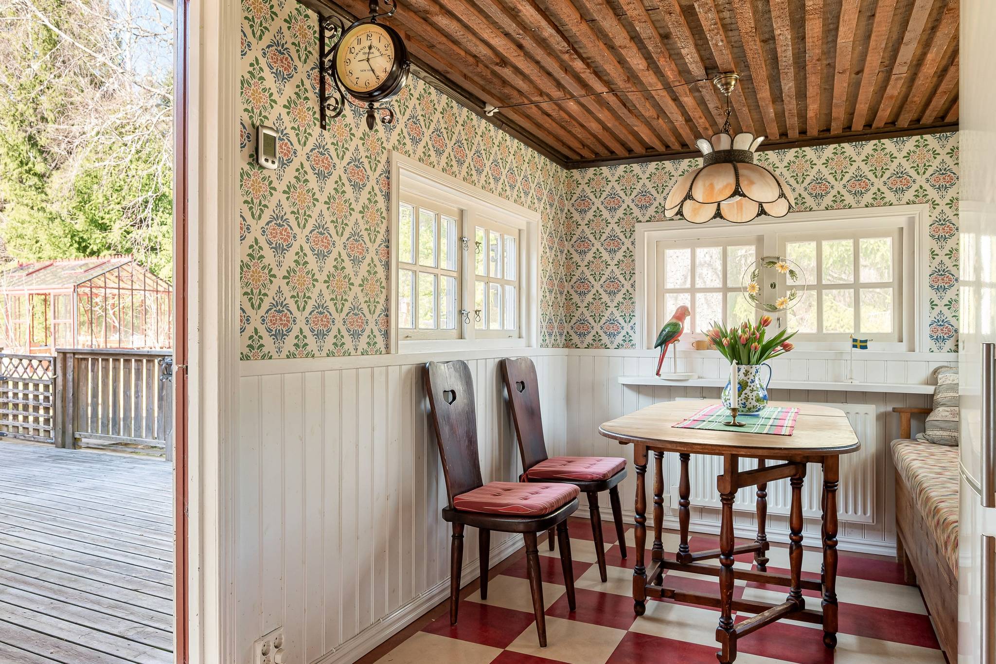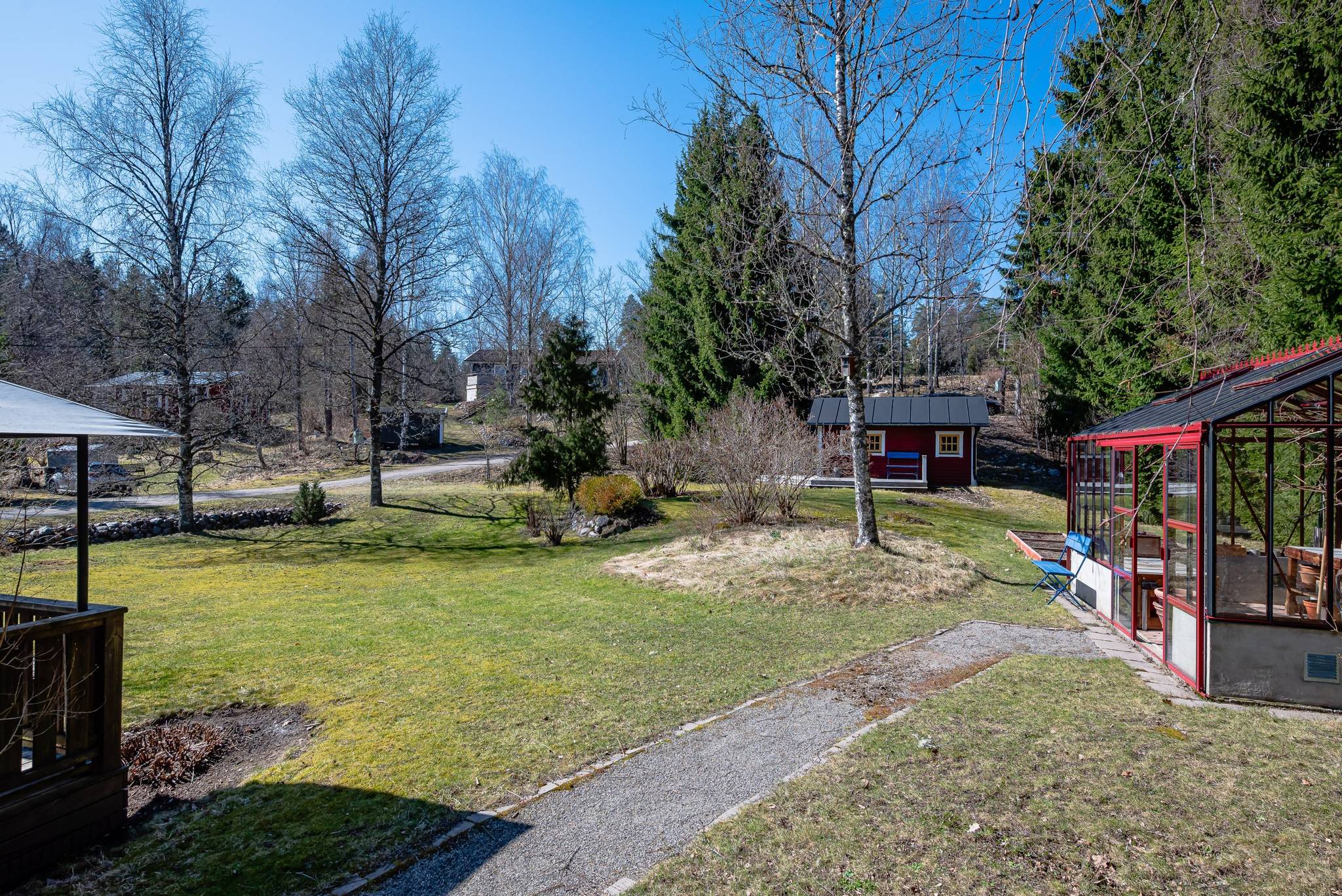 En mycket charmig fastighet med en prunkande trädgård, ett fint växthus, bra gäststuga och lite sjöutsikt från den skyddade farstubron. Runt huset går en altan som fångar upp solens alla lägen och bakMore...