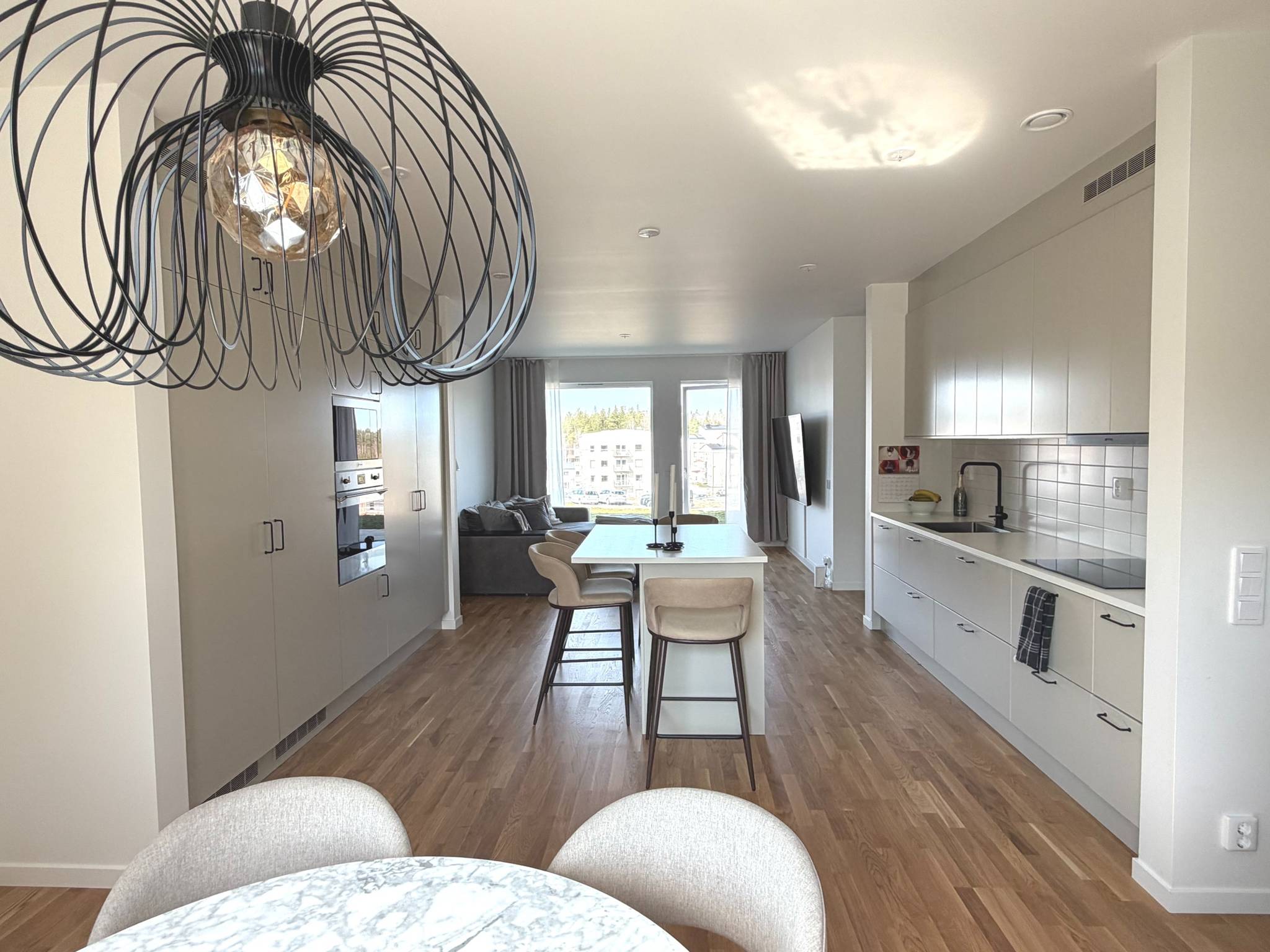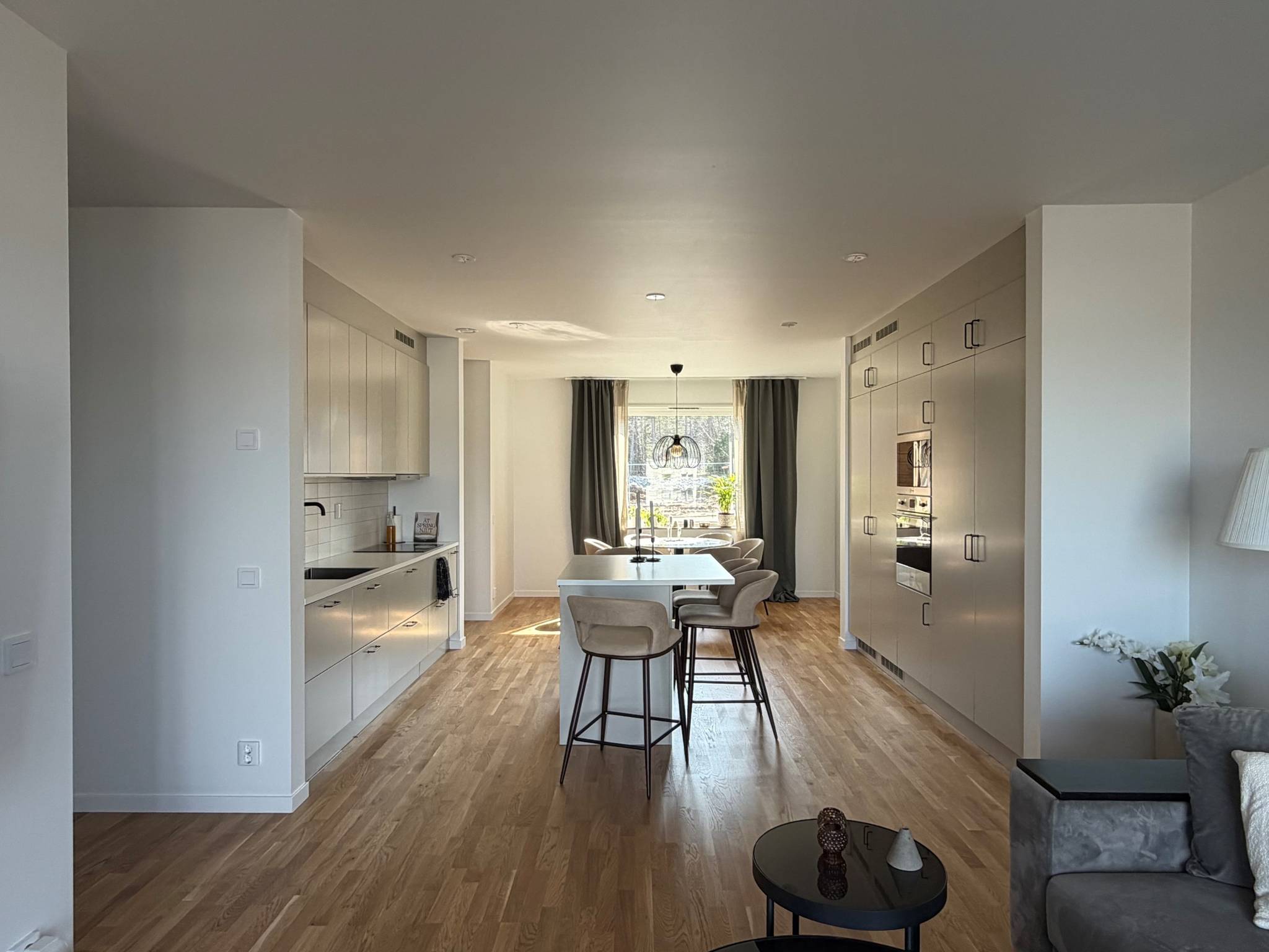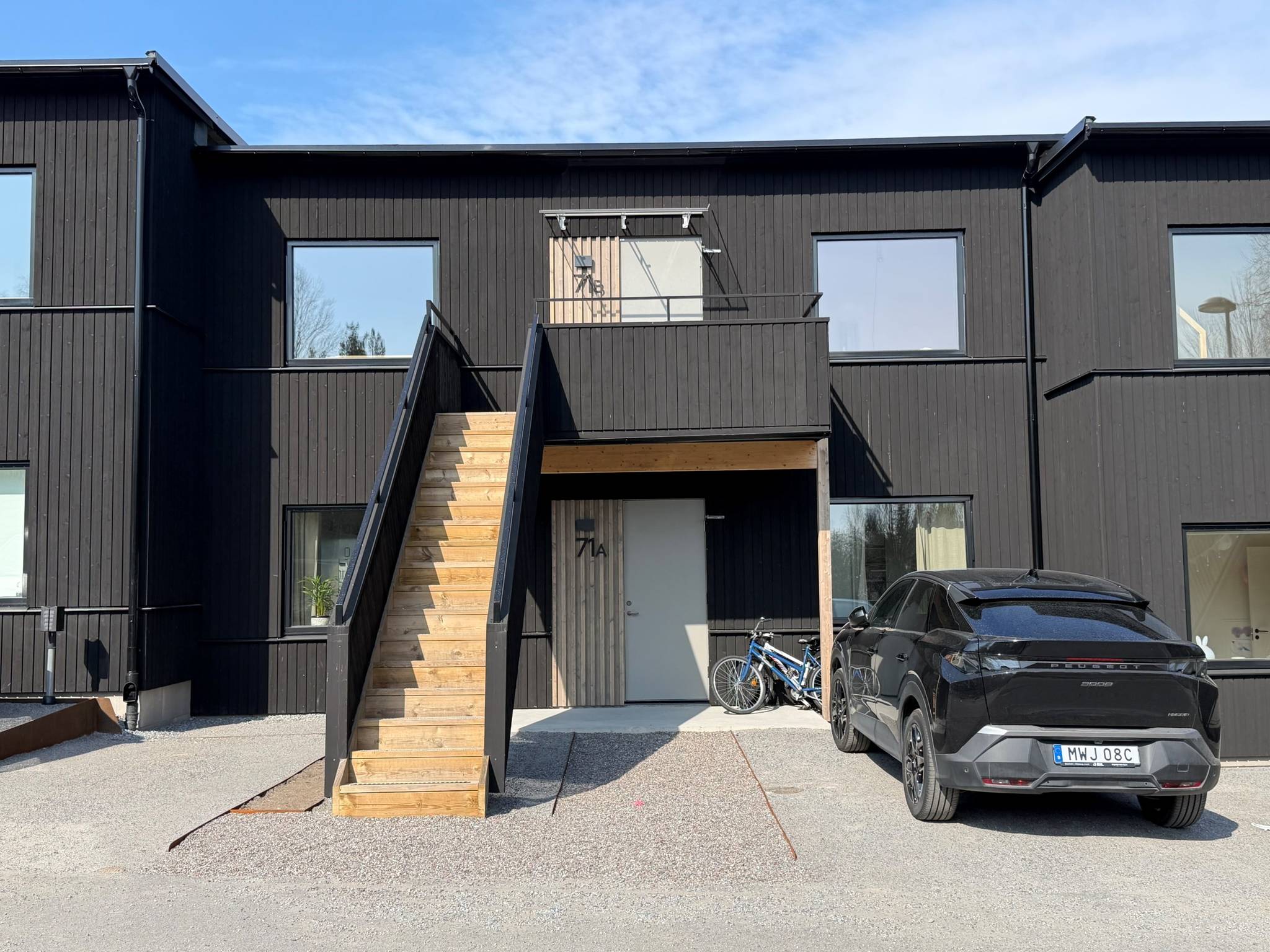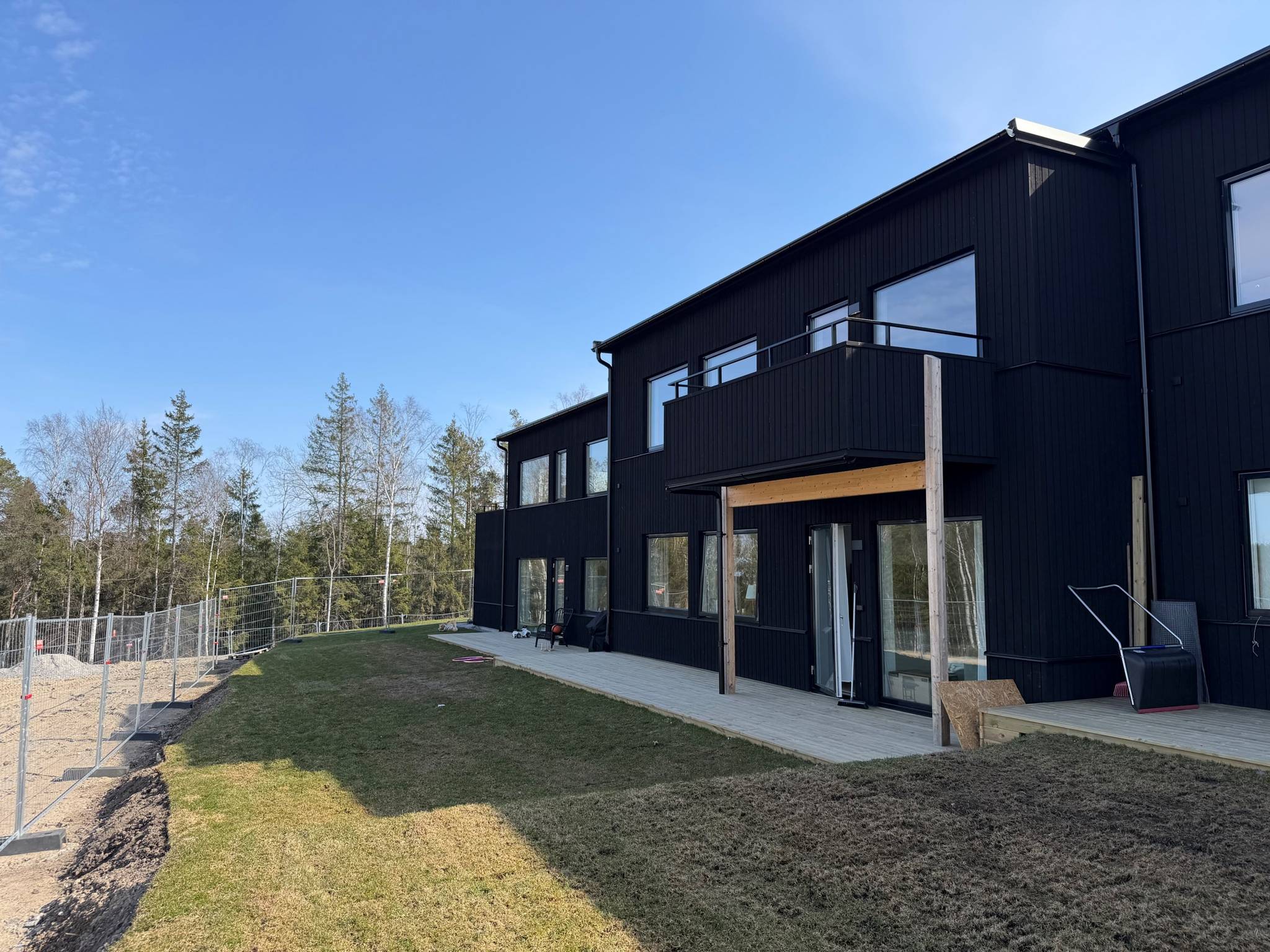 Välkommen till Hällmarksvägen 71A – en stilren och nyproducerad markplanslägenhet om ca 94 m², där modern arkitektur möter funktionella lösningar och hög boendekomfort. Här erbjuds ett hem med genomtänkt planlösning, generösa sällskapsytor och ett fantastiskt ljusinsläpp som skapar en luftig och inbjudande atmosfär. Bostaden är belägen i ett lugnt och trivsamt område där naturen alltid är nära, samtidigt som vardagens bekvämligheter finns inom räckhåll. Den öppna planlösningen mellan kök, matplats och vardagsrum utgör bostadens hjärta – en naturlig samlingsplats för både familj och vänner. Här skapas en social och harmonisk miljö, perfekt för såväl vardagsliv som festliga tillfällen. Från vardagsrummet kliver du rakt ut på den rymliga terrassen på baksidan, som med sin direkta anslutning till gräsmatta blir en självklar förlängning av bostaden under årets varmare månader. Här kan barnen leka tryggt i det fria medan du njuter av lugnet och solen i en privat och ombonad miljö. Bostaden erbjuder tre välplanerade och rymliga sovrum med goda möbleringsmöjligheter, vilket gör hemmet idealiskt för barnfamiljen, den som arbetar hemifrån eller för dig som önskar extra utrymme för gäster. Här finns även ett stilrent badrum samt en separat WC – en uppskattad detalj som underlättar vardagens logistik. Förvaringsmöjligheterna är generösa med både praktisk klädkammare och gott om plats i hallen, vilket bidrar till ett organiserat och lättskött hem. Det bekväma markplansläget gör bostaden både lättillgänglig och funktionell, och som en extra bonus finns möjlighet att parkera två bilar direkt intill bostaden. En av parkeringsplatserna är utrustad med laddstolpe – en stor fördel för det moderna hushållet och ett framtidssäkert inslag. Uppvärmningen sker via en energieffektiv Nibe frånluftsvärmepump i kombination med vattenburen golvvärme, vilket ger ett behagligt inomhusklimat året om samt bidrar till låga driftkostnader och god energiprestanda. Här bor du i attraktiva Riksten – ett område som präglas av närhet till vacker natur, skolor, service och goda kommunikationer. Området erbjuder en trivsam och familjevänlig atmosfär där grannar möts och gemenskapen är påtaglig – ett hem att verkligen trivas i och längta hem till. Kort fakta: Markplanslägenhet Generös takhöjd om ca 2,60 m Stor terrass med direkt anslutning till gräsmatta Öppen och social planlösning Tre sovrum Badrum samt separat WC Två parkeringsplatser, varav en med laddstolpe Nibe frånluftsvärmepump Vattenburen golvvärme Förråd om ca 4 kvm Energieffektivt boende med låga driftkostnader Flexibelt tillträde12 images