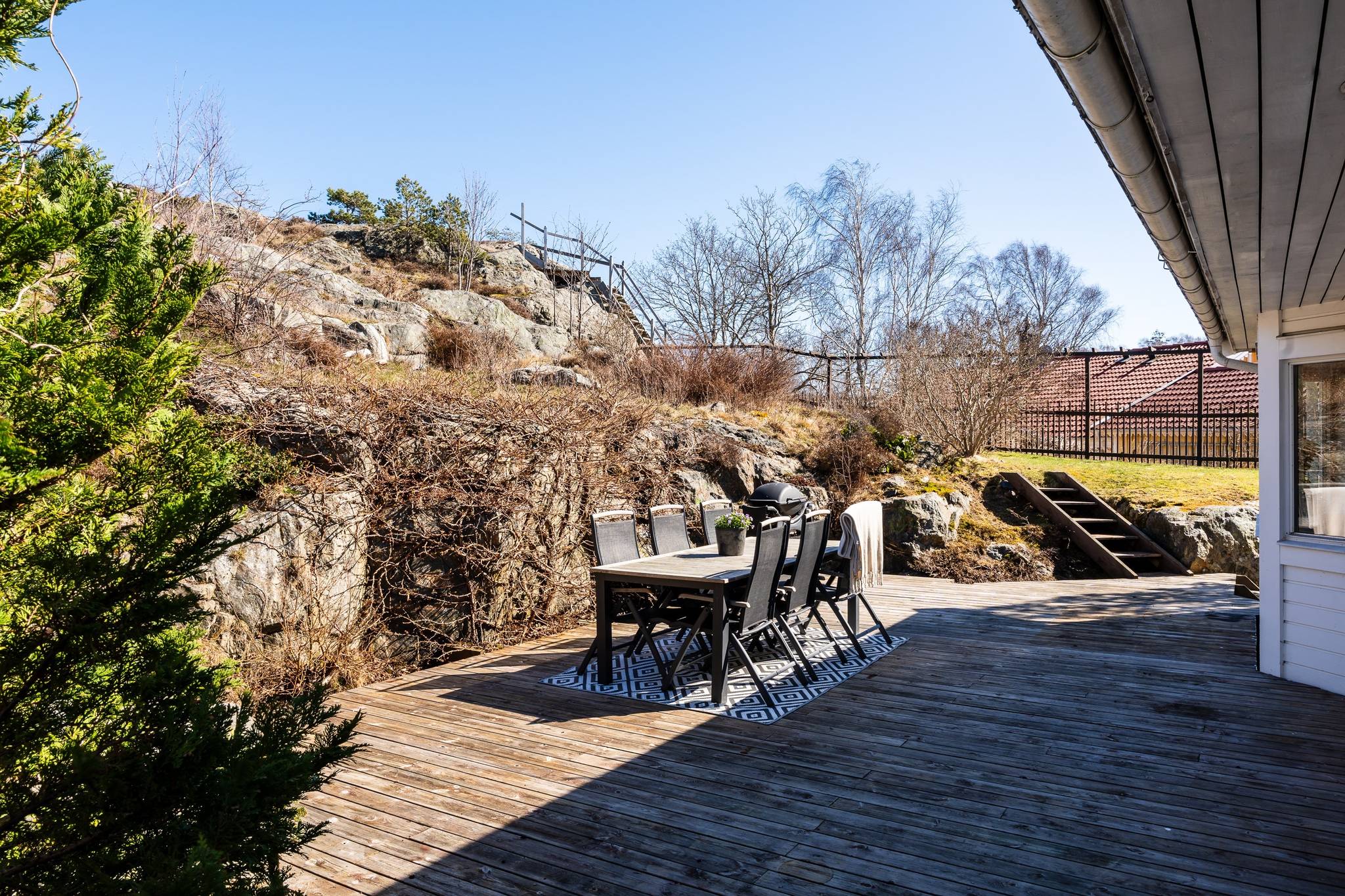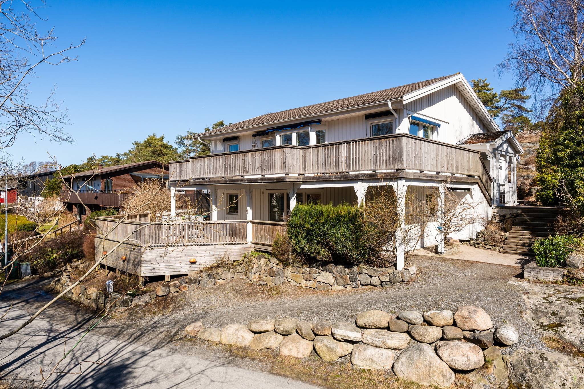 Välkommen till ett rymligt och välplanerat suterränghus på skärgårdsidyllen Styrsö. Hemmet präglas av en öppen och social planlösning med generösa fönsterpartier samt hög takhöjd som skapar ett härligt ljusinsläpp hela dagen. Med sju rum, varav fyra sovrum och två stora sällskapsrum, finns gott om plats för både social samvaro och avskildhet. Det renoverade köket har en stor matplats och från både kök och vardagsrum nås de soliga uteplatserna som suddar ut gränsen mellan inne och ute. Huset står på en lättskött och insynsskyddad tomt, perfekt för lek och avkoppling. Här finns flera uteplatser i olika väderstreck, vilket garanterar sol från tidig morgon till sen kväll. Den stora altanen blir en naturlig samlingsplats under sommarmånaderna. Byggnaden är från 1990 men har genomgått flera stora renoveringar de senaste åren, vilket ger ett modernt och välskött intryck med bland annat nyare värmesystem, uppdaterade badrum och delvis ny fasad. Här bor ni i ett lugnt och mycket barnvänligt område med naturen som närmsta granne. Utanför dörren väntar fina promenadstigar och närheten till havet är ständigt påtaglig. All tänkbar service finns på bekvämt gångavstånd, såsom skola, förskola, idrottshall och livsmedelsbutik. För pendlaren och utflykter till fastlandet ligger Styrsö Brattens färjeläge bara en kort promenad bort.60 images